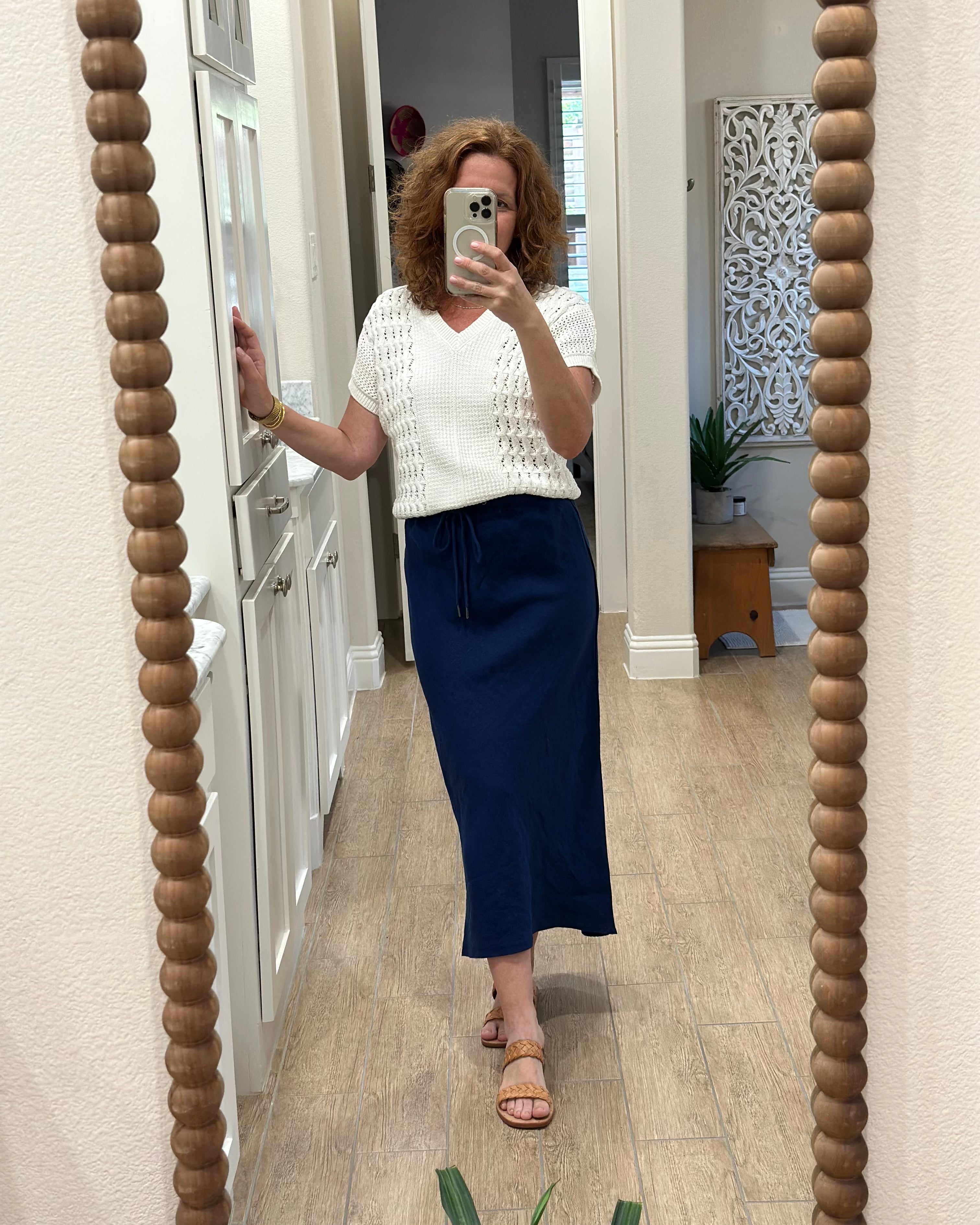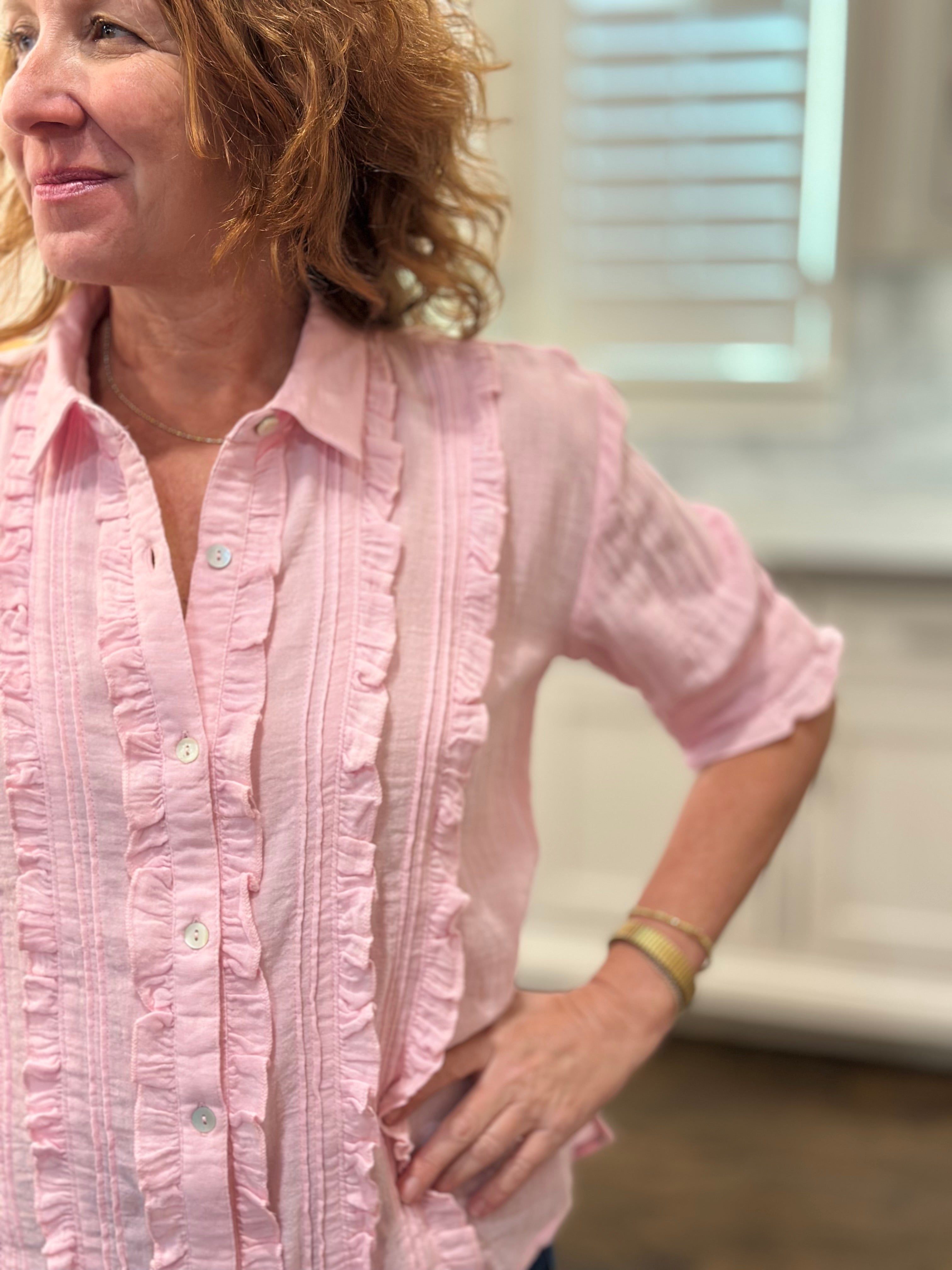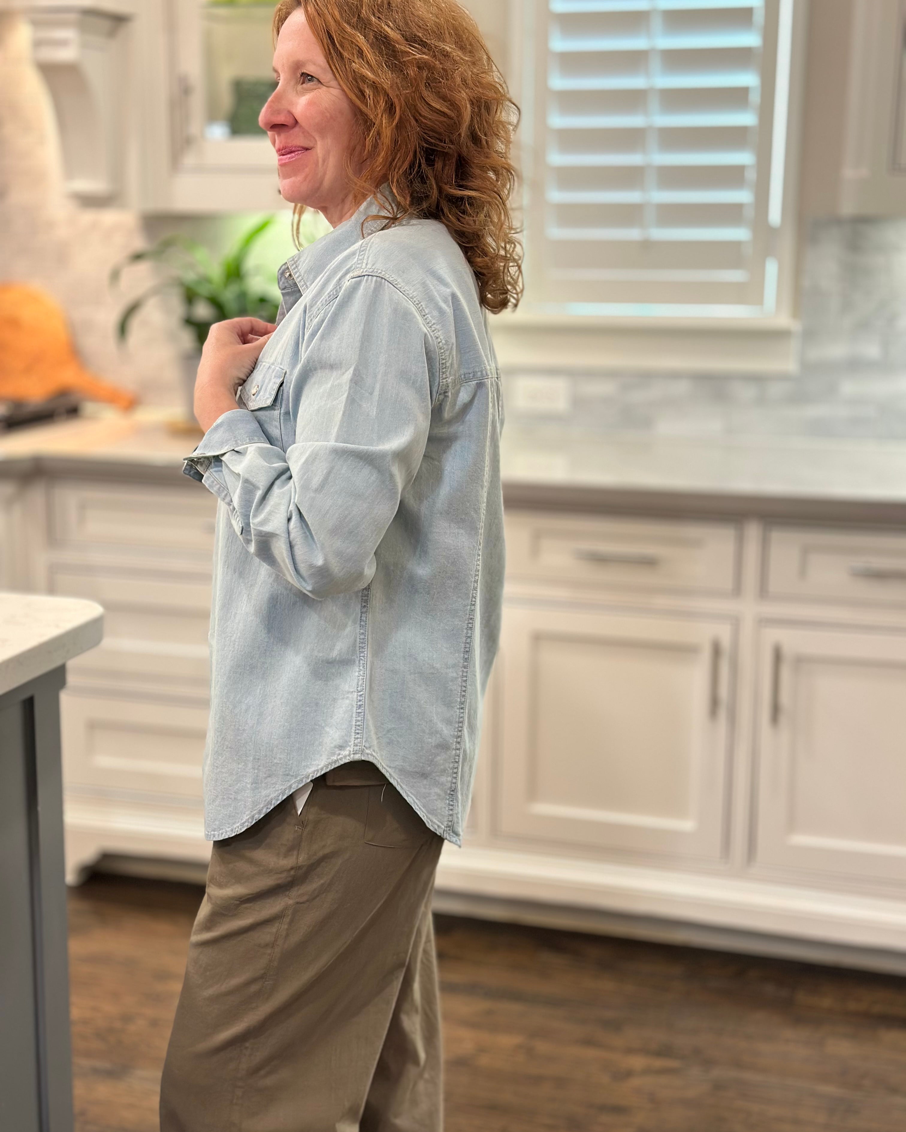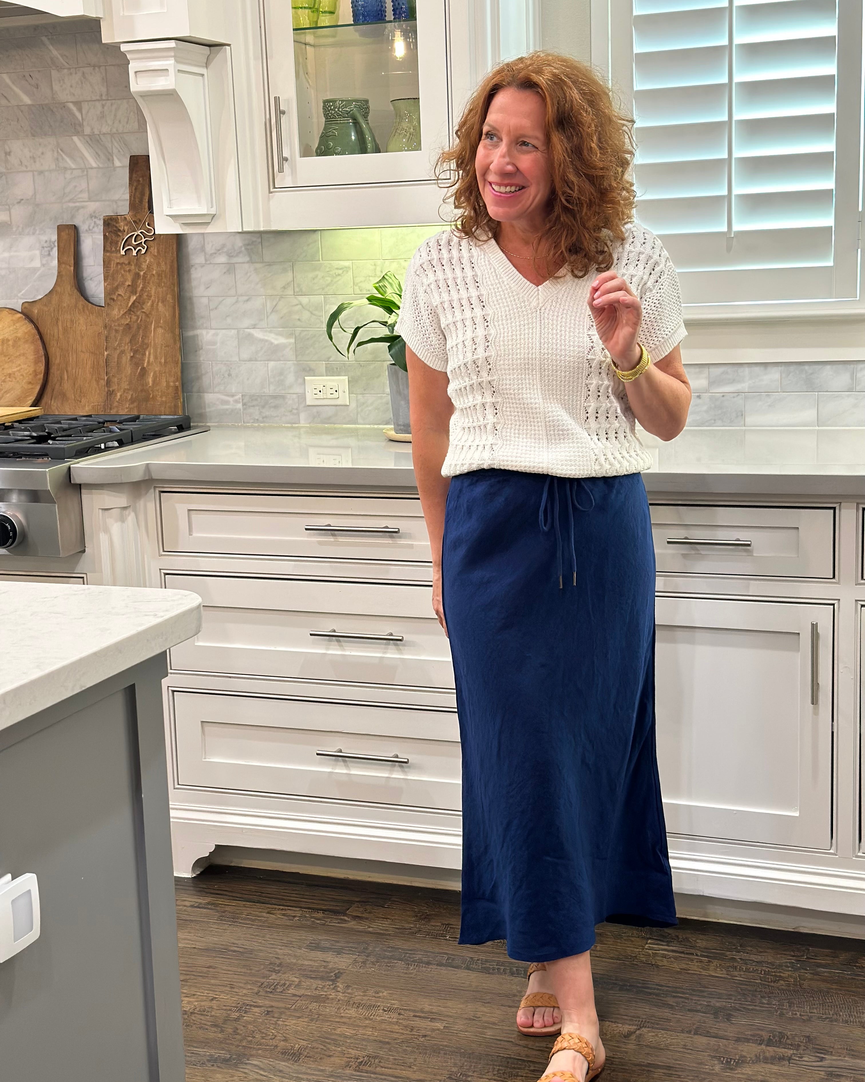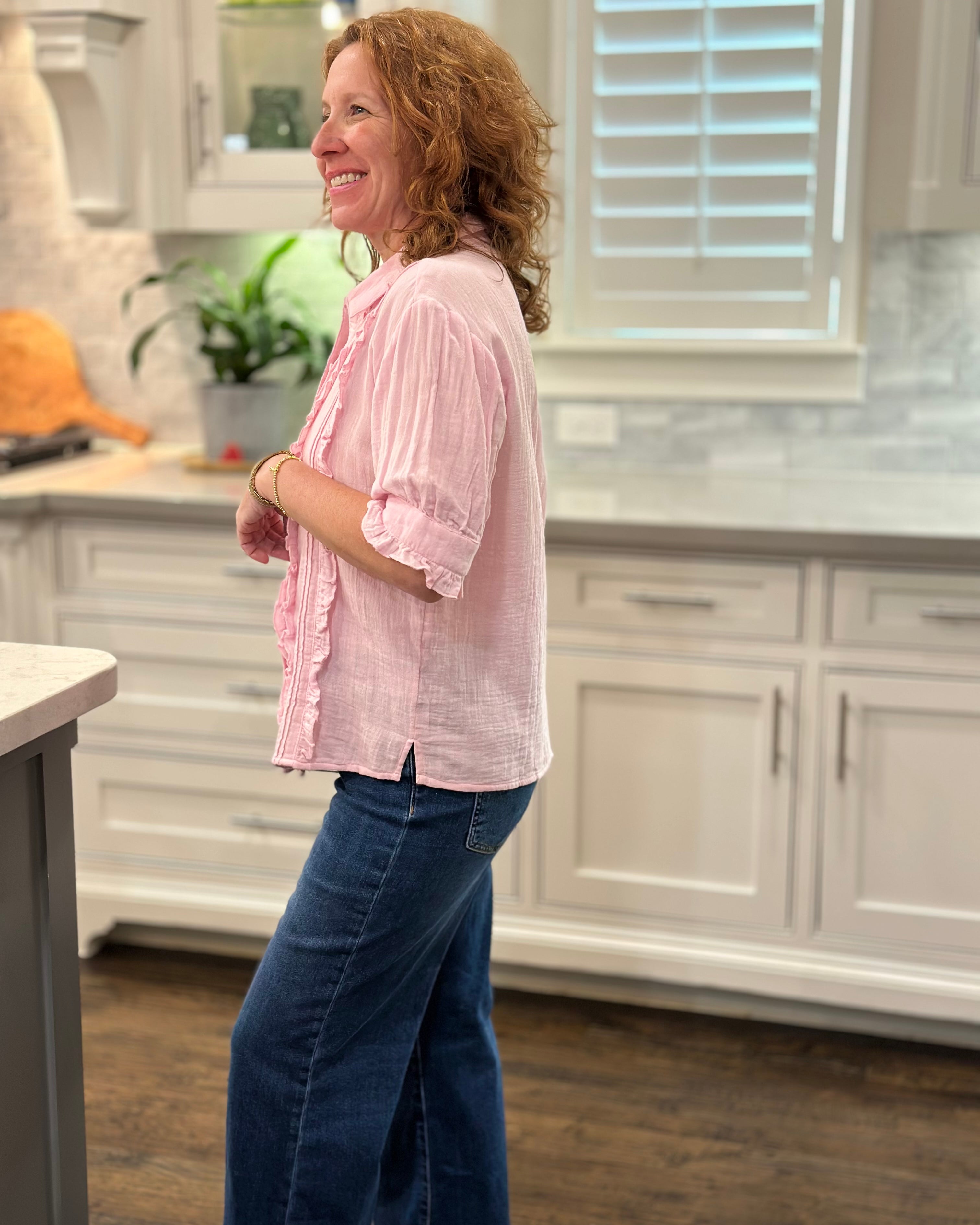 I loved shopping with CAS; the blouse can be worn with a suit or jeans. The ruffle adds a feminine touch while maintaining a professional stripe, which I love!
