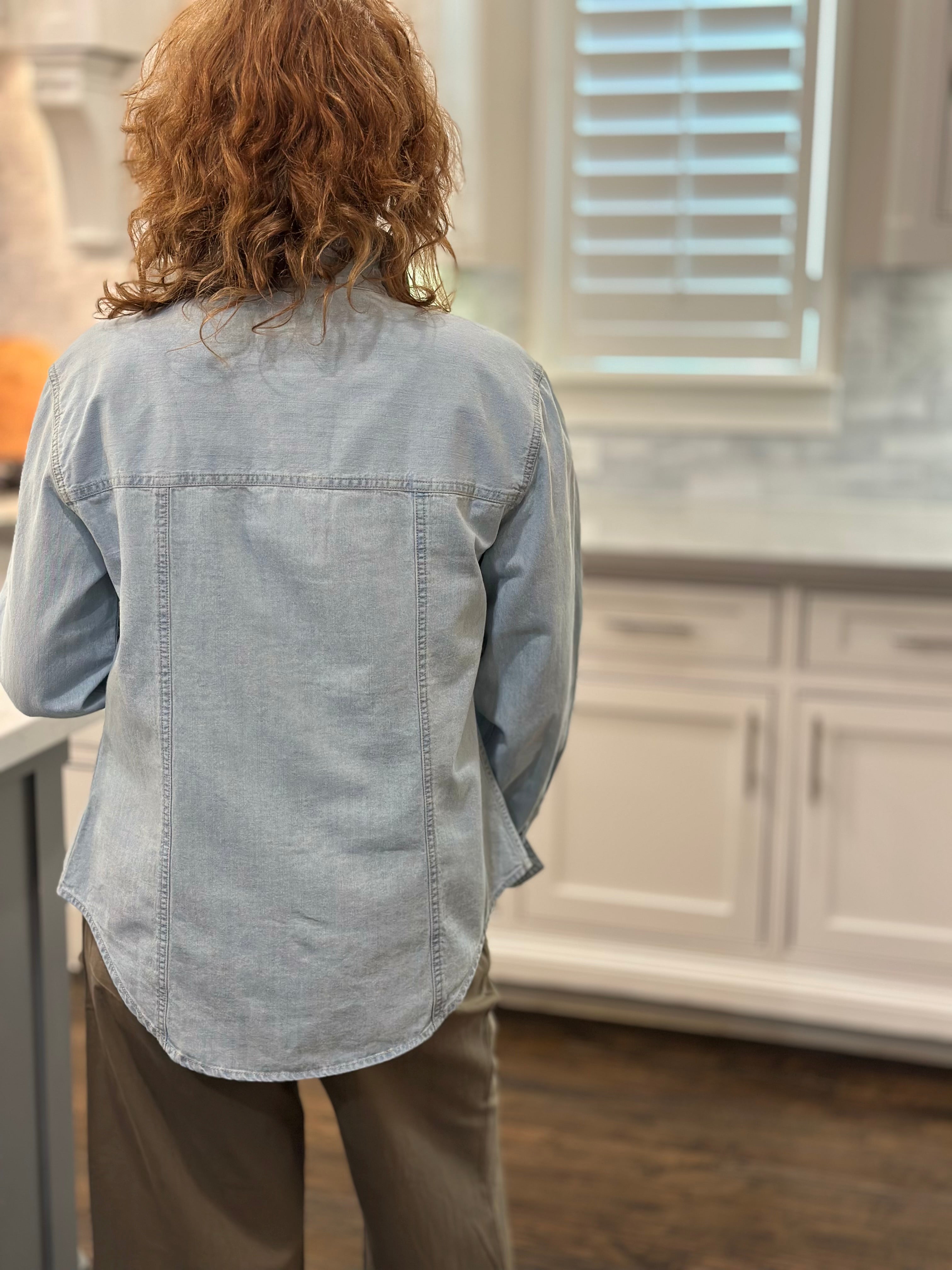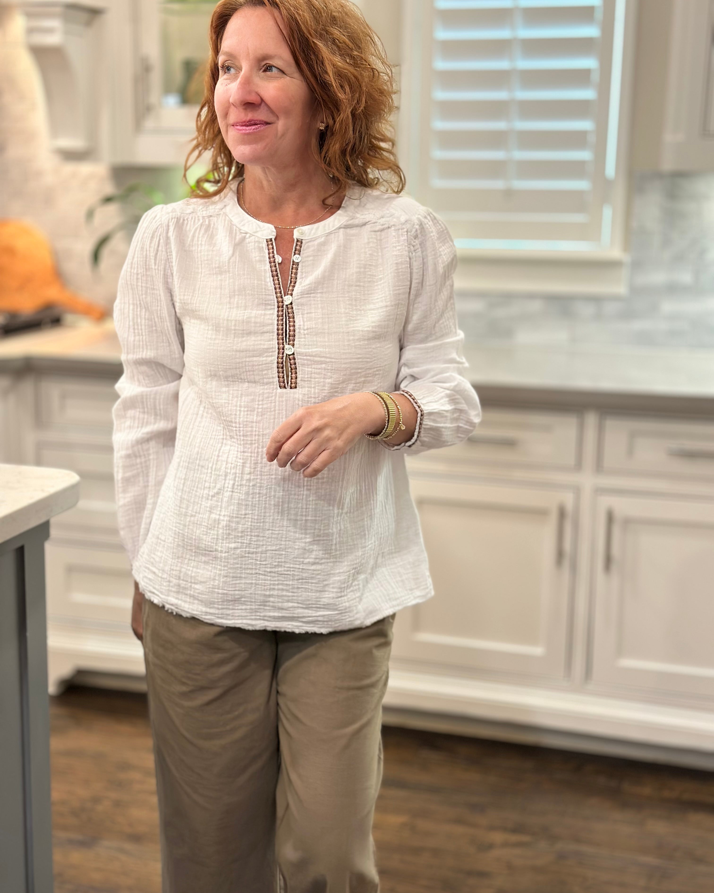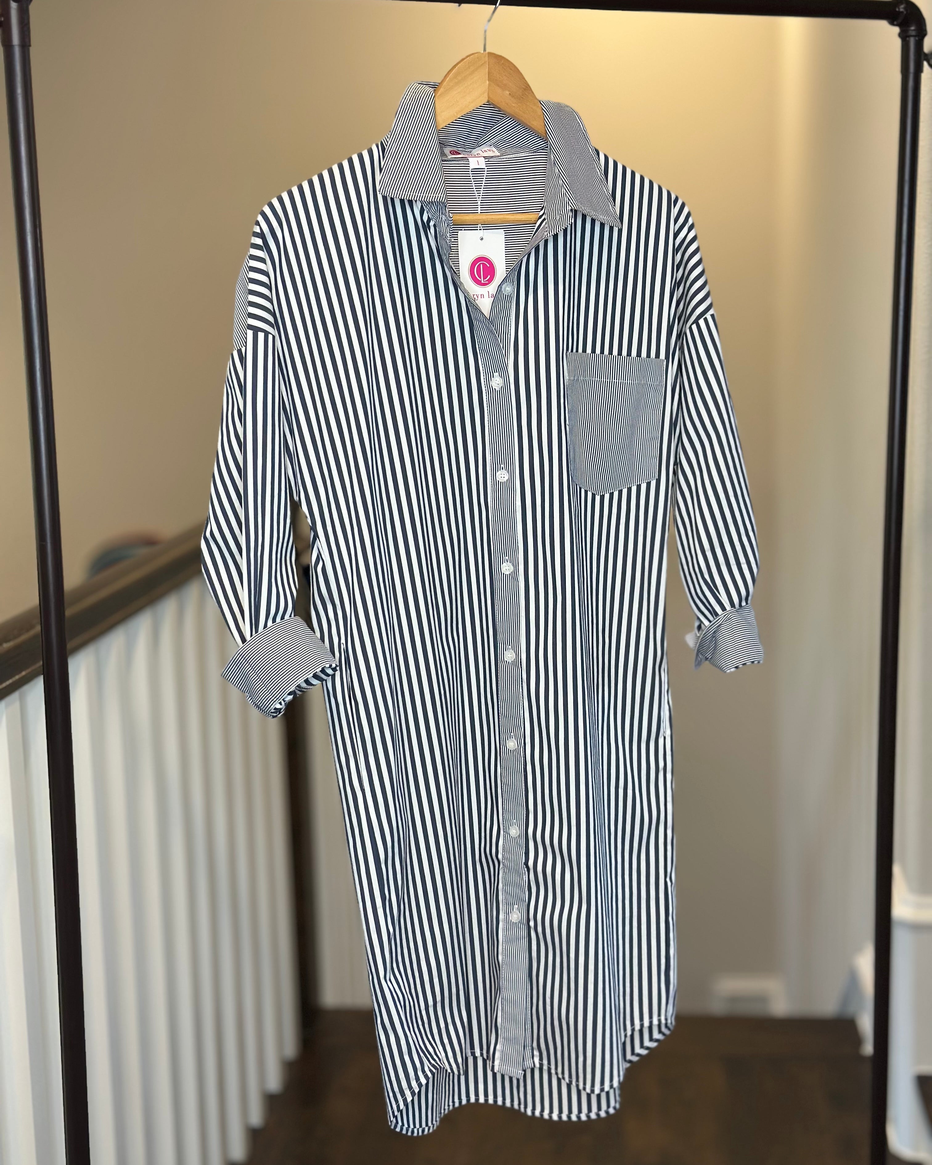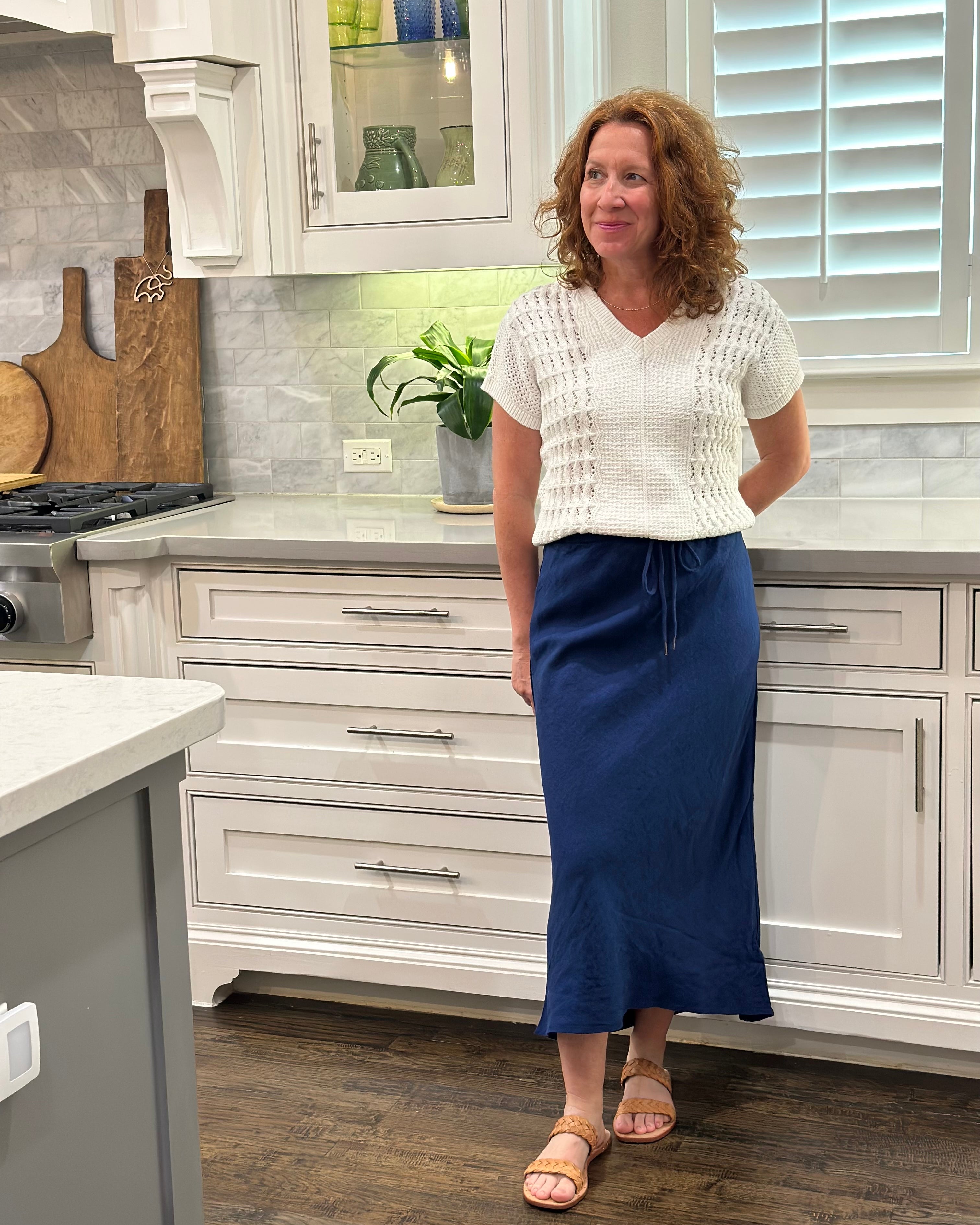 I loved shopping with CAS; the blouse can be worn with a suit or jeans. The ruffle adds a feminine touch while maintaining a professional stripe, which I love!