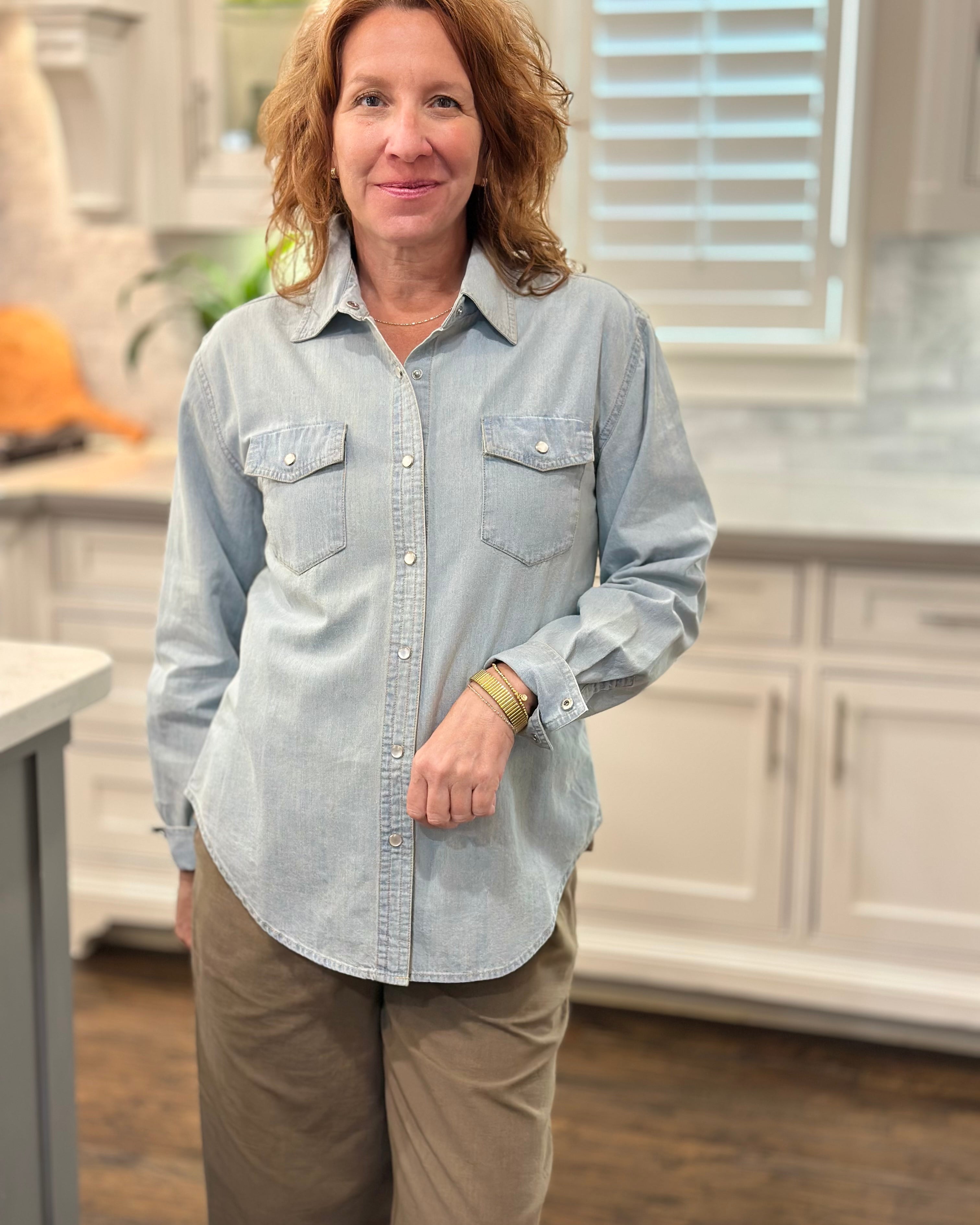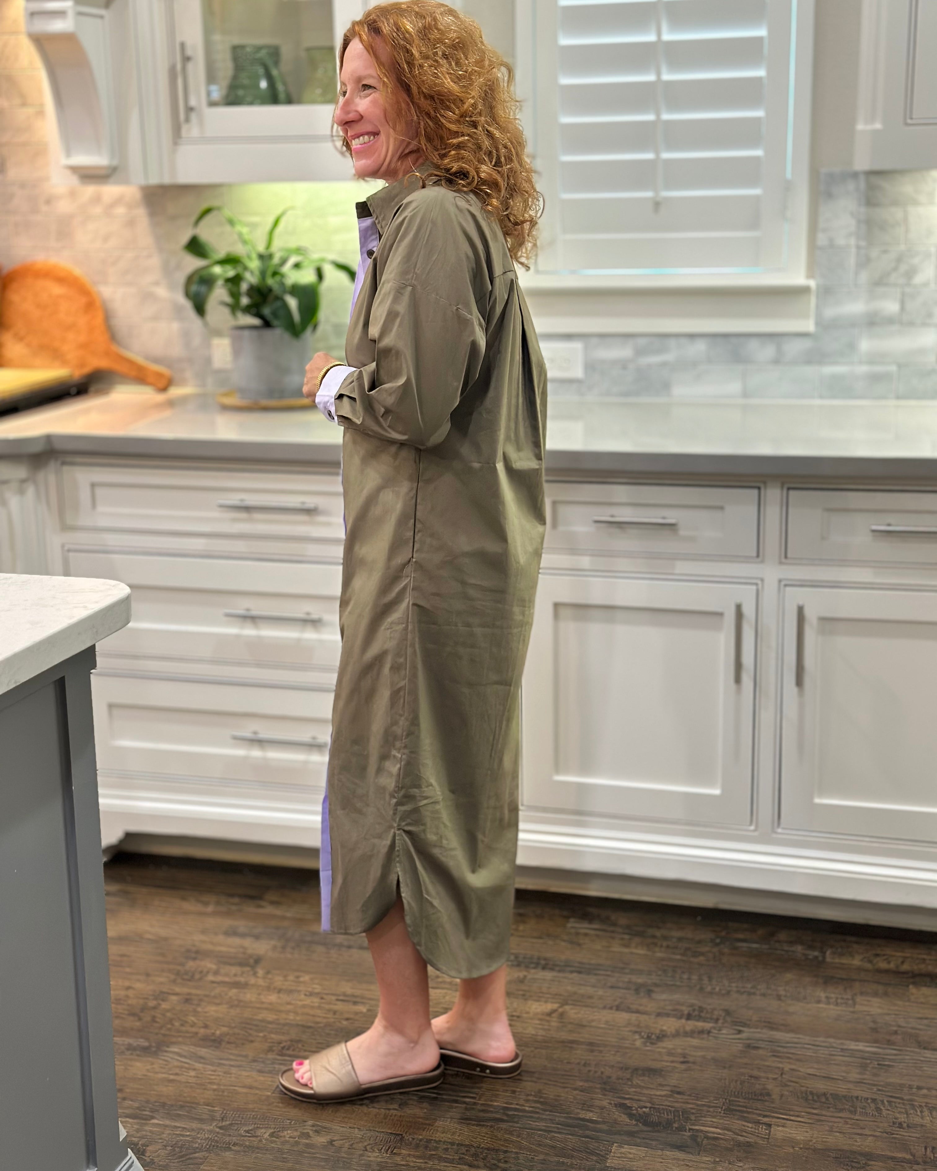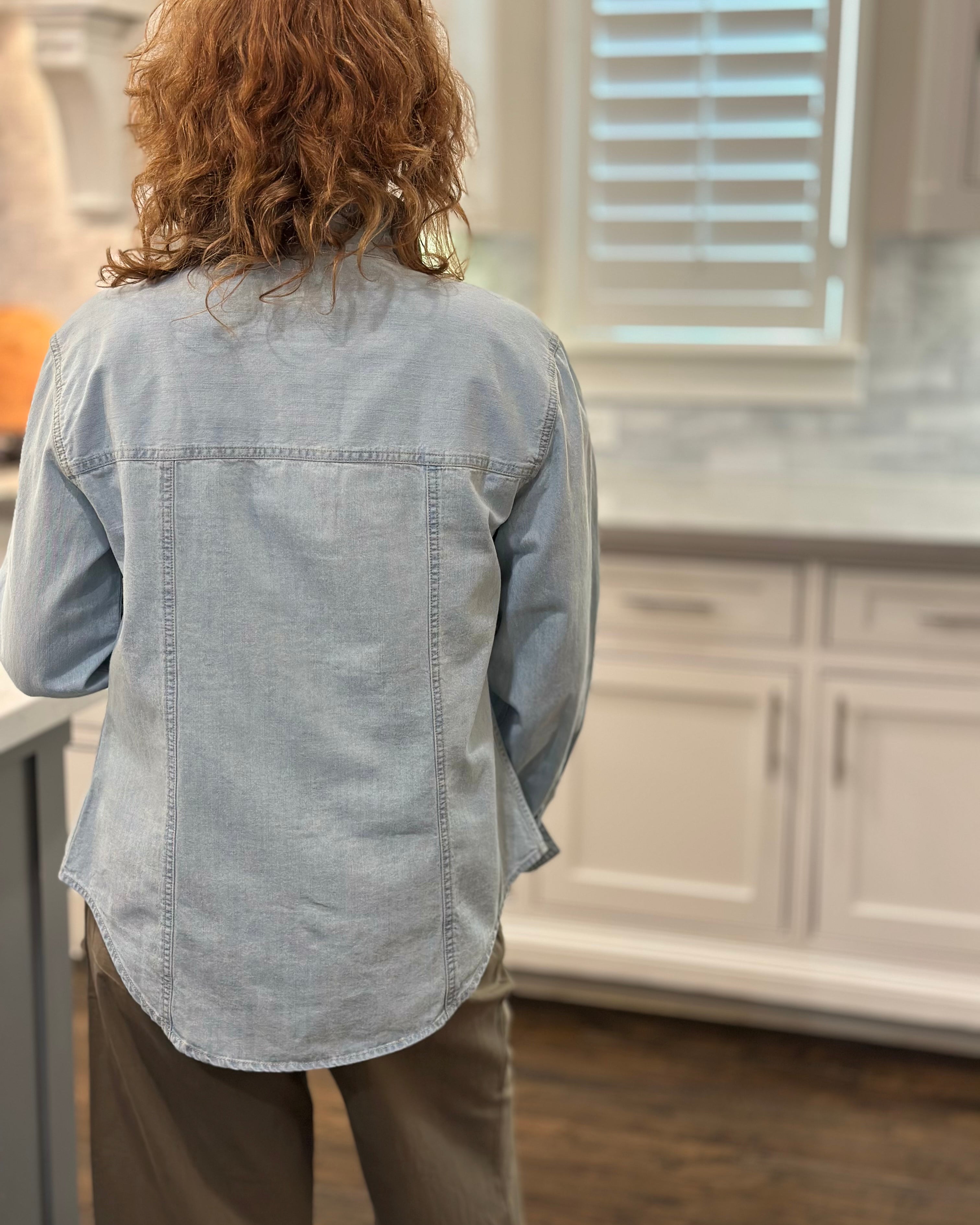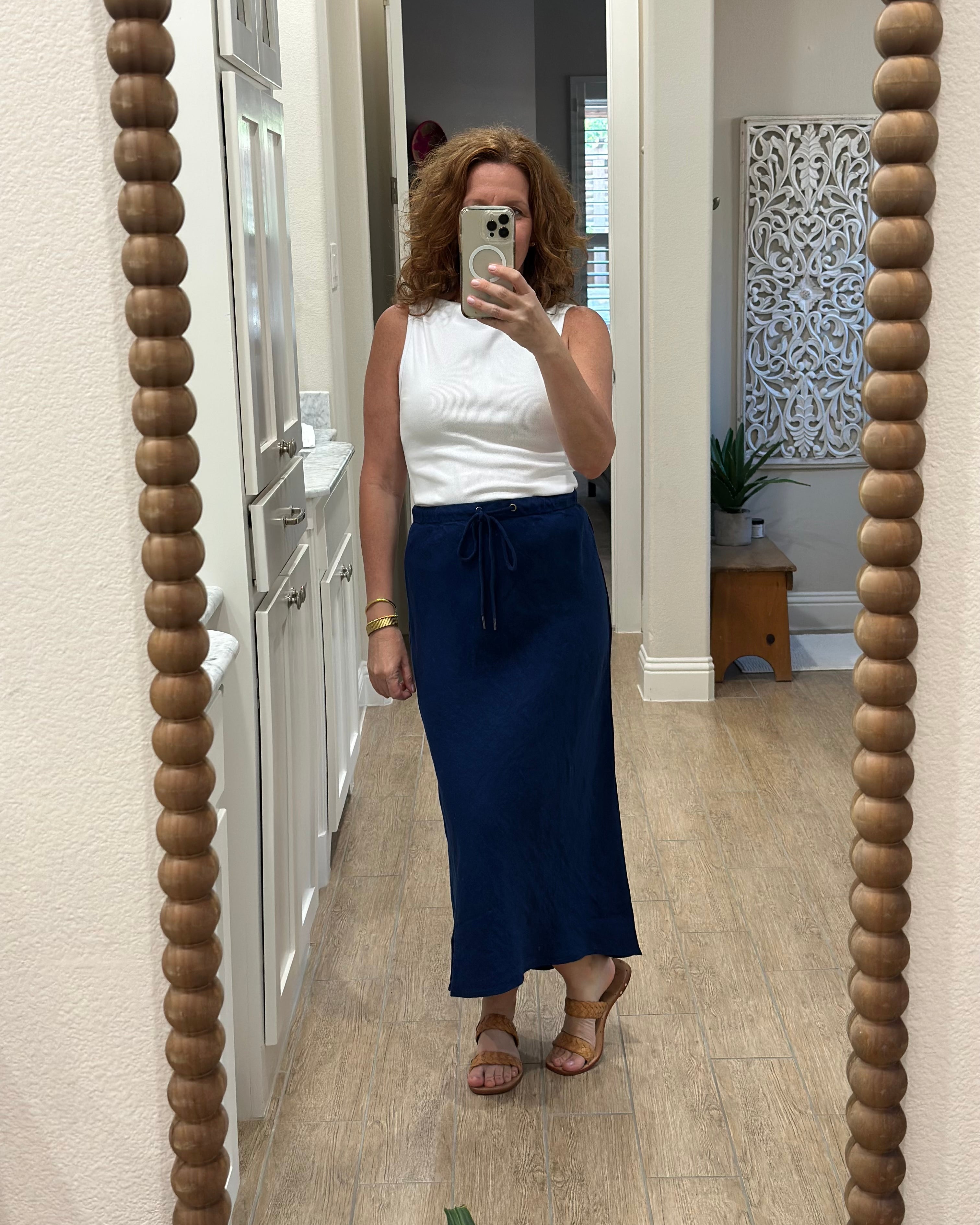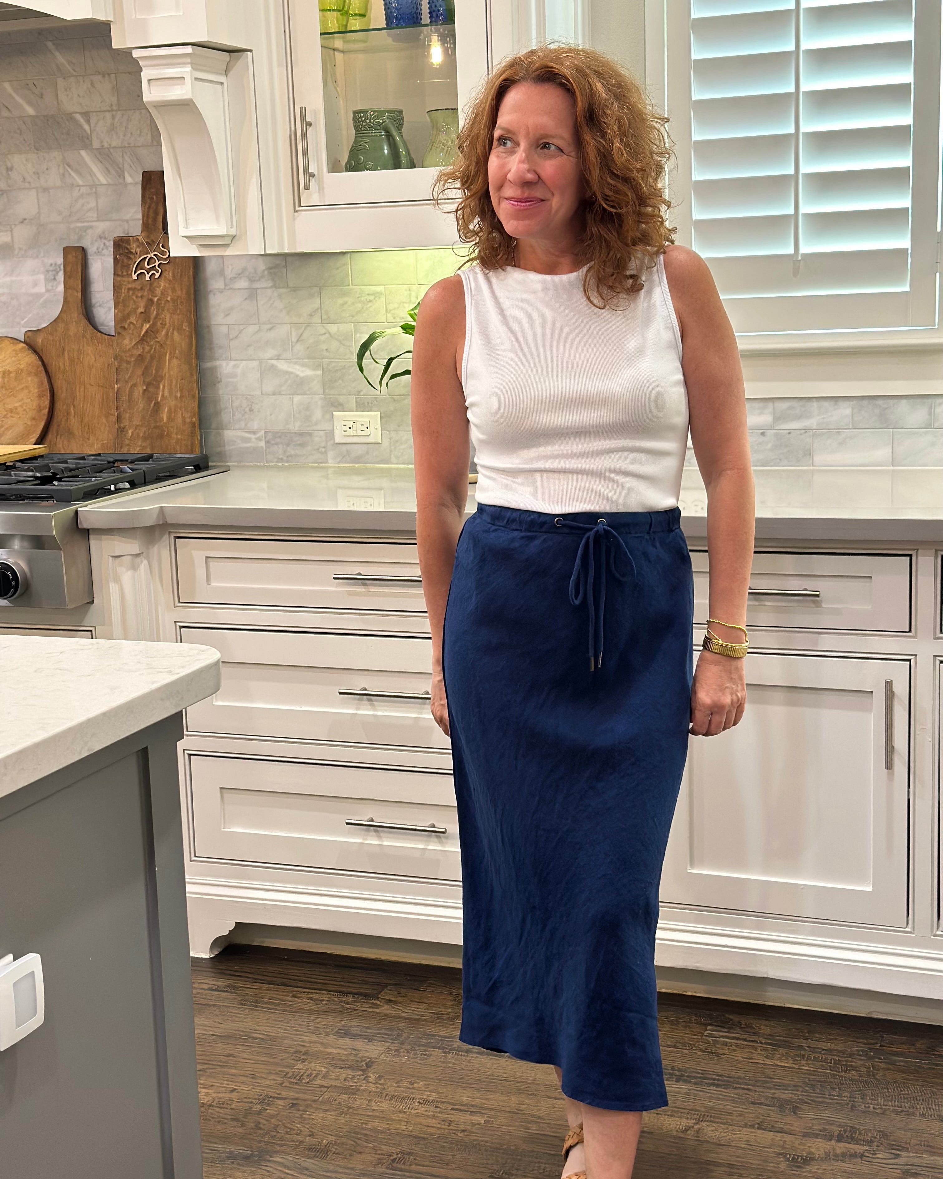 I loved shopping with CAS; the blouse can be worn with a suit or jeans. The ruffle adds a feminine touch while maintaining a professional stripe, which I love!