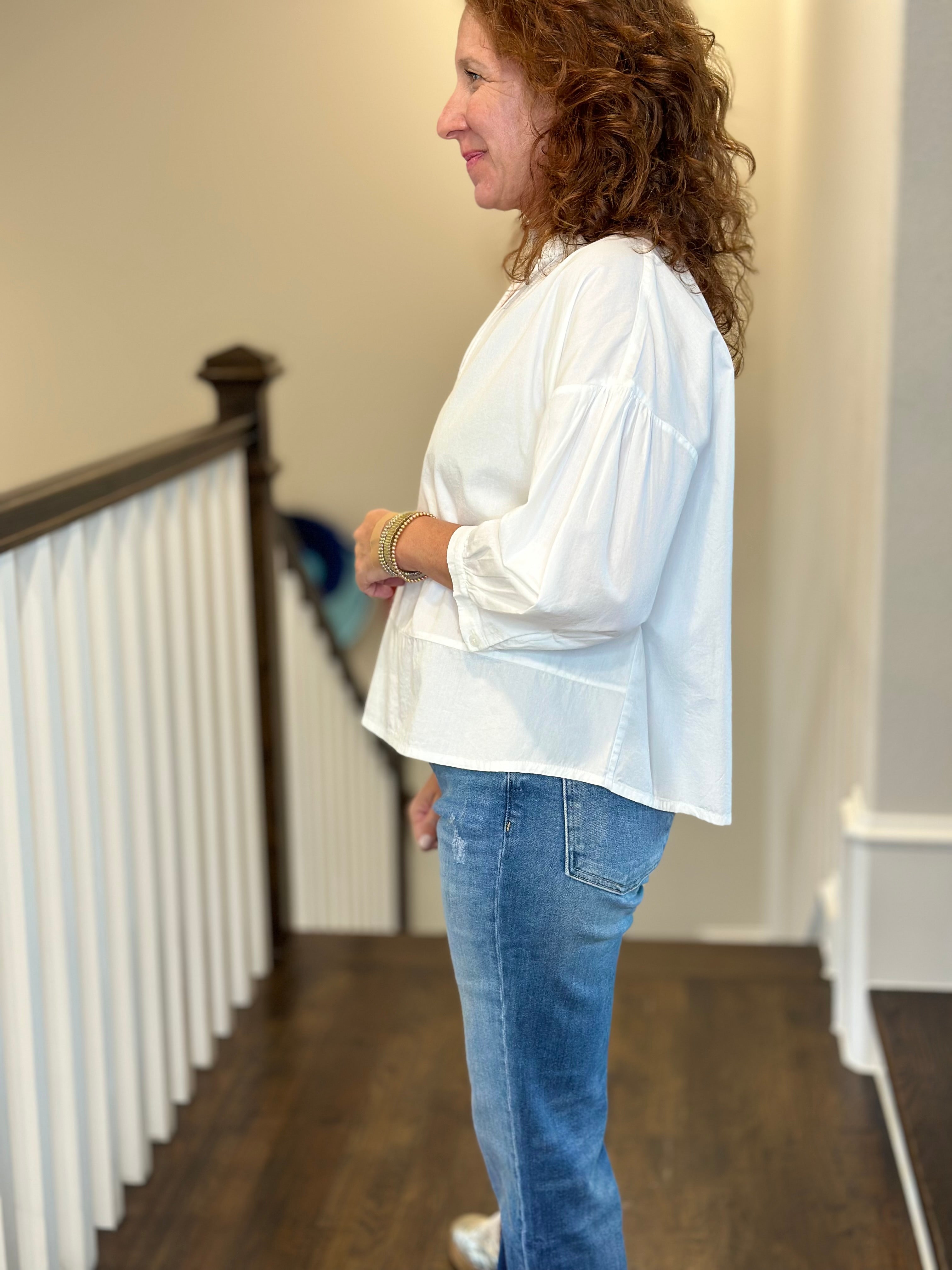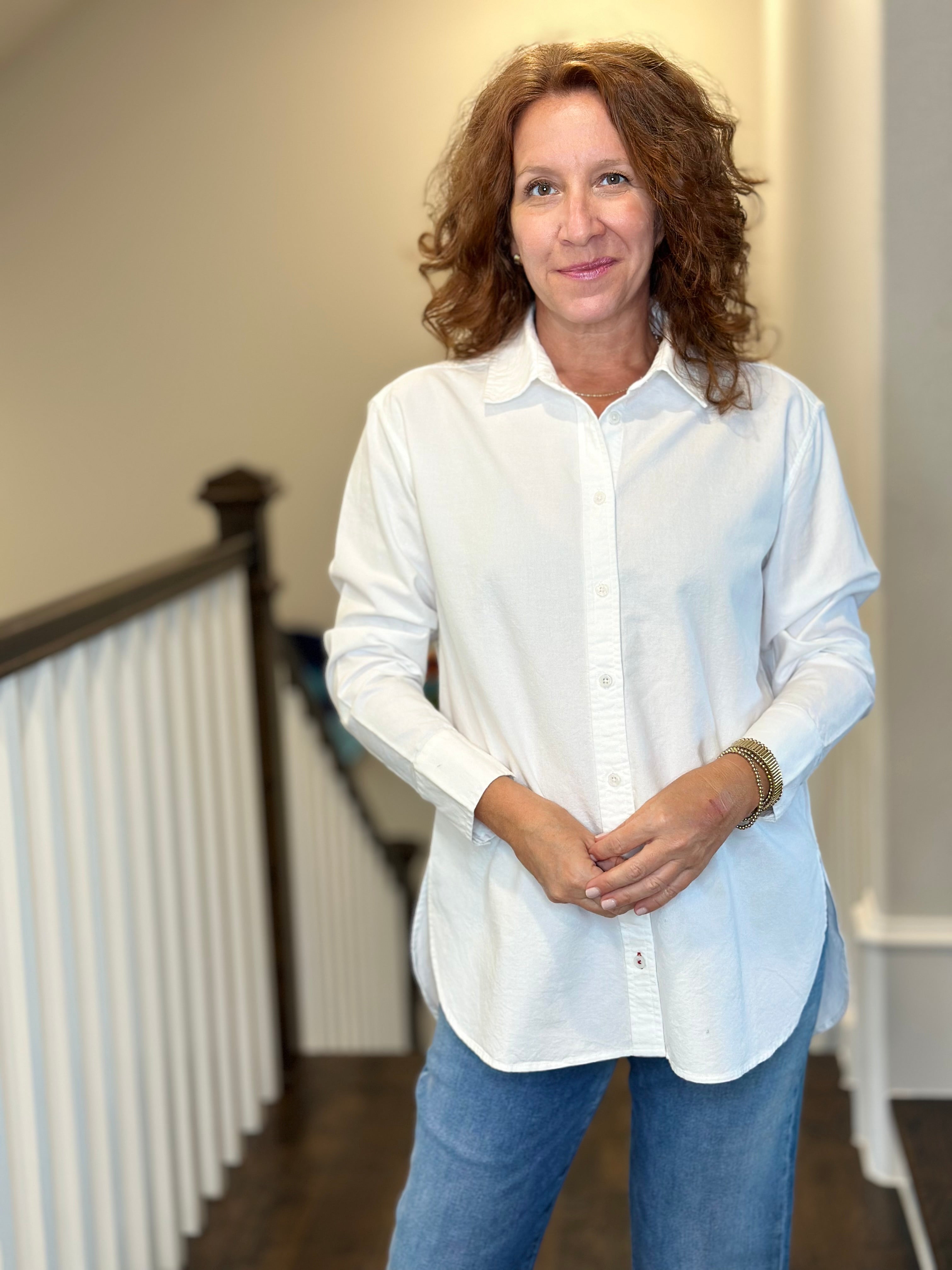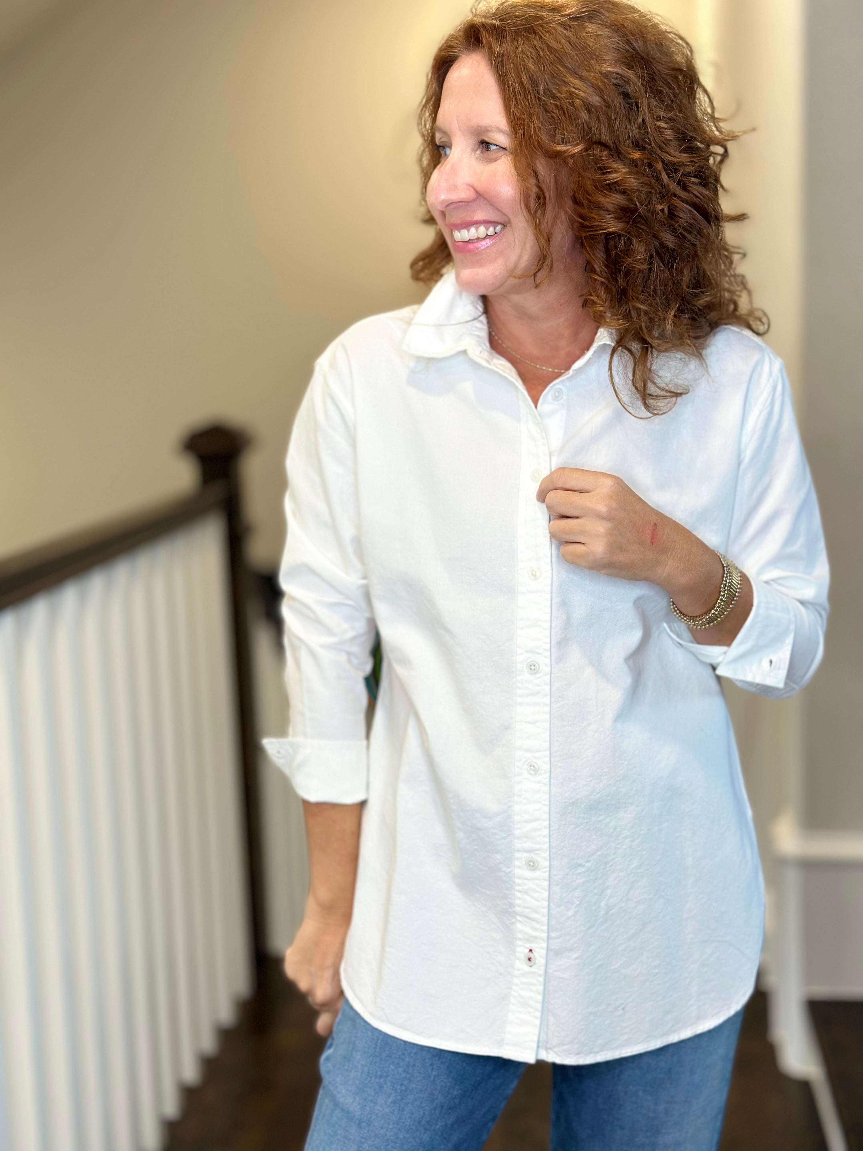 Voyageur - Bronte Relaxed Button Up Top in Oxford White