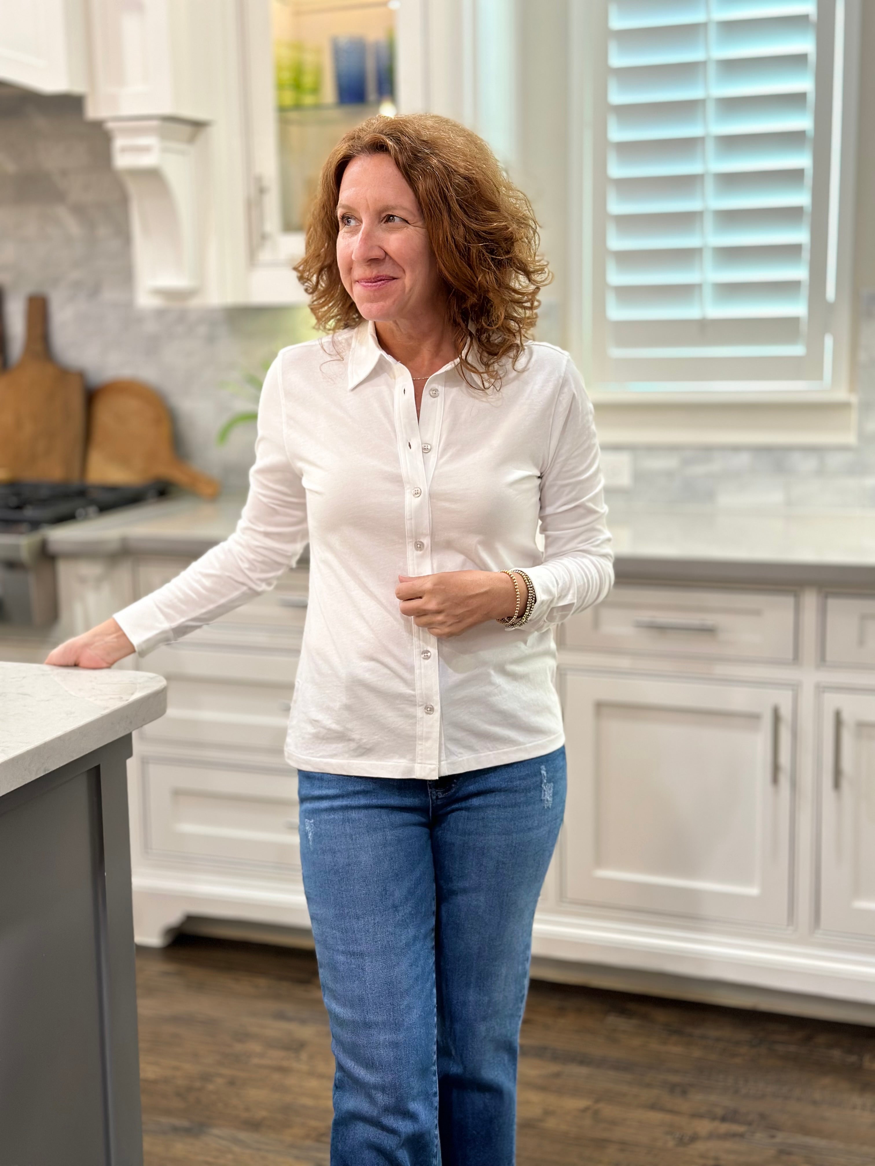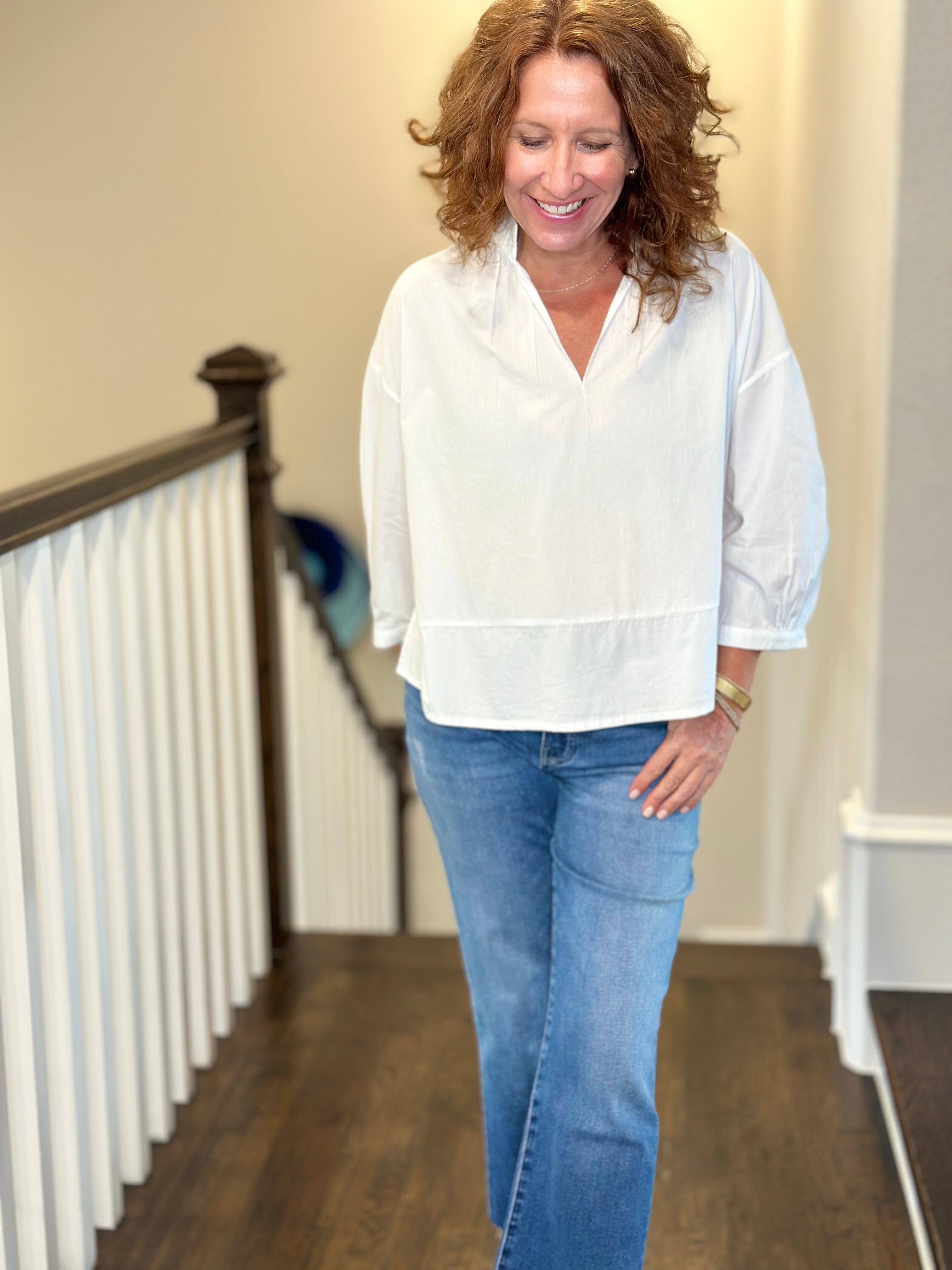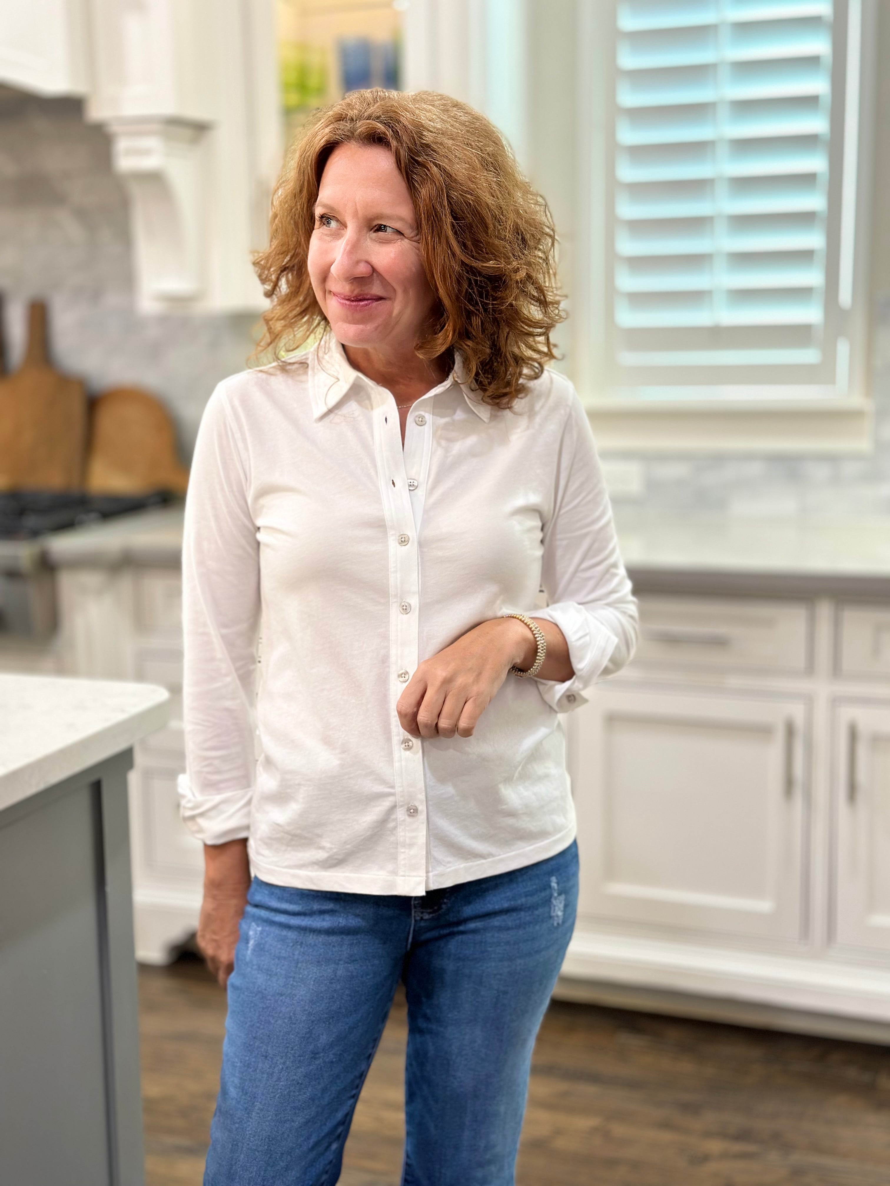 Voyageur - Bronte Relaxed Button Up Top in Oxford White