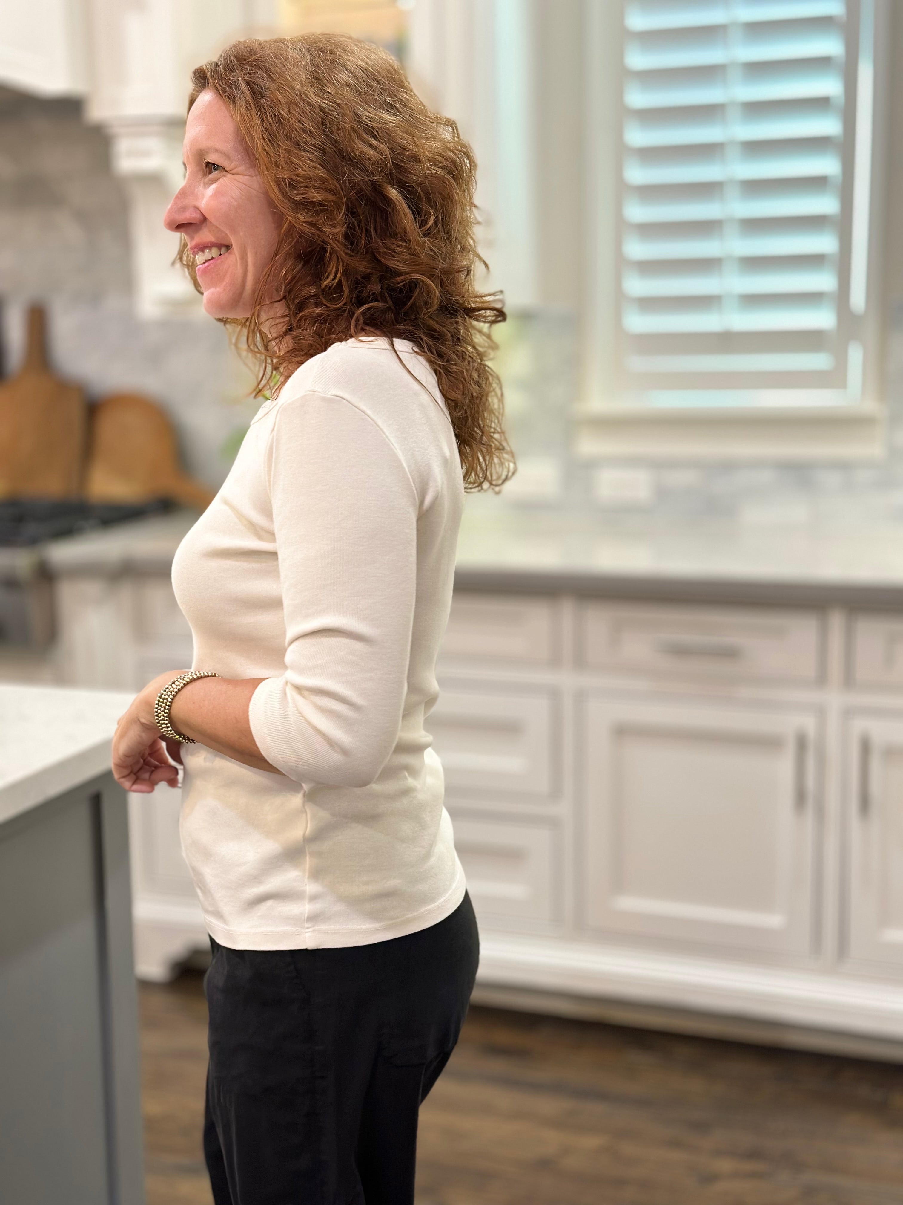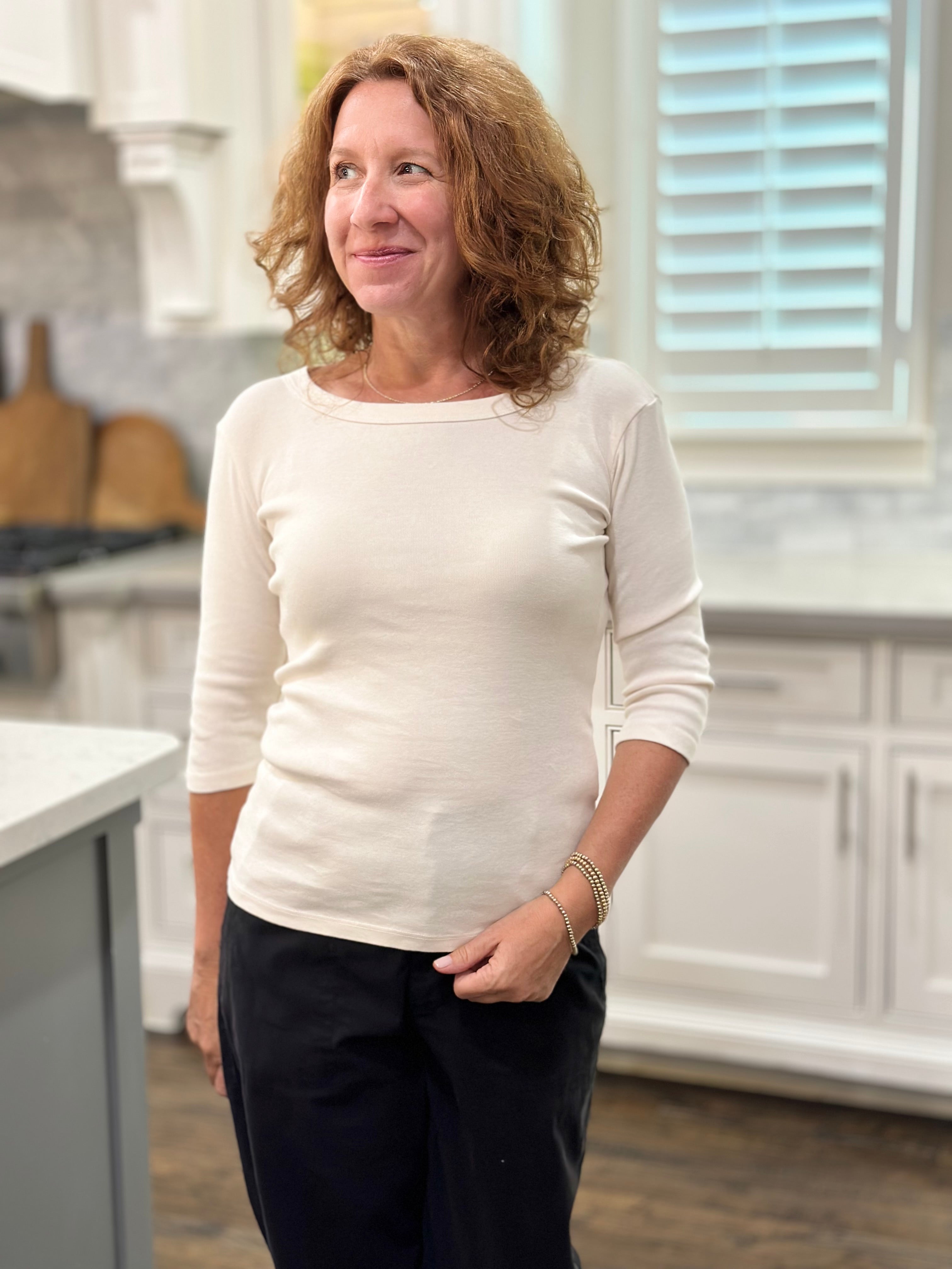 Michael Stars Dot 3/4 Sleeve Tee in Chalk