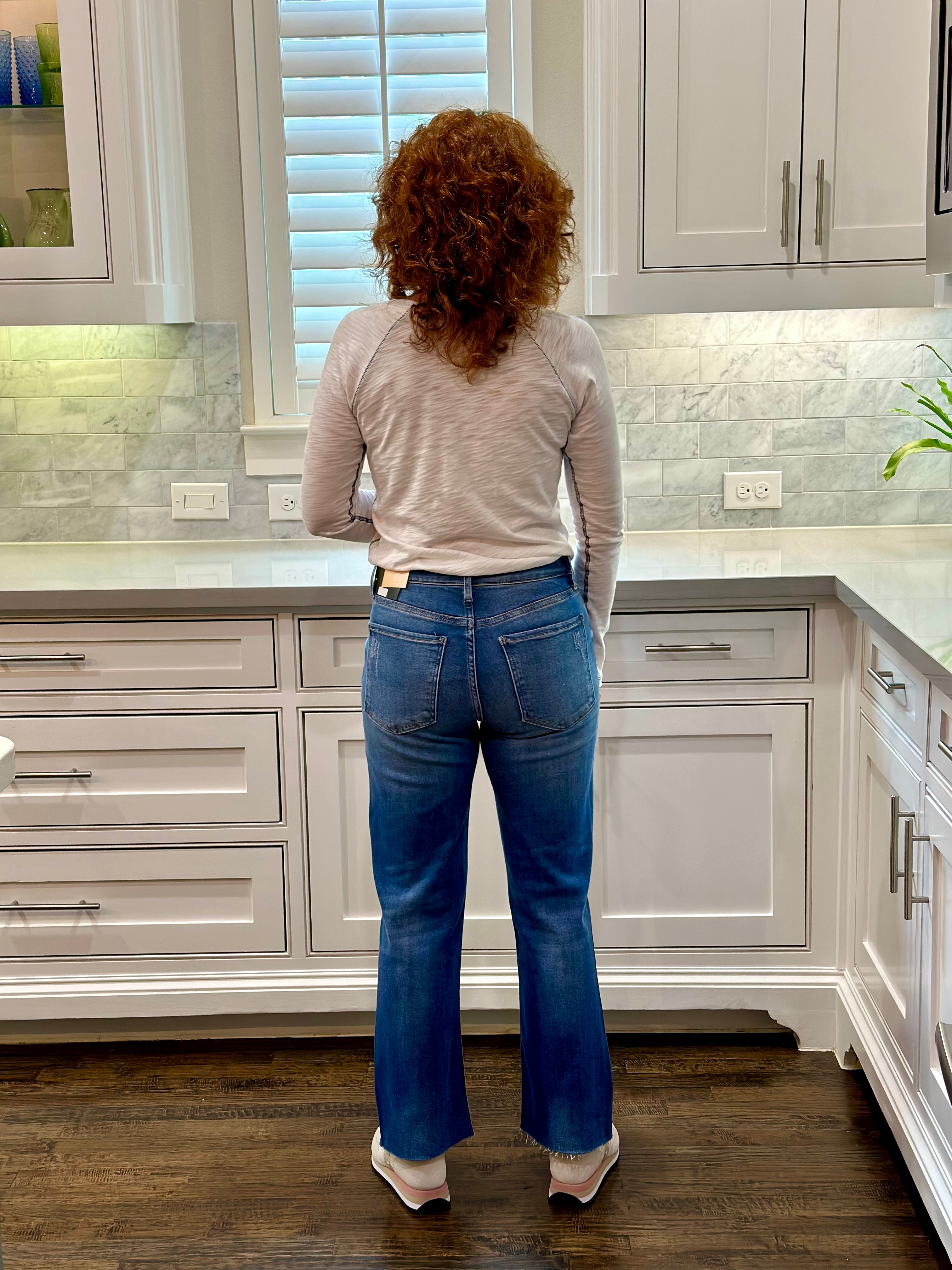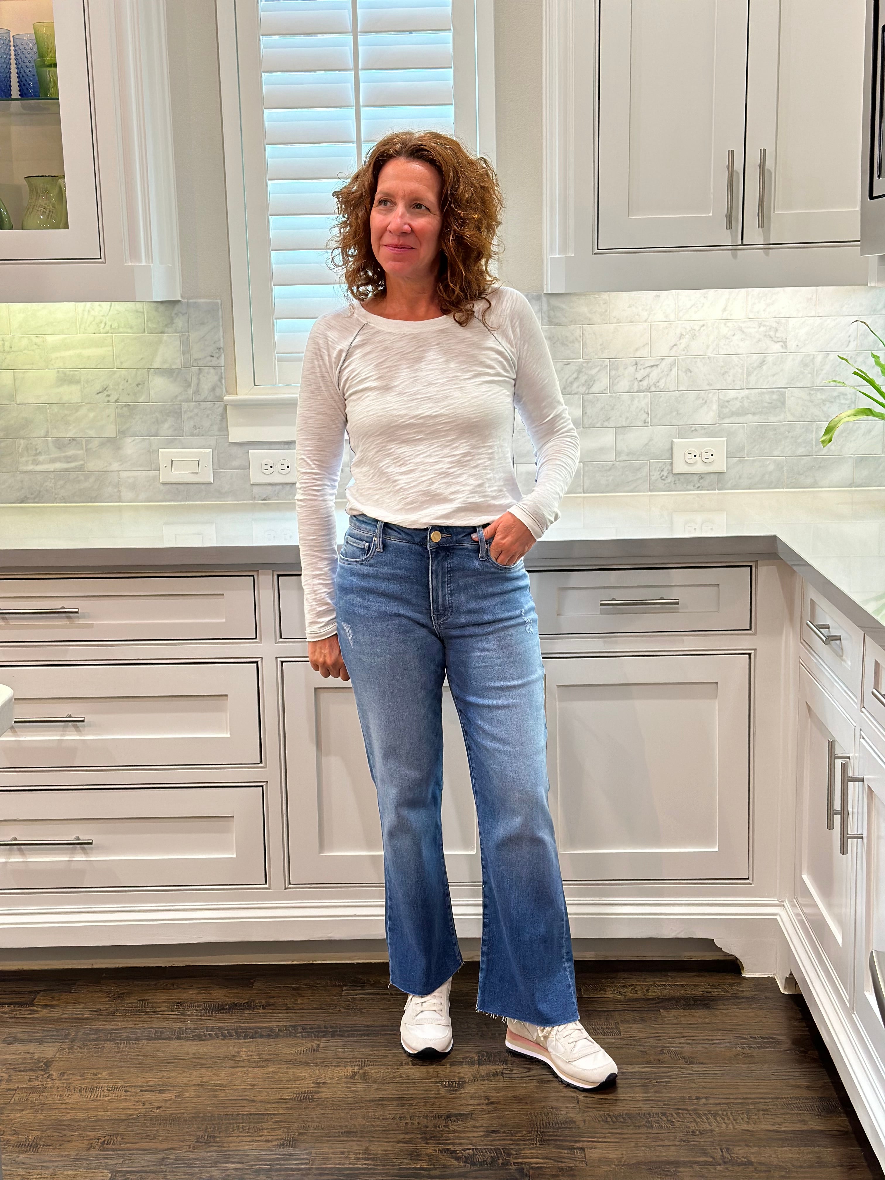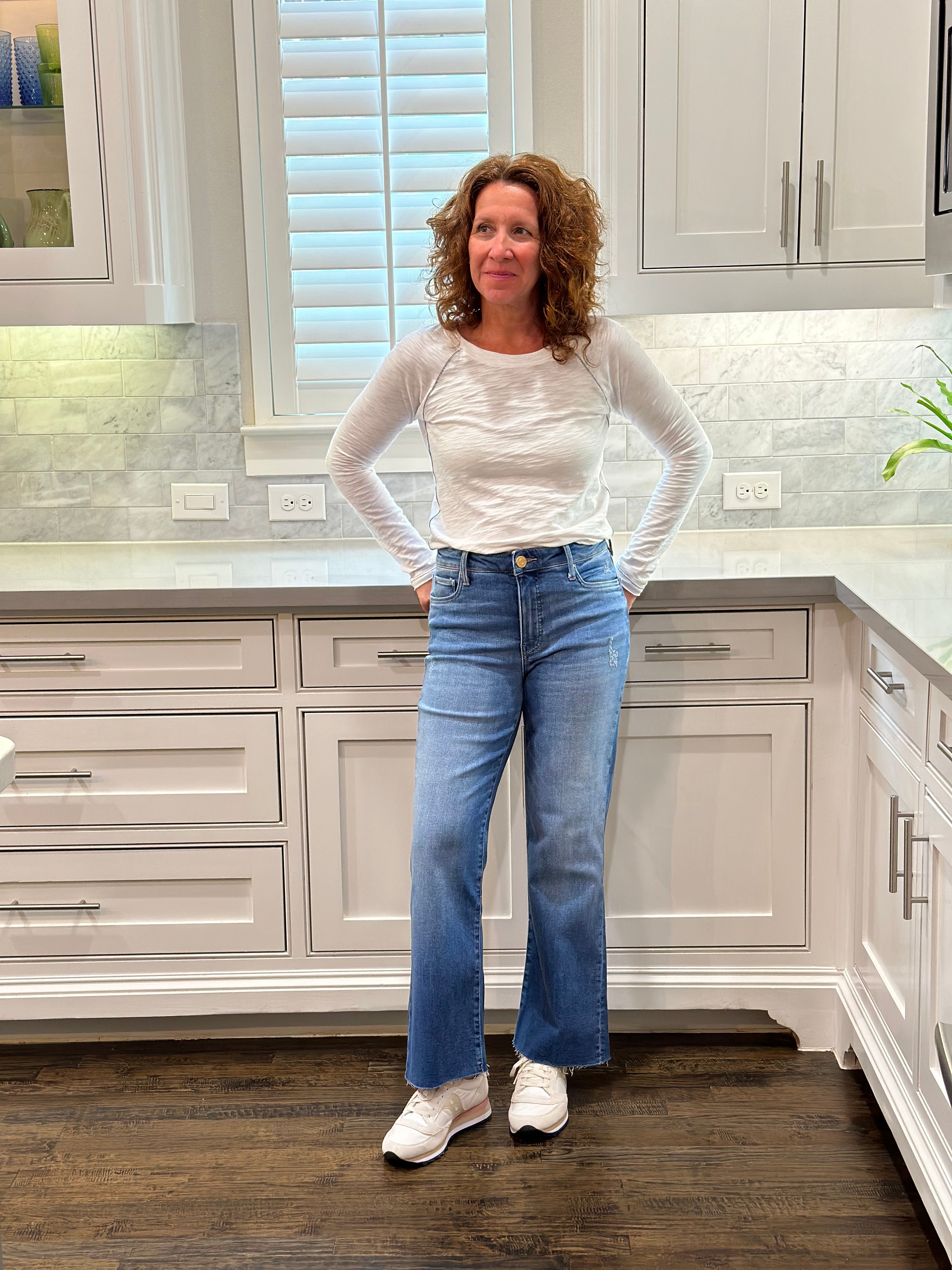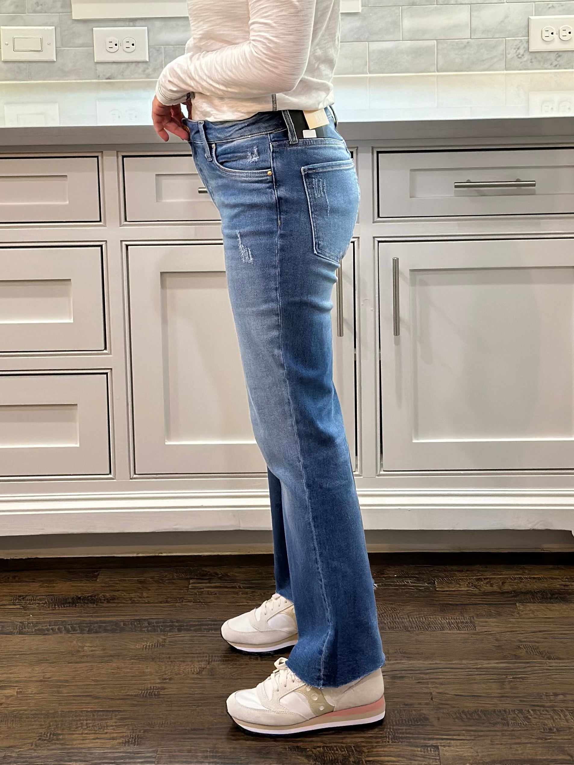 Kut from the Kloth Kelsey Mid Rise Ankle Flare in Perceptual Wash