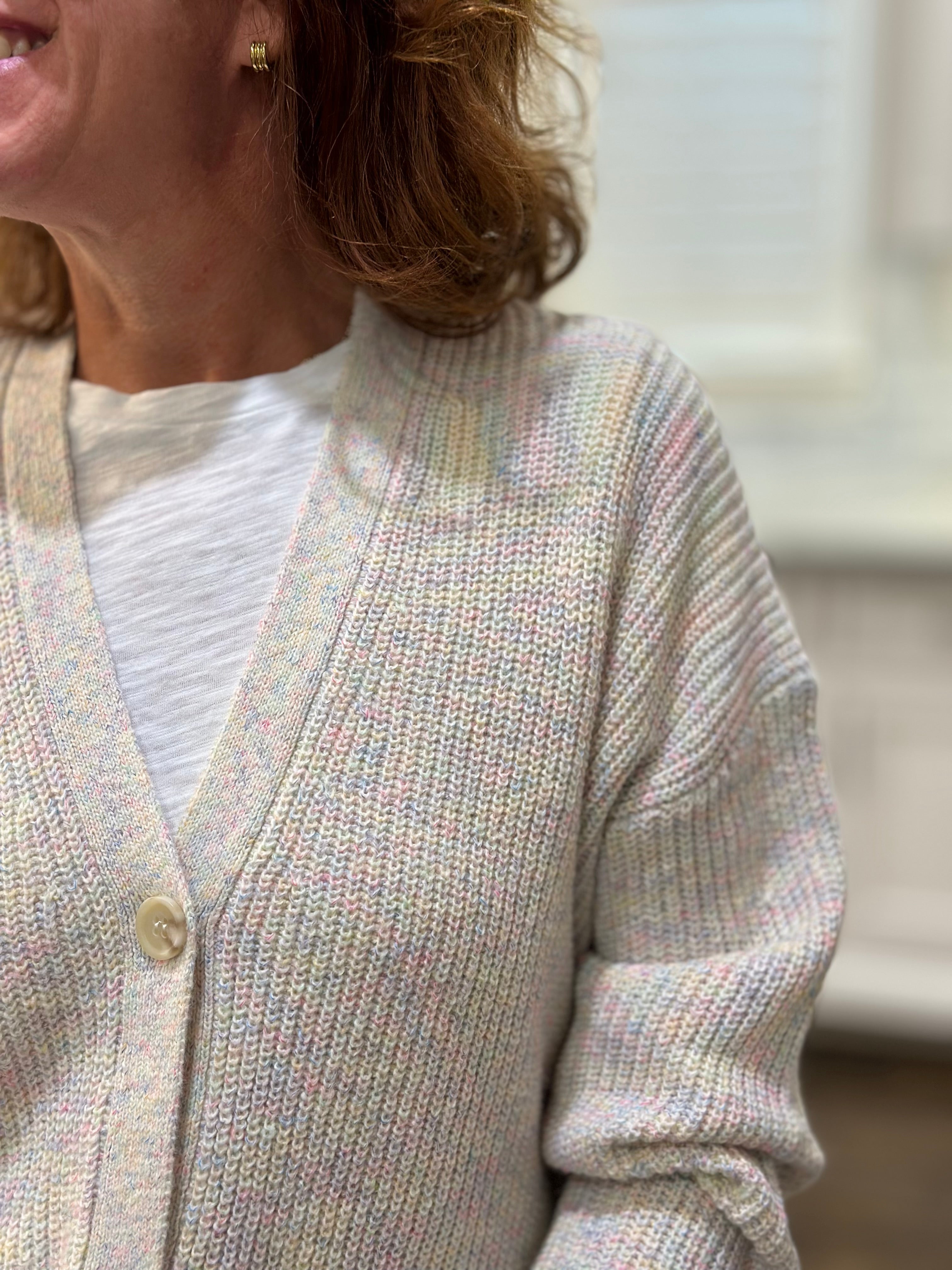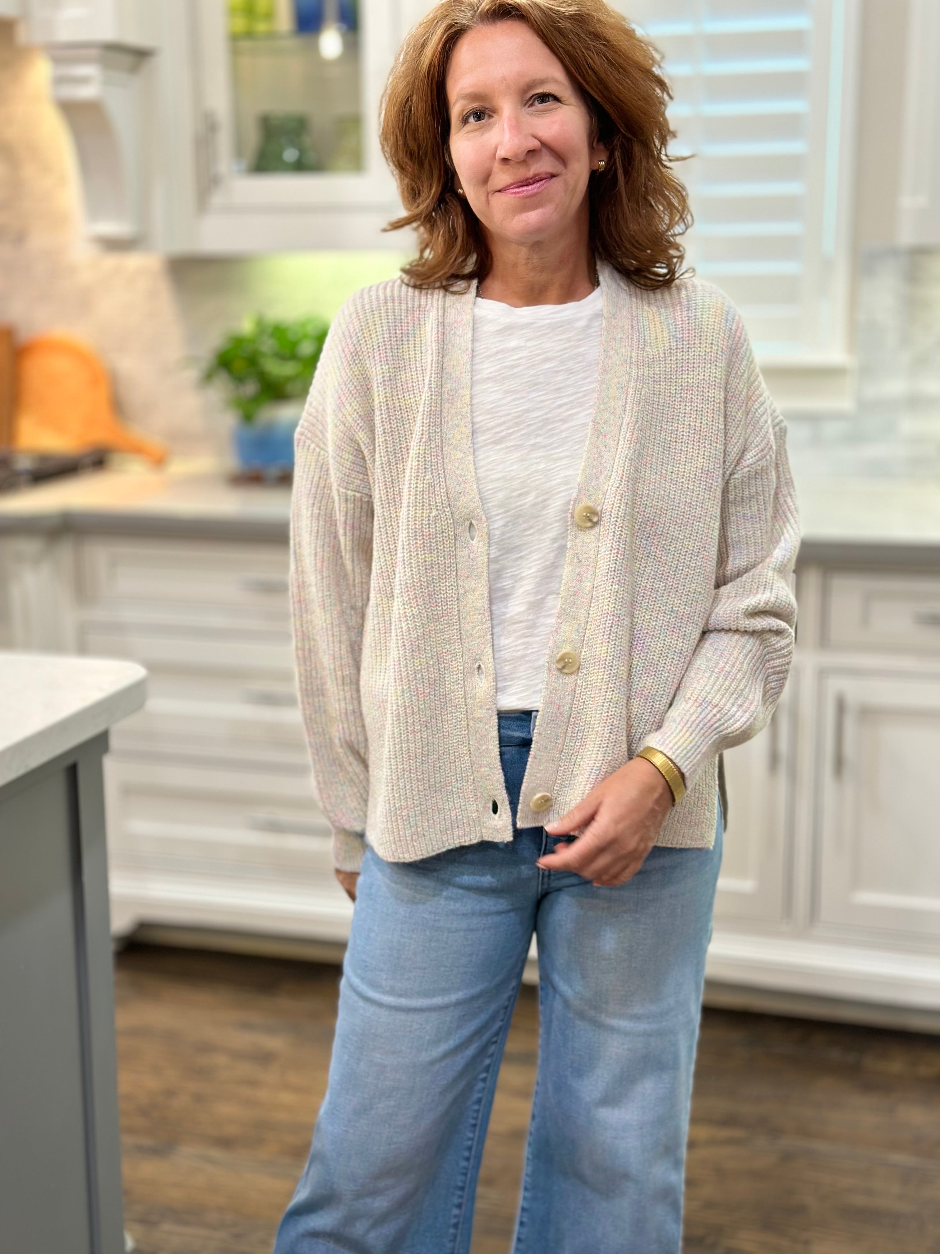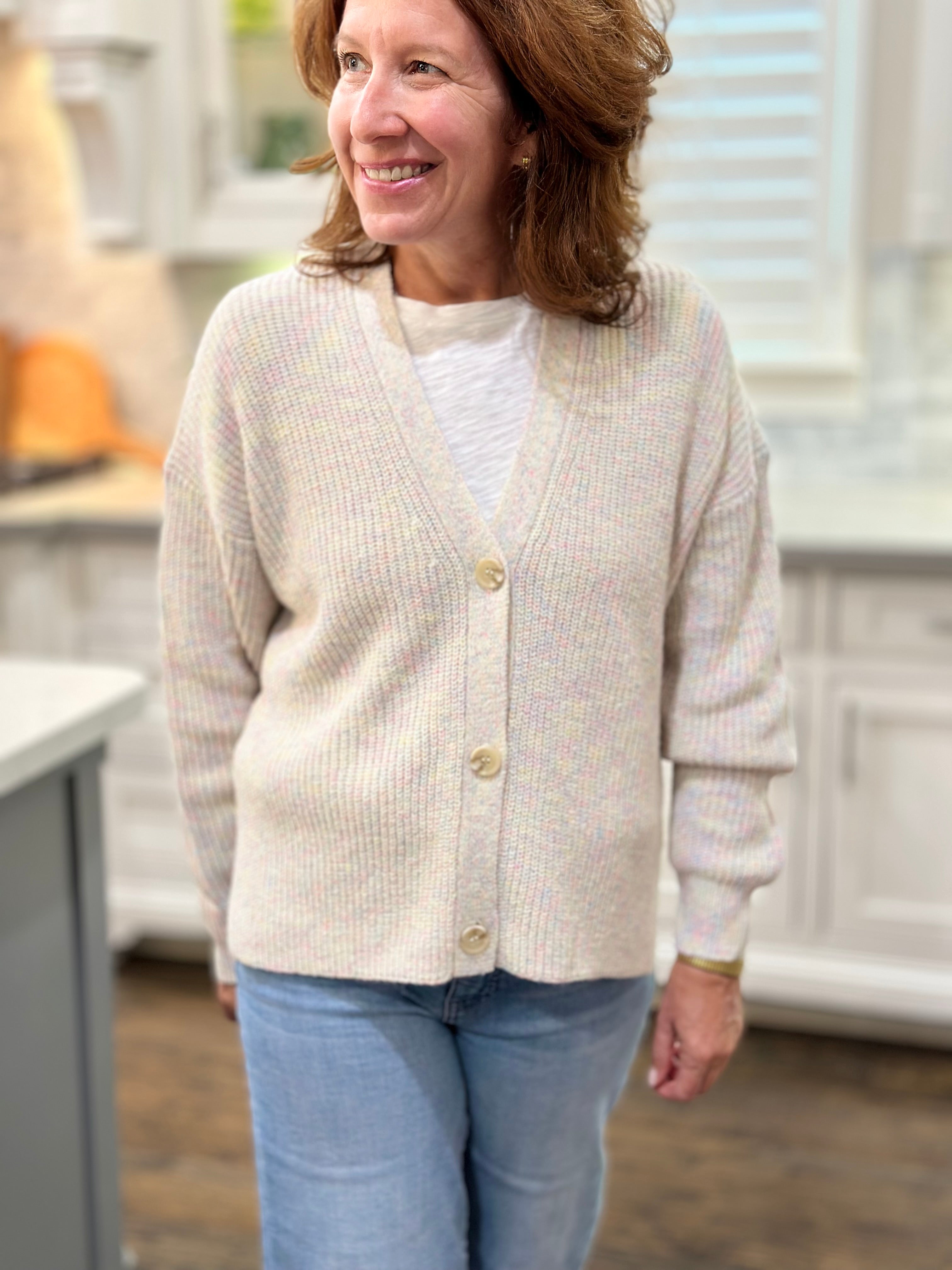 Michael Stars V Neck Cardigan Sweater in Chalk Confetti
