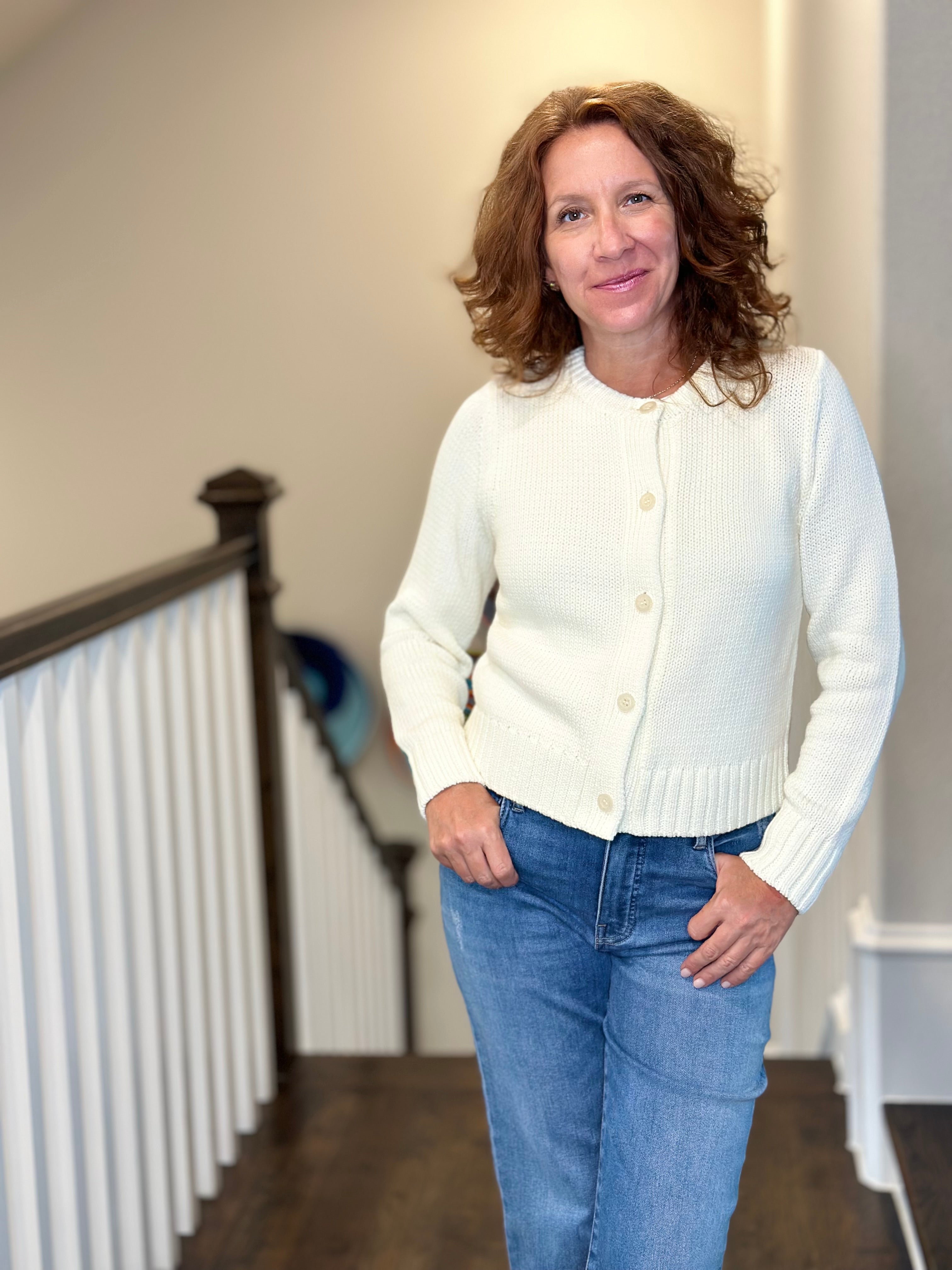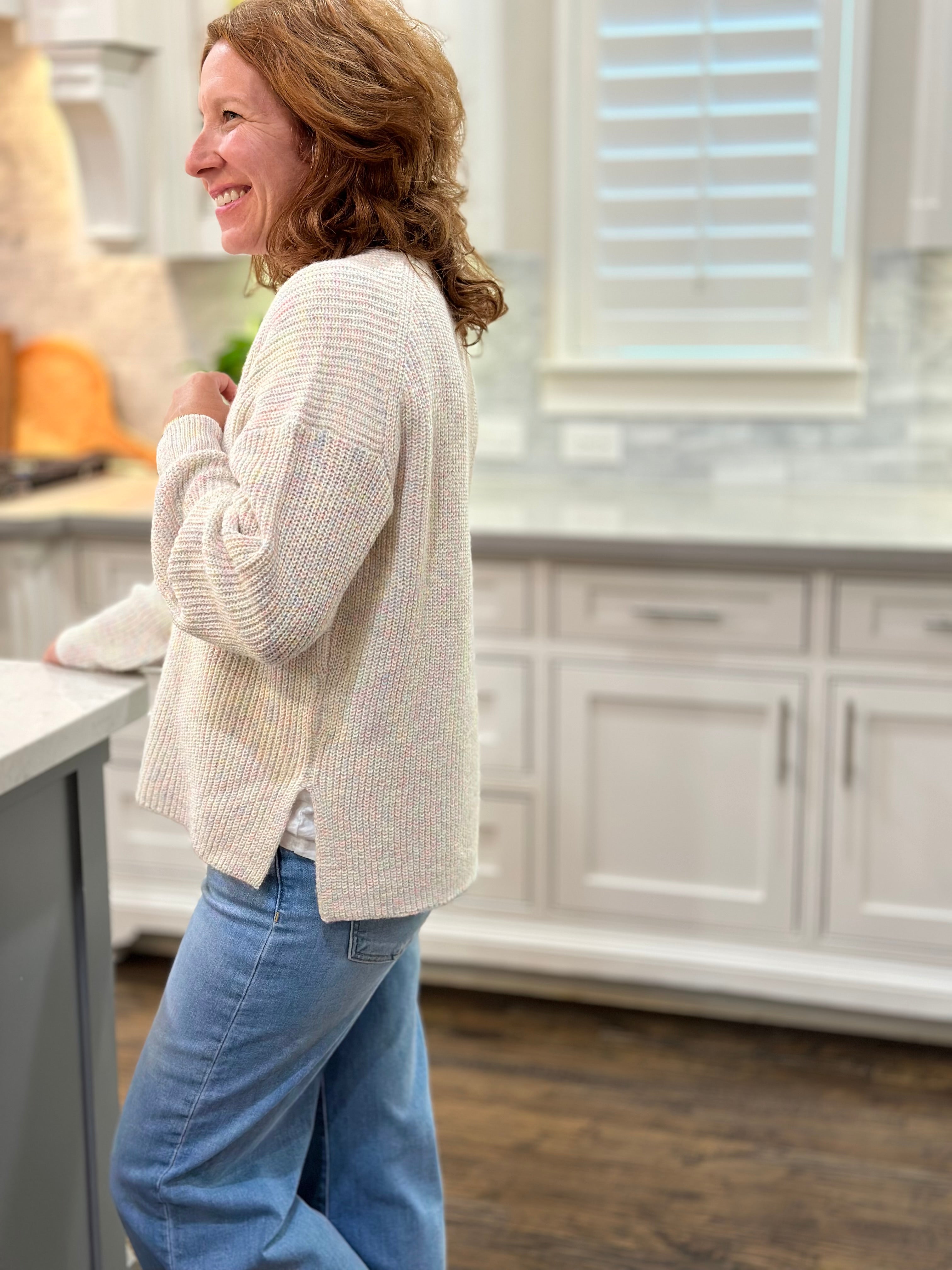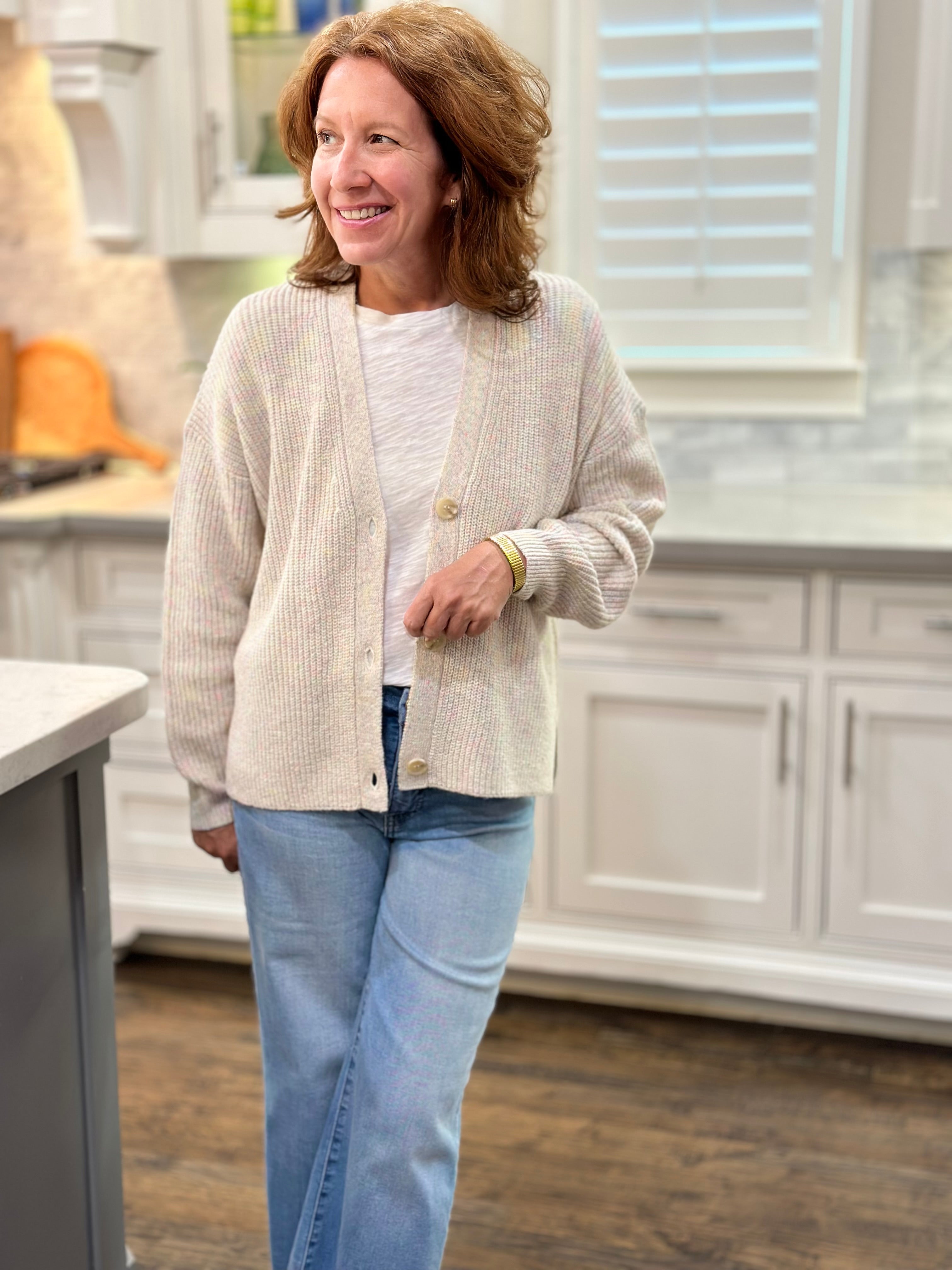 Michael Stars V Neck Cardigan Sweater in Chalk Confetti