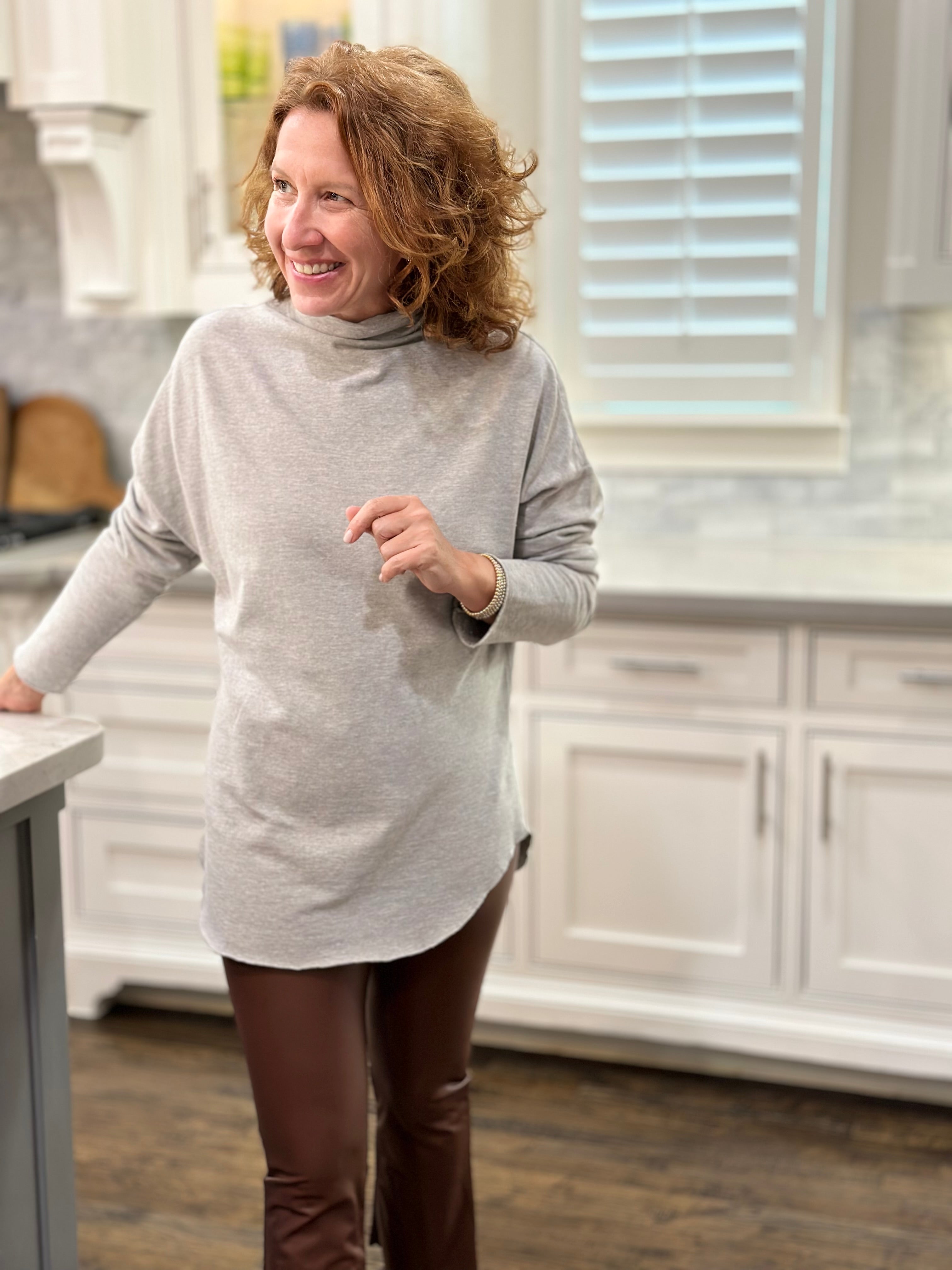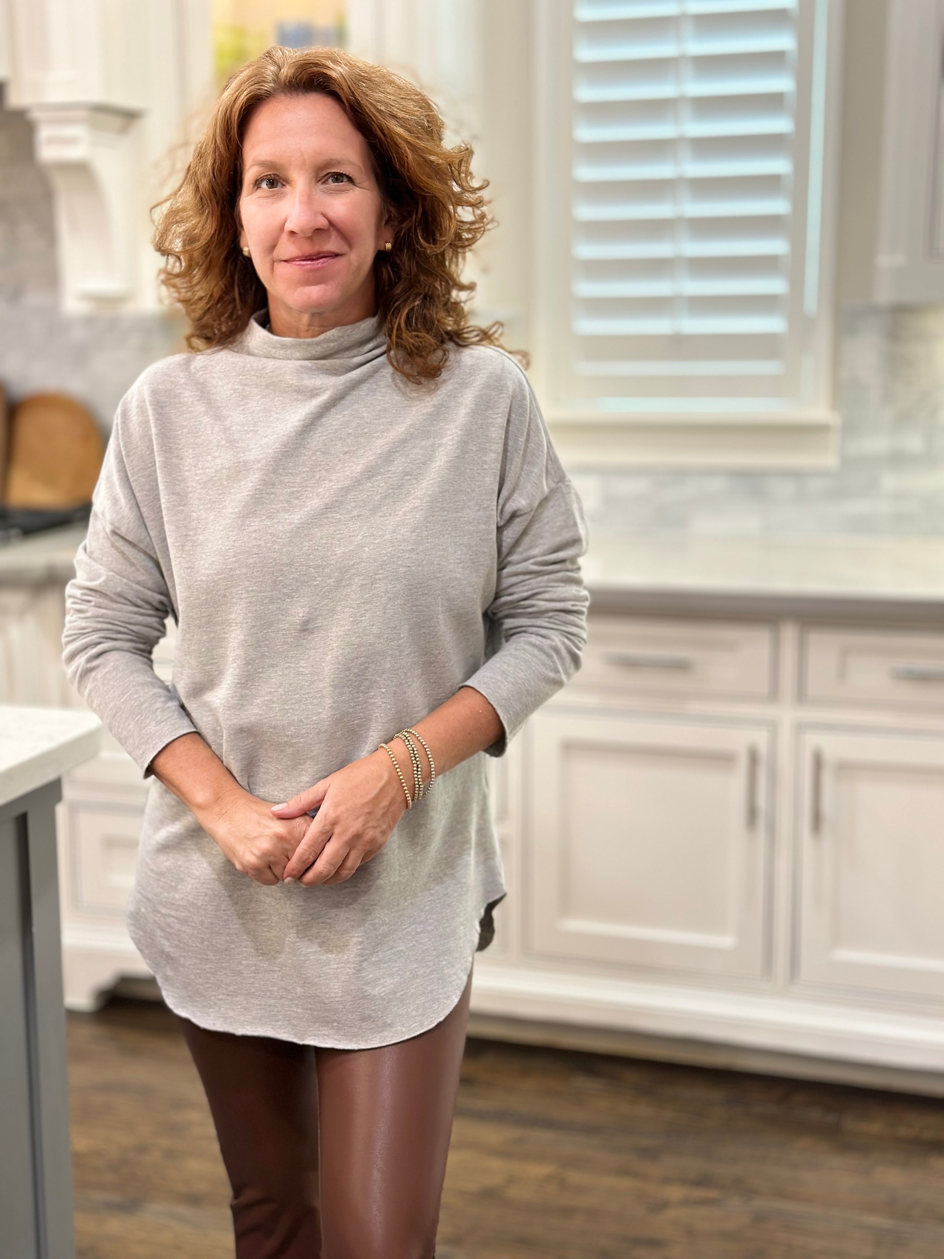 Michael Stars Laurel Mock Neck Top in Heather Grey
