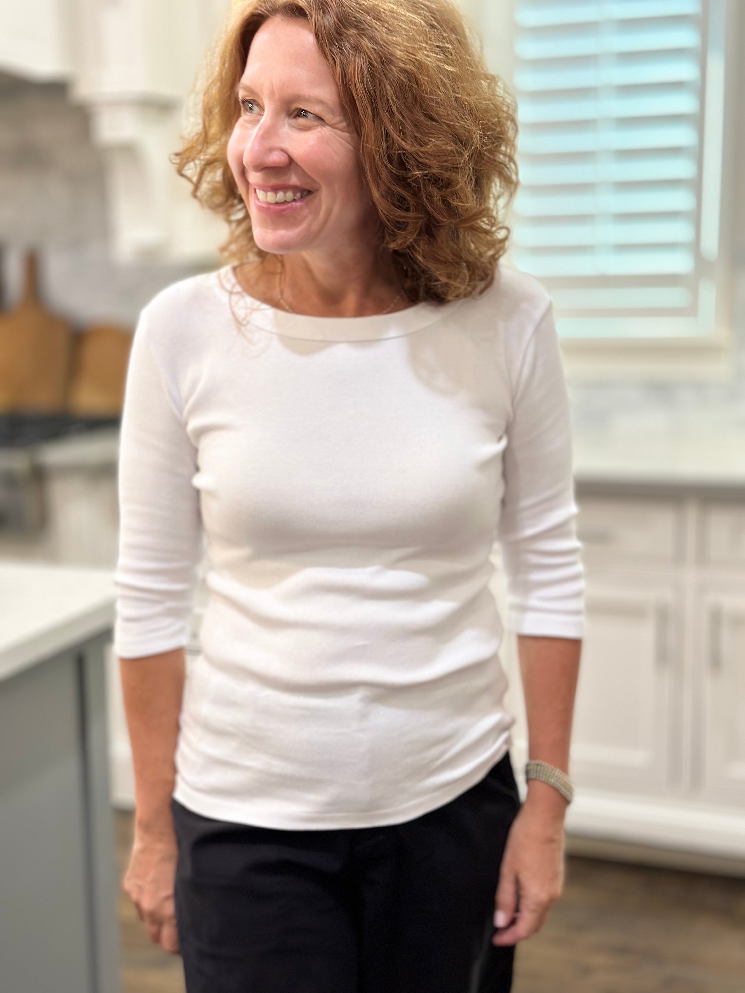 Michael Stars Dot 3/4 Sleeve Tee in White