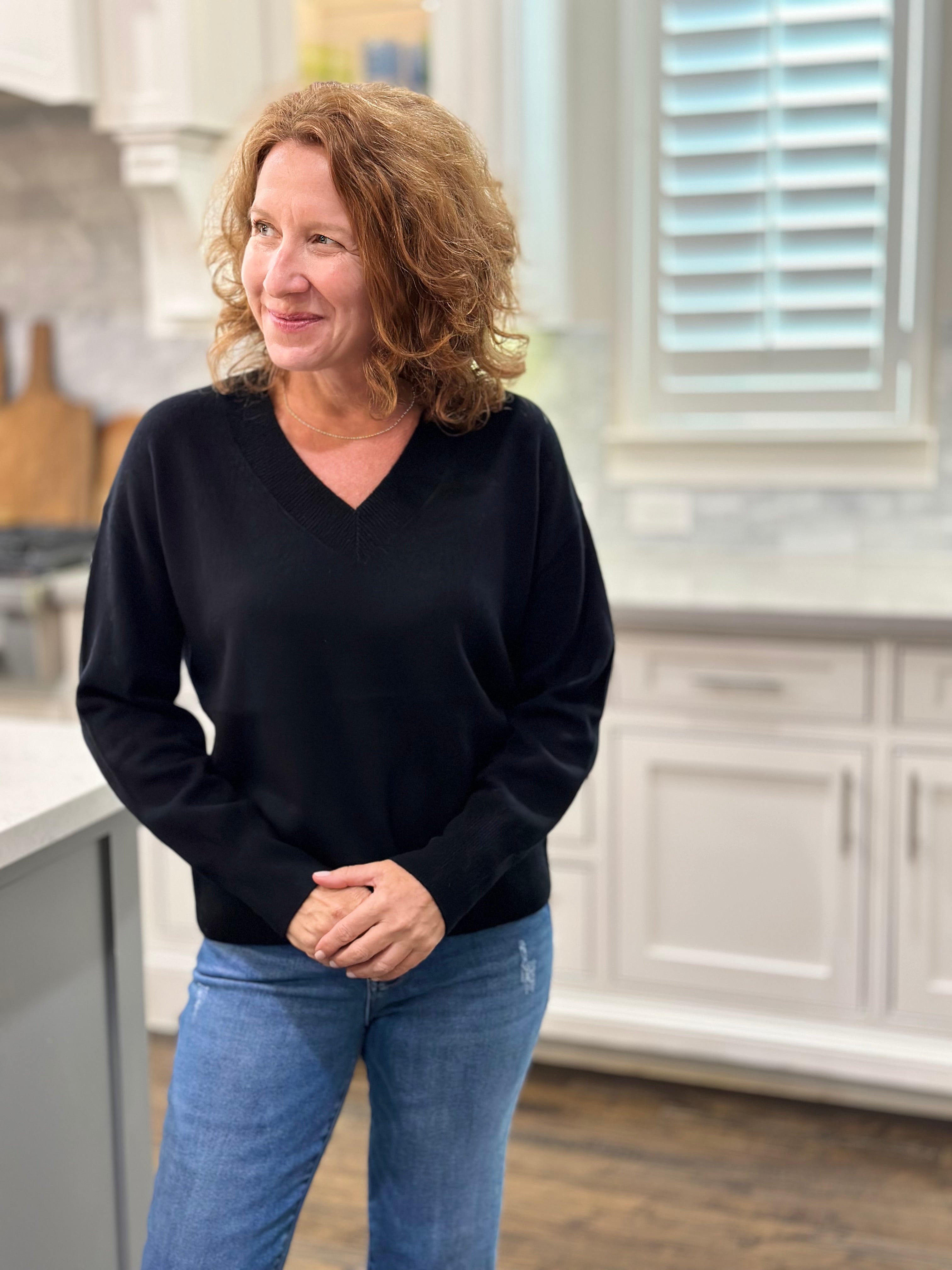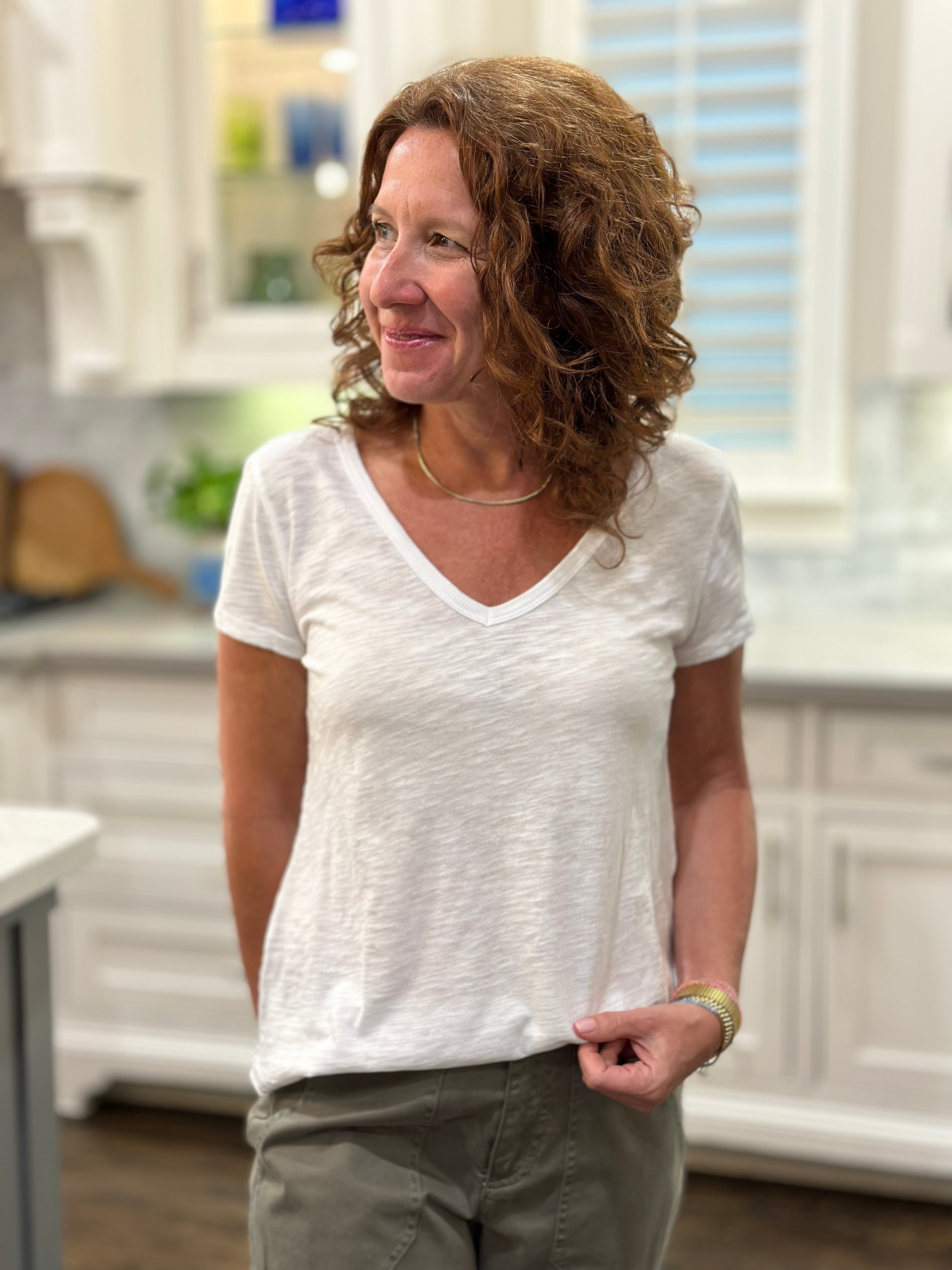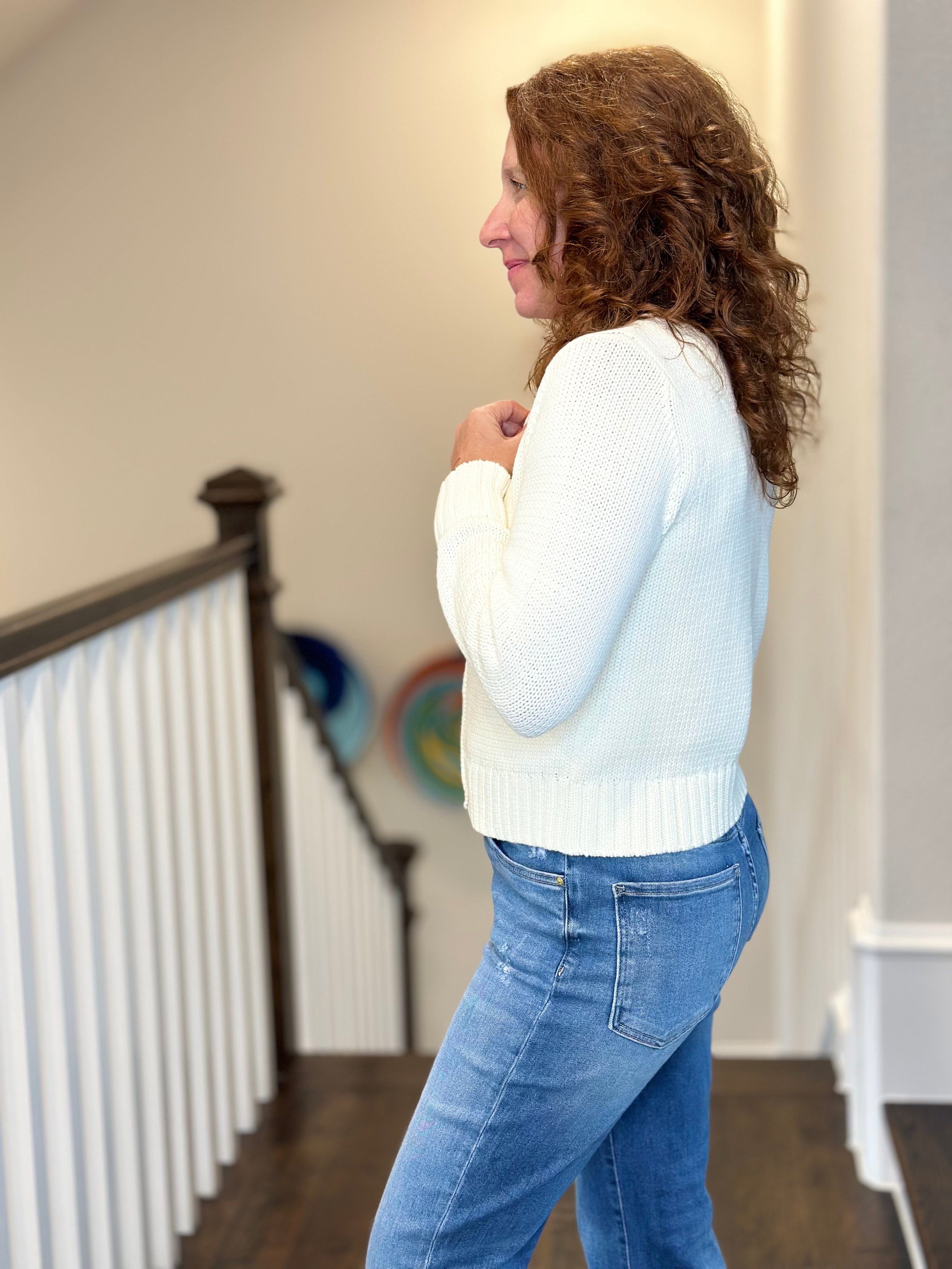 Michael Stars Kelsie V-Neck Sweater in Chalk