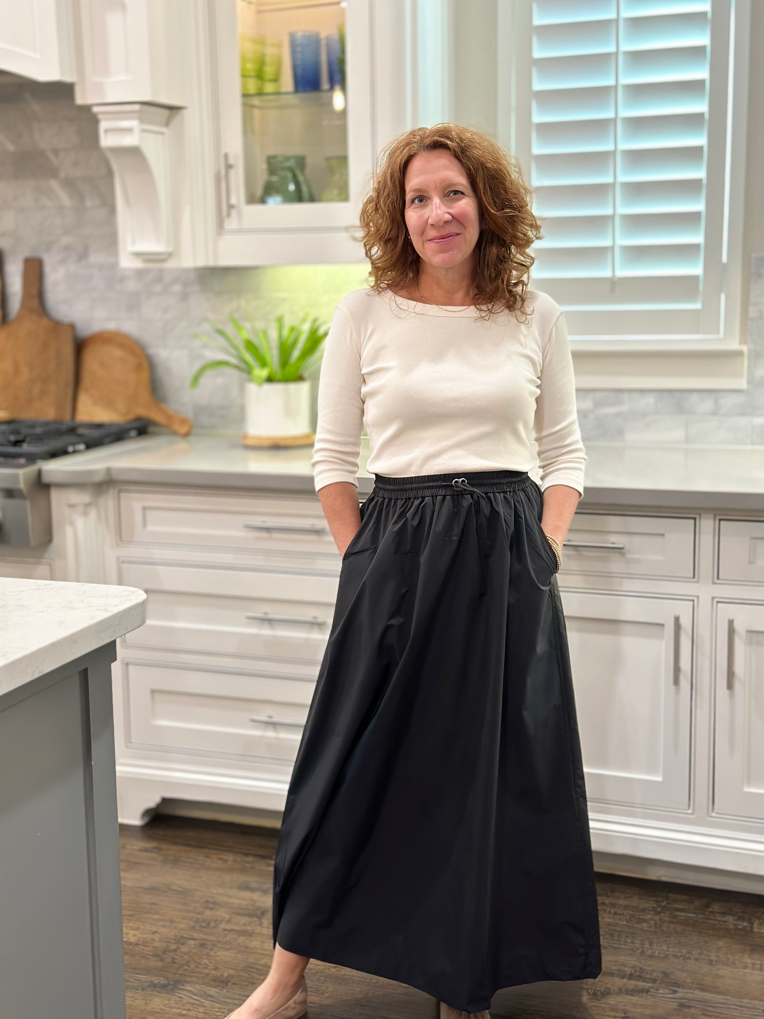 Lilla P - Nylon Maxi Skirt in Jet Back