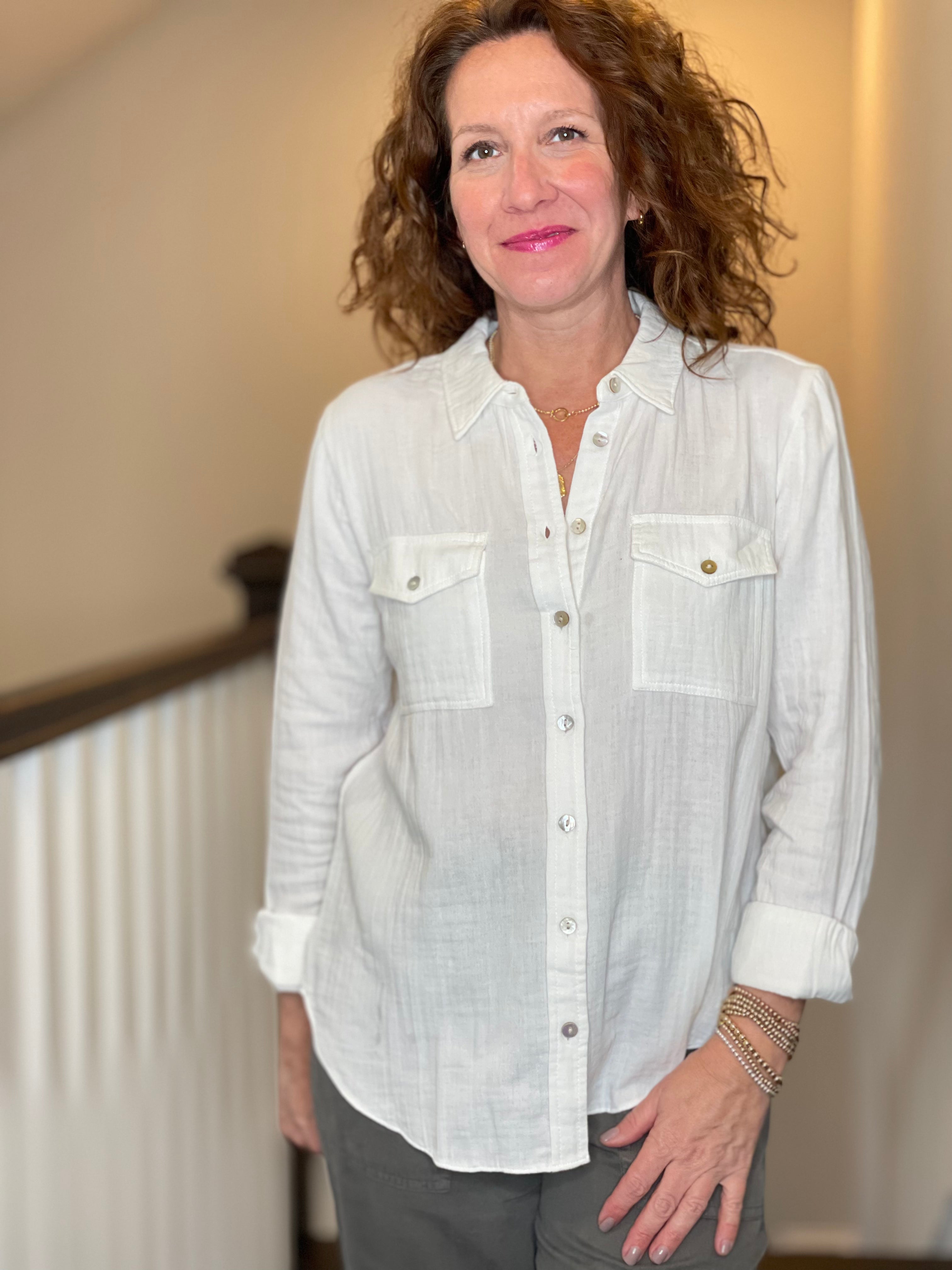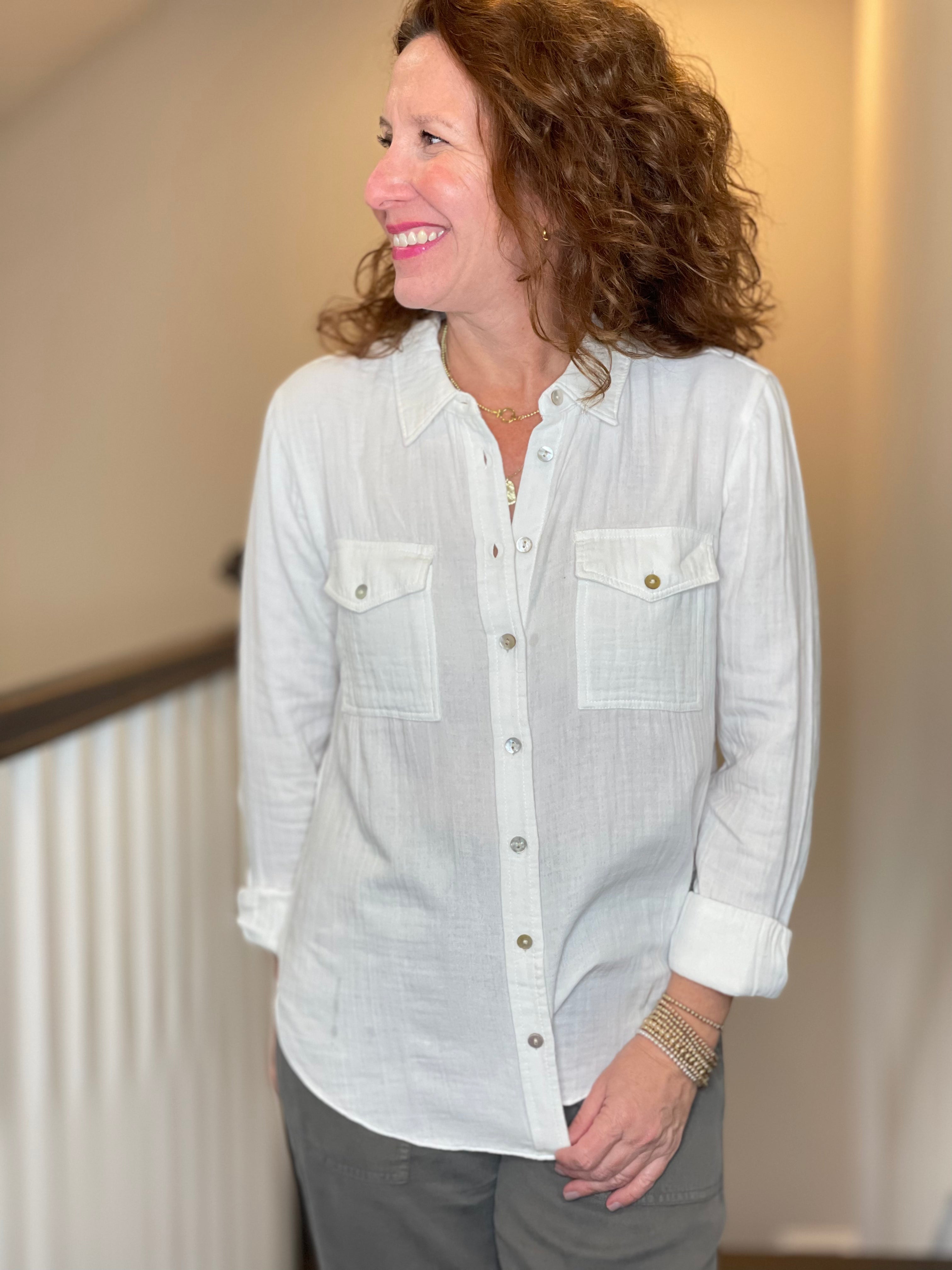 Faherty Dream Cotton Gauze Indio Shirt in White