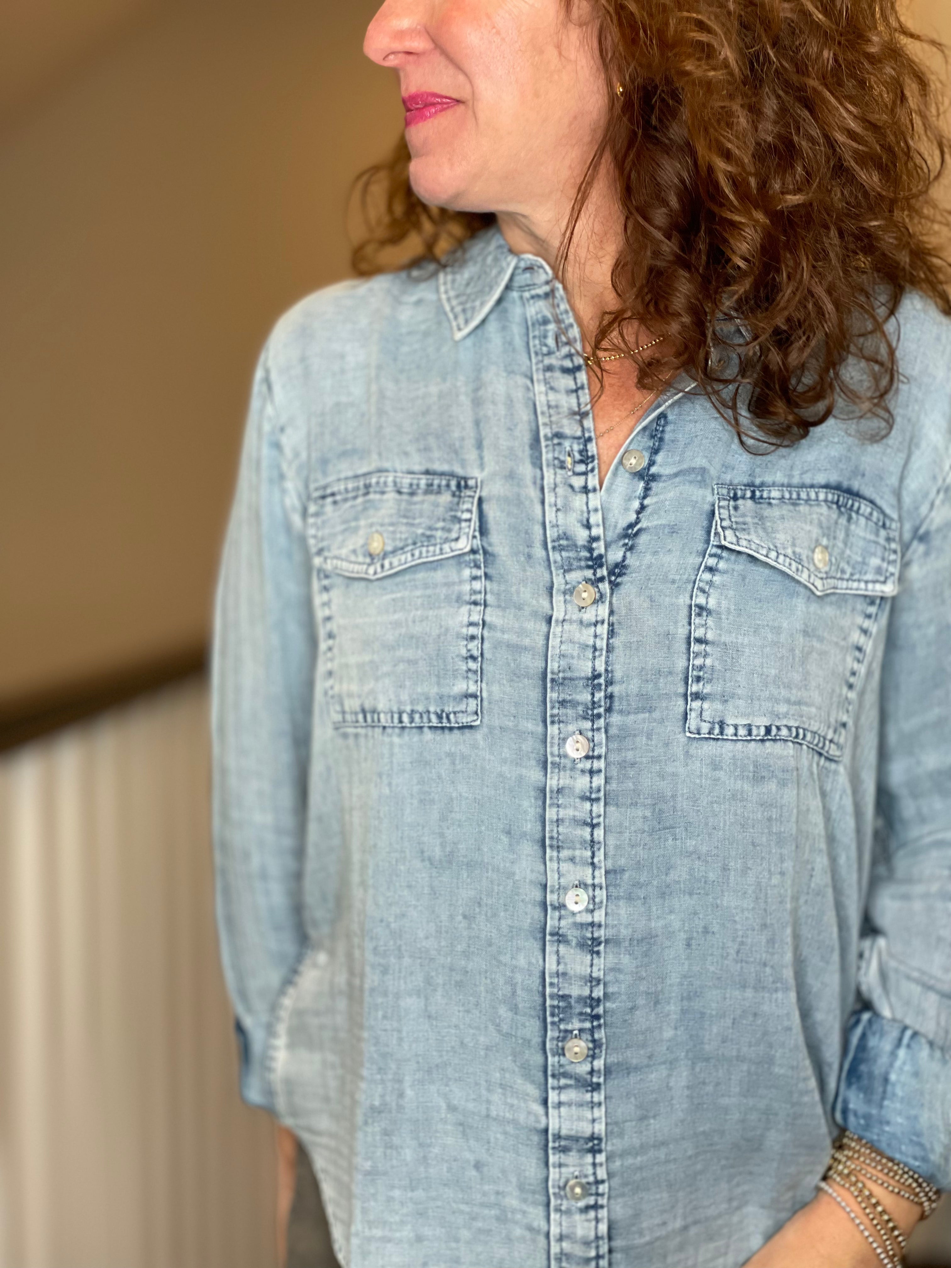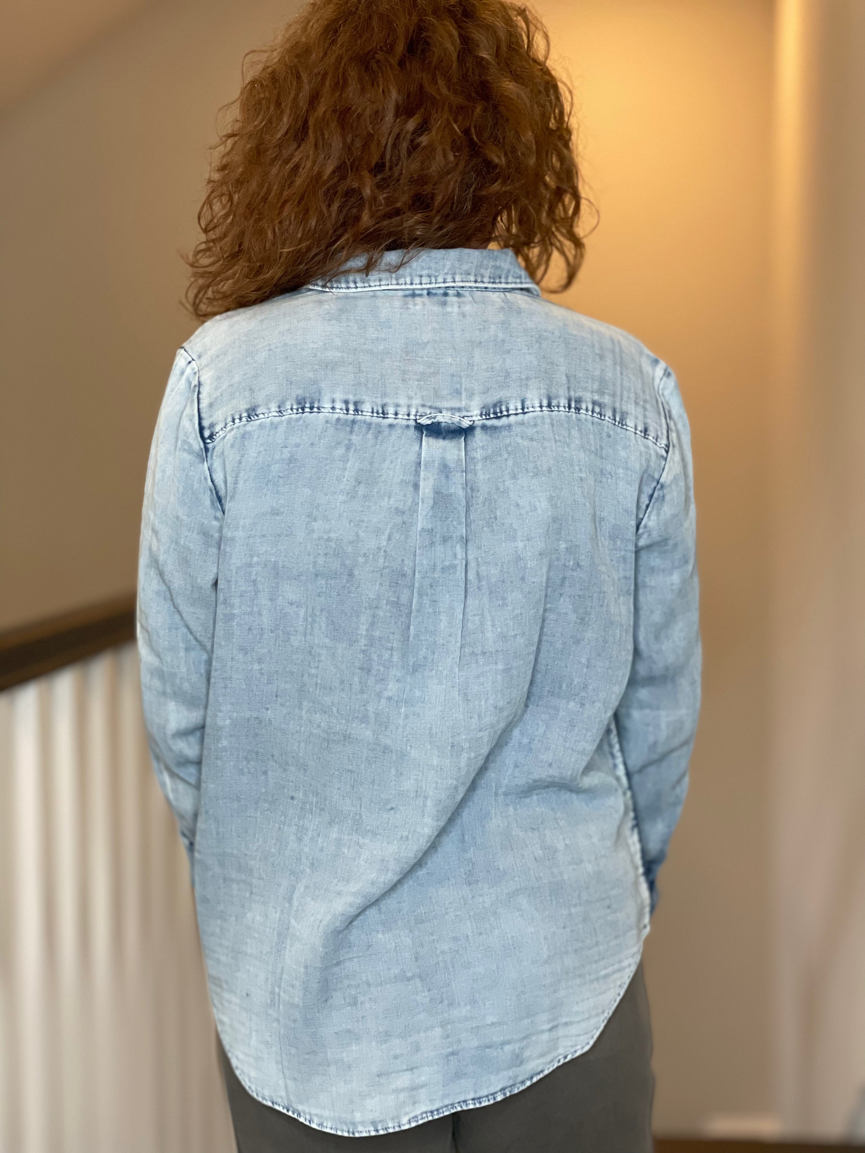 Faherty Dream Cotton Gauze Indio Shirt in Light Indigo Wash