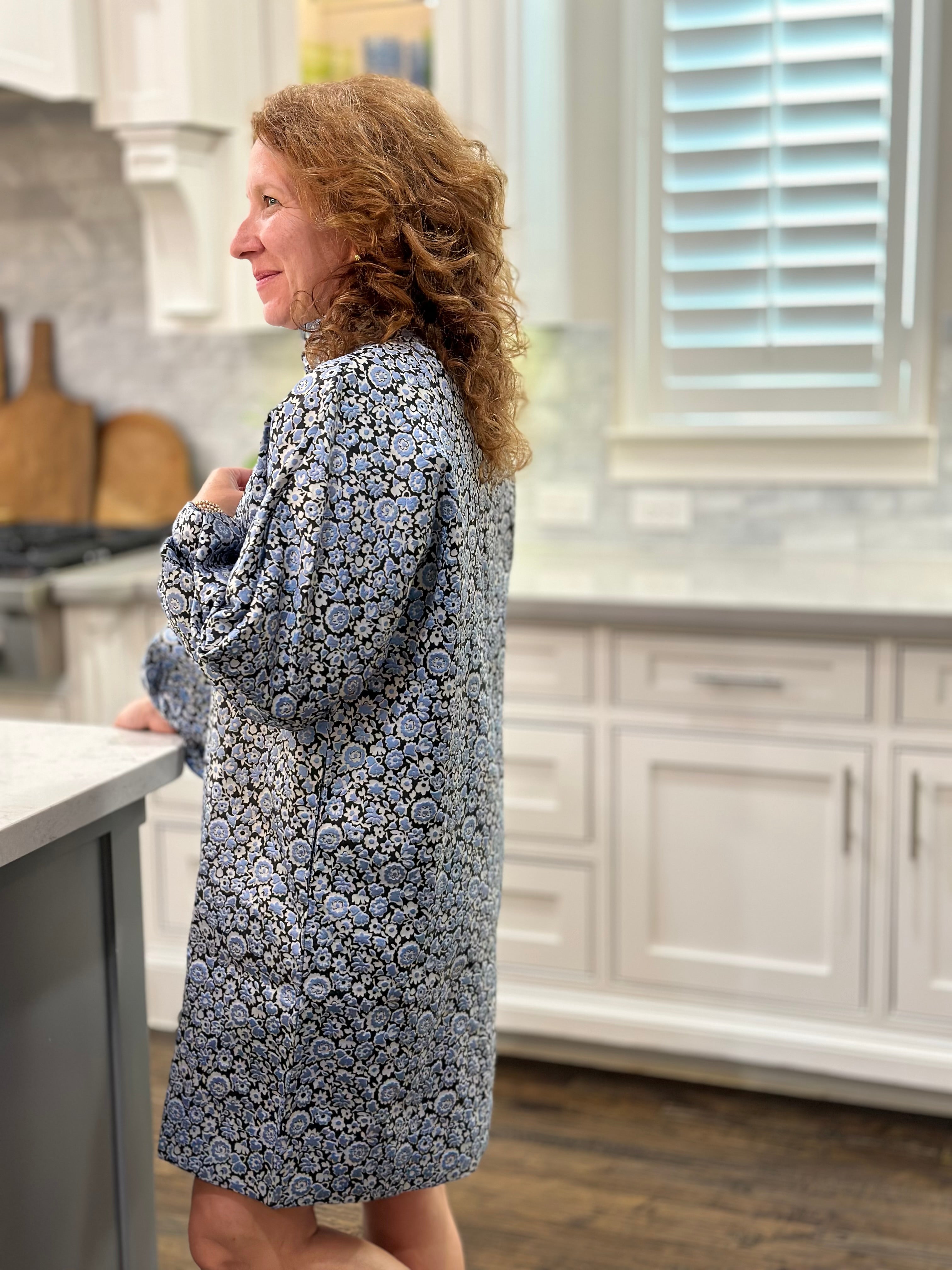 Caryn Lawn Betsy Collar Jacquard Floral Dress in Powder/Navy