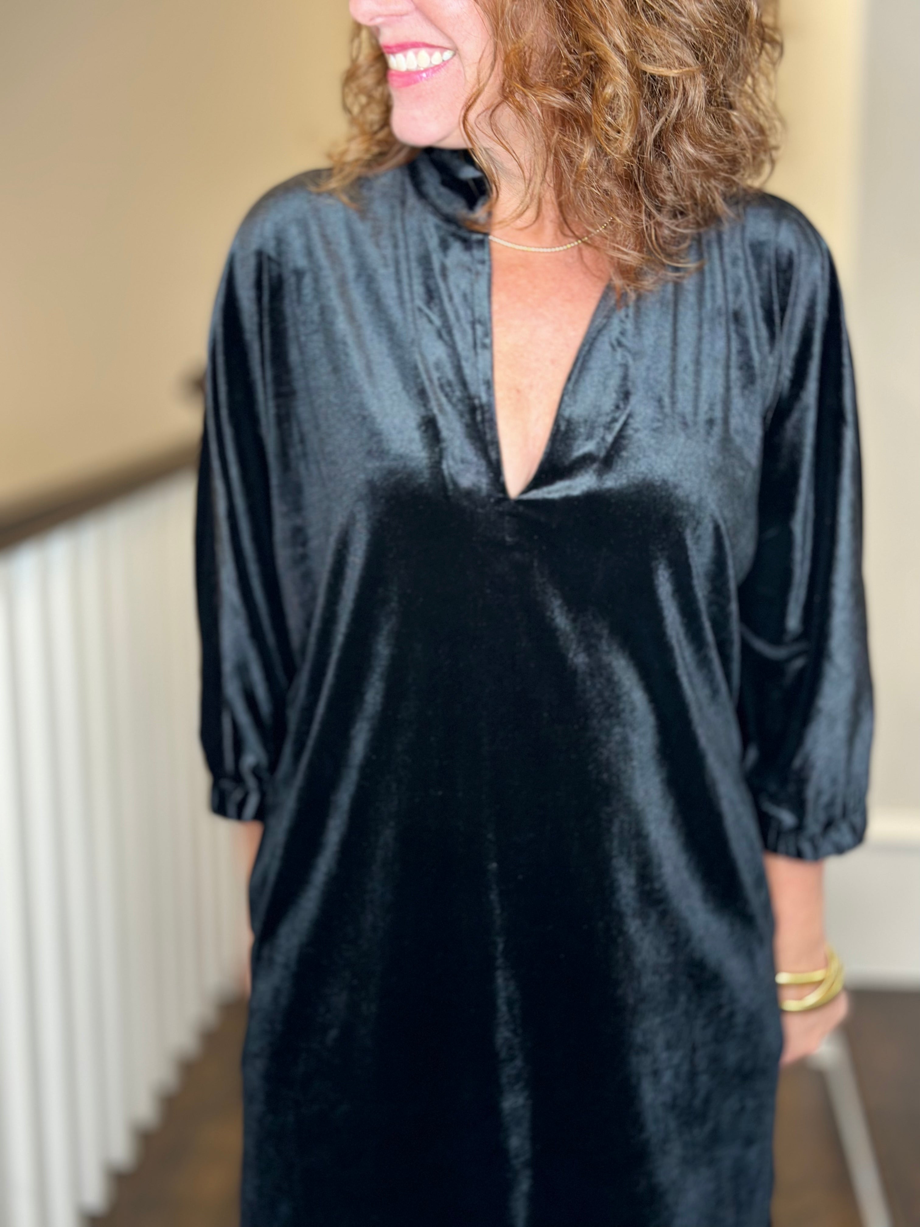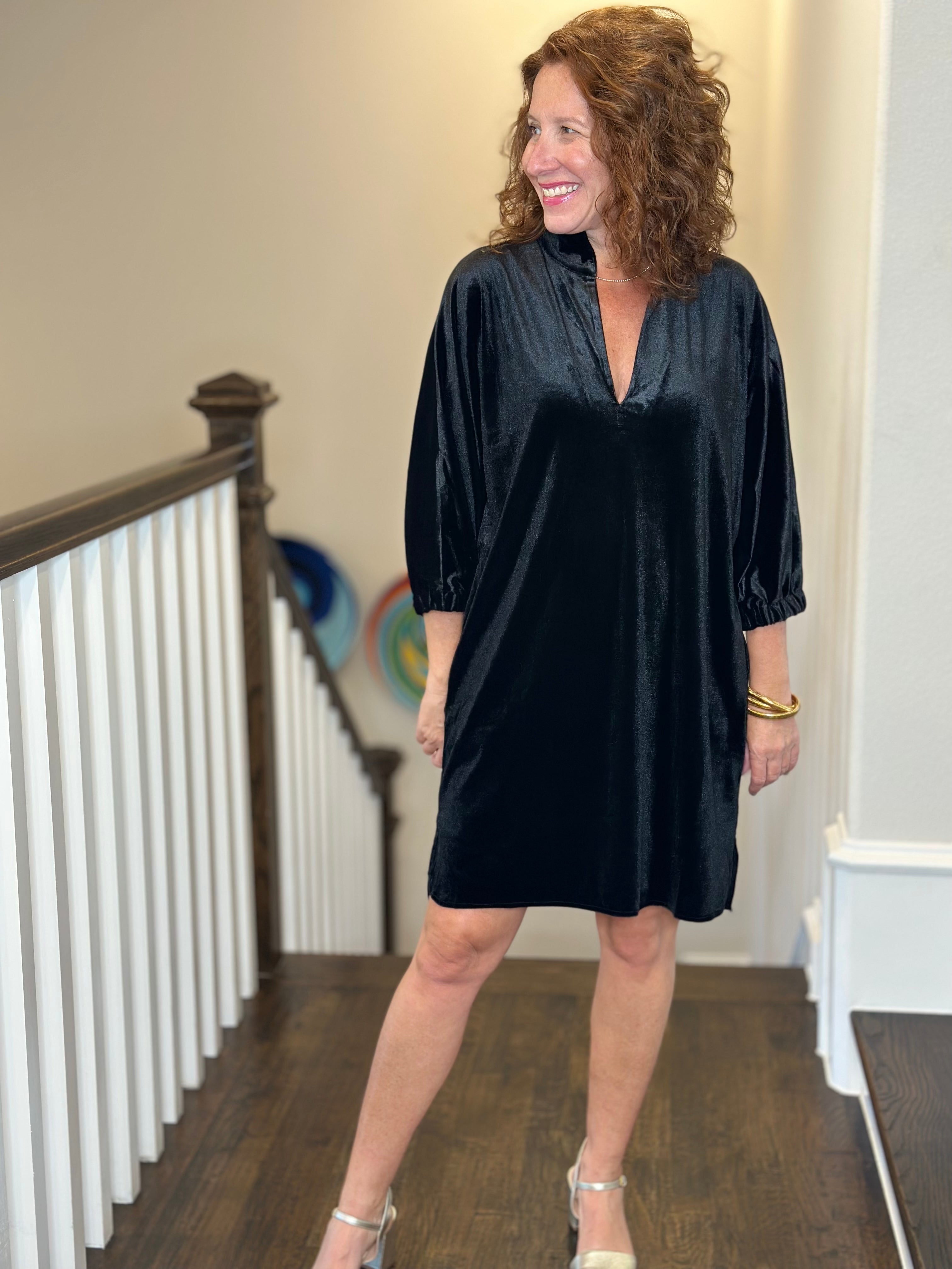 Caryn Lawn Betsy Collar Velvet Dress in Black