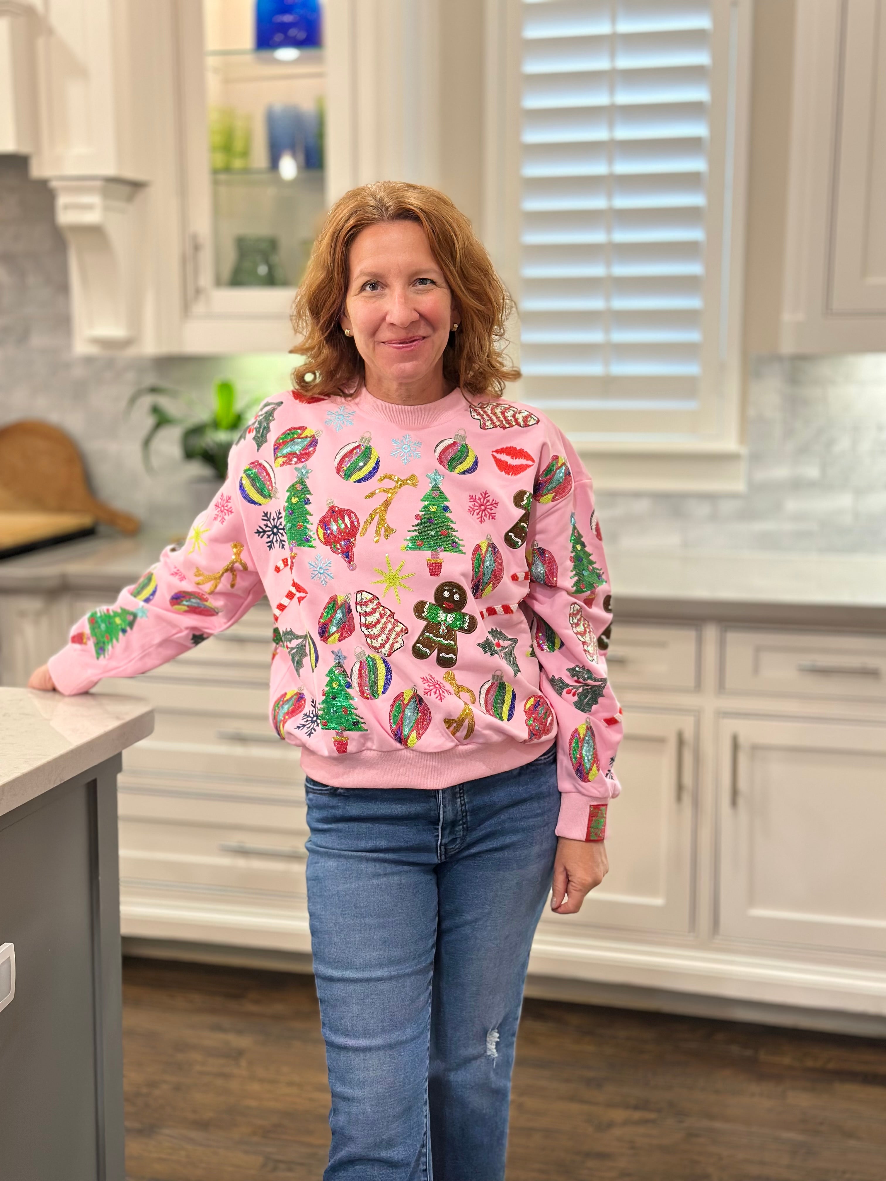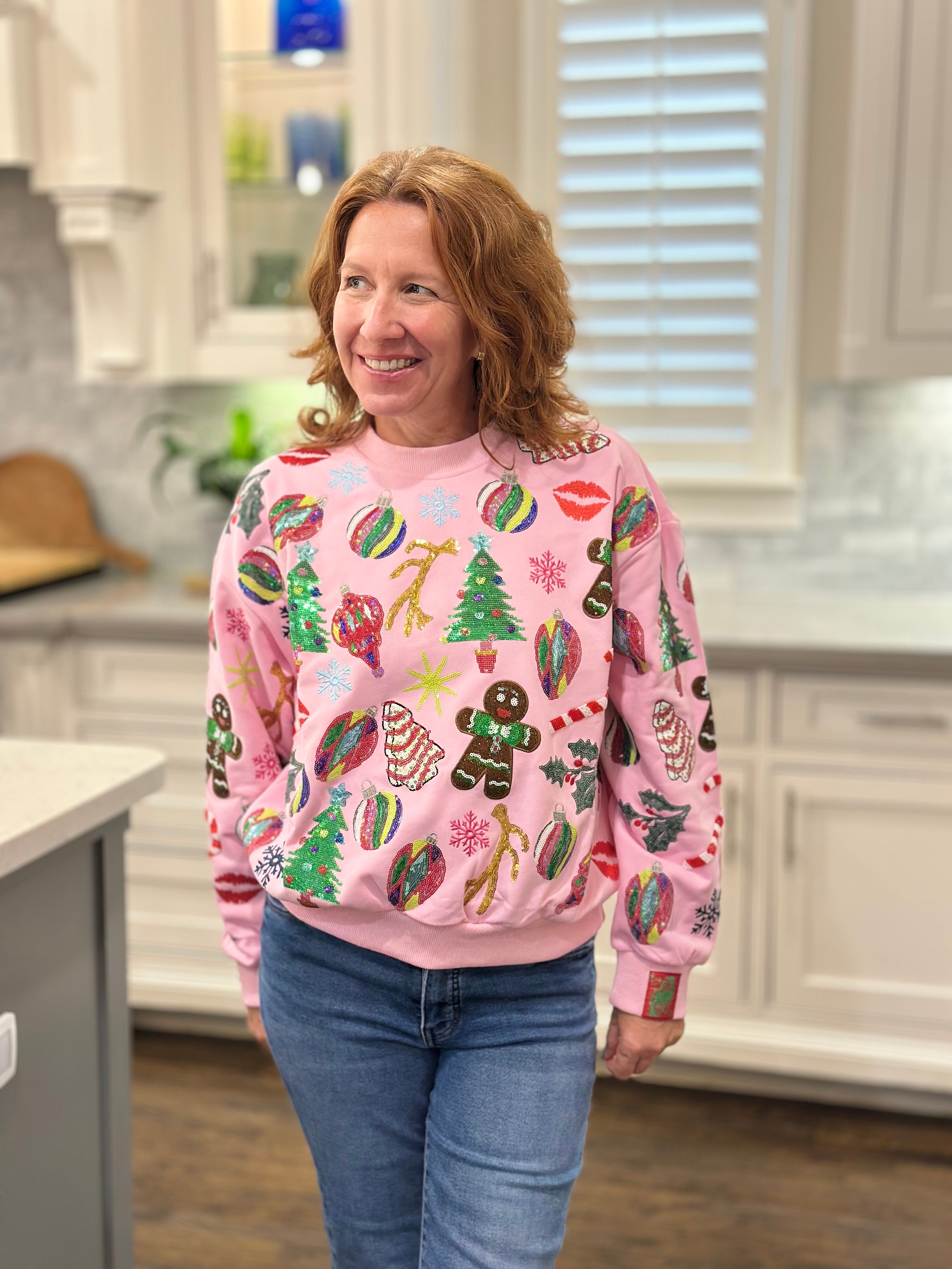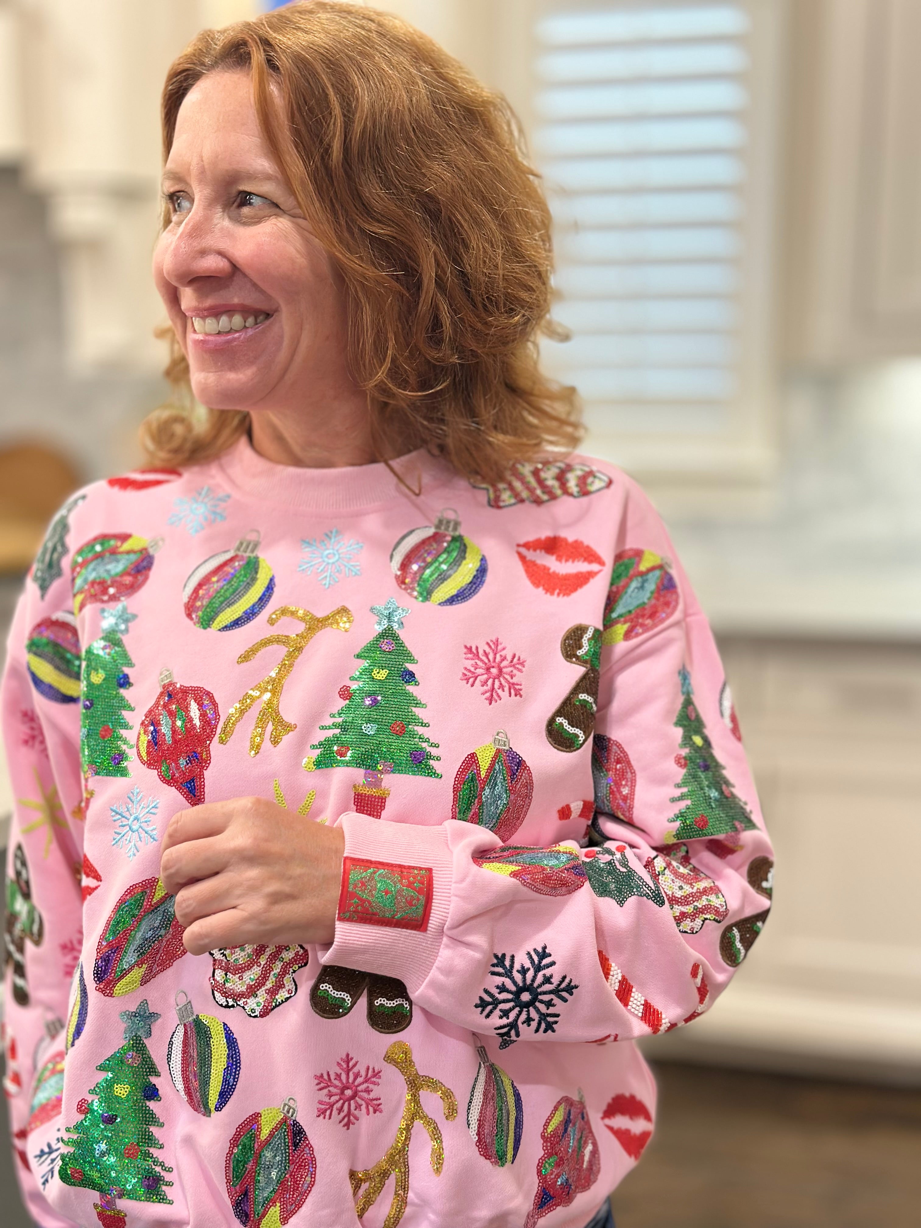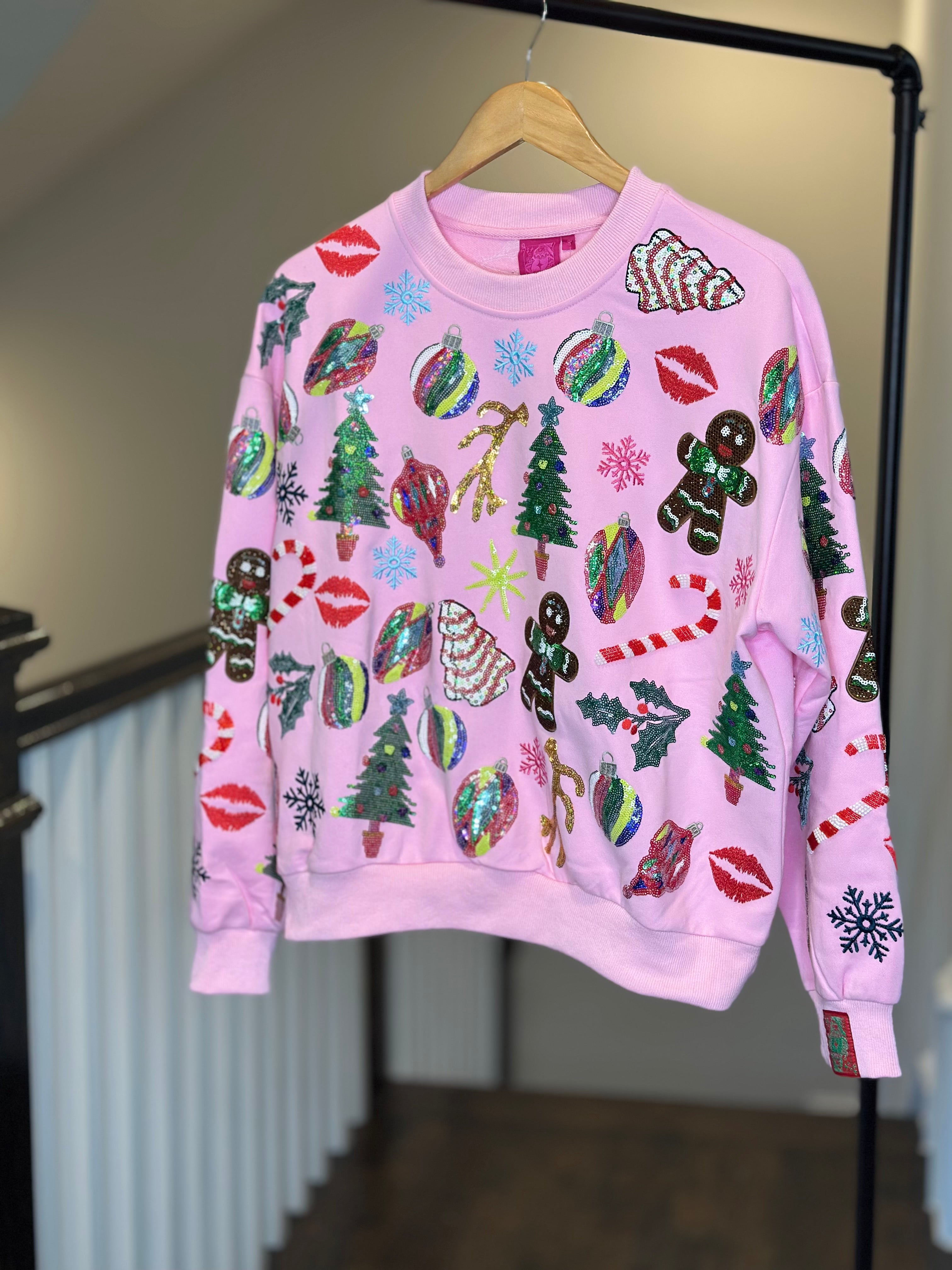 Queen of Sparkles Light Pink Christmas Icons Sweatshirt