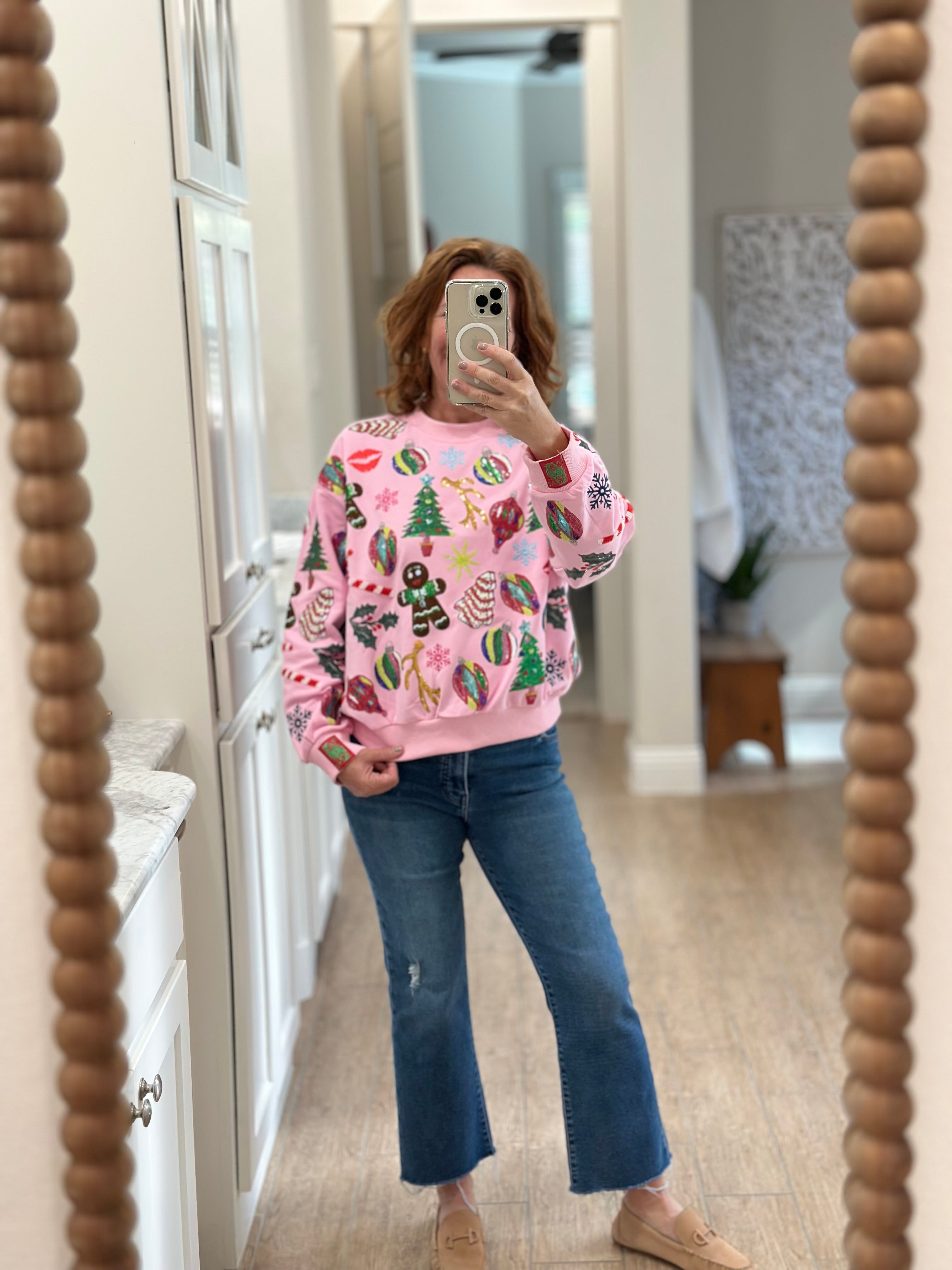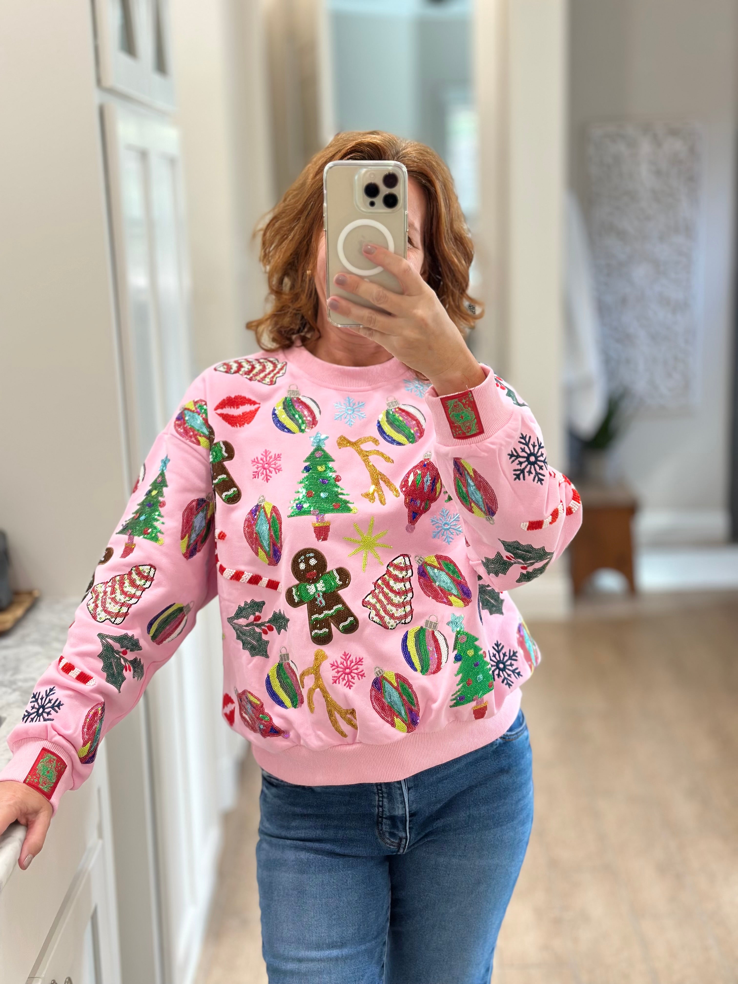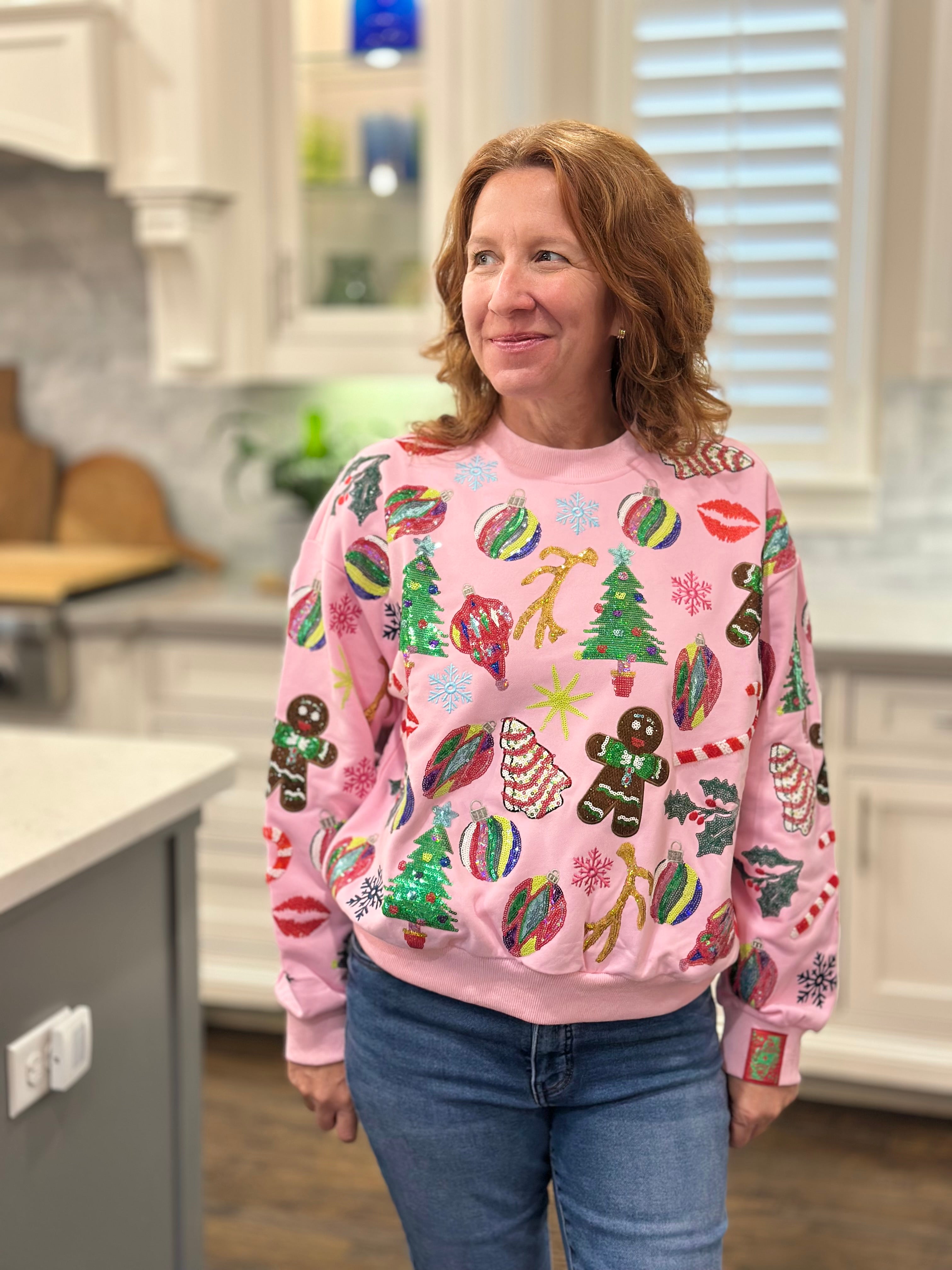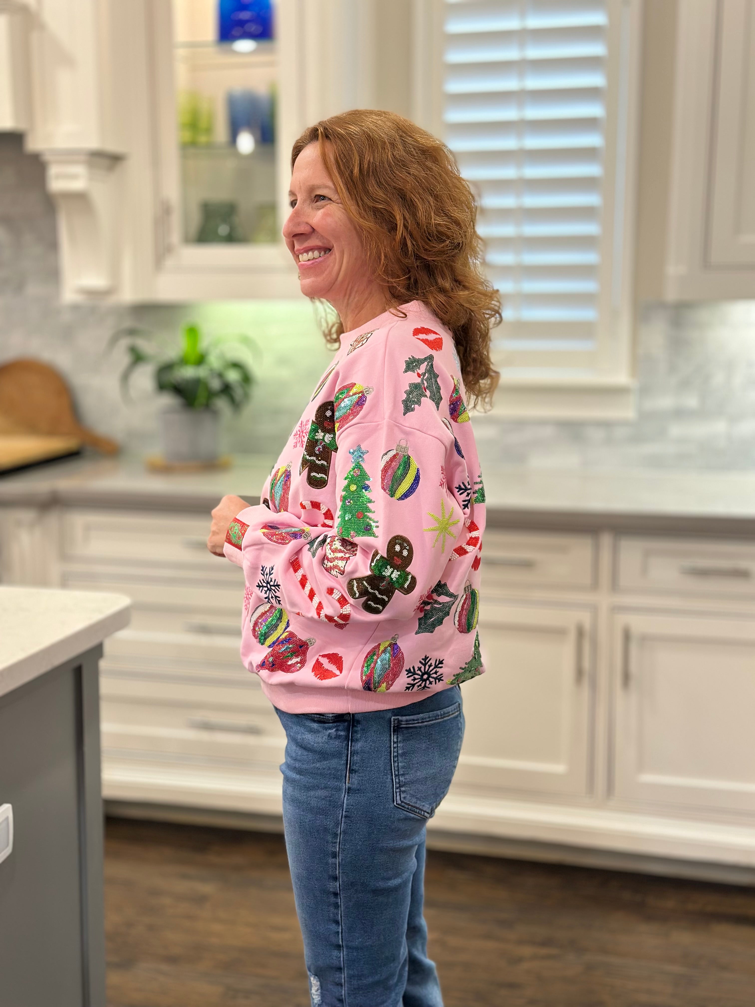 Queen of Sparkles Light Pink Christmas Icons Sweatshirt