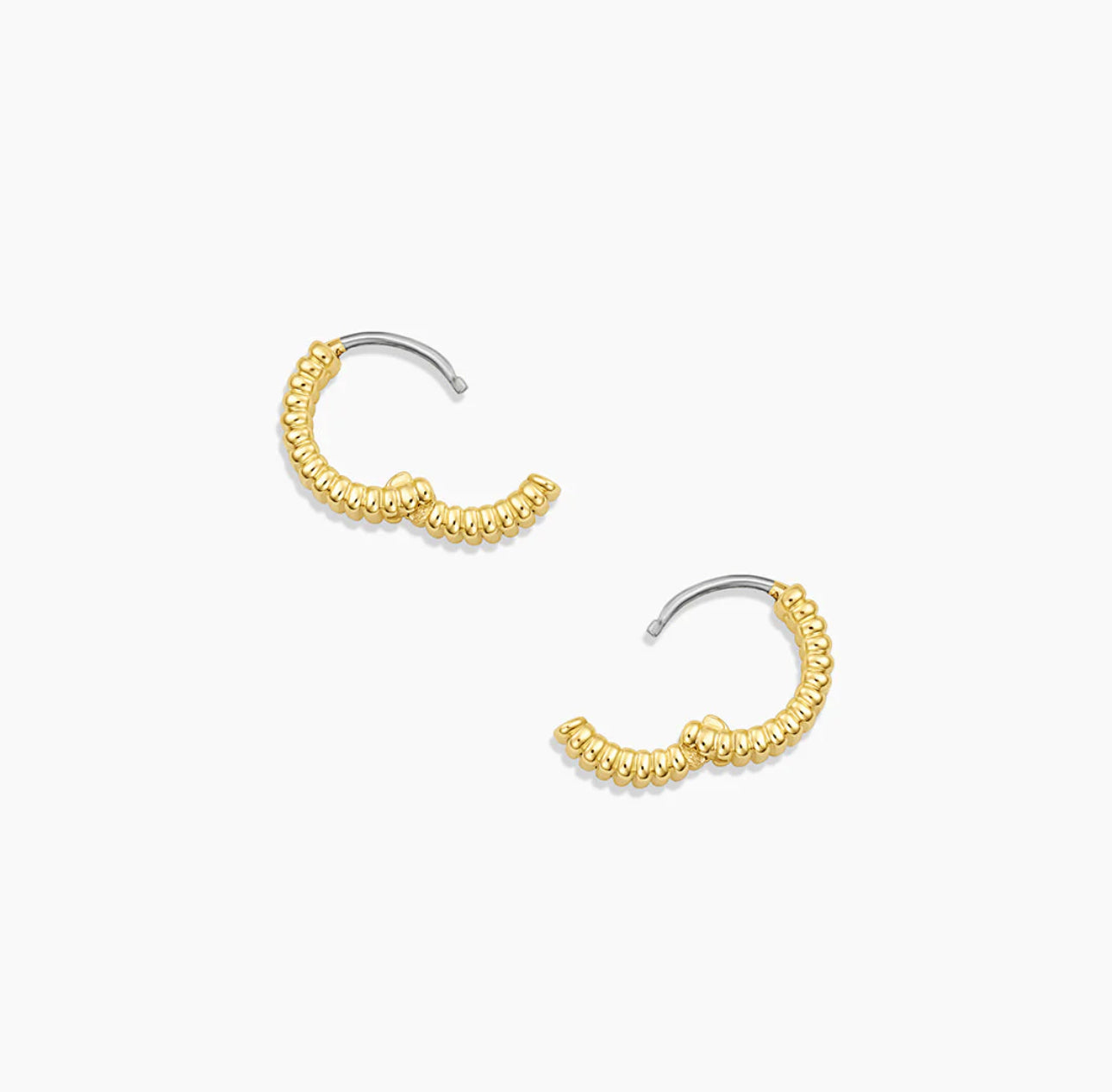The Catalina Huggie Earrings are a beautiful statement piece. Crafted from gold-plated metal, these huggie earrings are the perfect addition to any jewelry collection thanks to their timeless design.