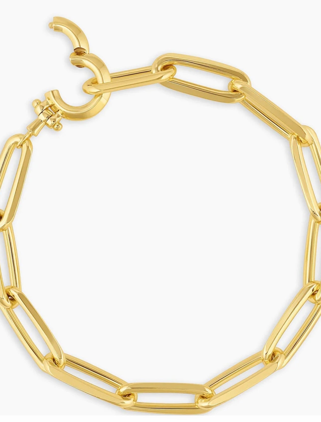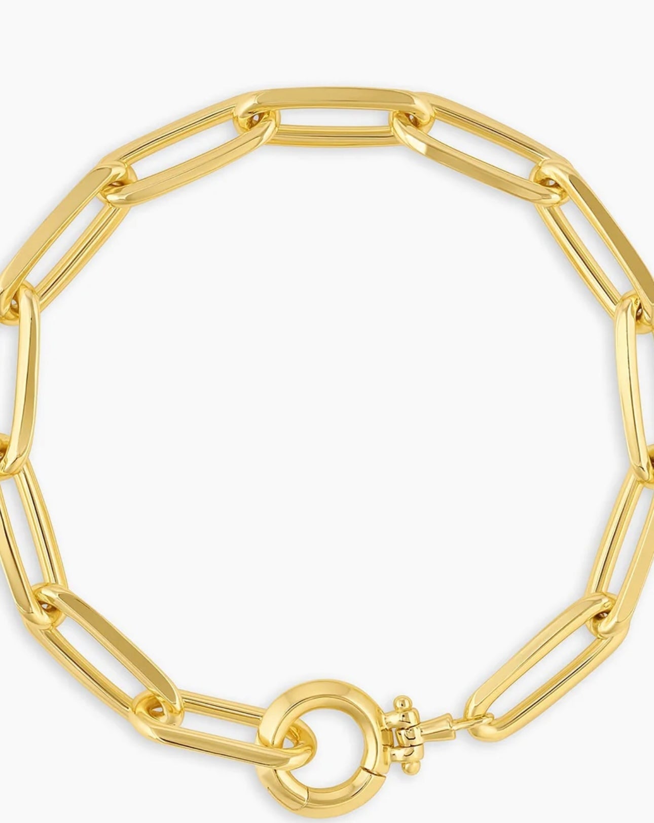 Achieve a truly timeless look with the Venice Watch Bracelet. Inspired by a watch chain, this gorgeous gold plated chain bracelet features a classic design that is perfect for any occasion. To wear, stack alongside other gold or diamond bracelets. More is more!