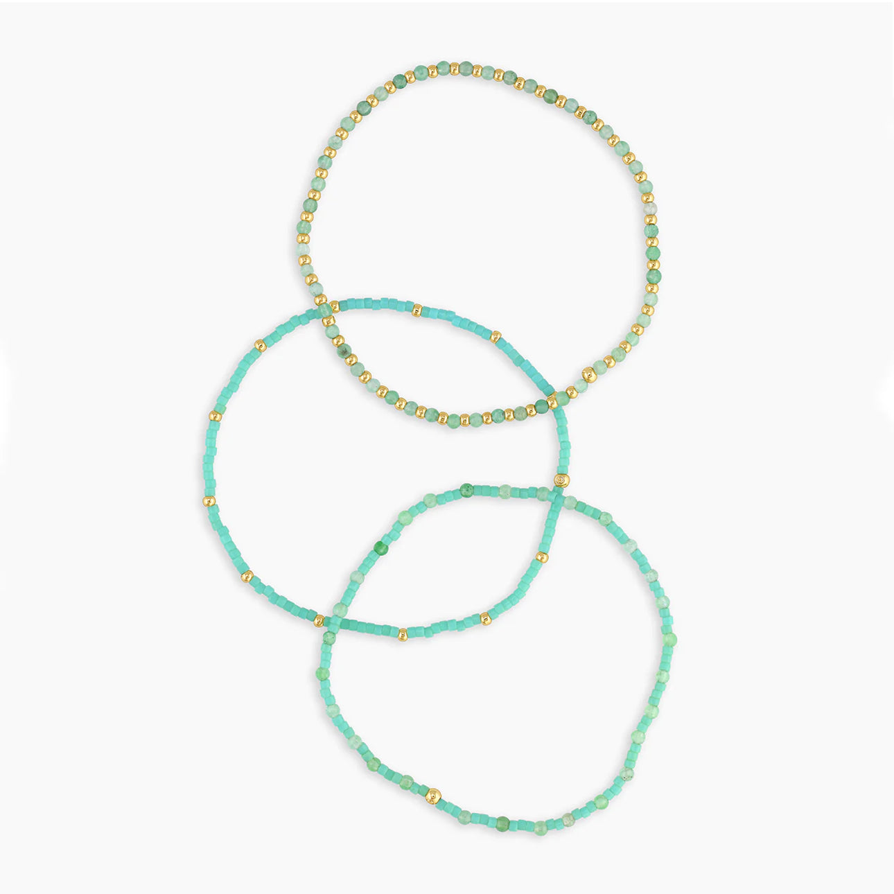This Poppy Gem Bracelet Set is the perfect accessory for any look. This set of easy-to-wear elastic bracelets can be worn solo or stacked together for a more dynamic look. Pair this bracelet set with the gold plated Poppy Bracelet set or with other favorite gold bangles for a truly stunning stack.