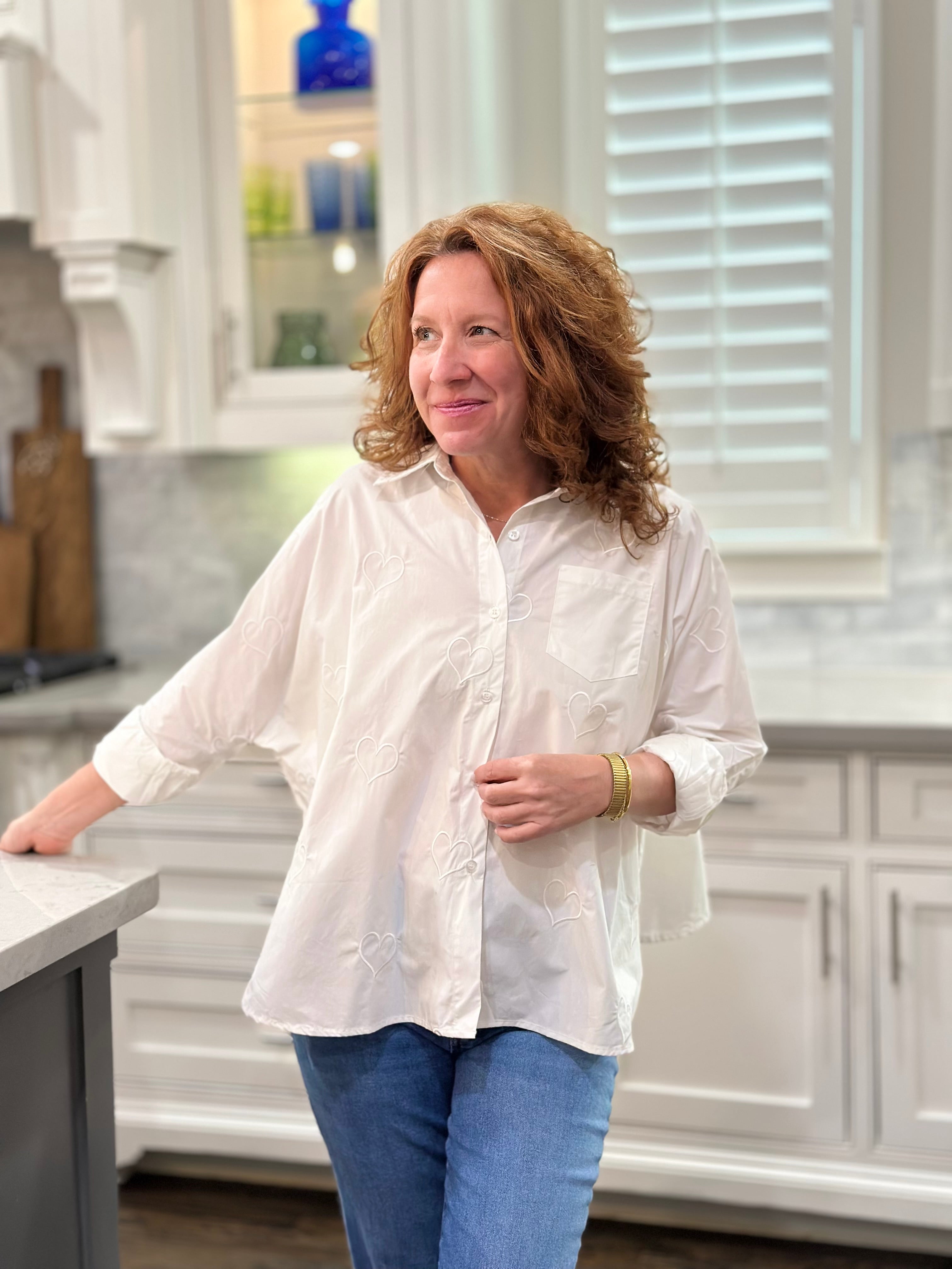 Caryn Lawn Abby Swing Top in White w/Hearts