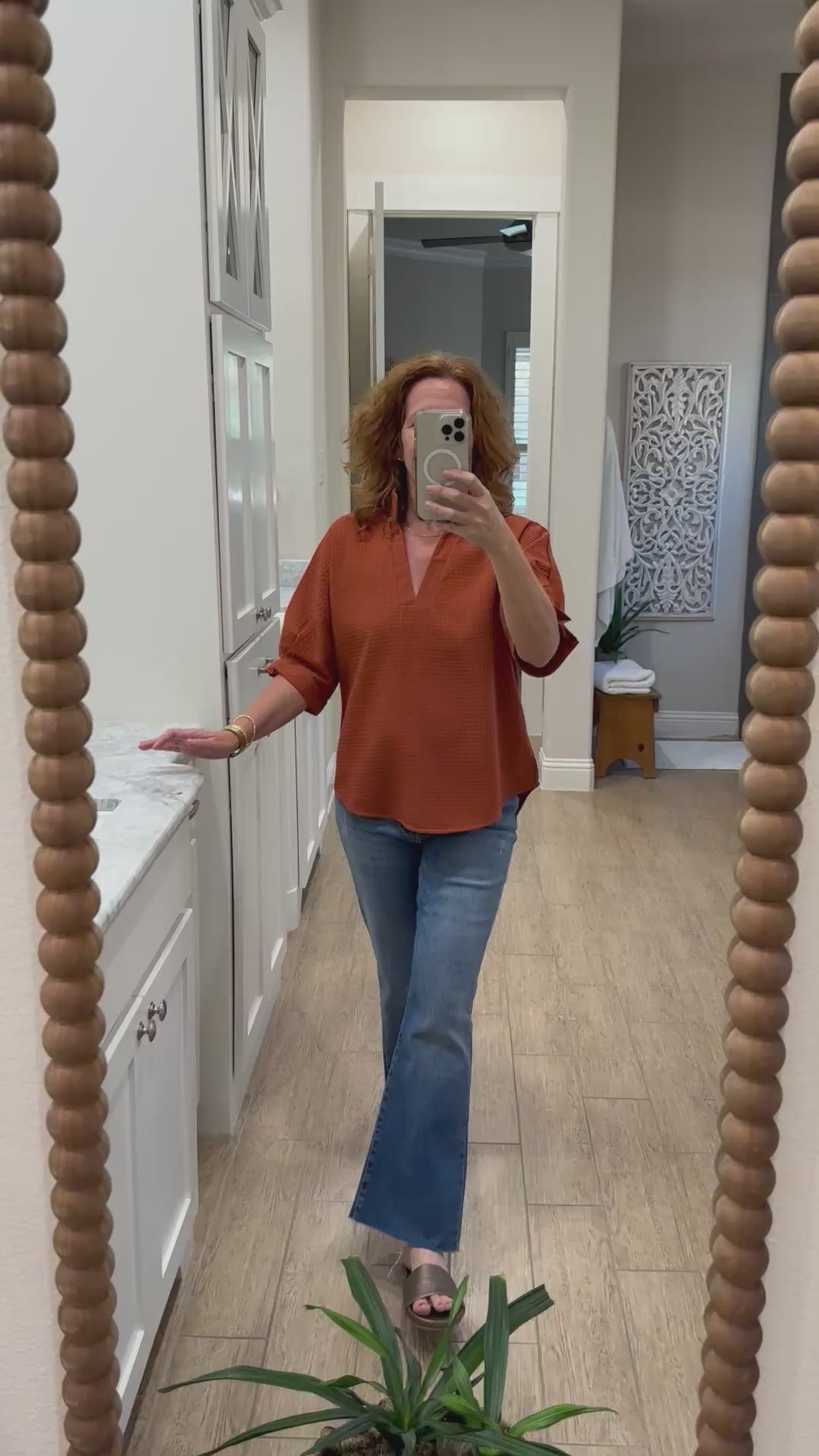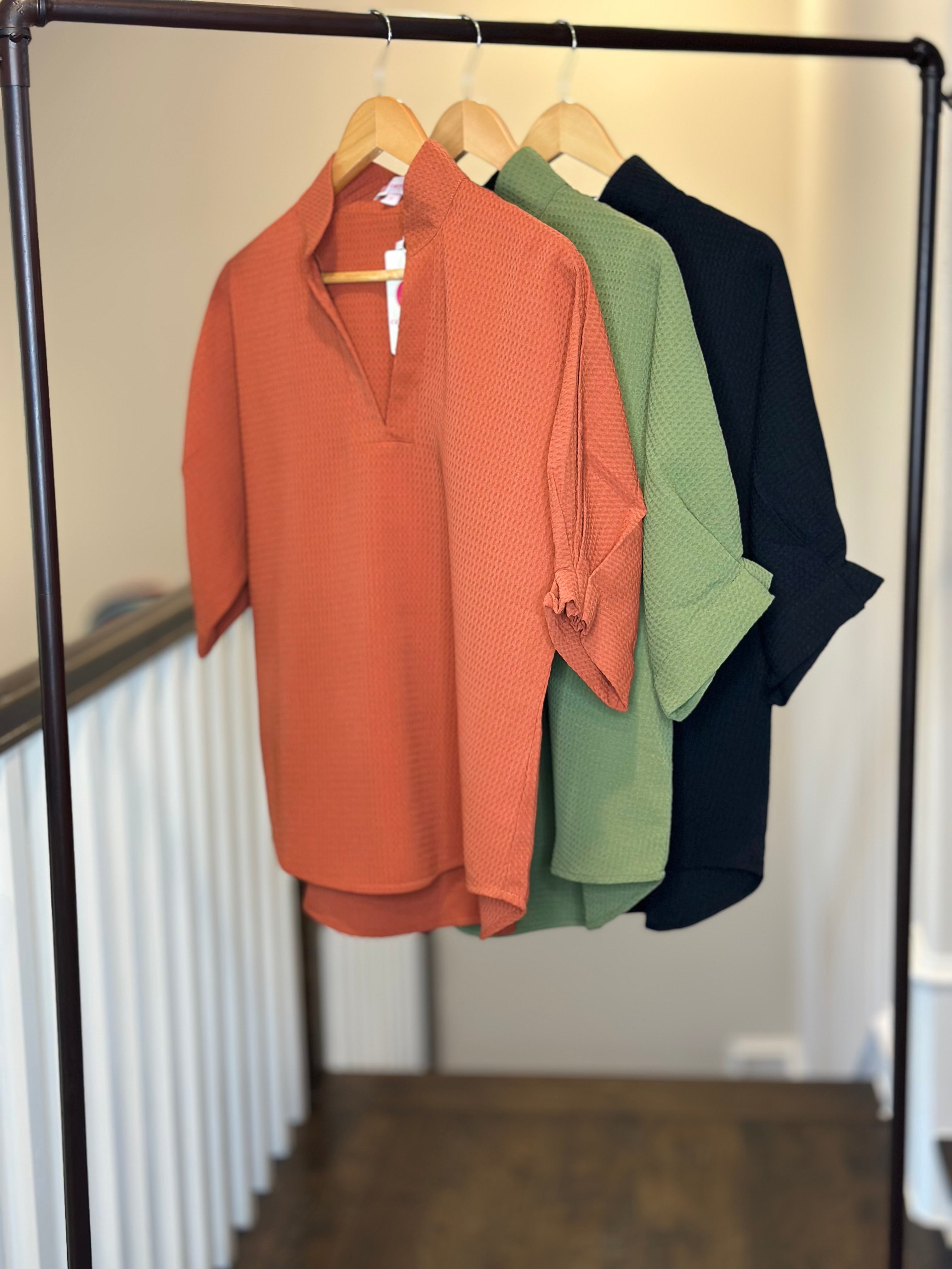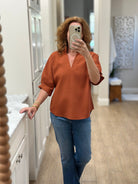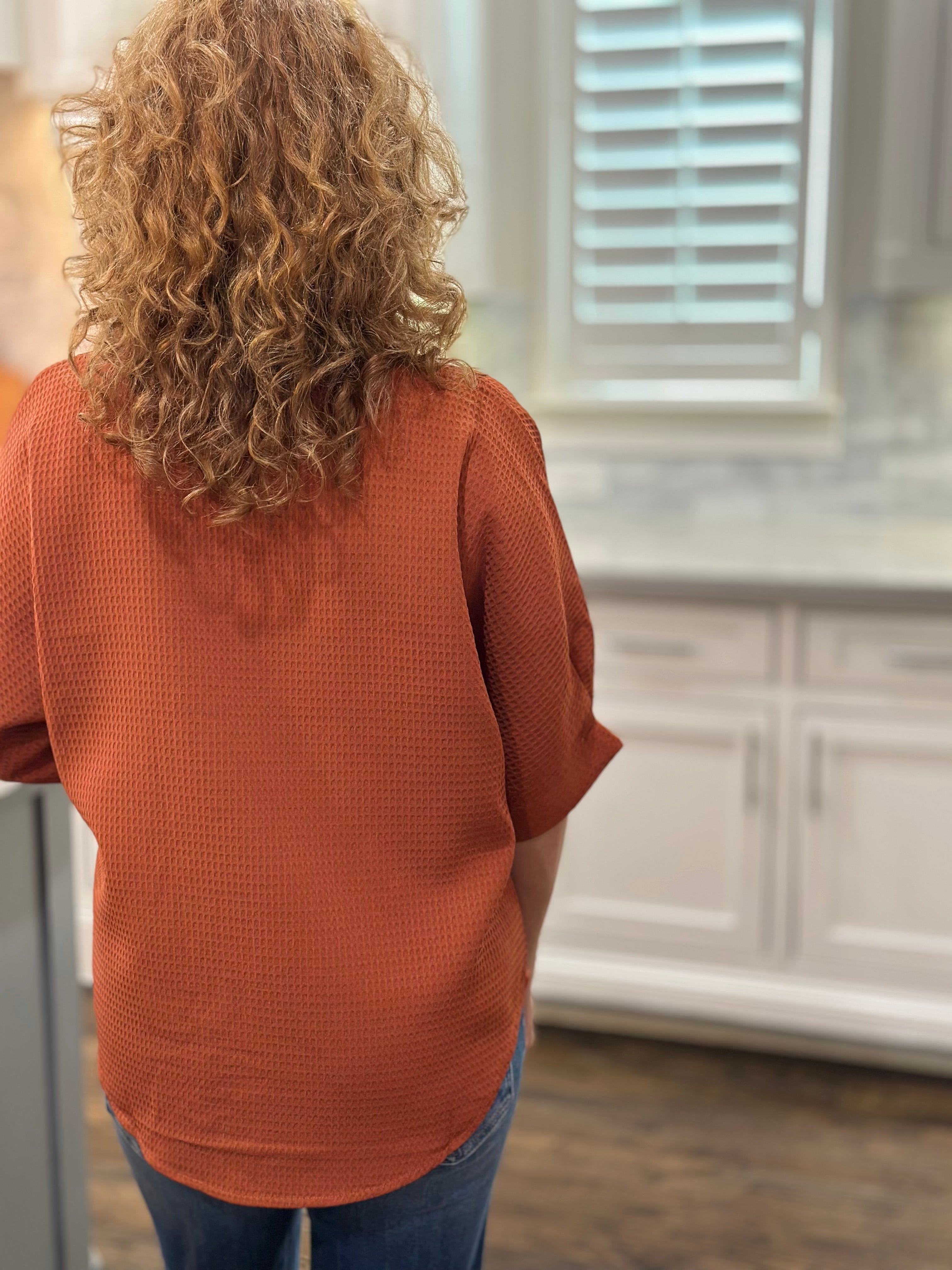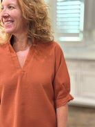 Caryn Lawn - Caroline Waffle Top in Burnt Orange