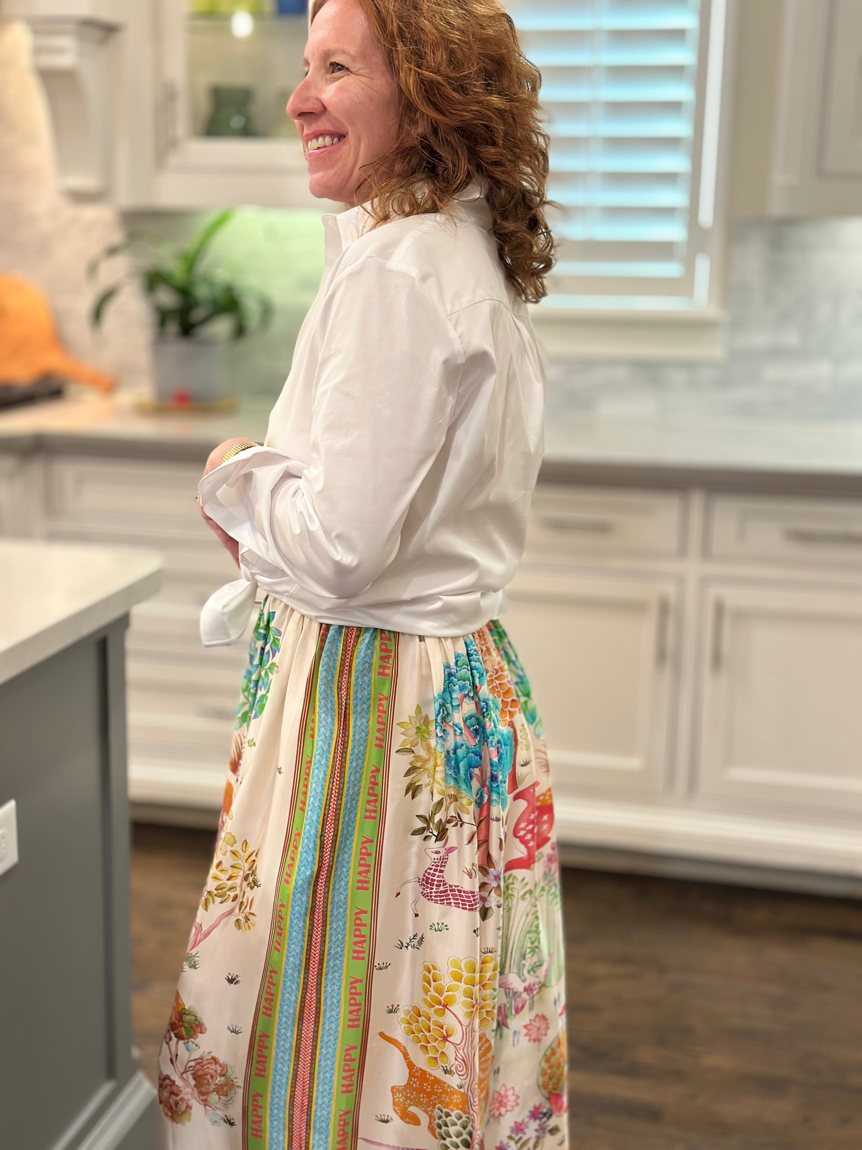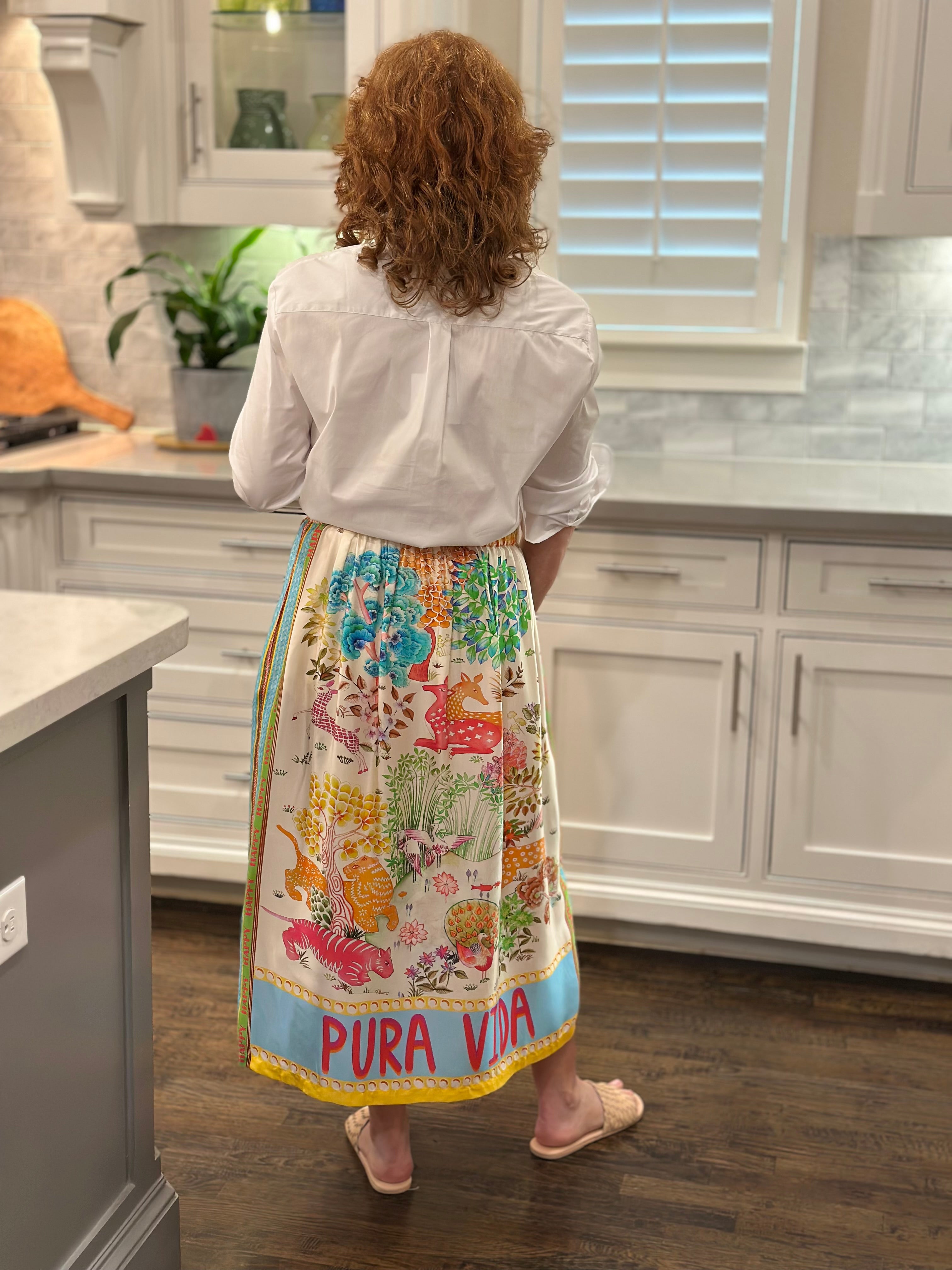 A classic skirt with a vintage chic print. Dress it up with heals or wear casual with sneakers or sandals.