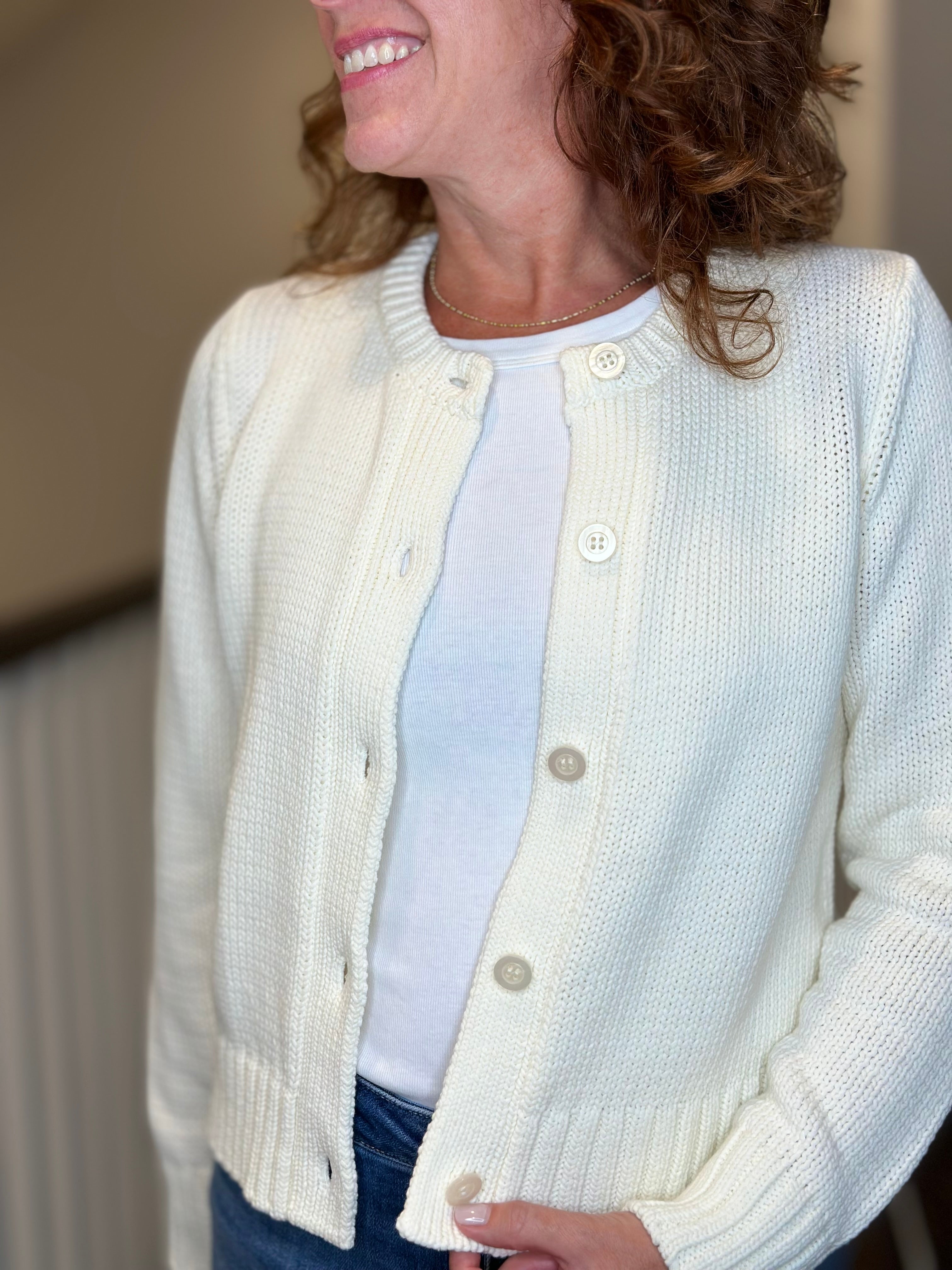 Your everyday essential, go-to sweater. Featuring a classic cardigan silhouette, long sleeves, and soft cotton ribbing.