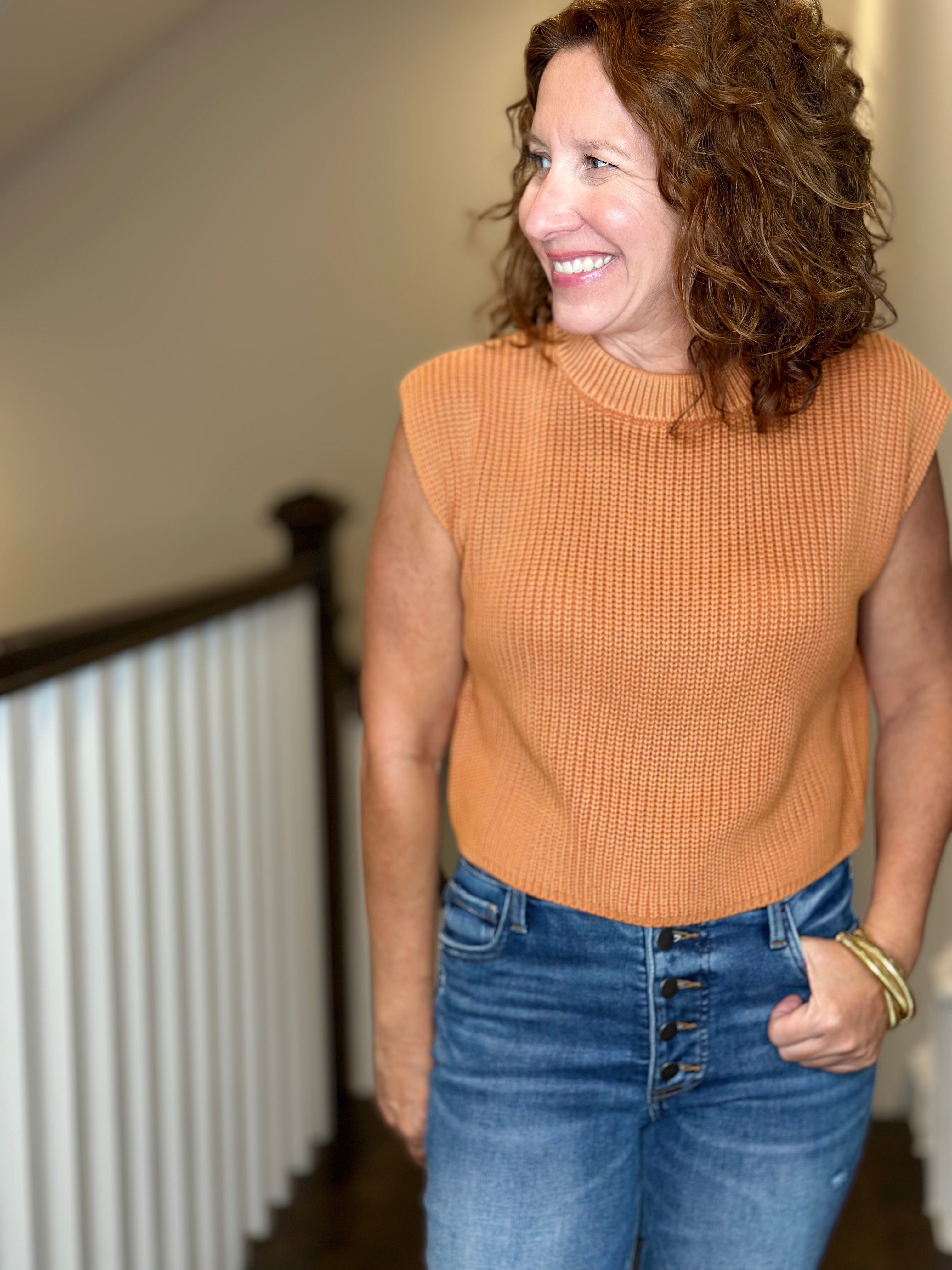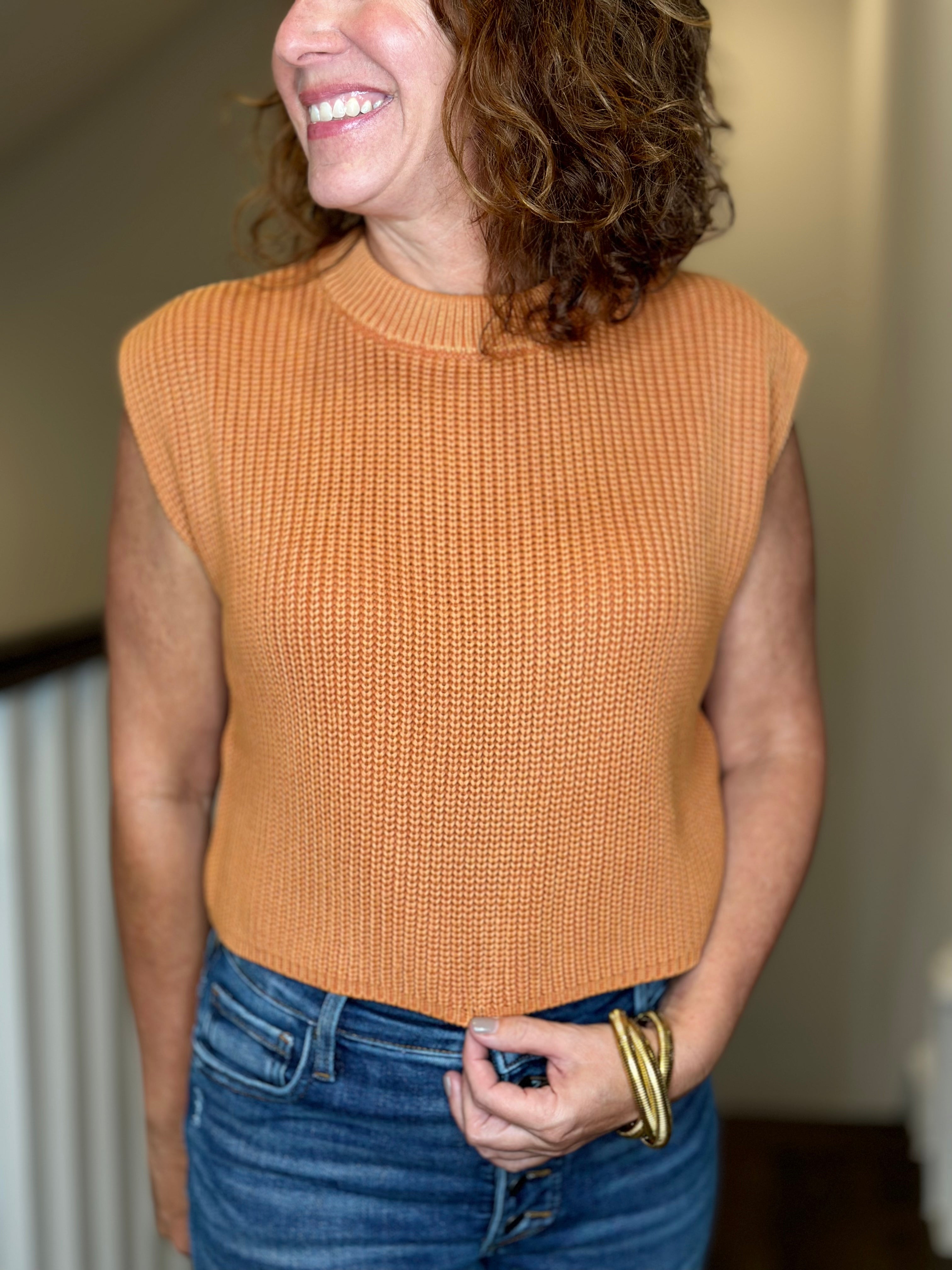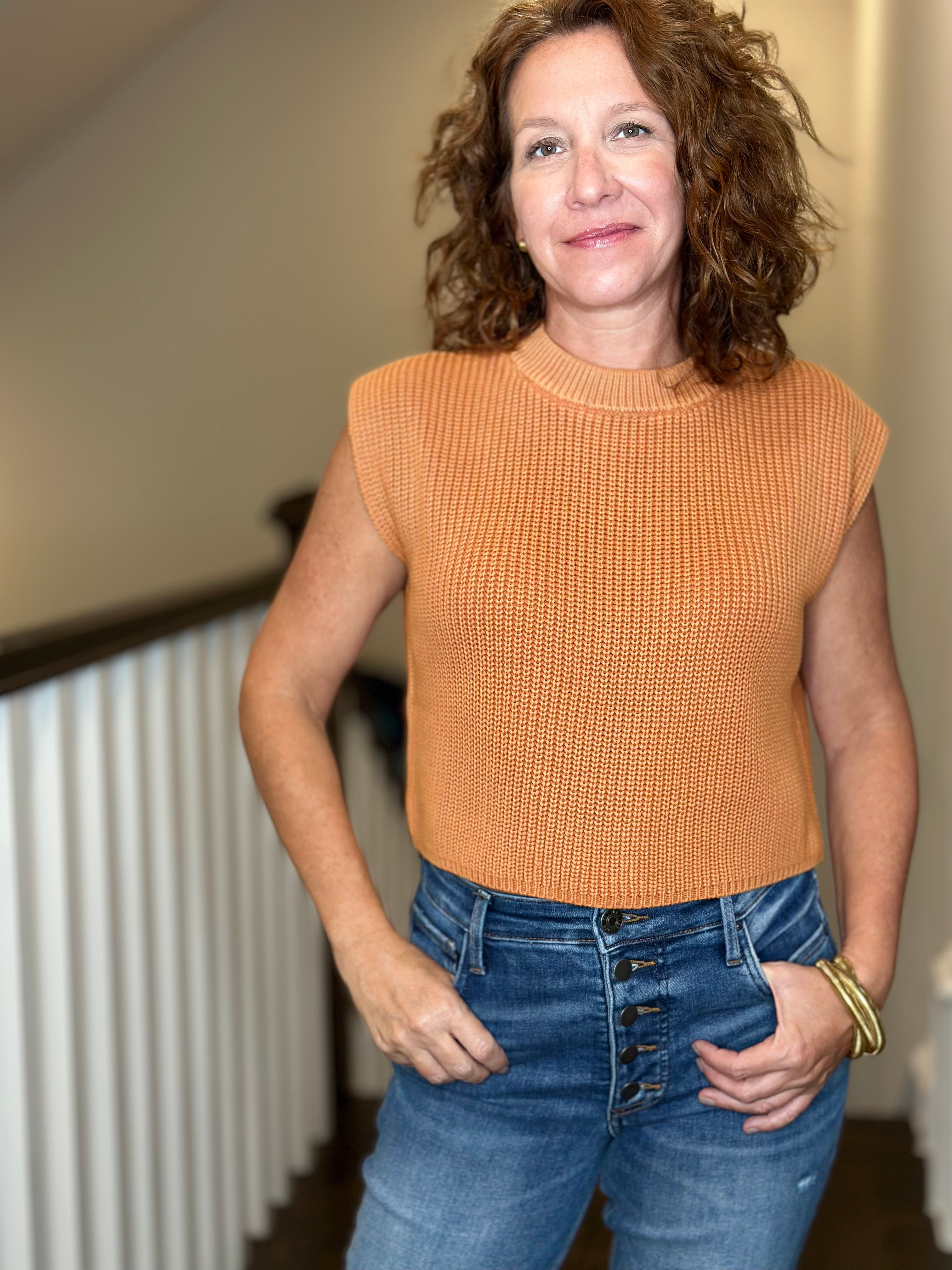 Rinsed in a mineral wash for extra softness, the Beatrice Top is a shaker knit crewneck with capped sleeves and a semi-cropped fit.