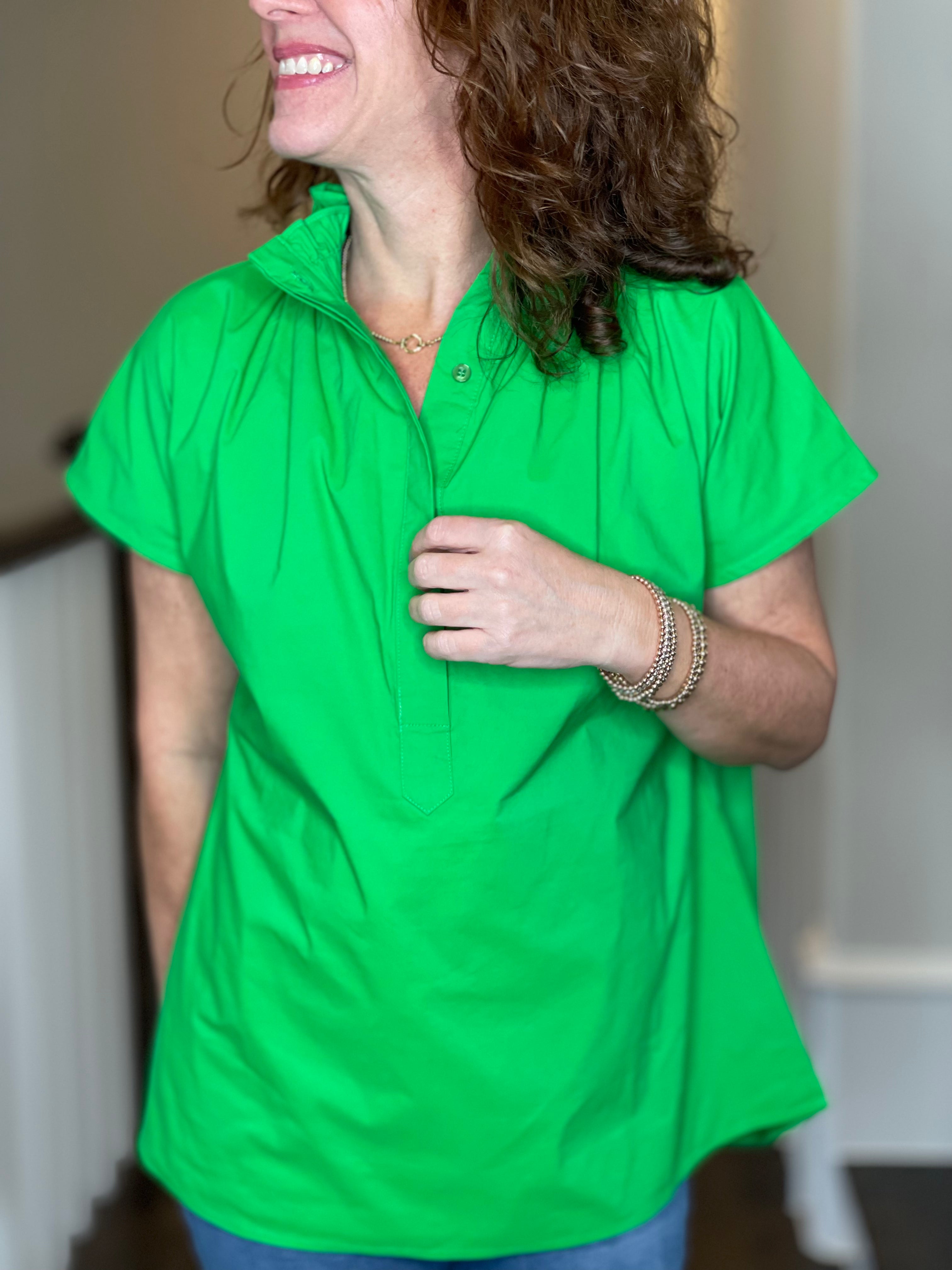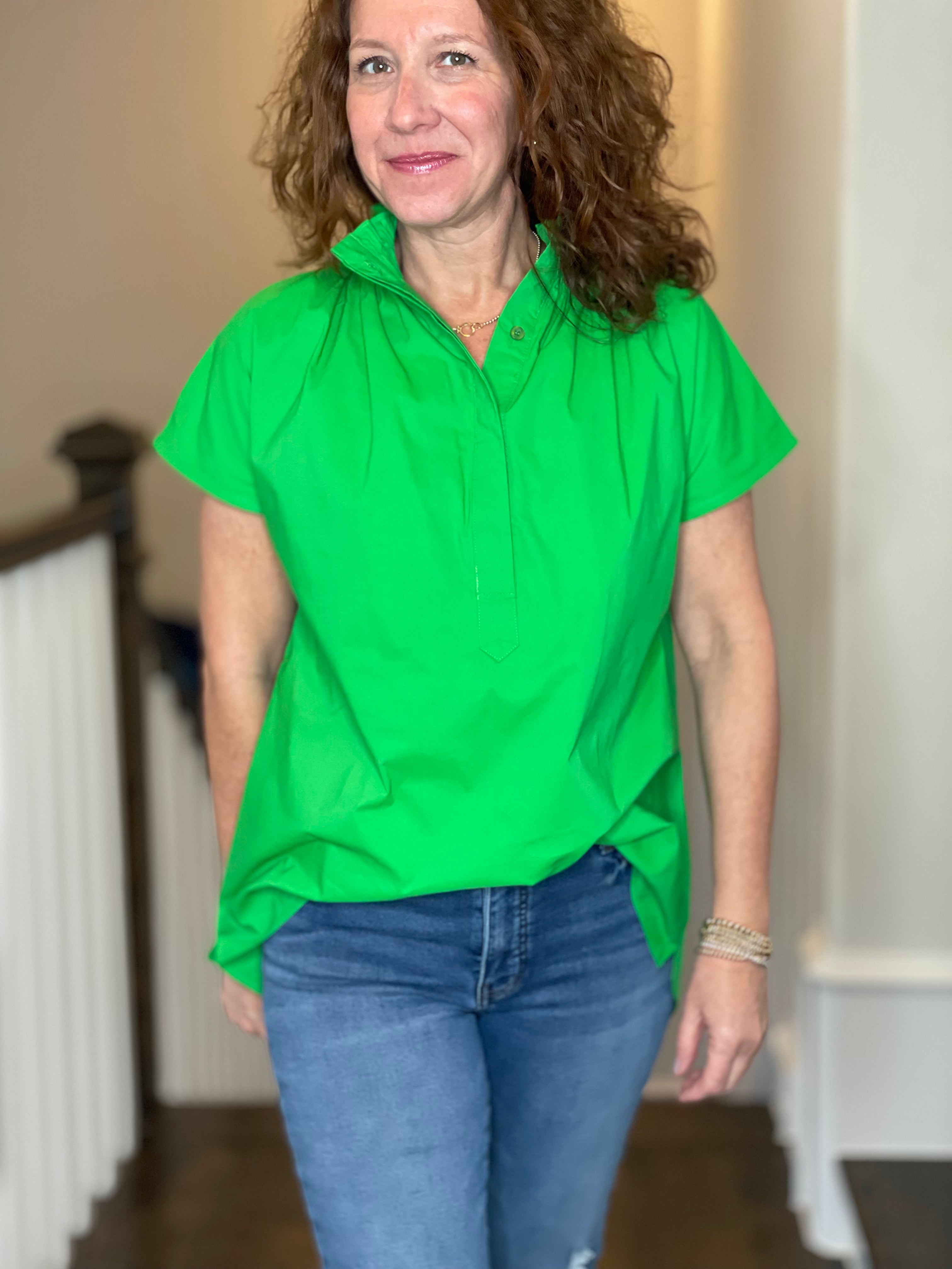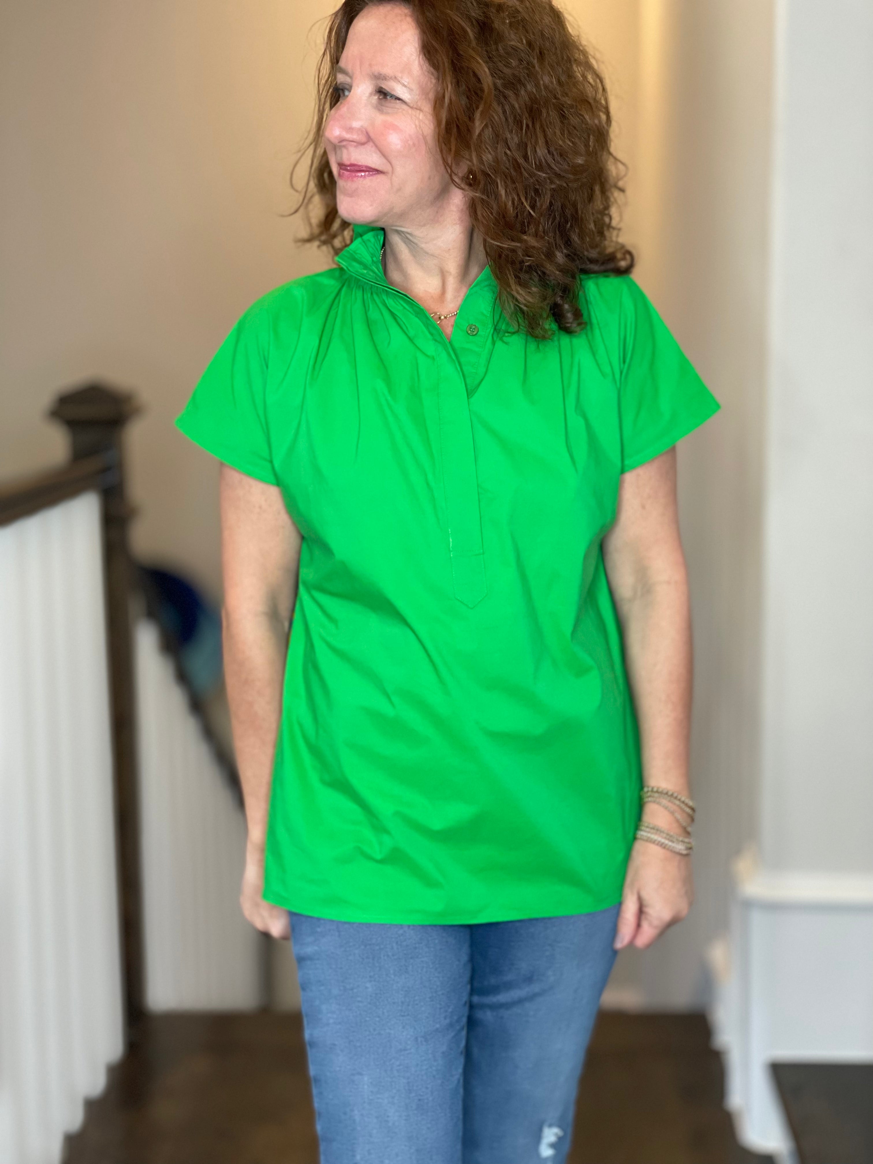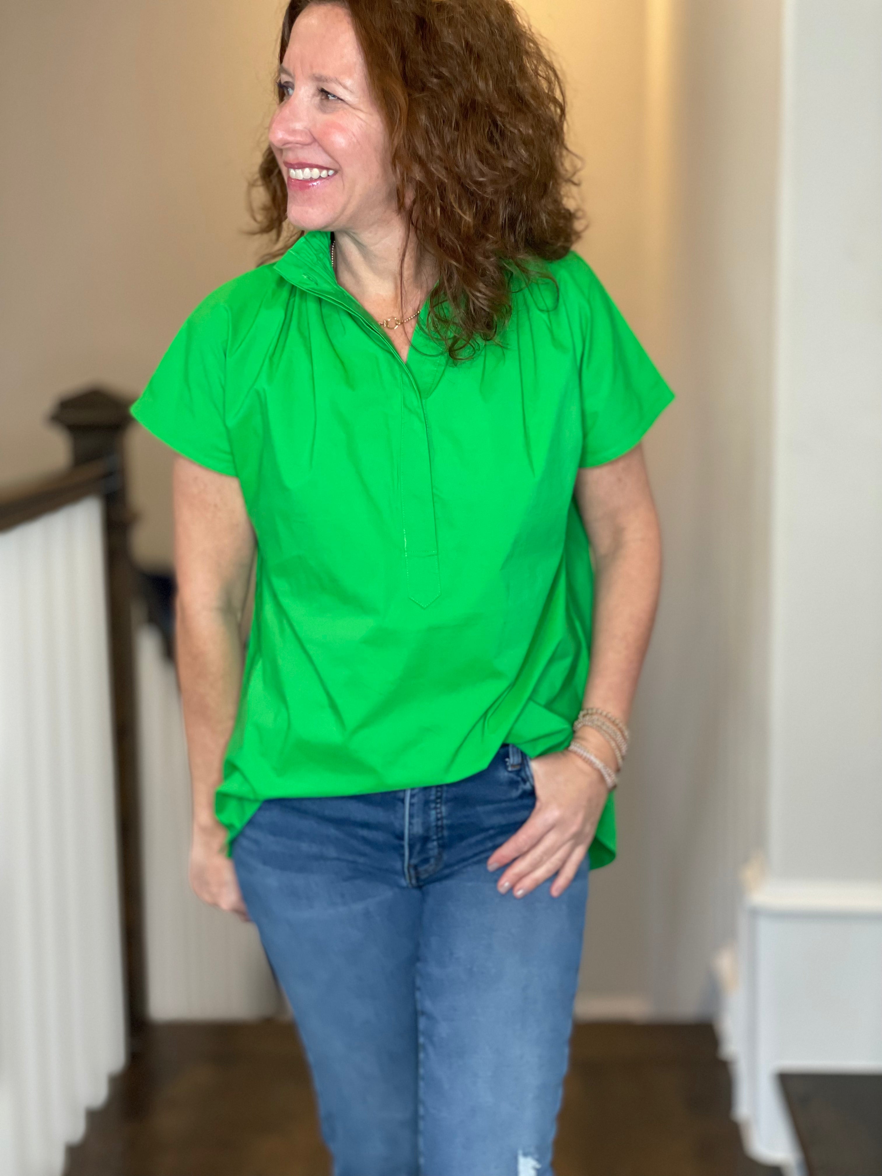 This top will take you from day to night. A great crisp fabric that will keep you loving this top. We love it paired with white denim for a great spring style.