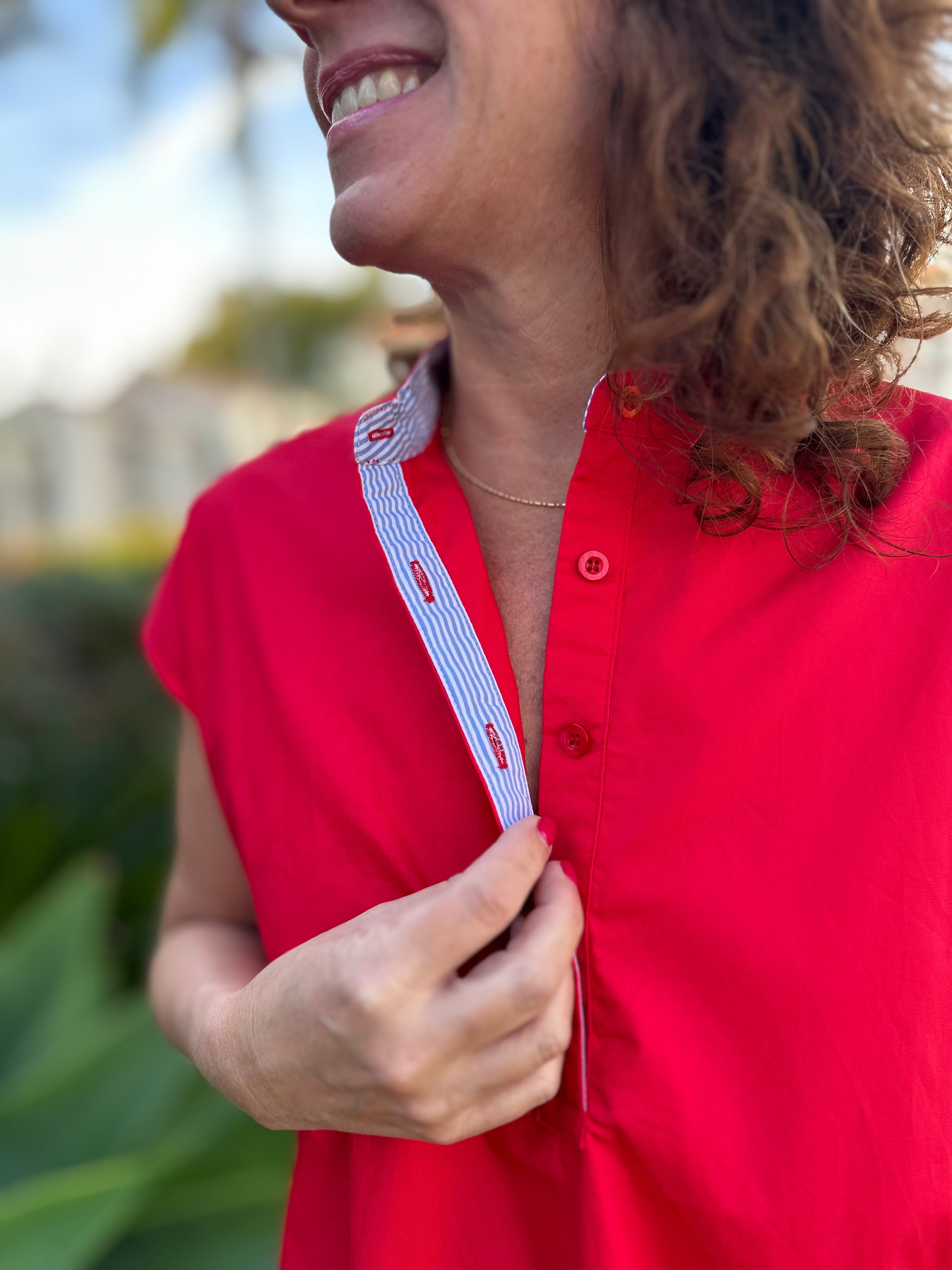 The perfect shift dress that we all need in our closet. This fabulous style is easy to wear everyday. Pair it with a fun sneaker, espadrilles, or a great sandal. It’s loose fitting, has pockets and a great detail inside the collar.