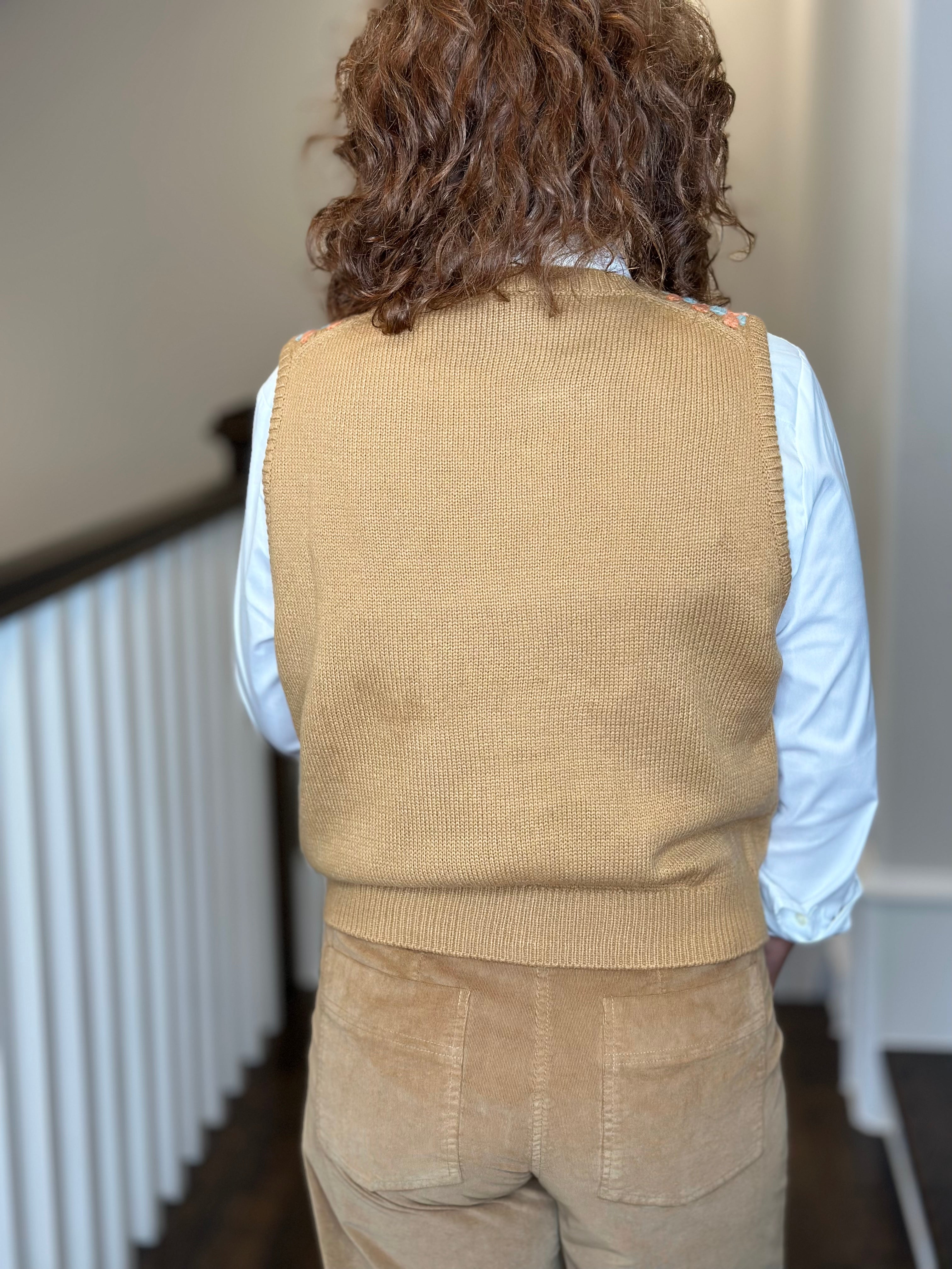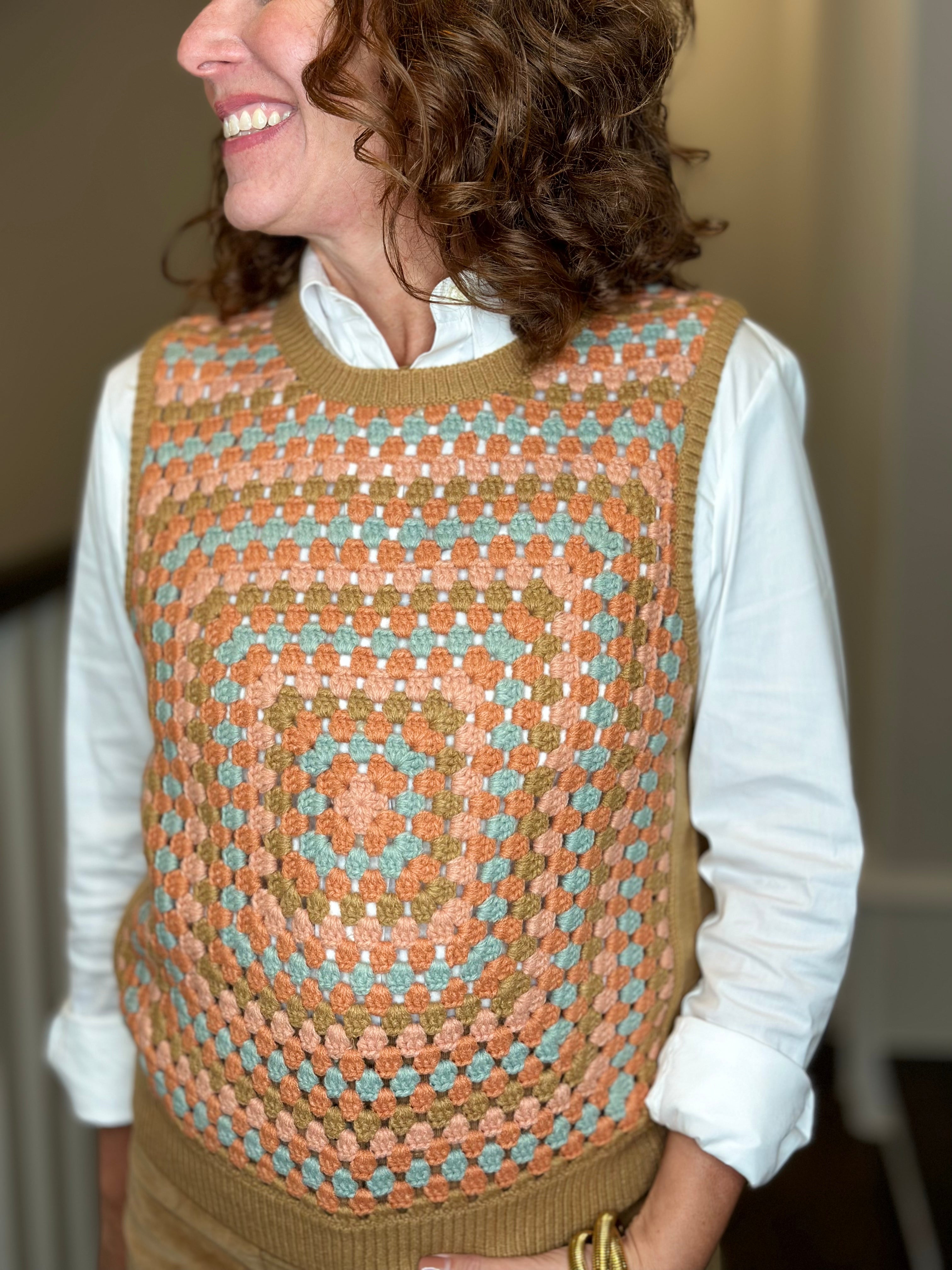The Ivy Jane Granny Square Sweater Vest features a vintage feel with a round neckline and straight hemline. True to size. We love it paired with our Dylan Baby Cord Shirt.