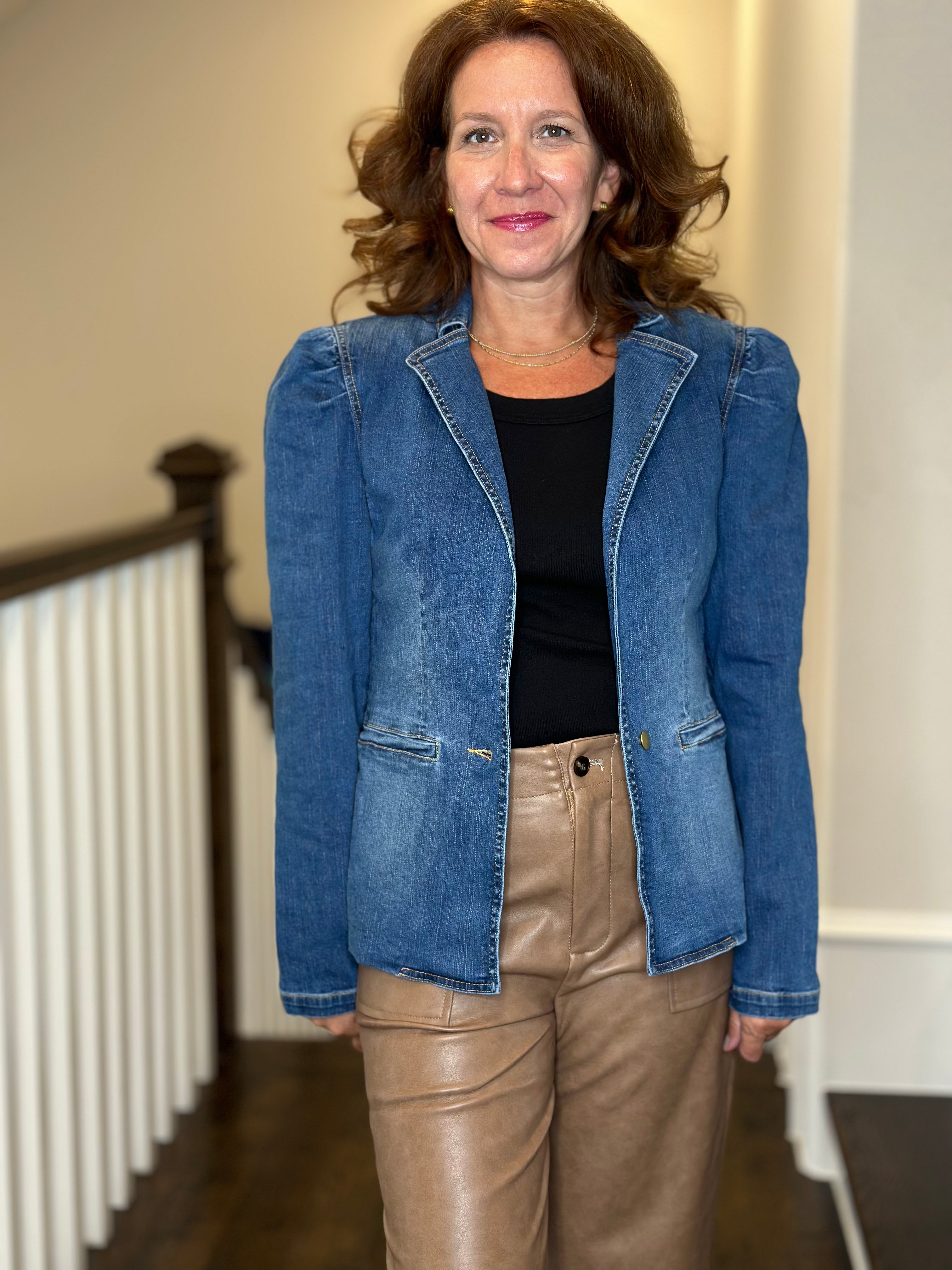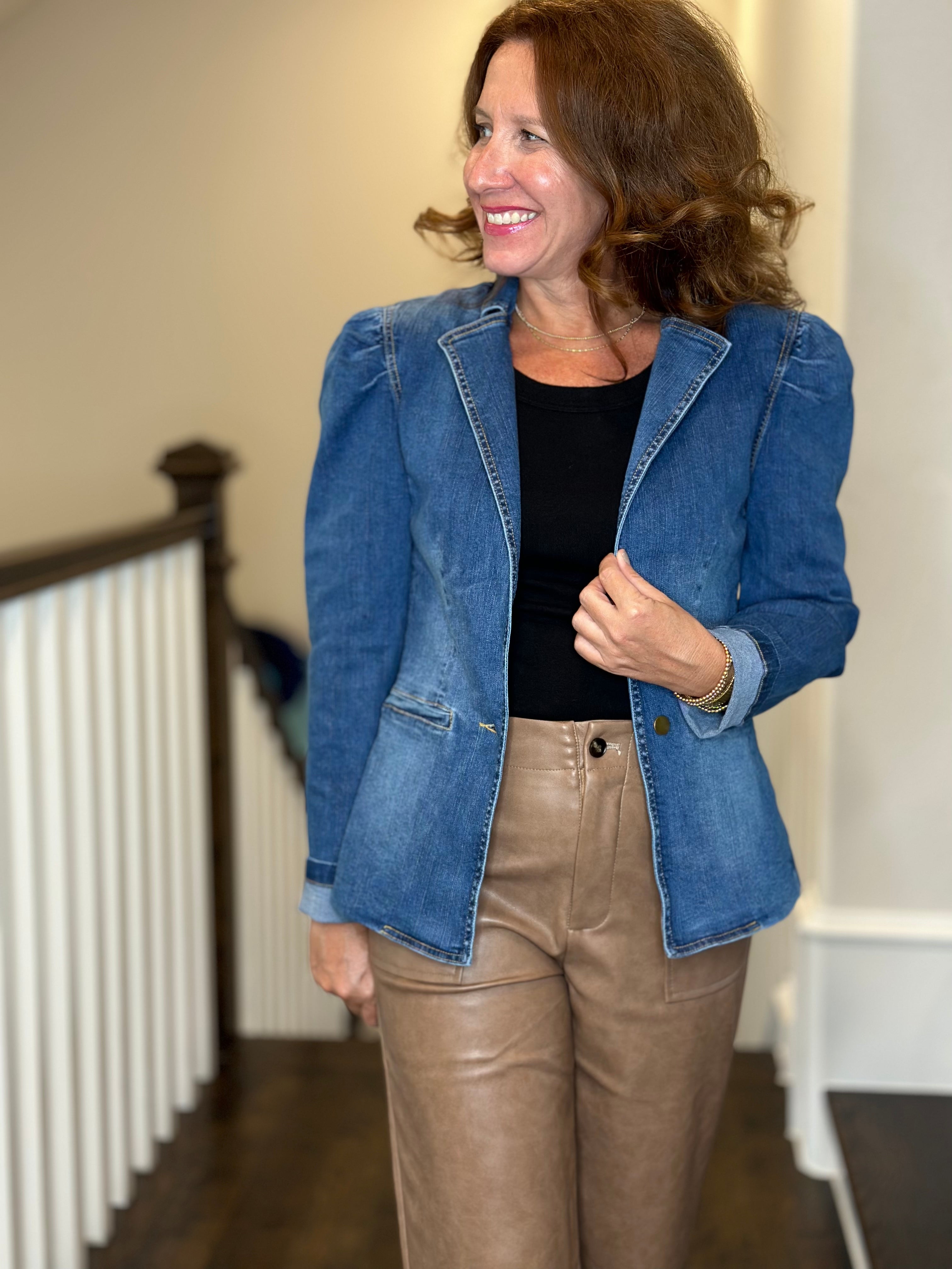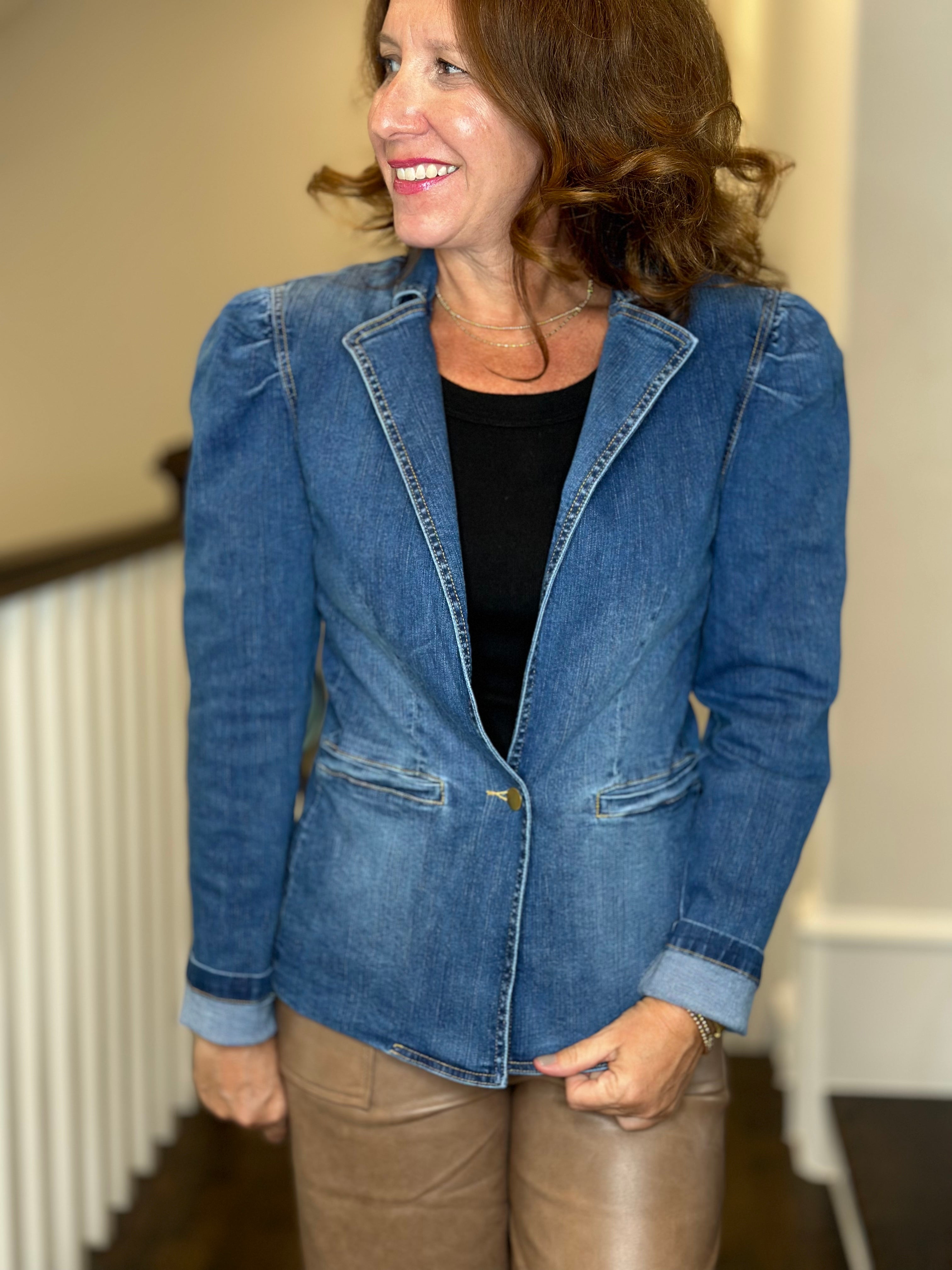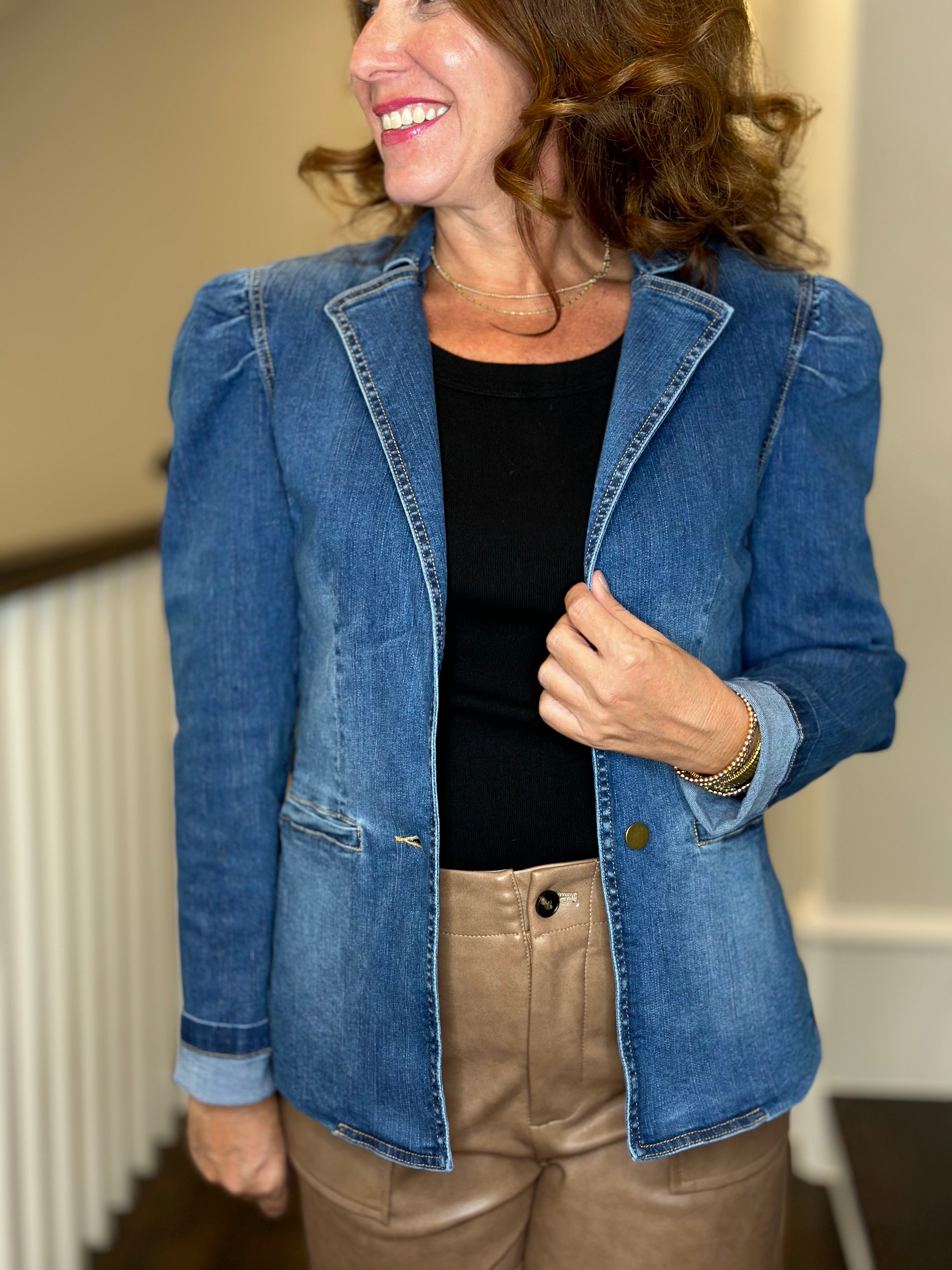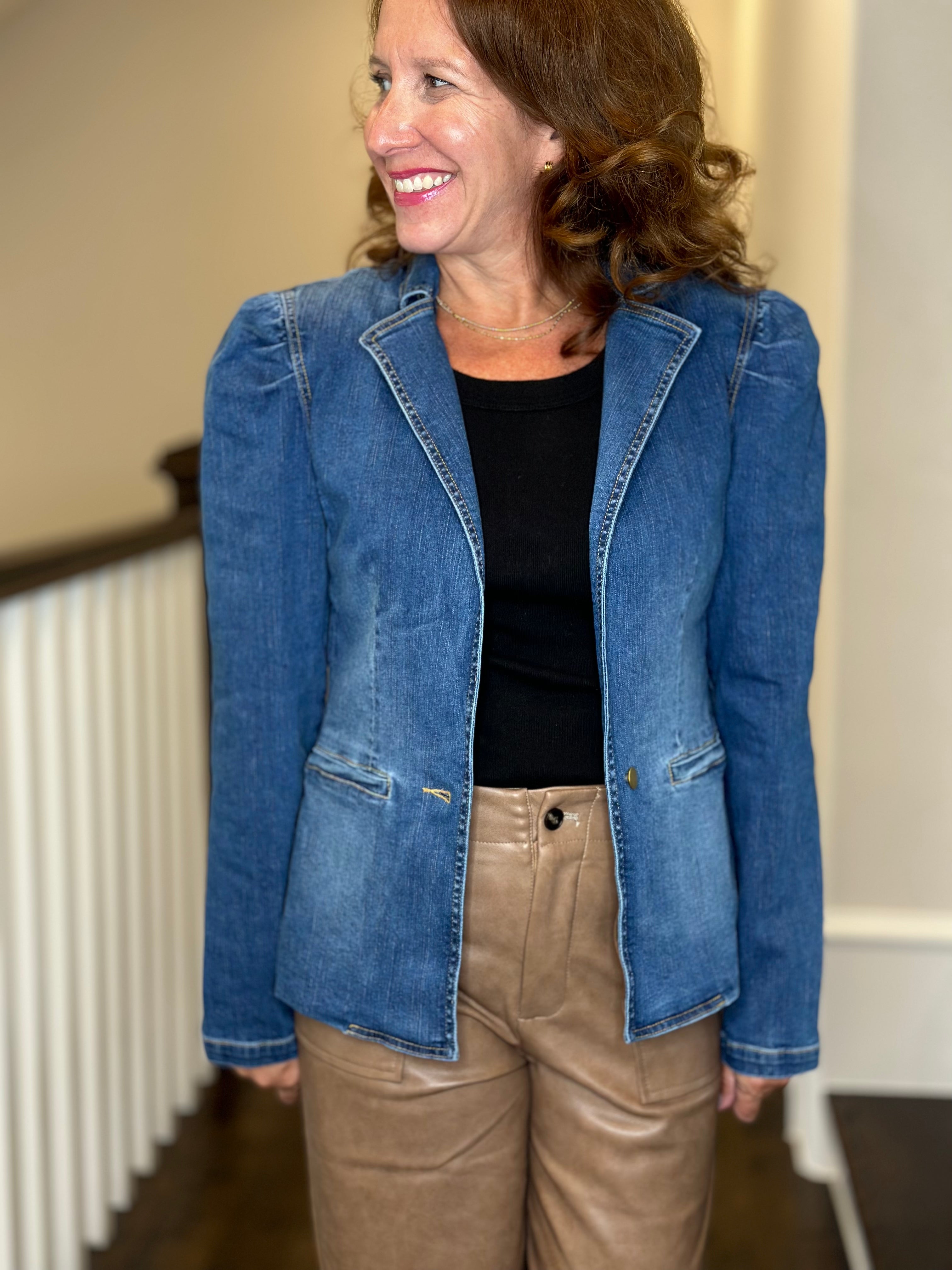 We love the vintage feel of this denim blazer.  It's so versatile and be dressed up or down and worn year round.