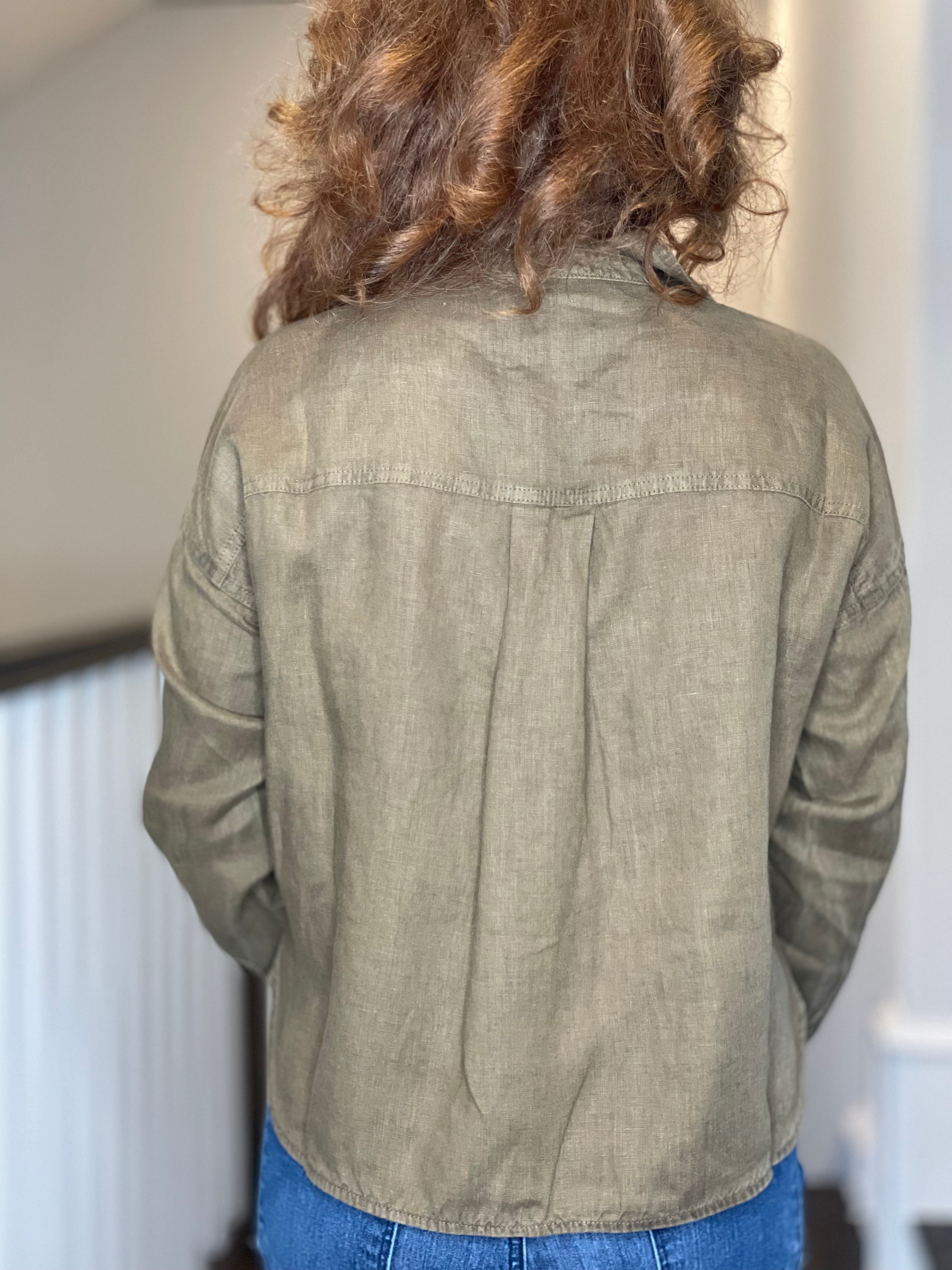 Michael Stars - Gracie Cropped Linen Shirt in Dolma