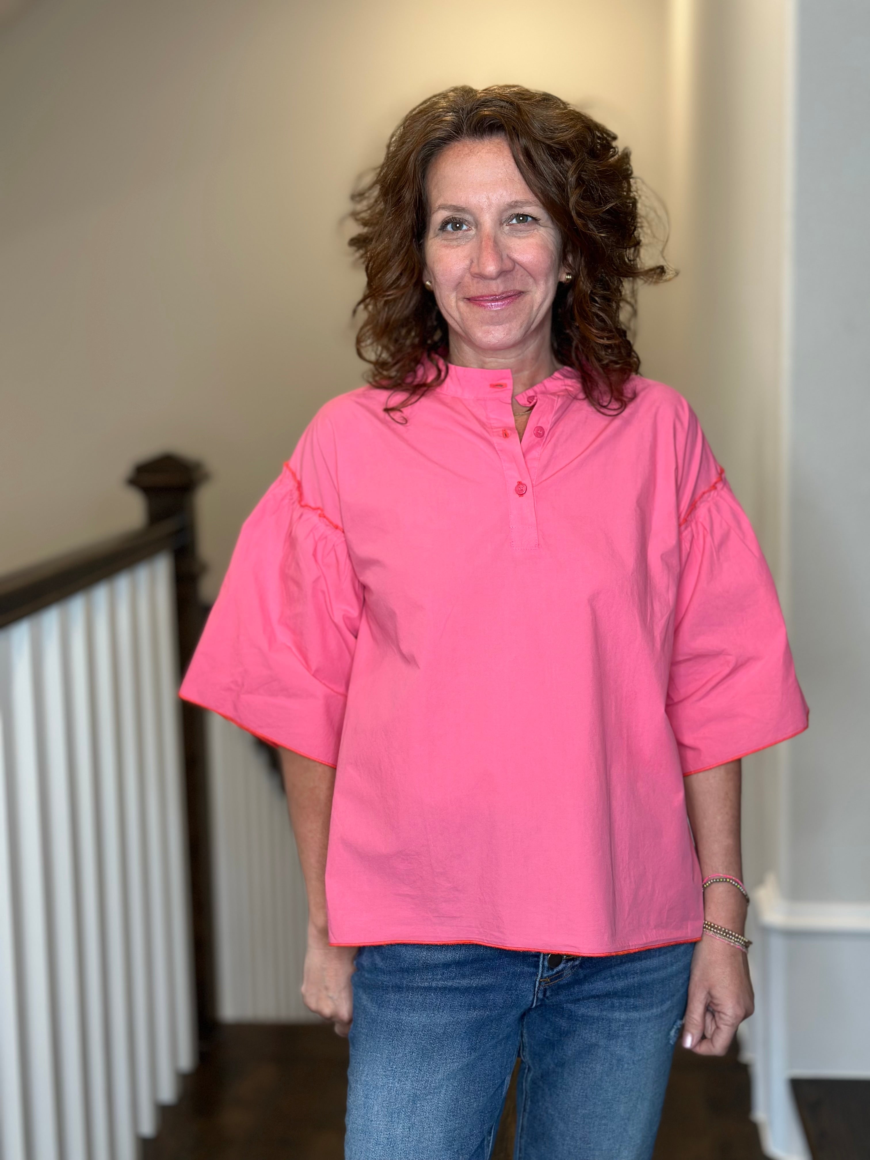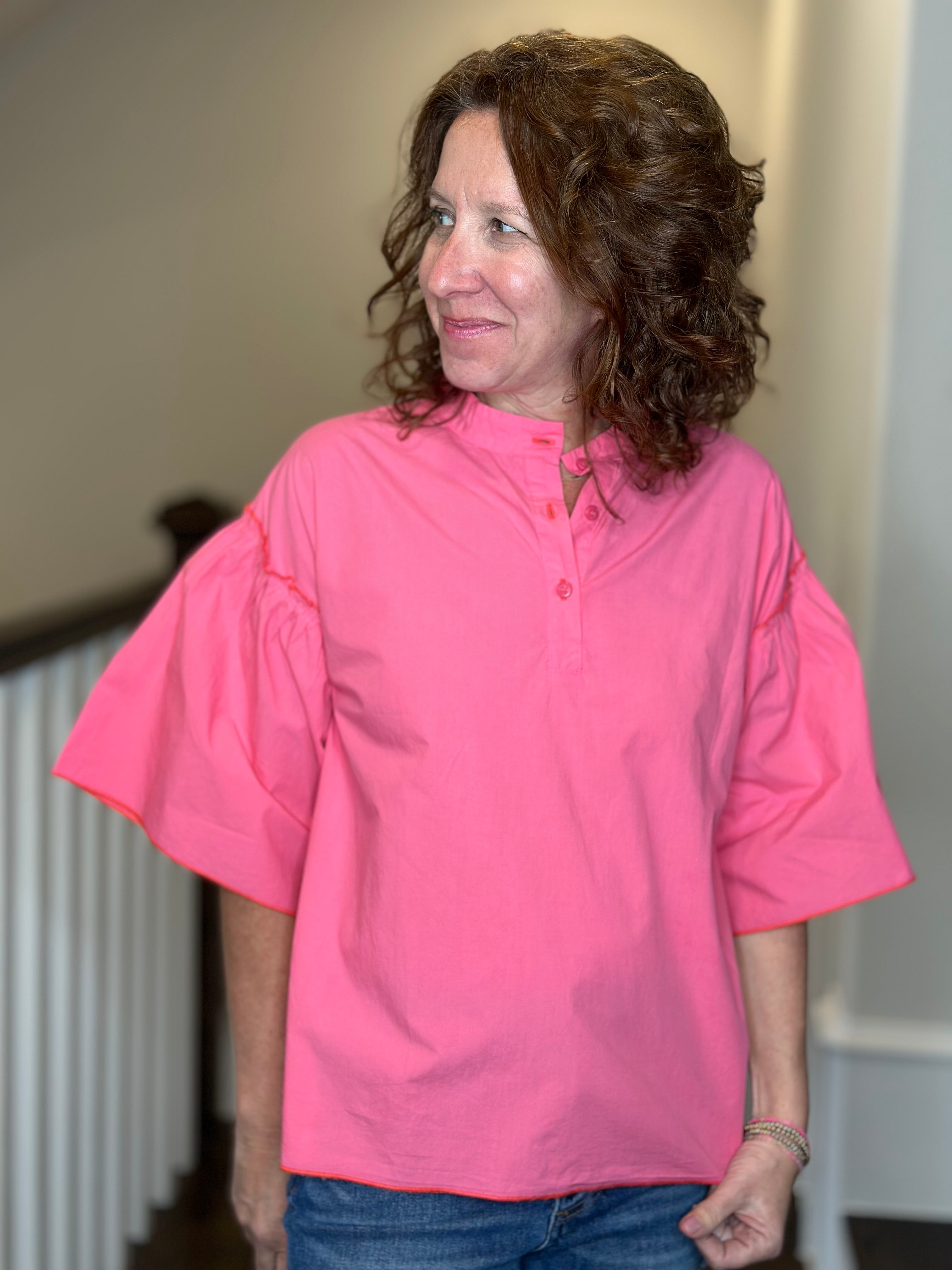 A closet favorite, the ultra-chic Aime Top is constructed from luxurious cotton parachute fabric. Easily pairs with your favorite jeans, pants or skirt. This blouse is both fun and easy to wear!