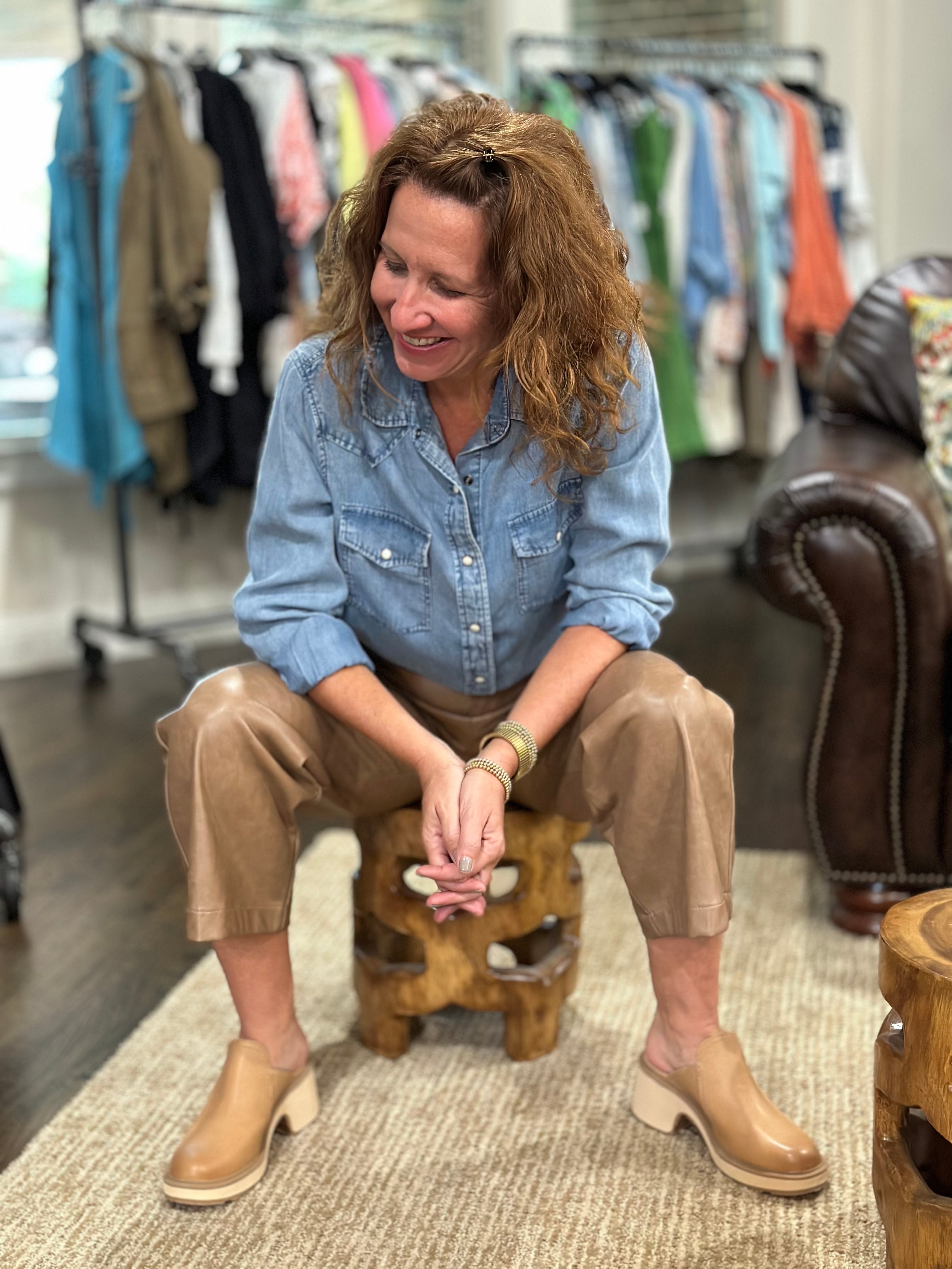 The classic style of a cropped wide leg pant, in a soft supple vegan leather. Go from day to night styling effortlessly. Elevated chic.