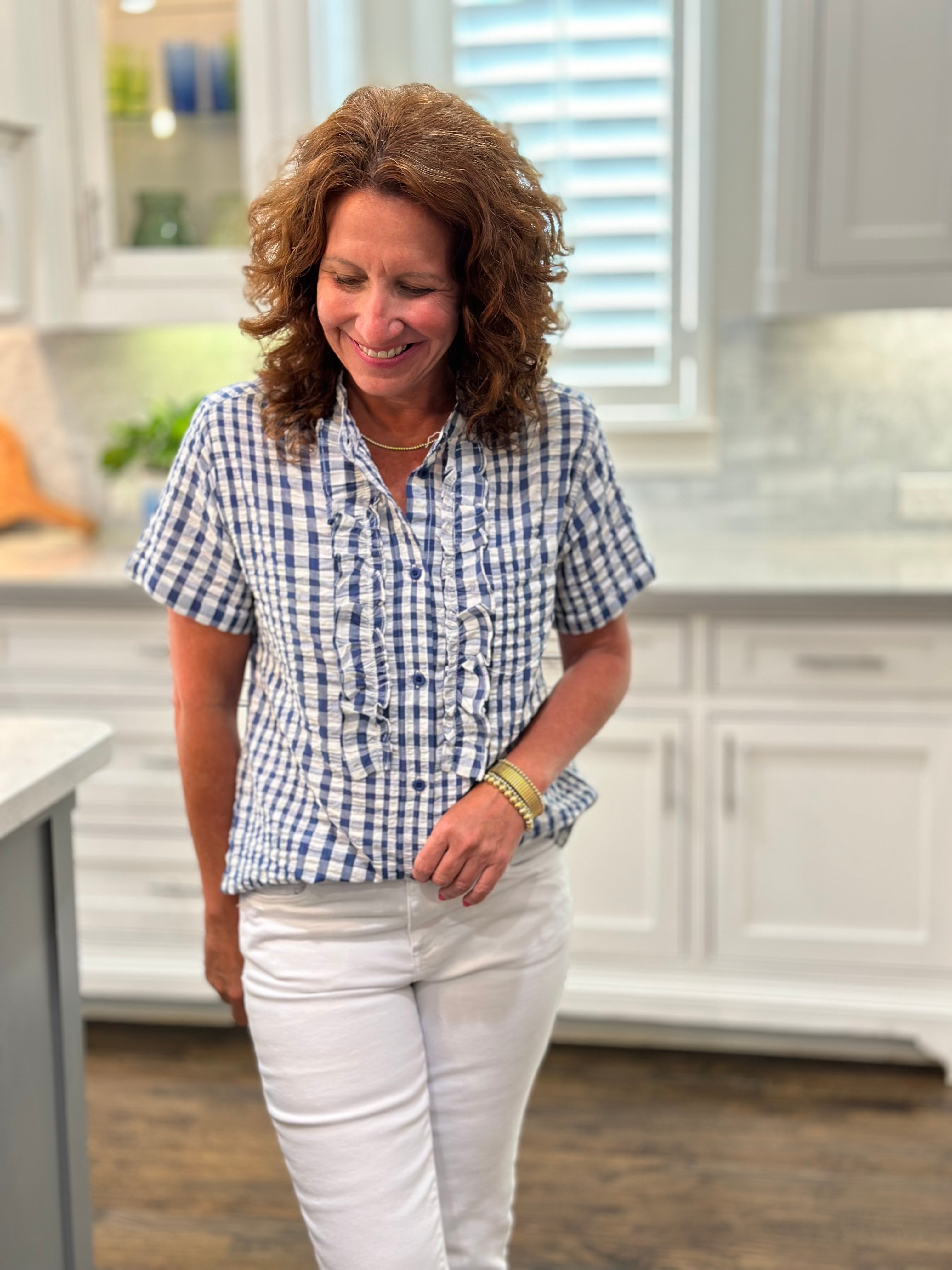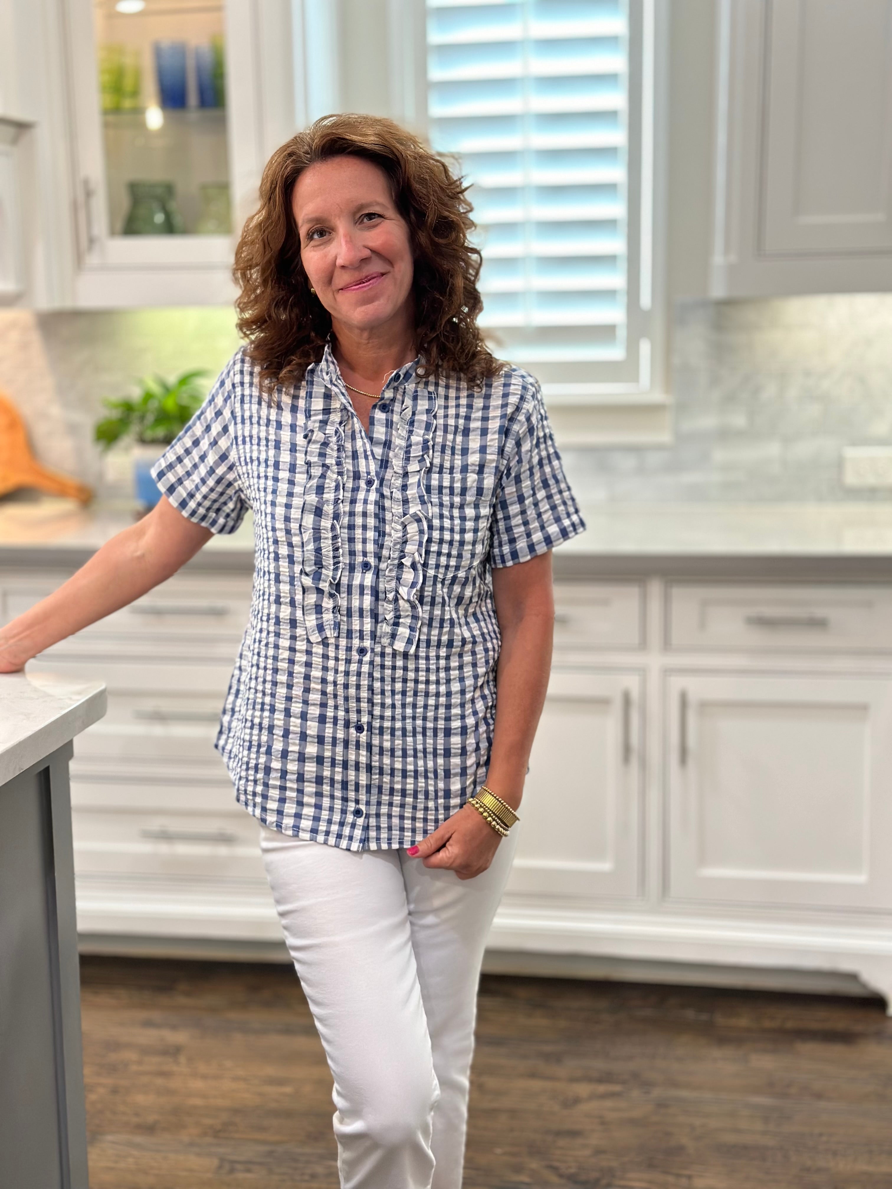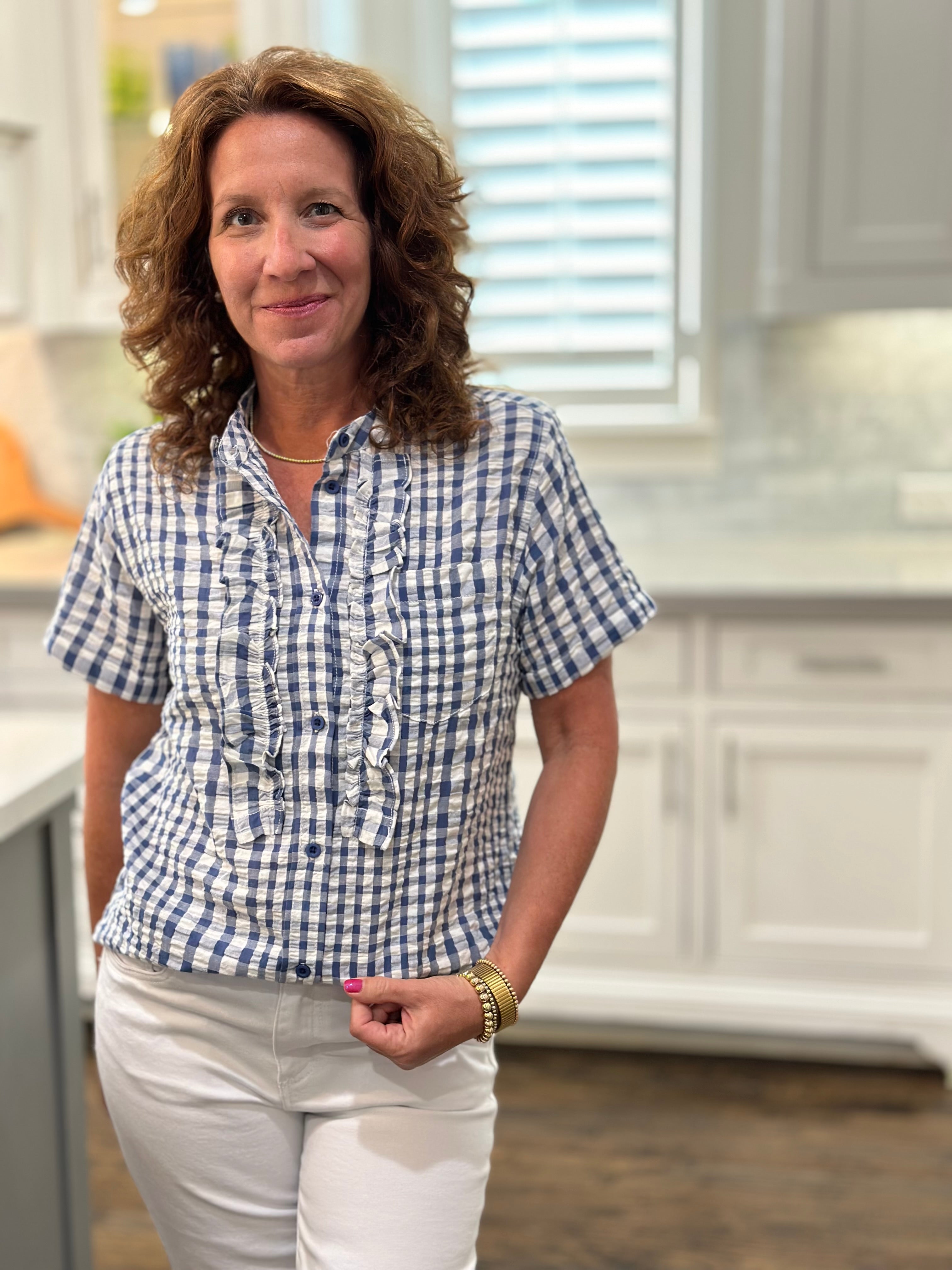 Caryn Lawn Betsy Jacquard Polkadot Top in Navy