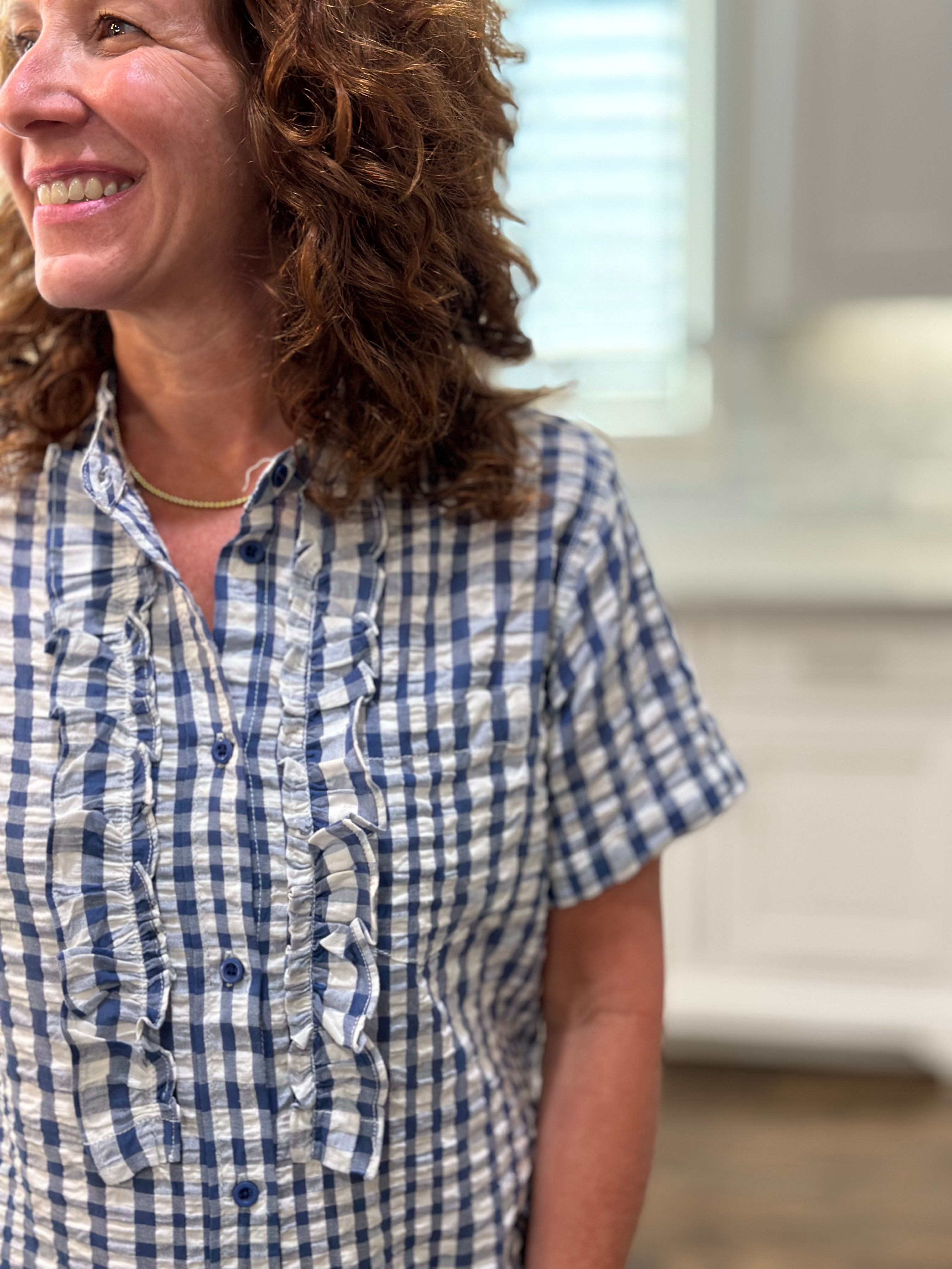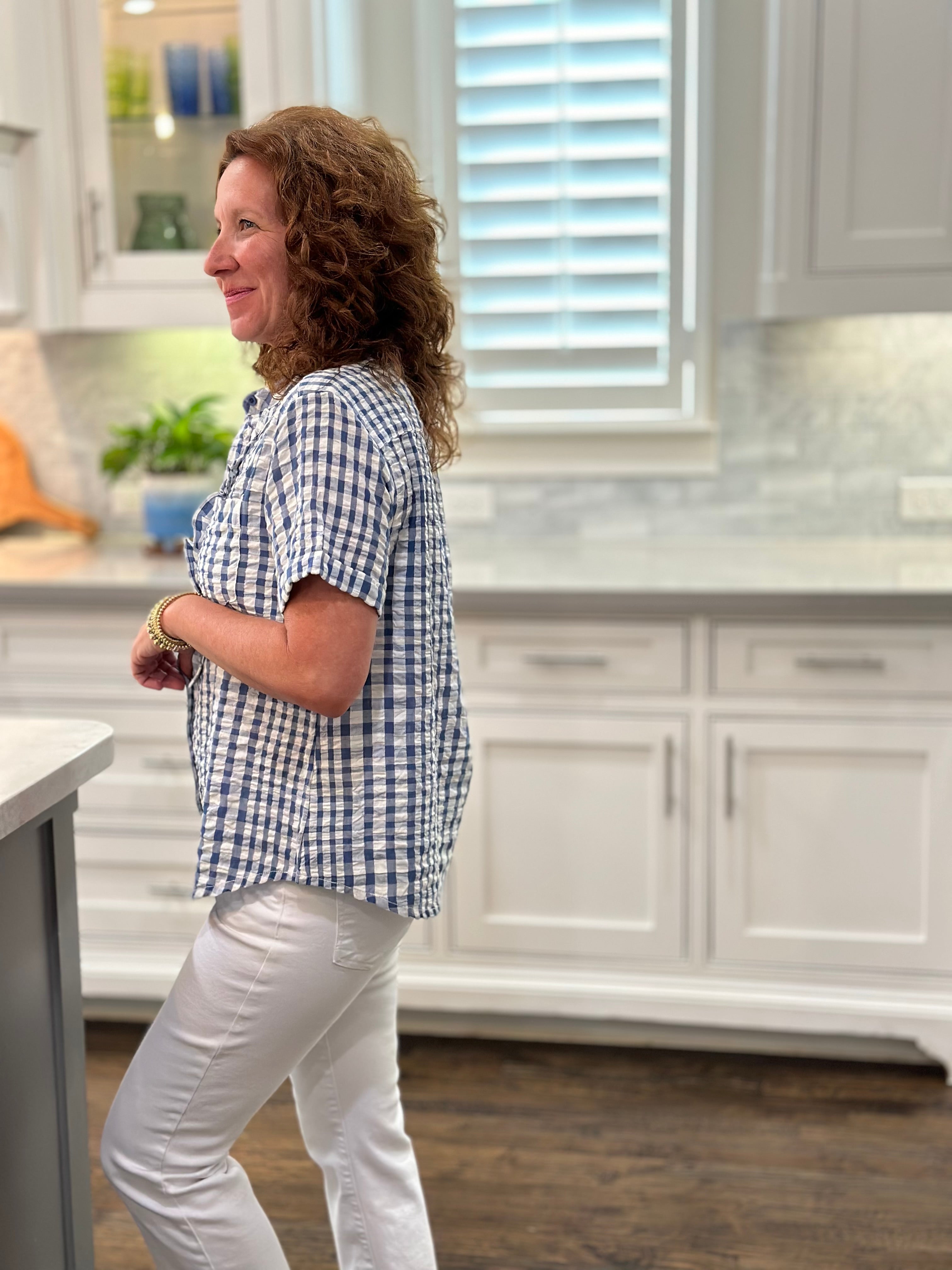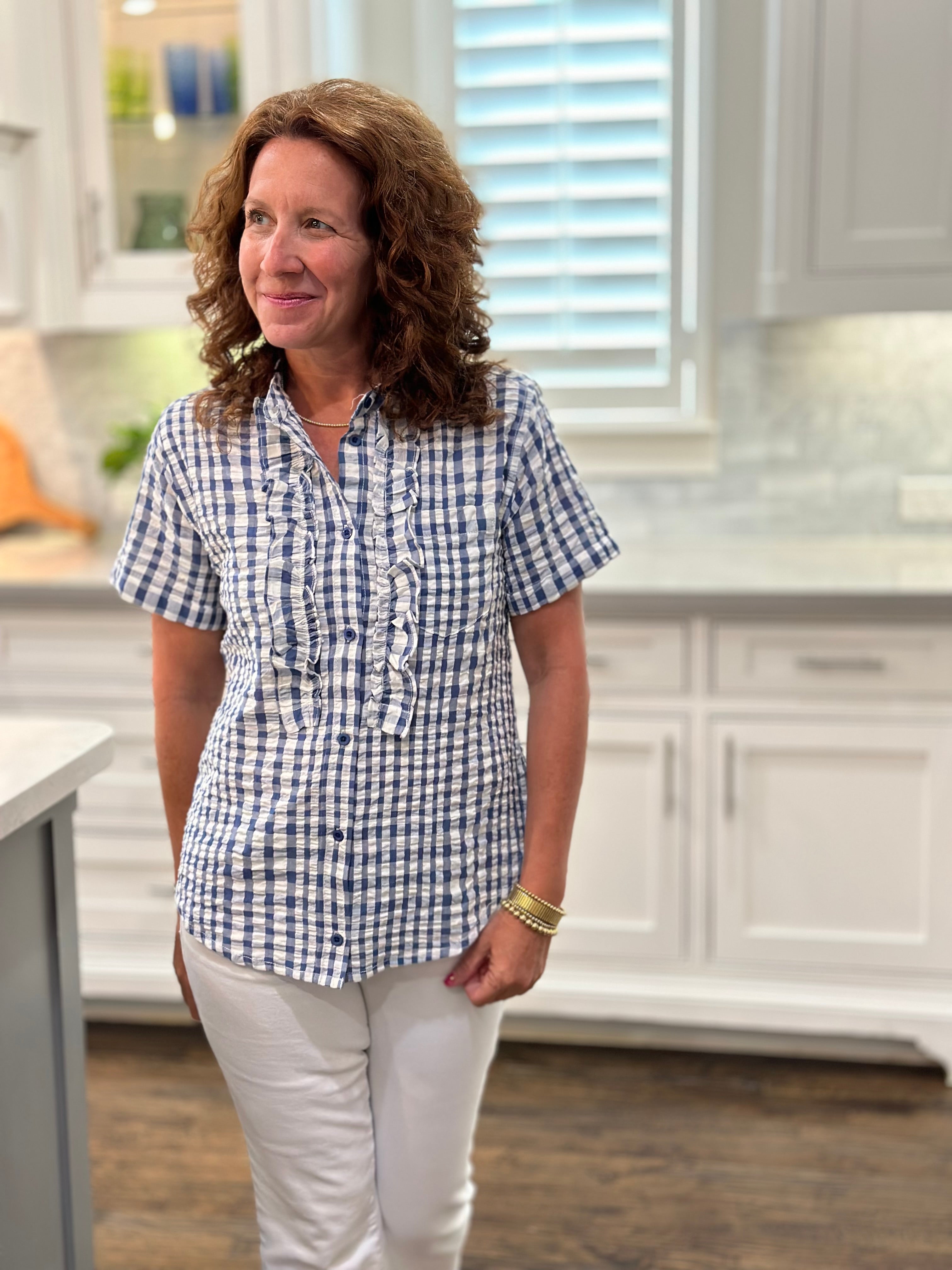 Caryn Lawn Betsy Jacquard Polkadot Top in Navy