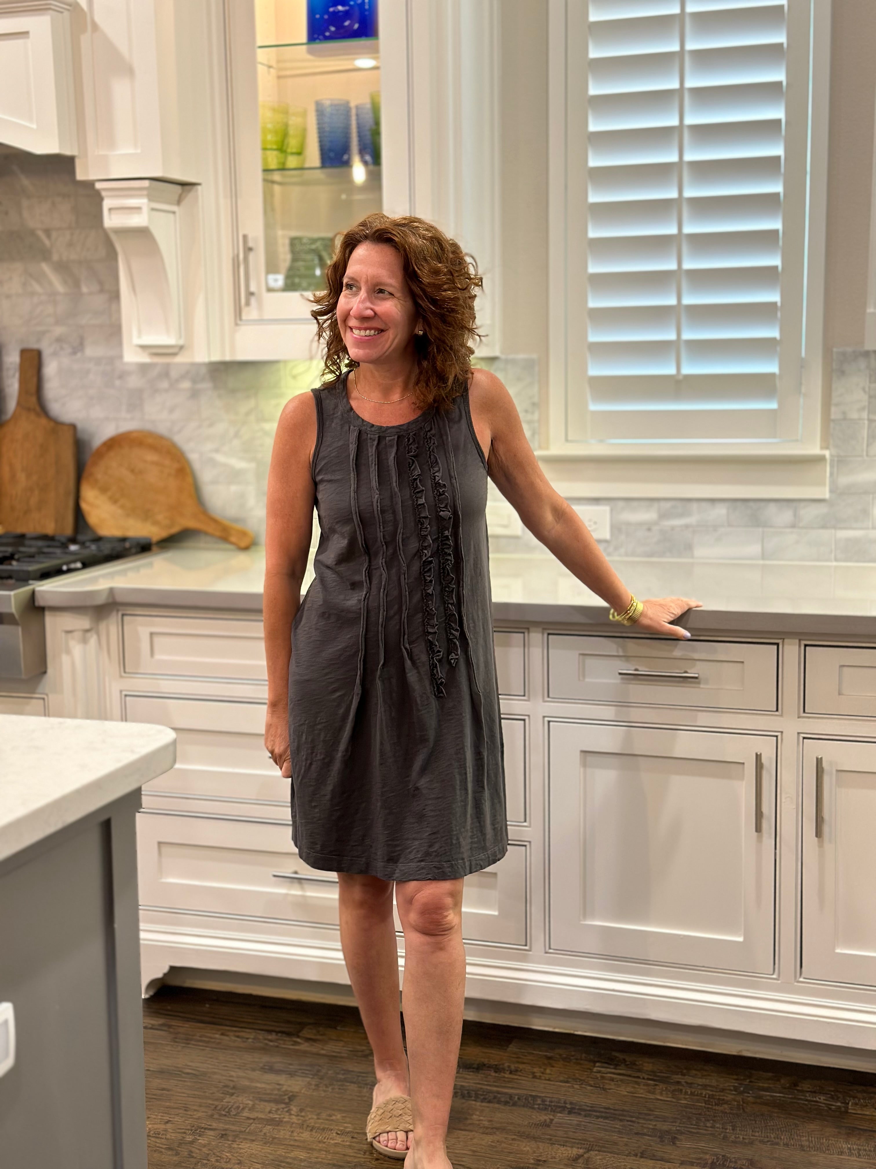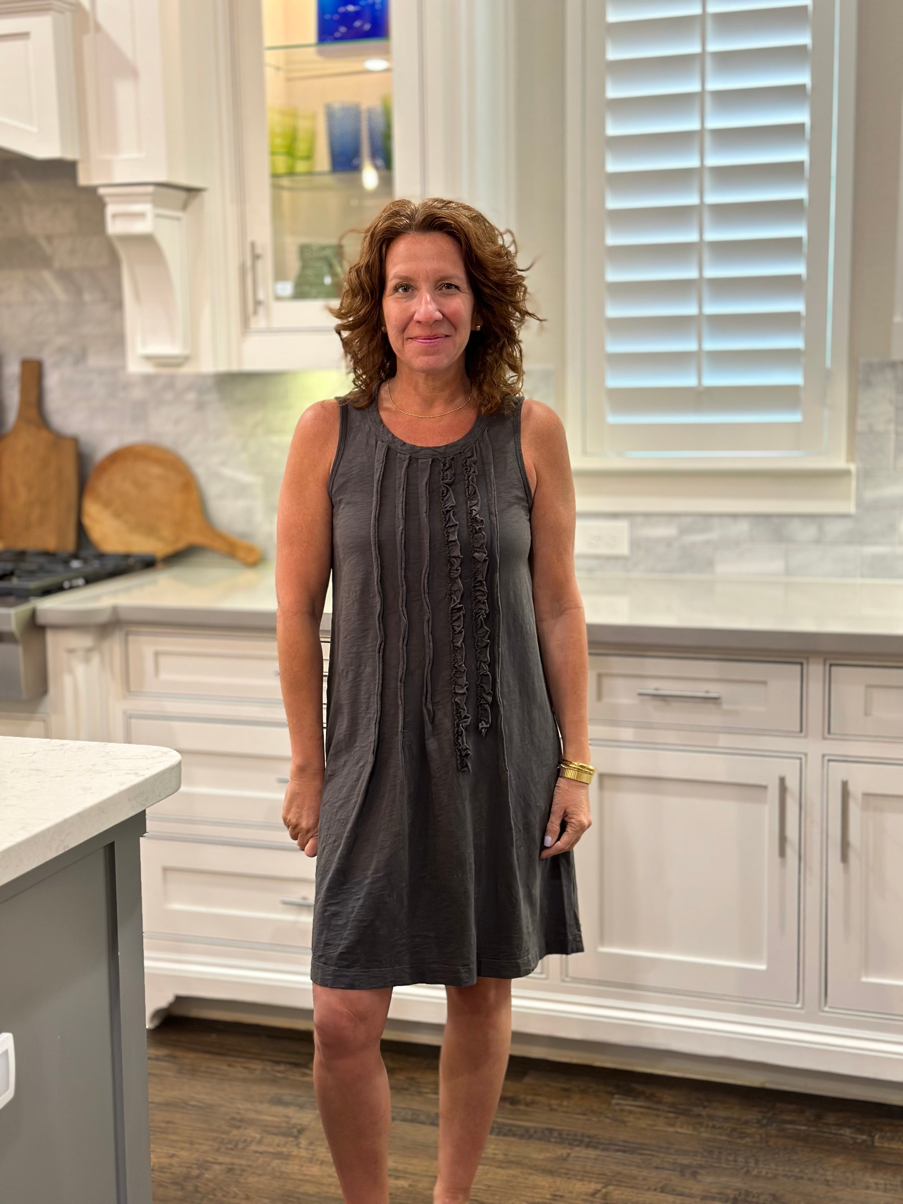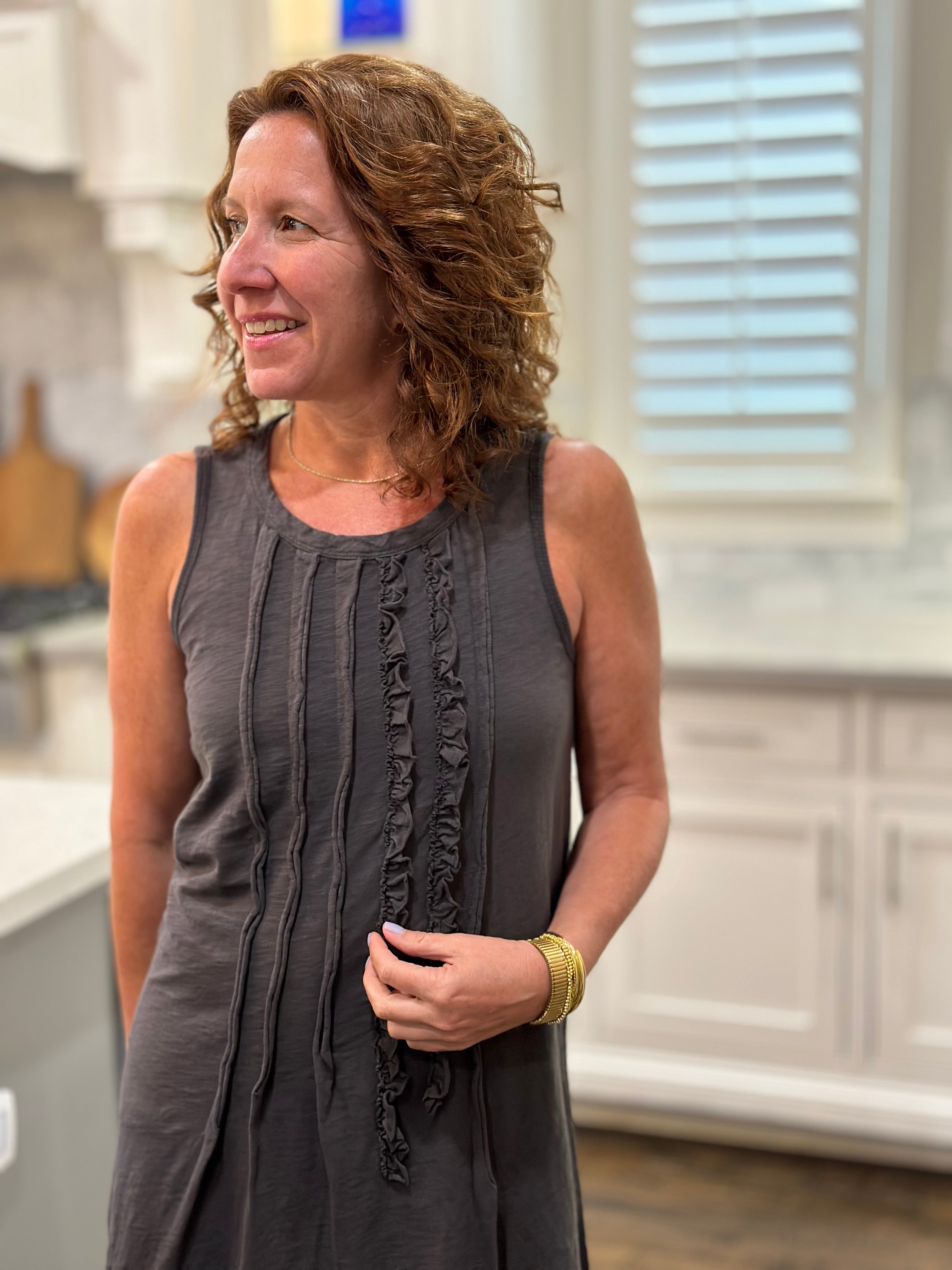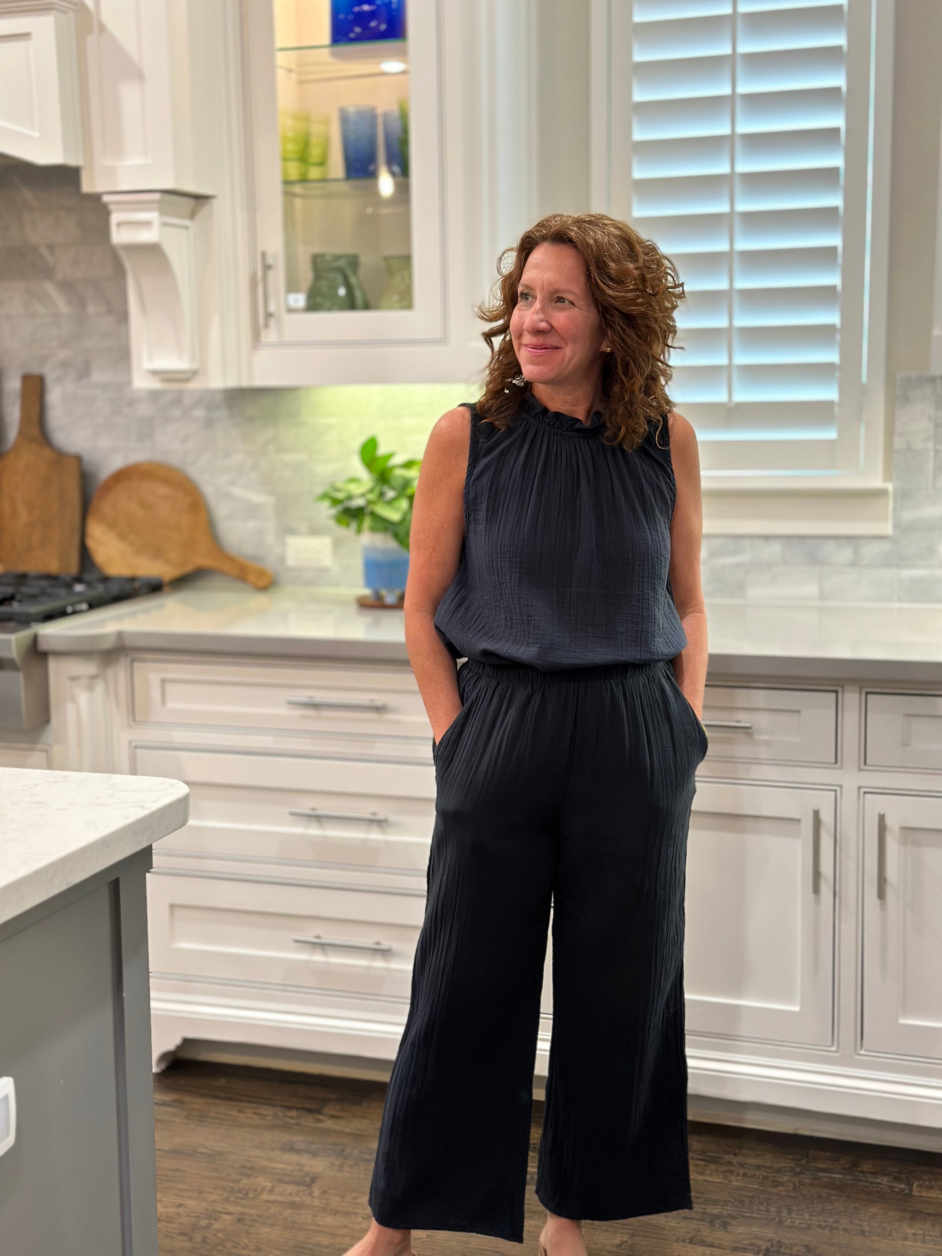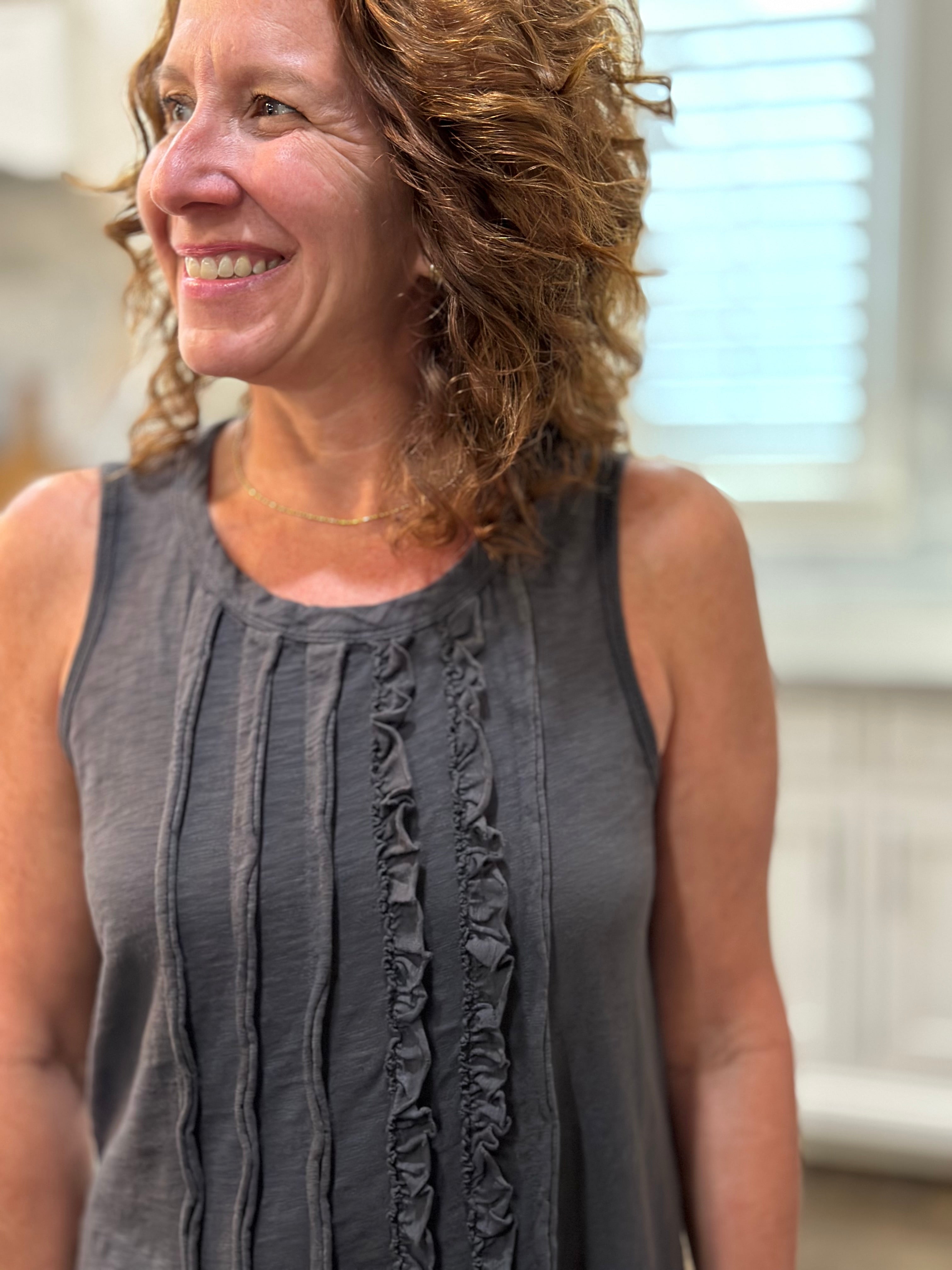 Dylan Gauze Ruffle Neck Sleeveless Top in Soft Black