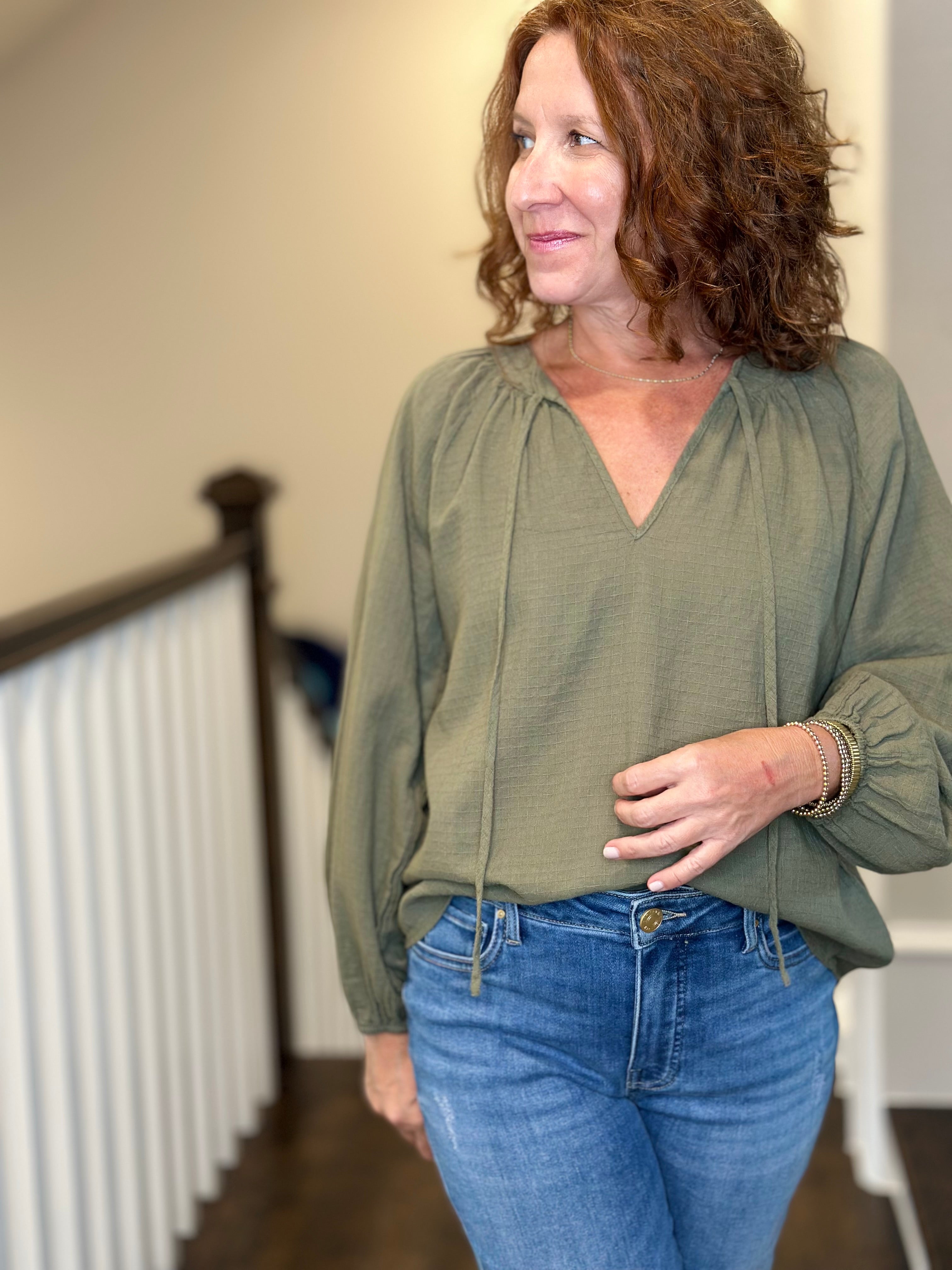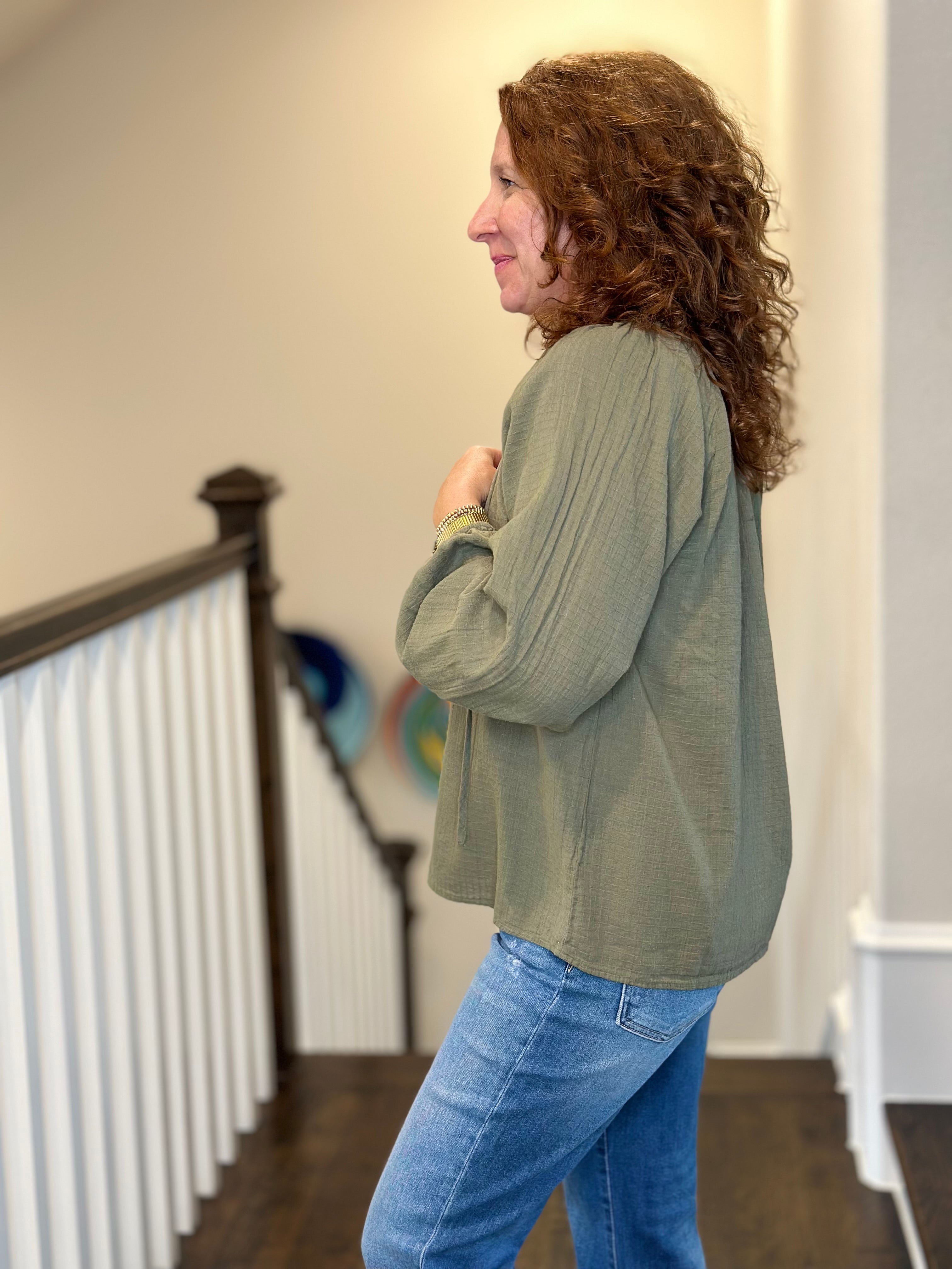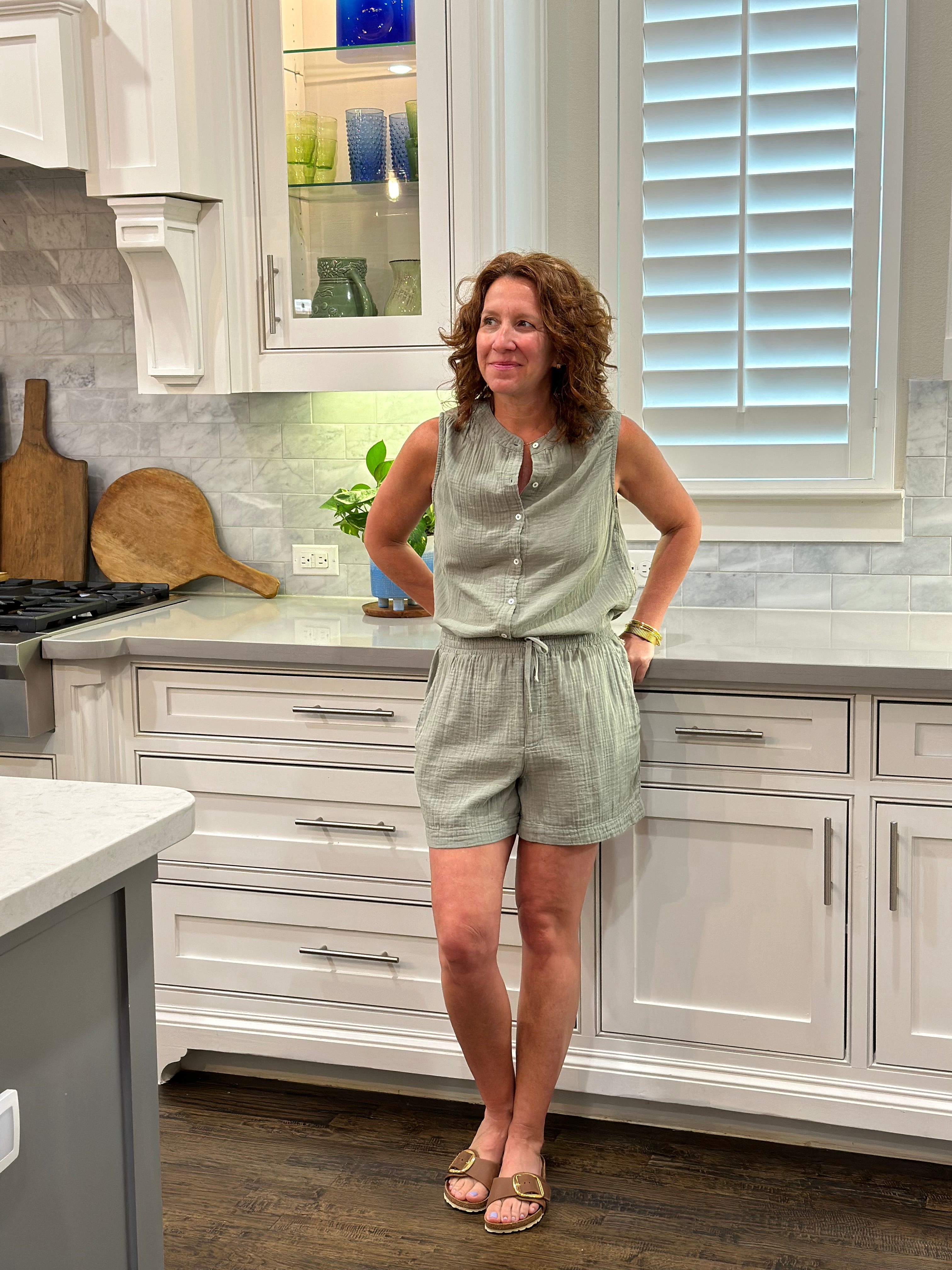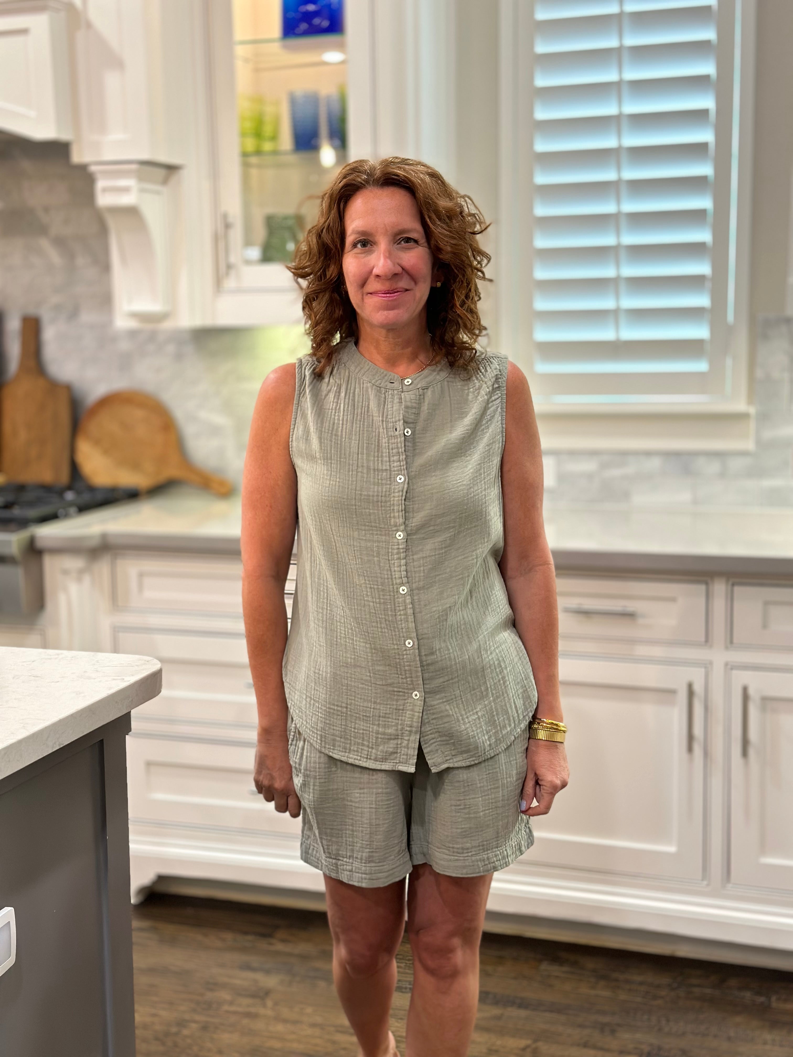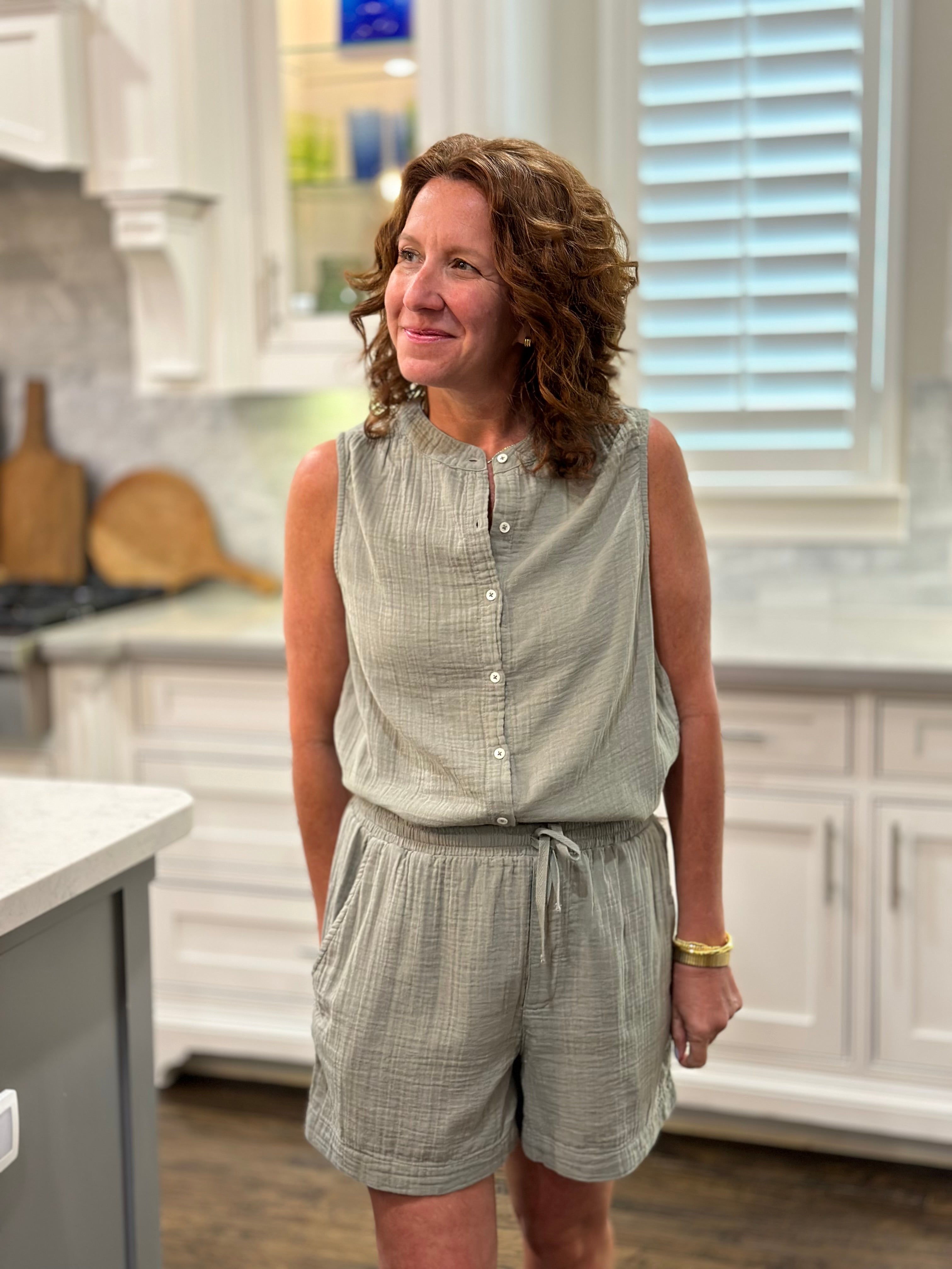 Dylan Gauze Drawstring Short in Sage (5" Inseam)