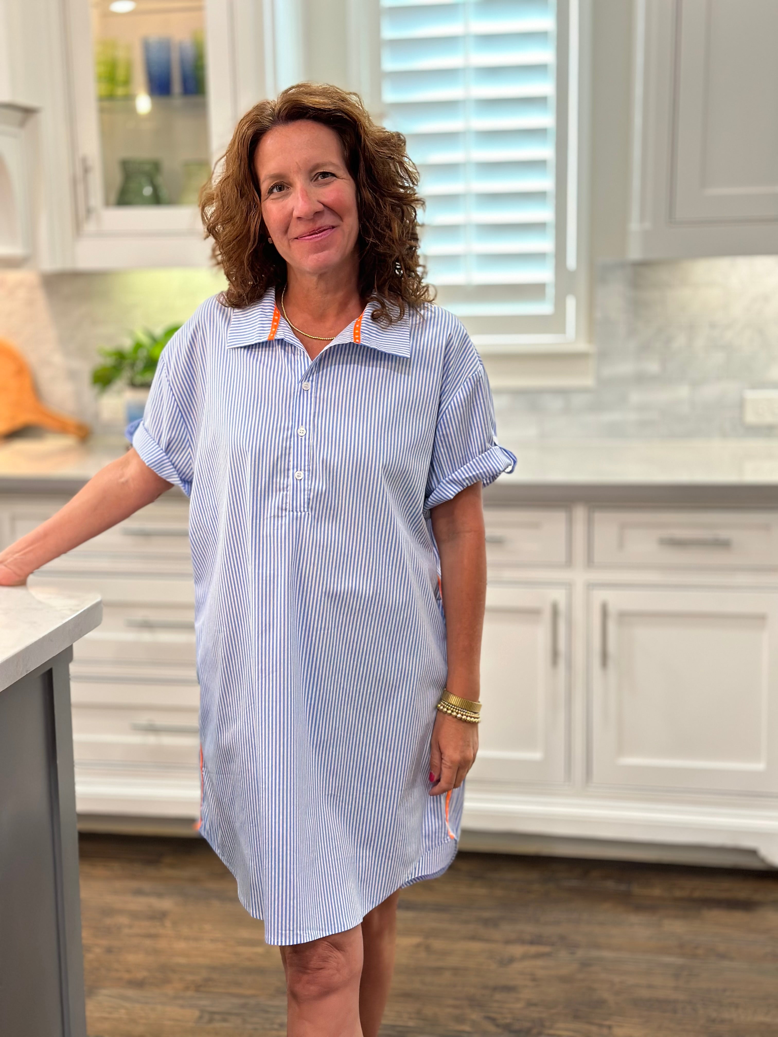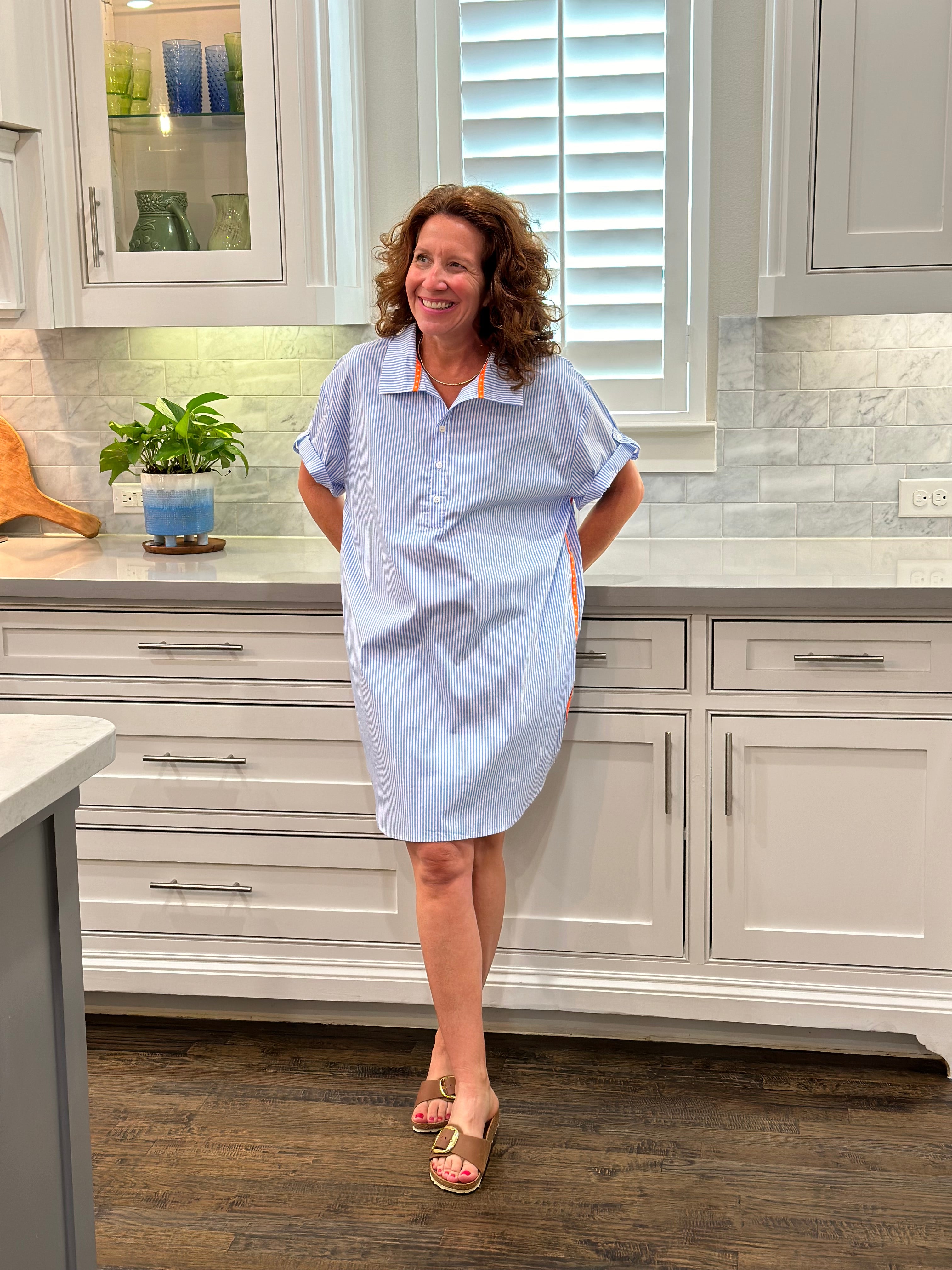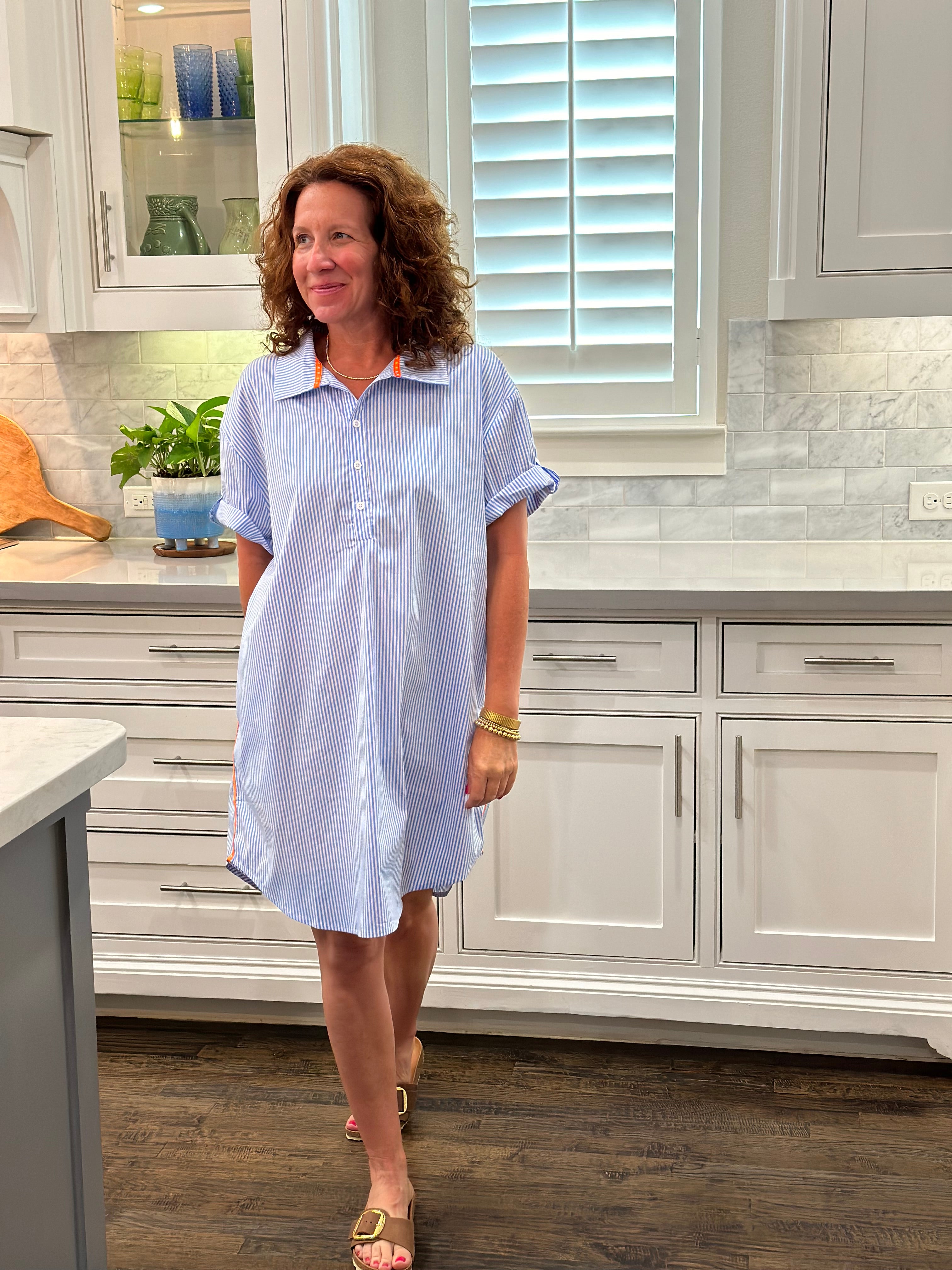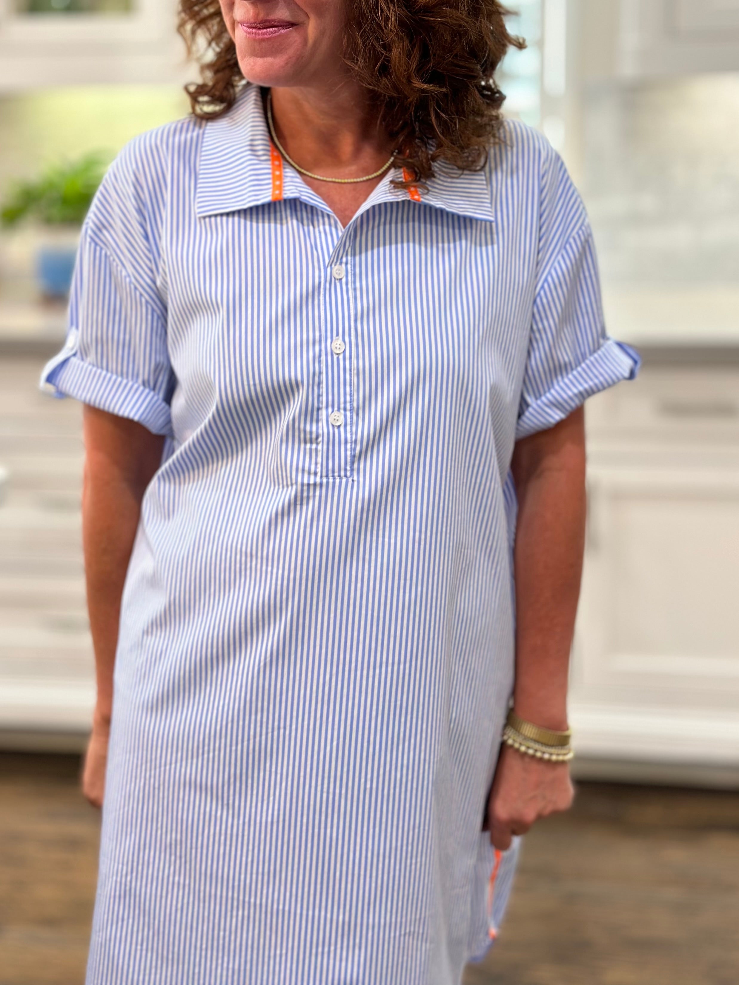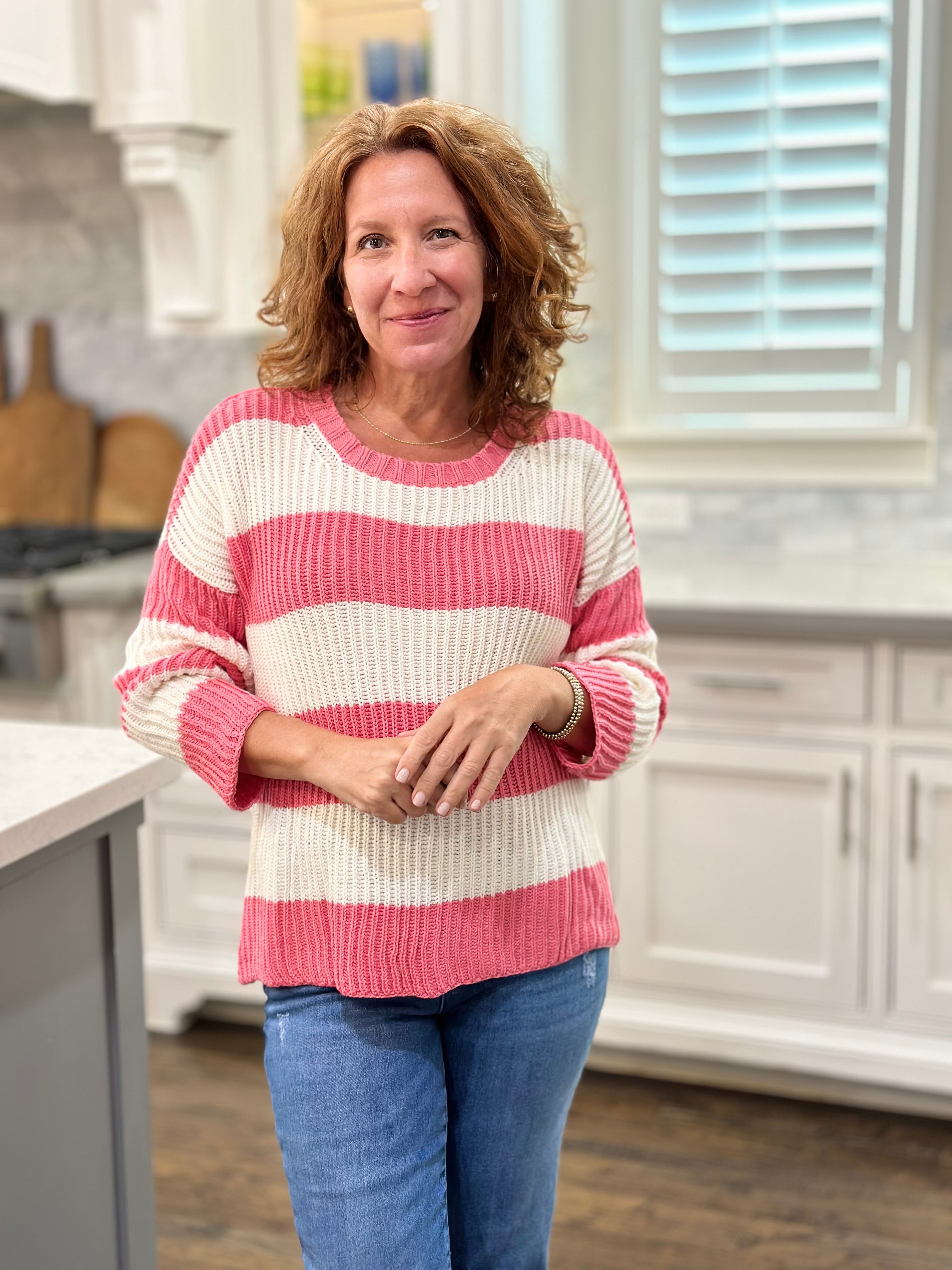 Wooden Ships Foster Striped Crew Cotton in Fierce Pink & Breaker White