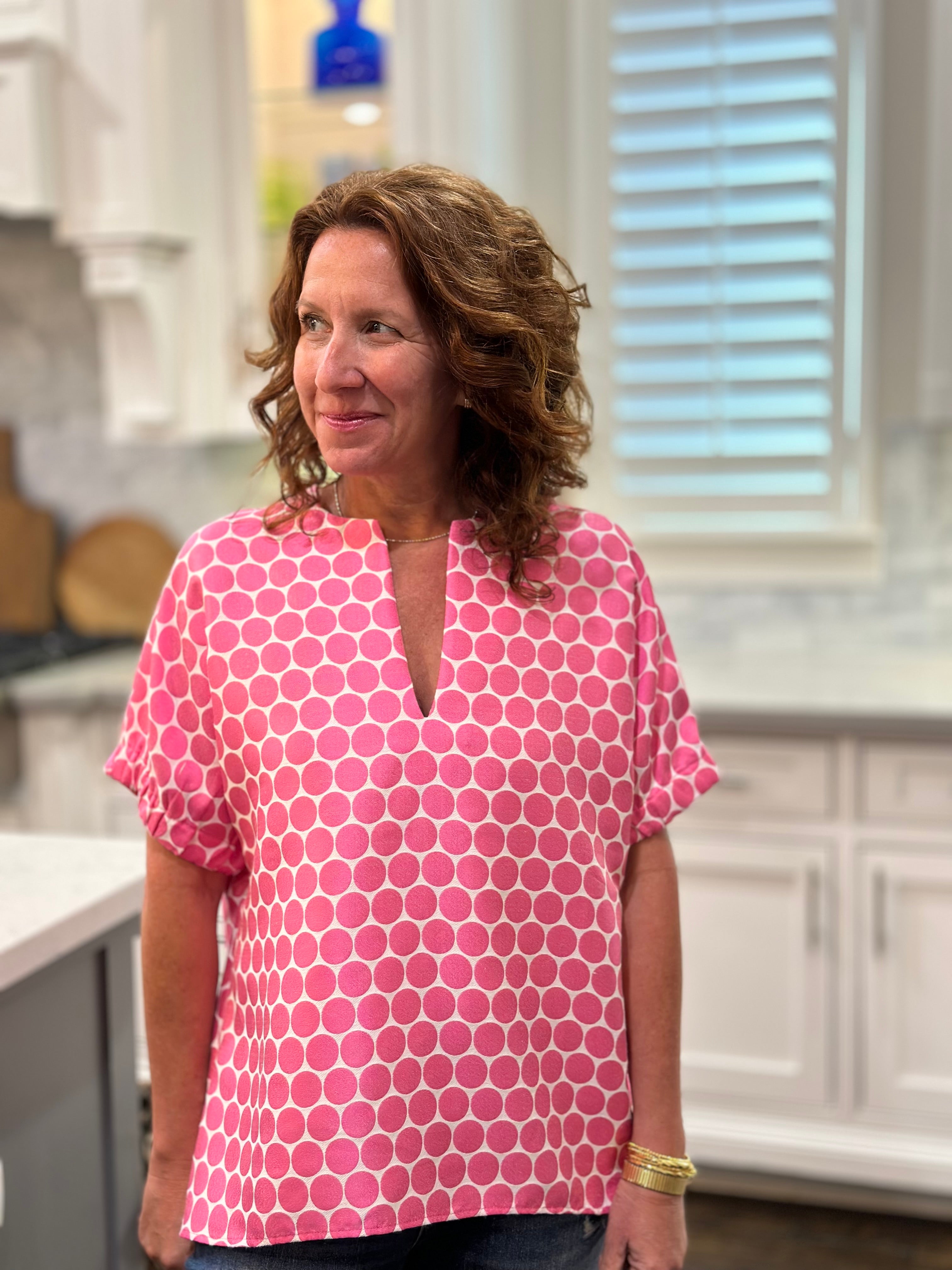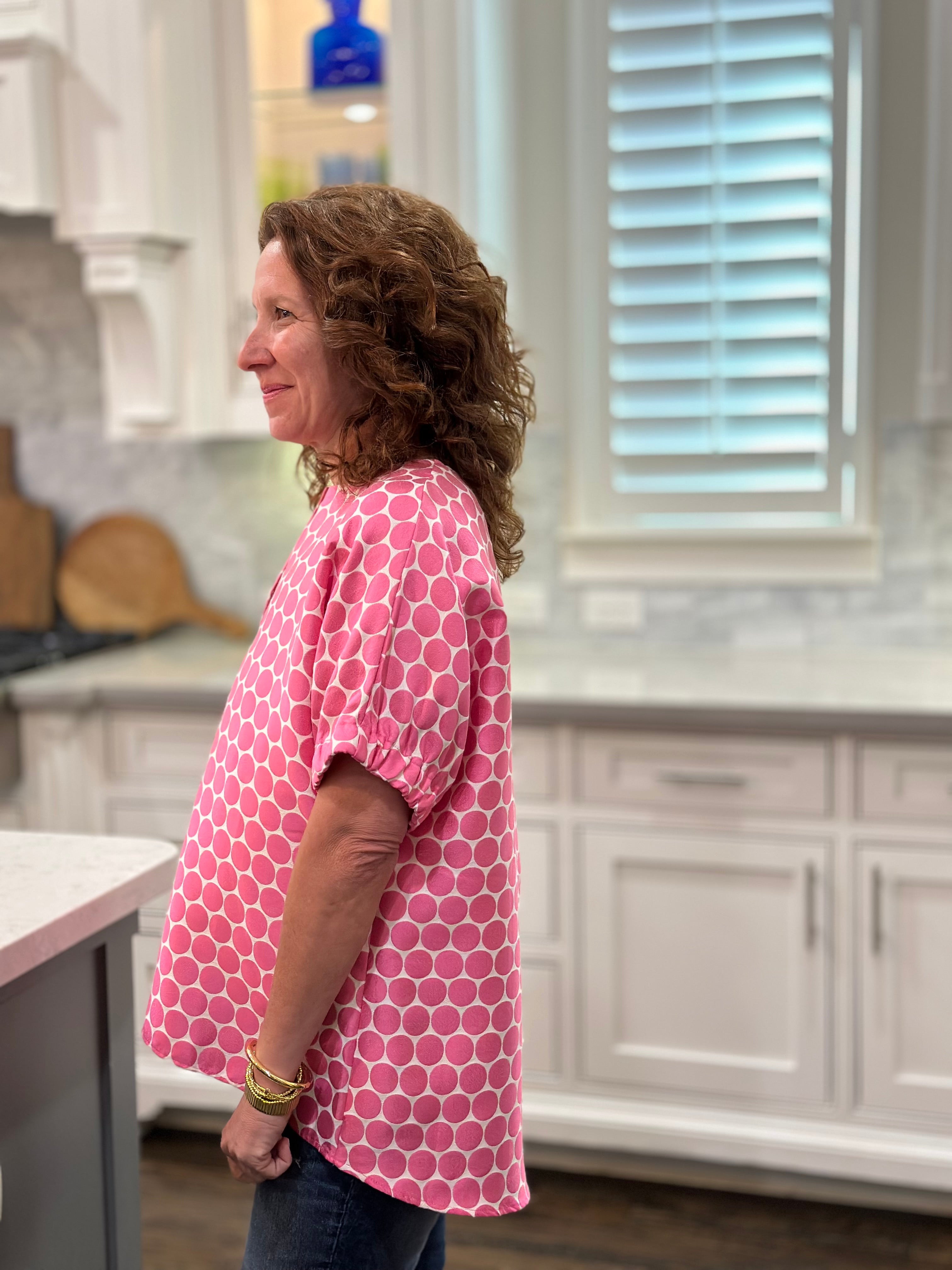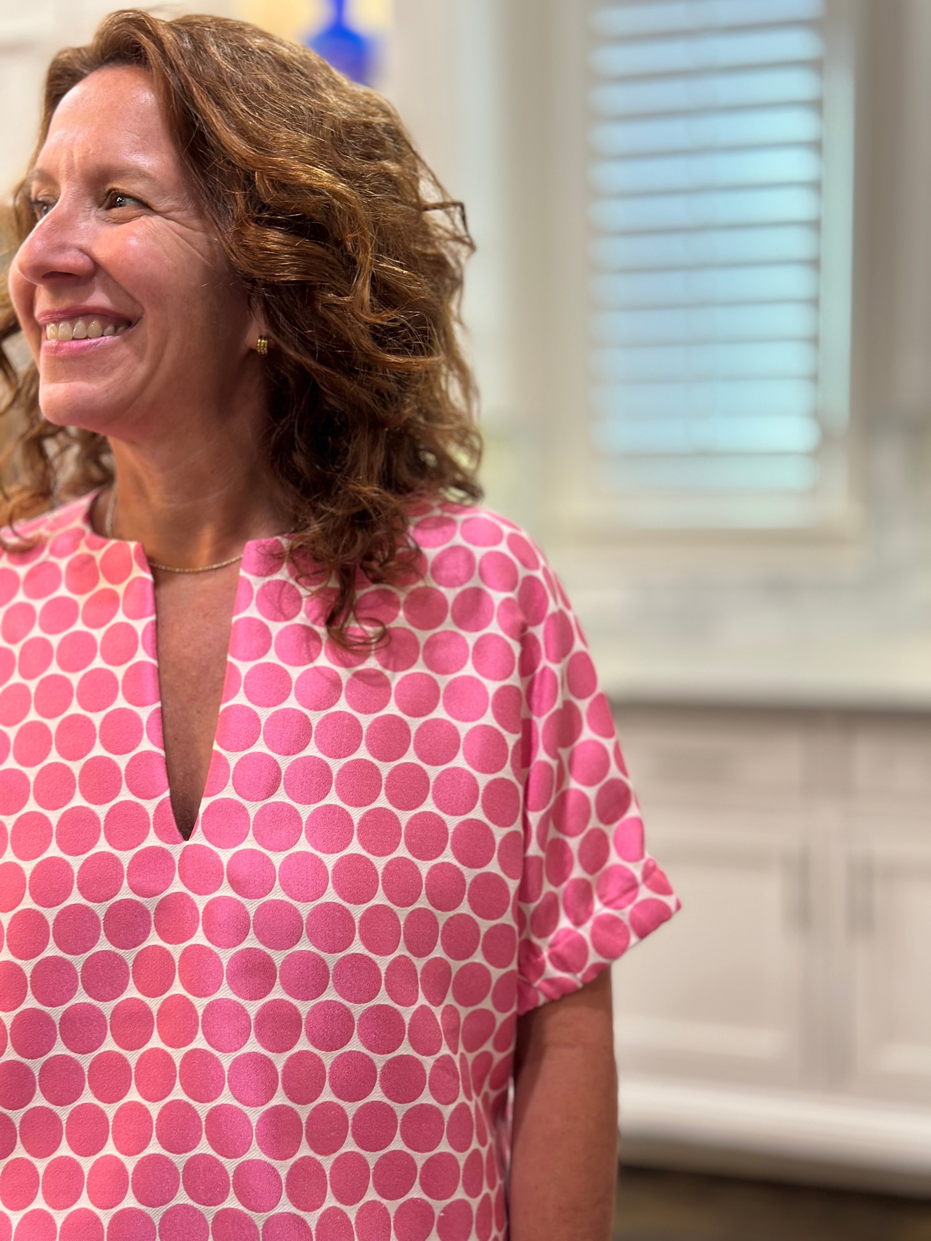Caryn Lawn Betsy Jacquard Polkadot Top in Pink