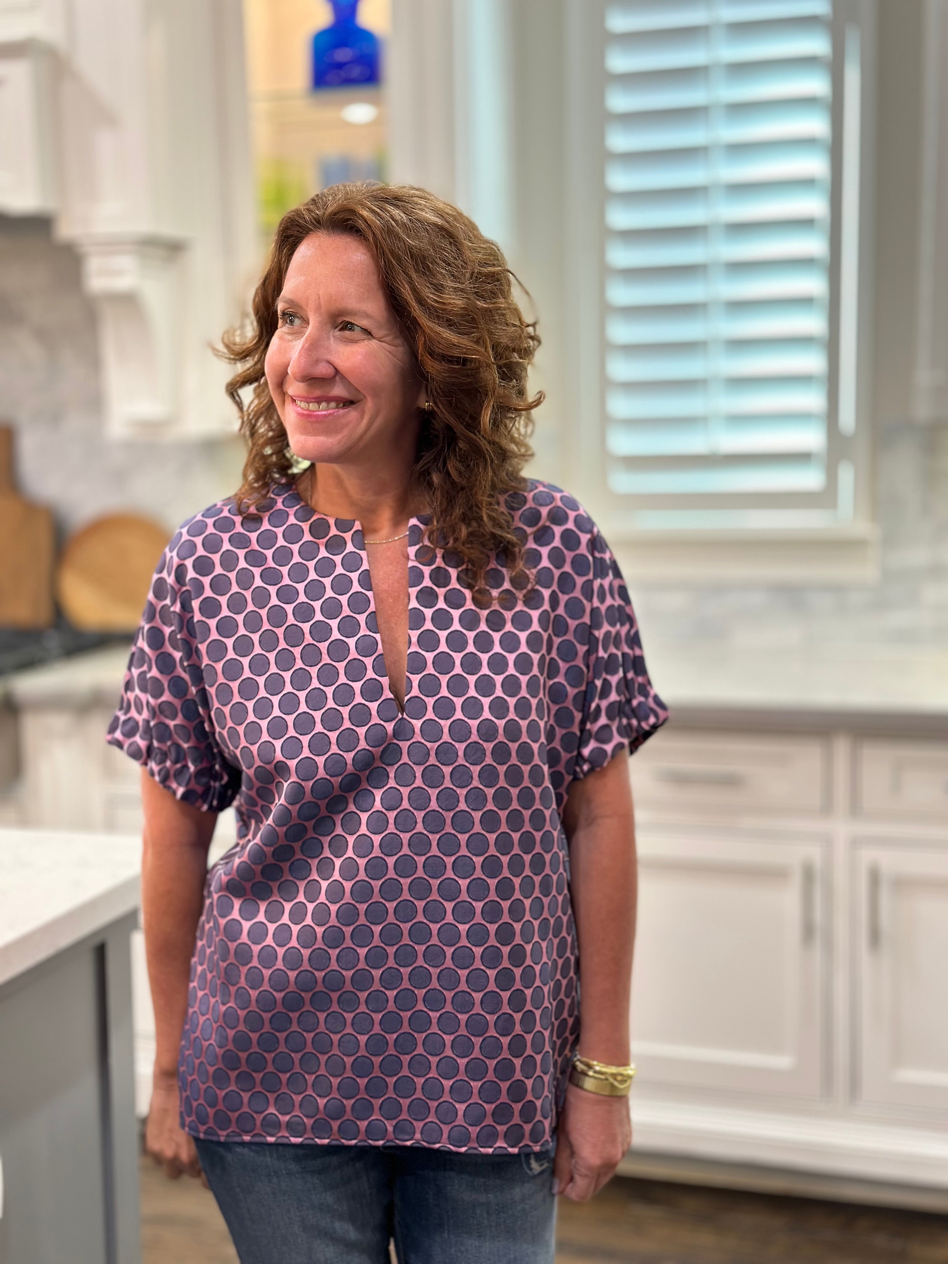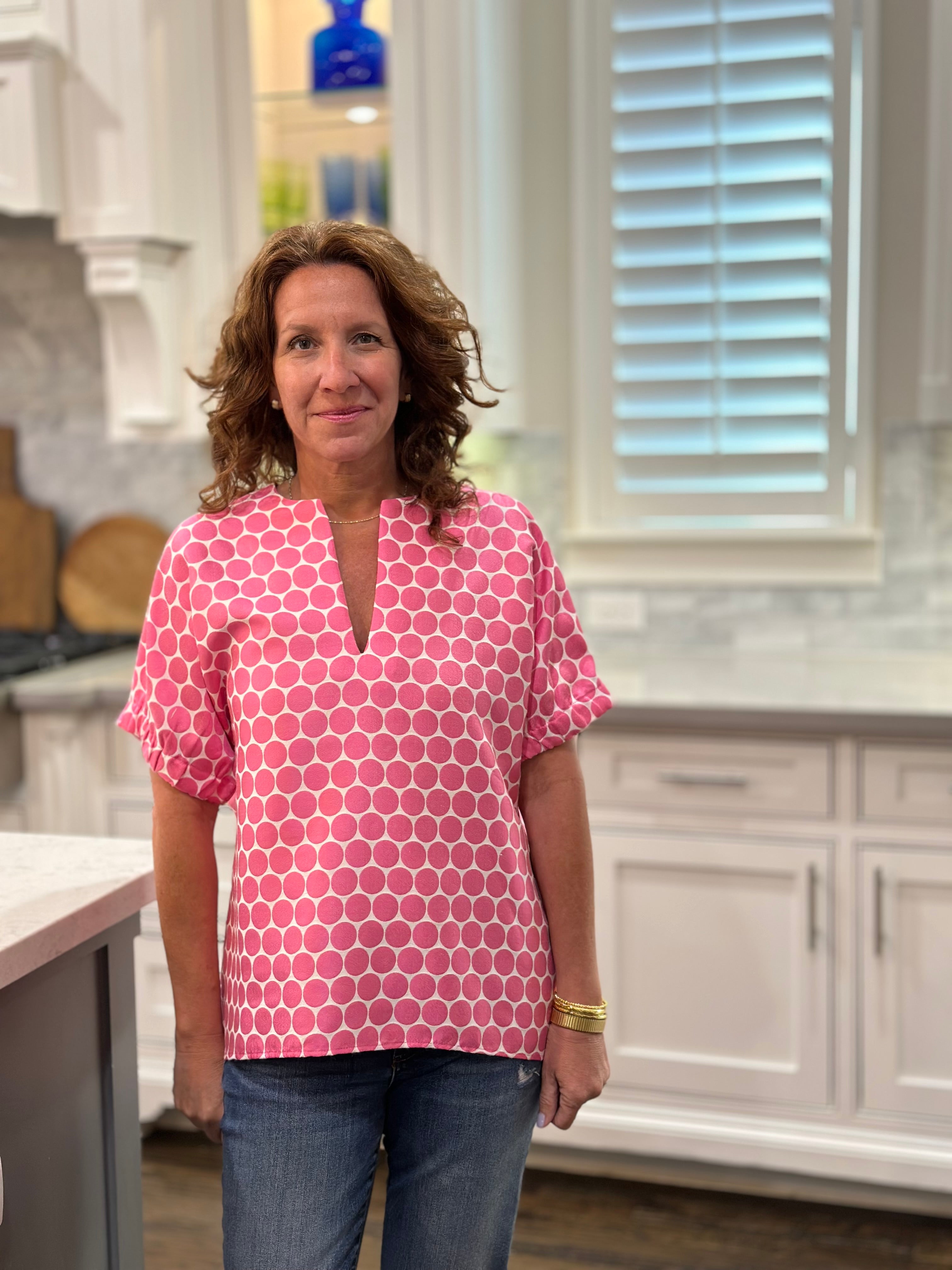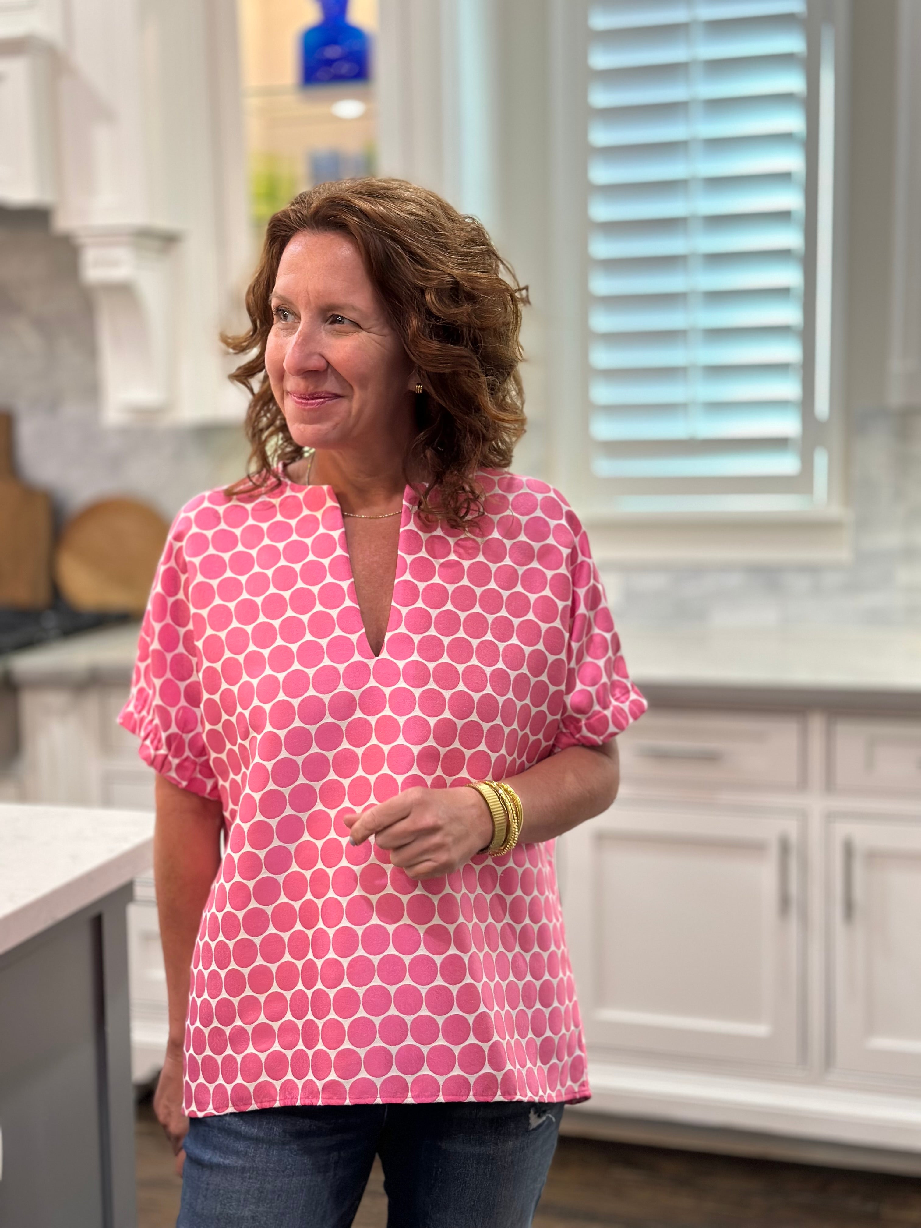 Caryn Lawn Betsy Jacquard Polkadot Top in Pink