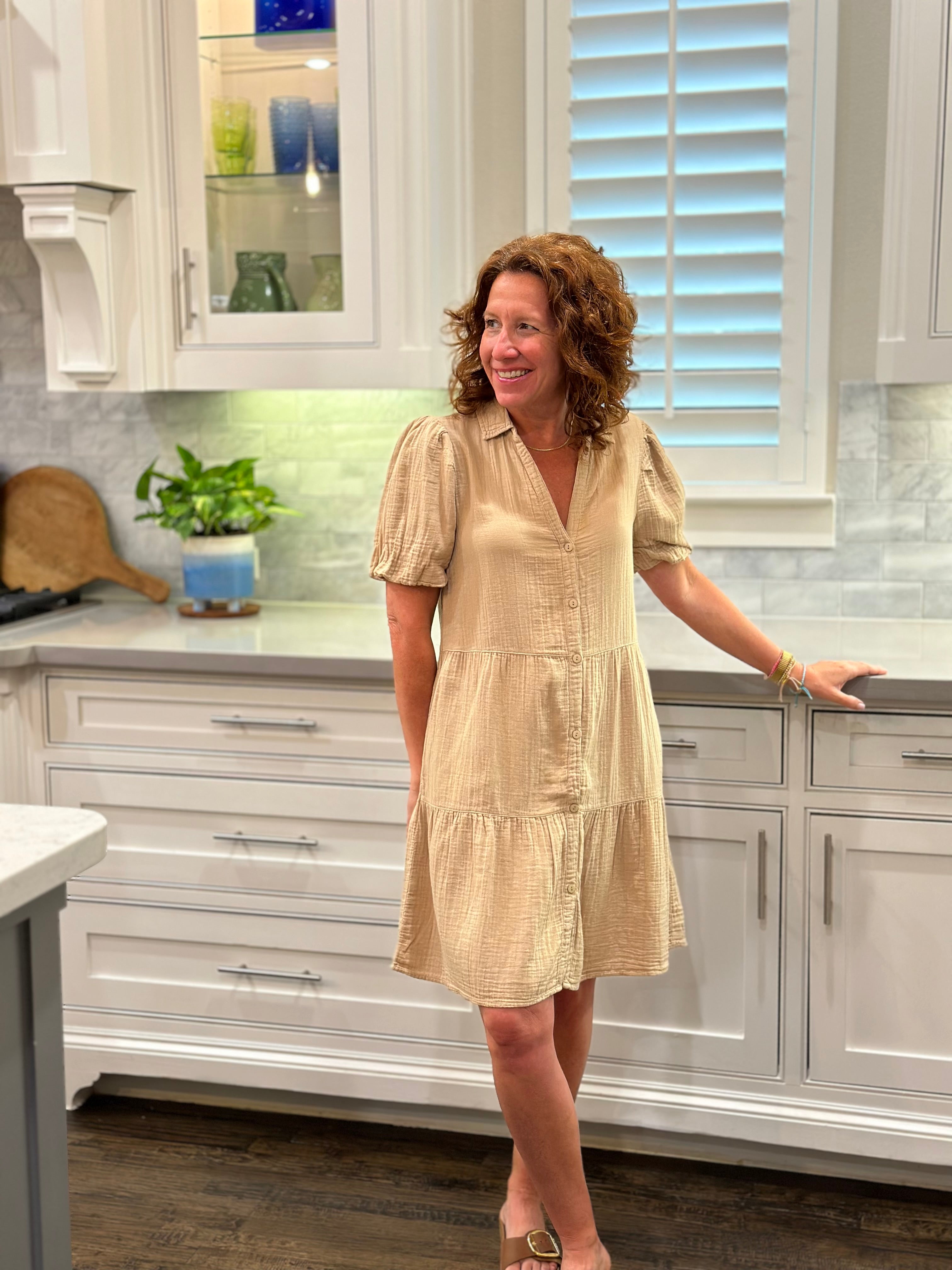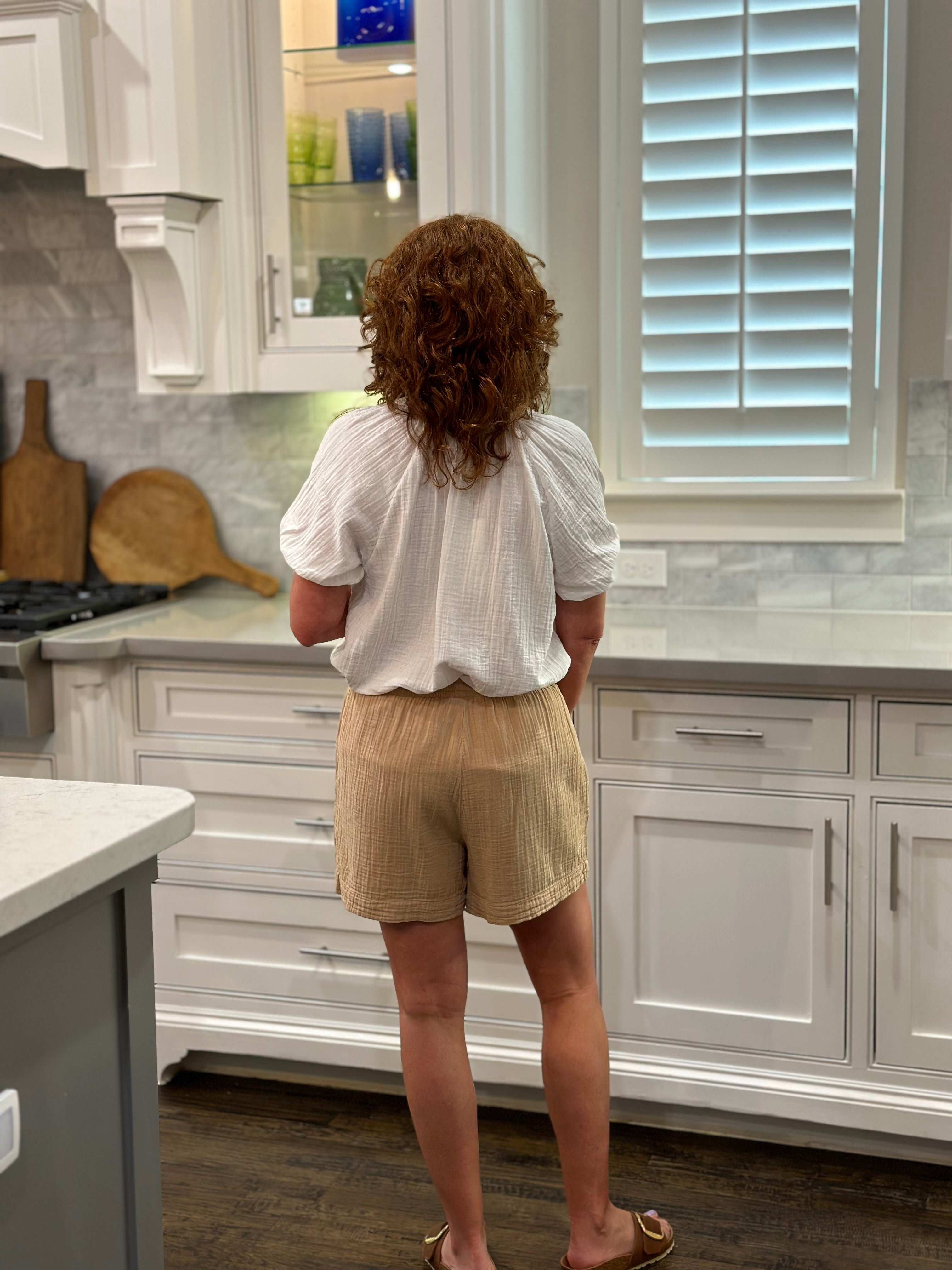 Dylan Gauze Drawstring Short in Khaki (5" Inseam)
