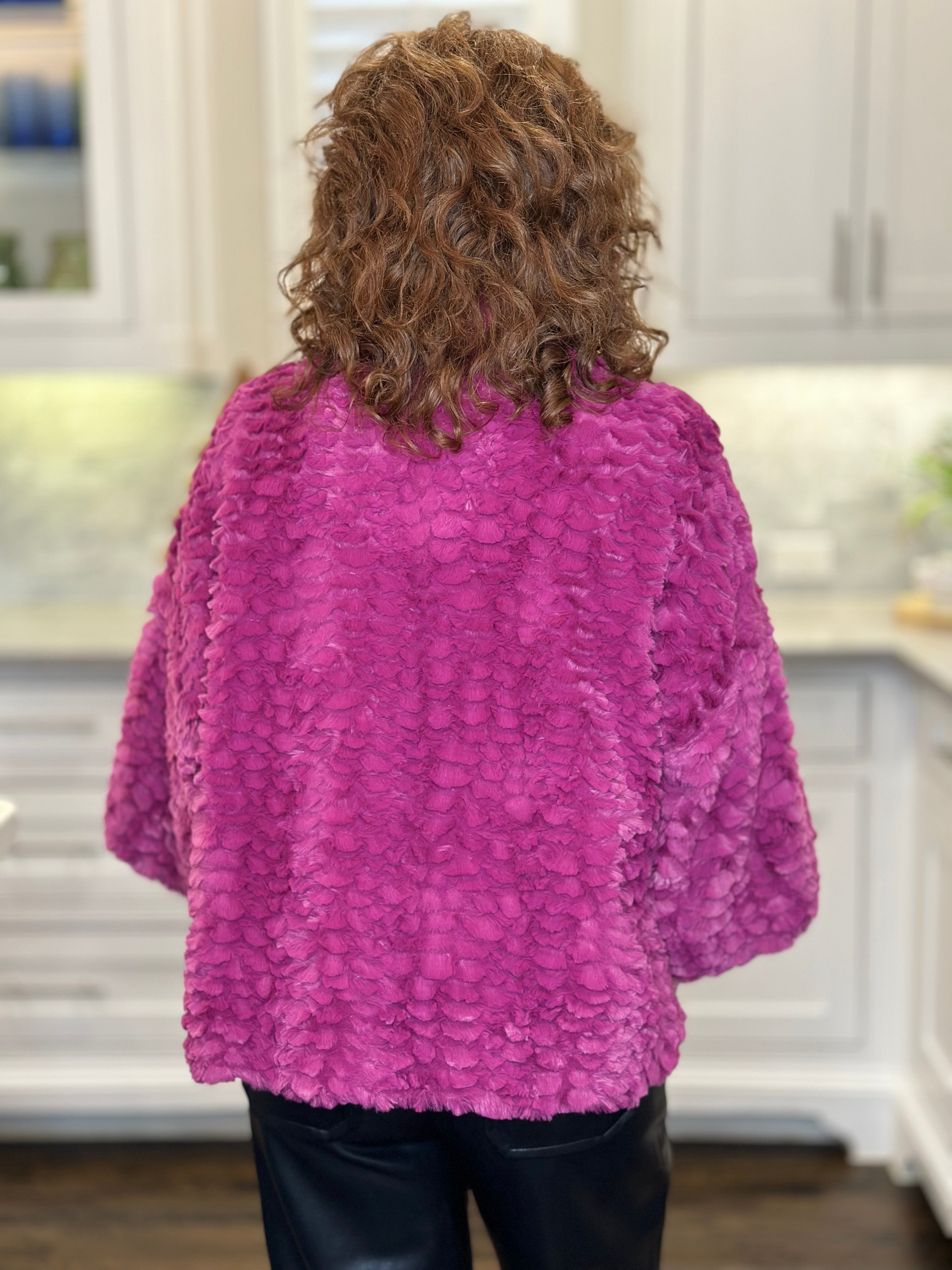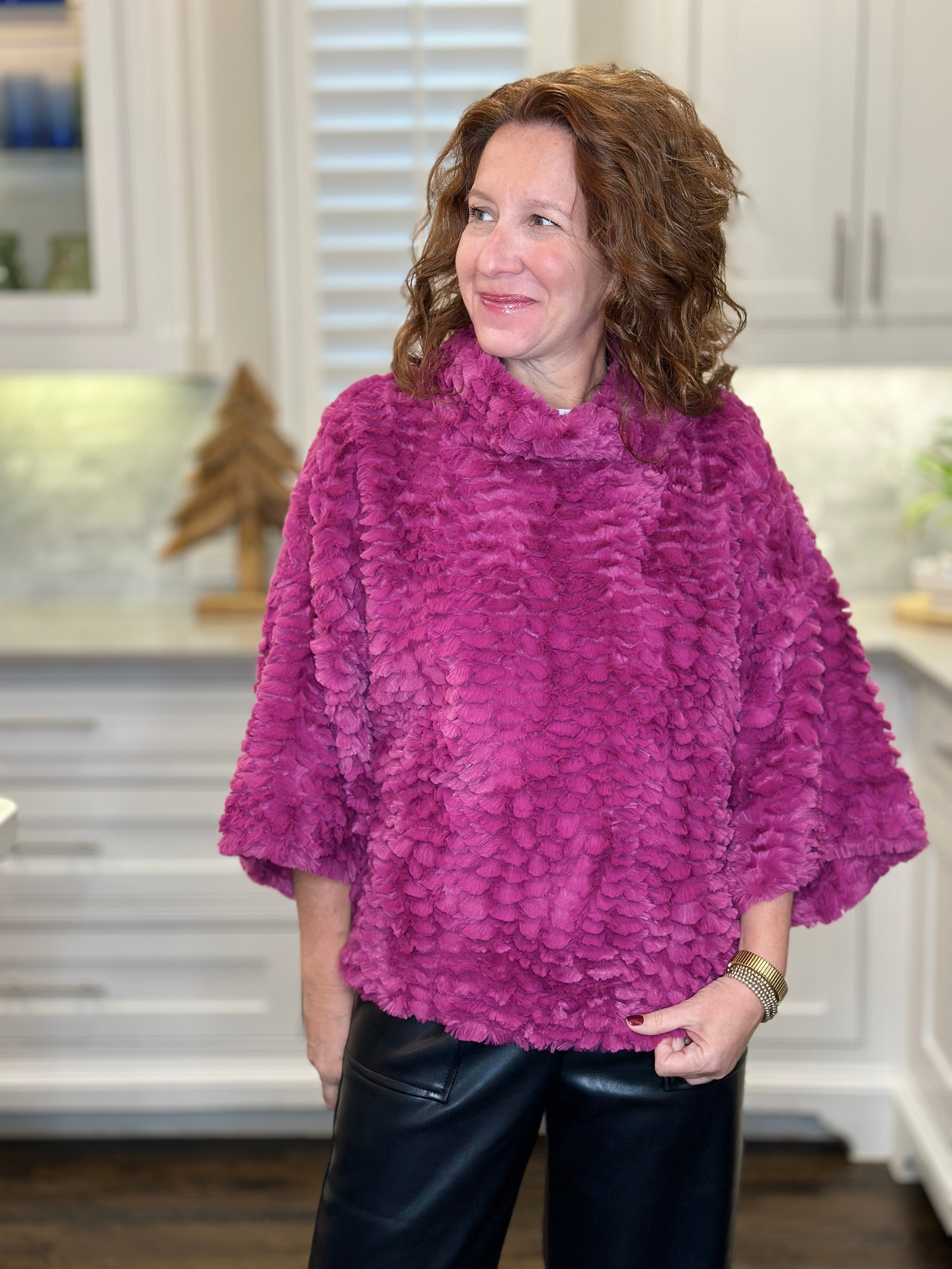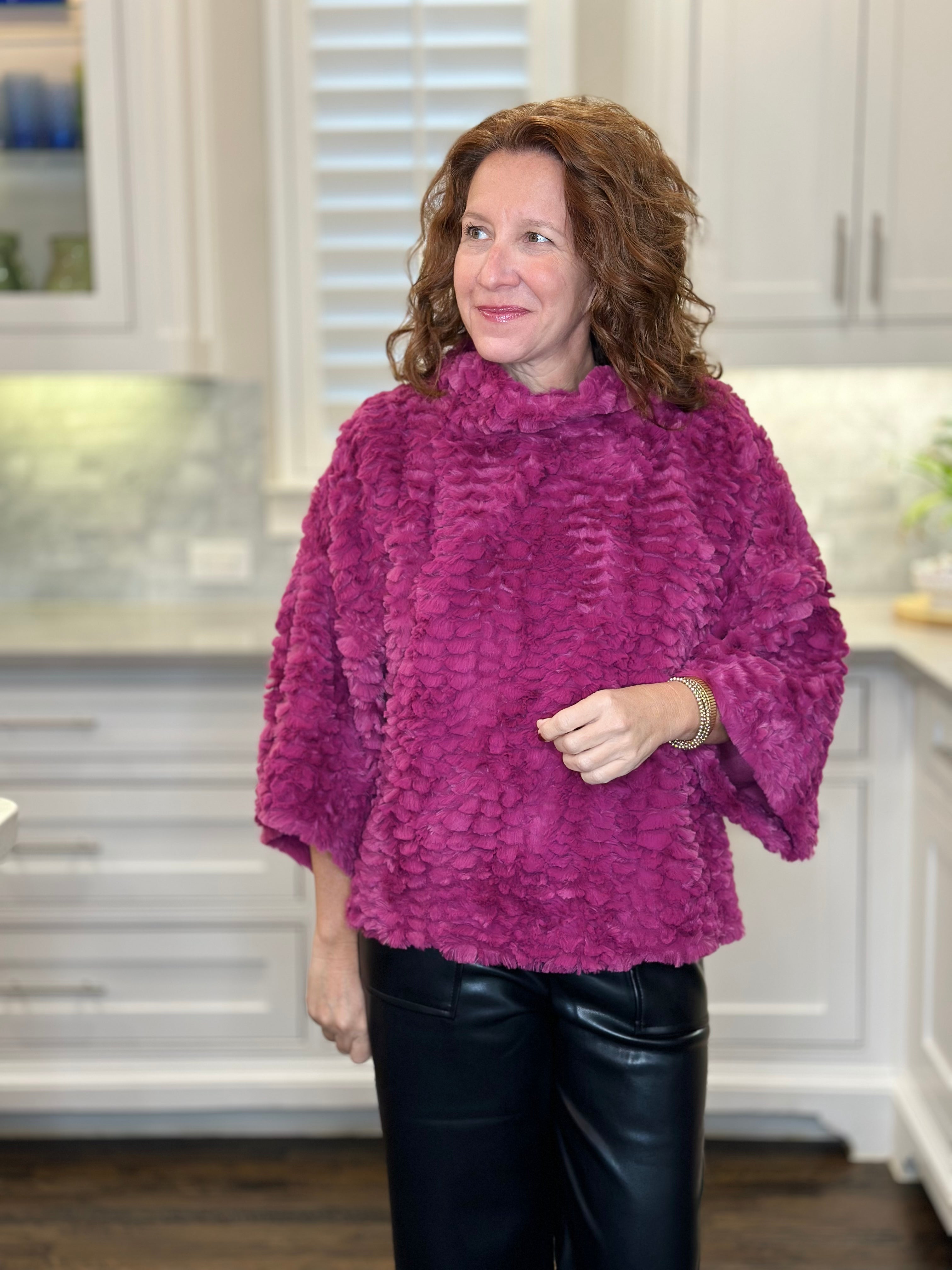 Ivy Jane Feather Faux Fur Popover in Claret