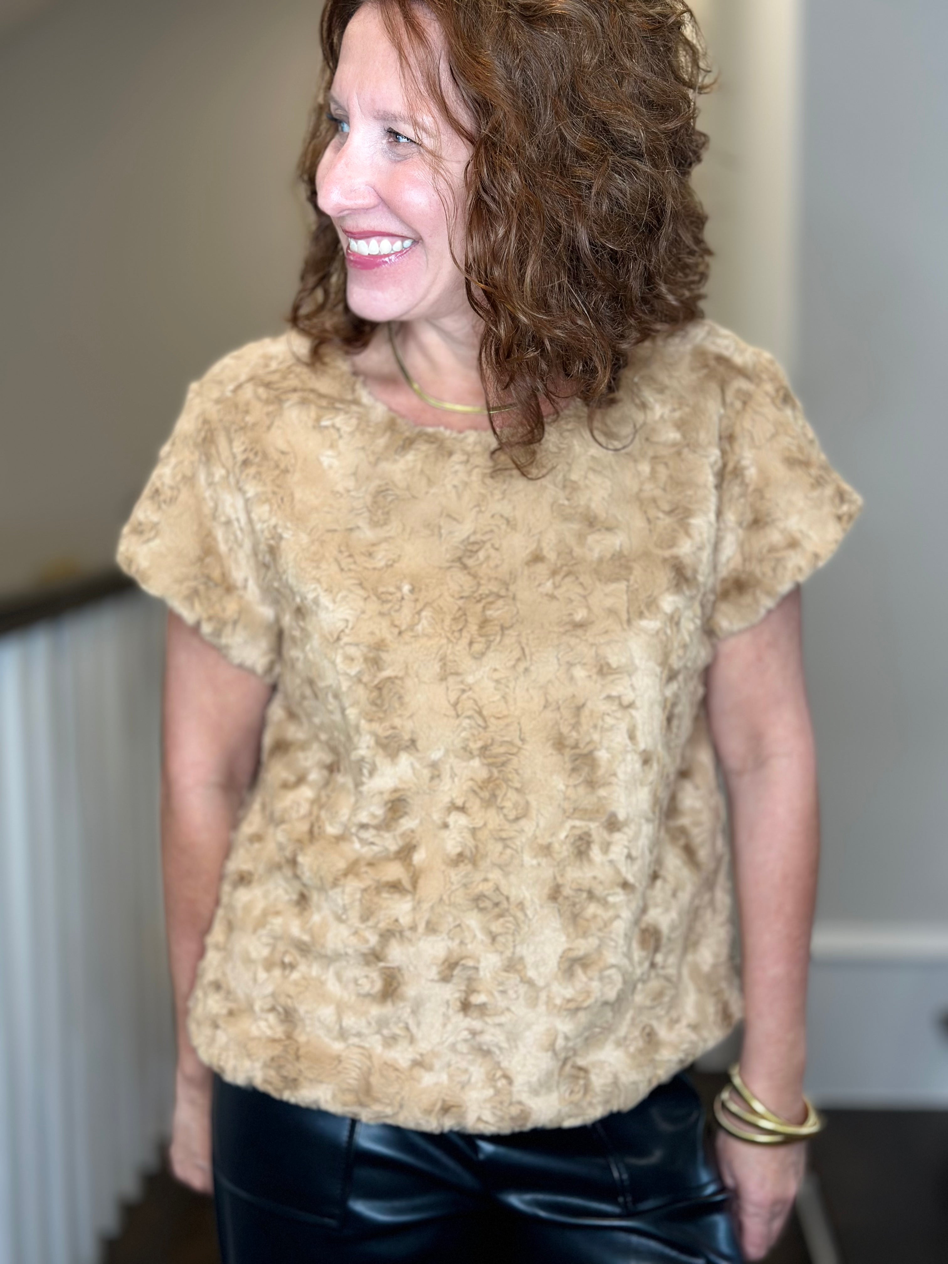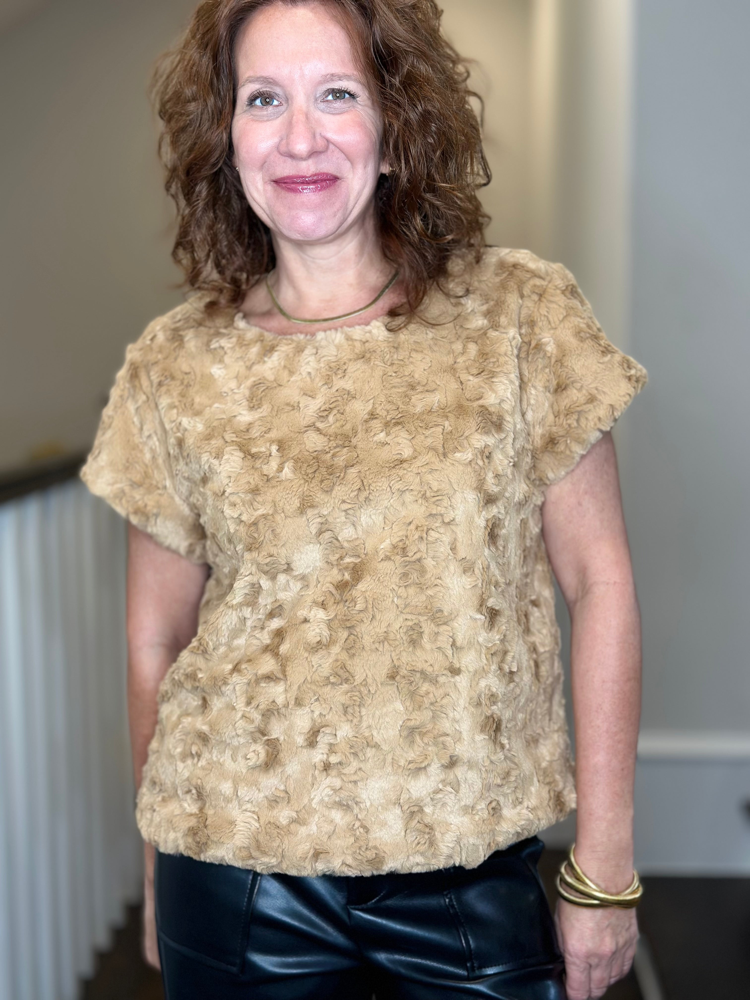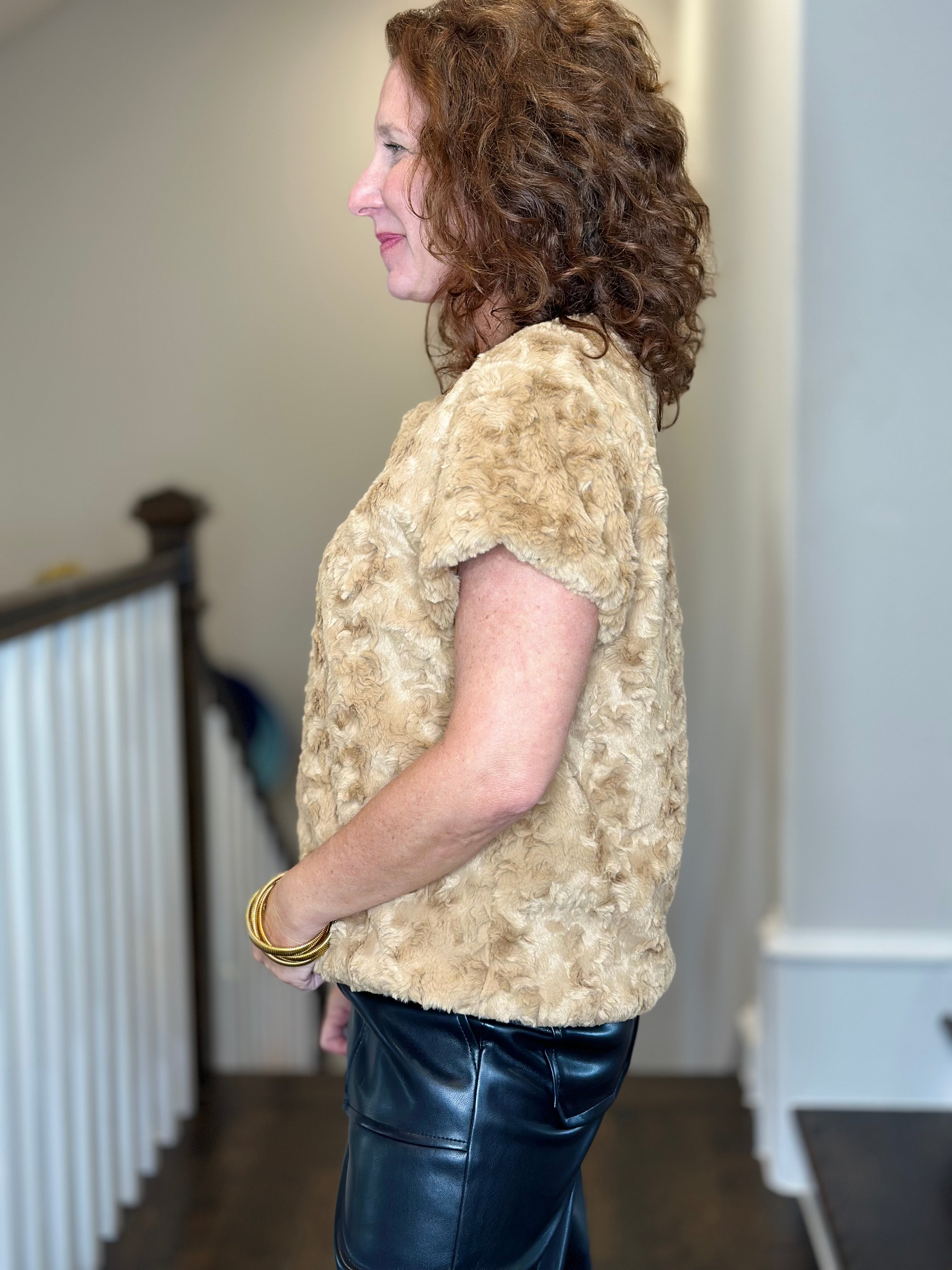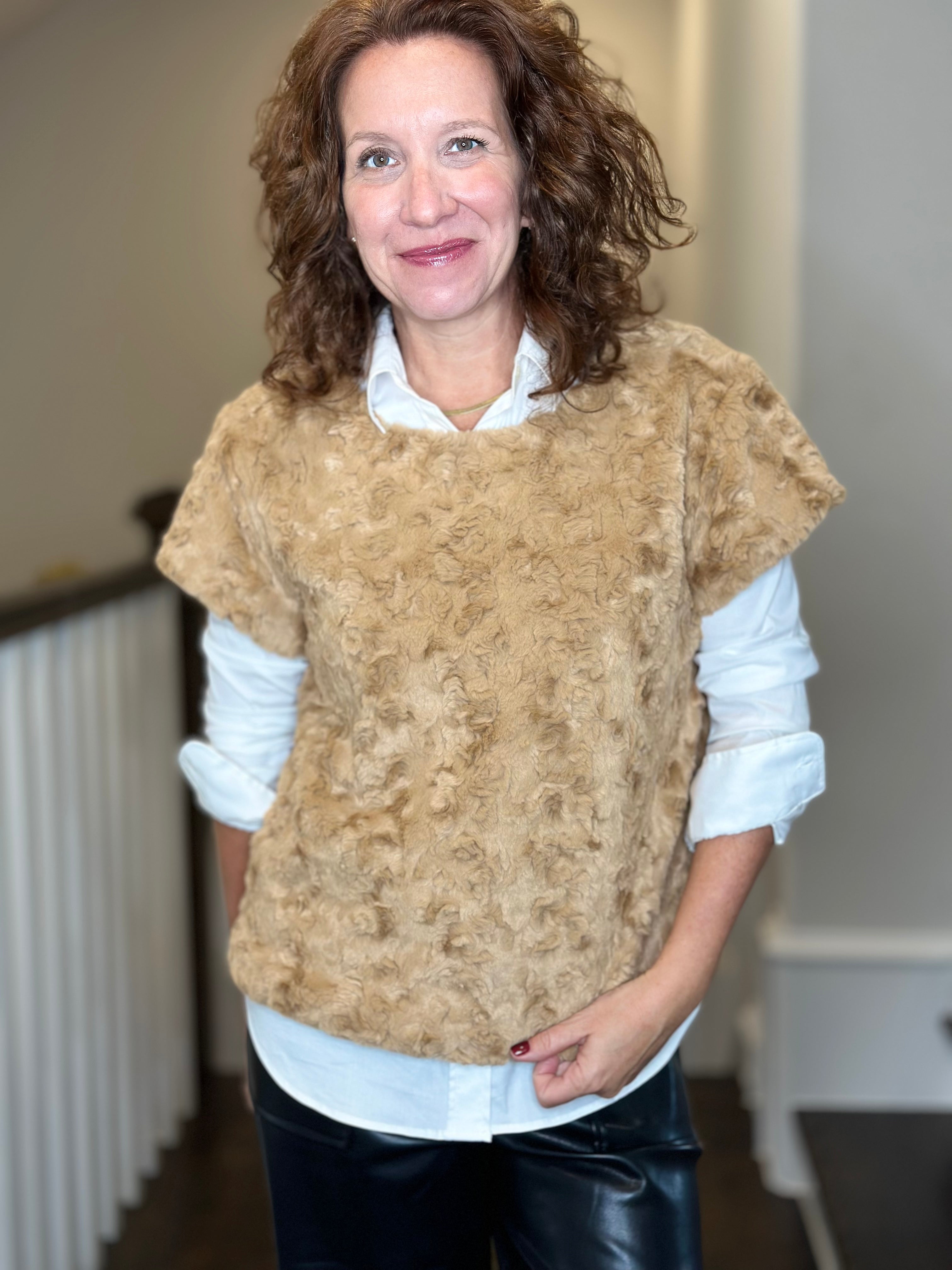 Ivy Jane Feather Faux Fur Popover in Claret