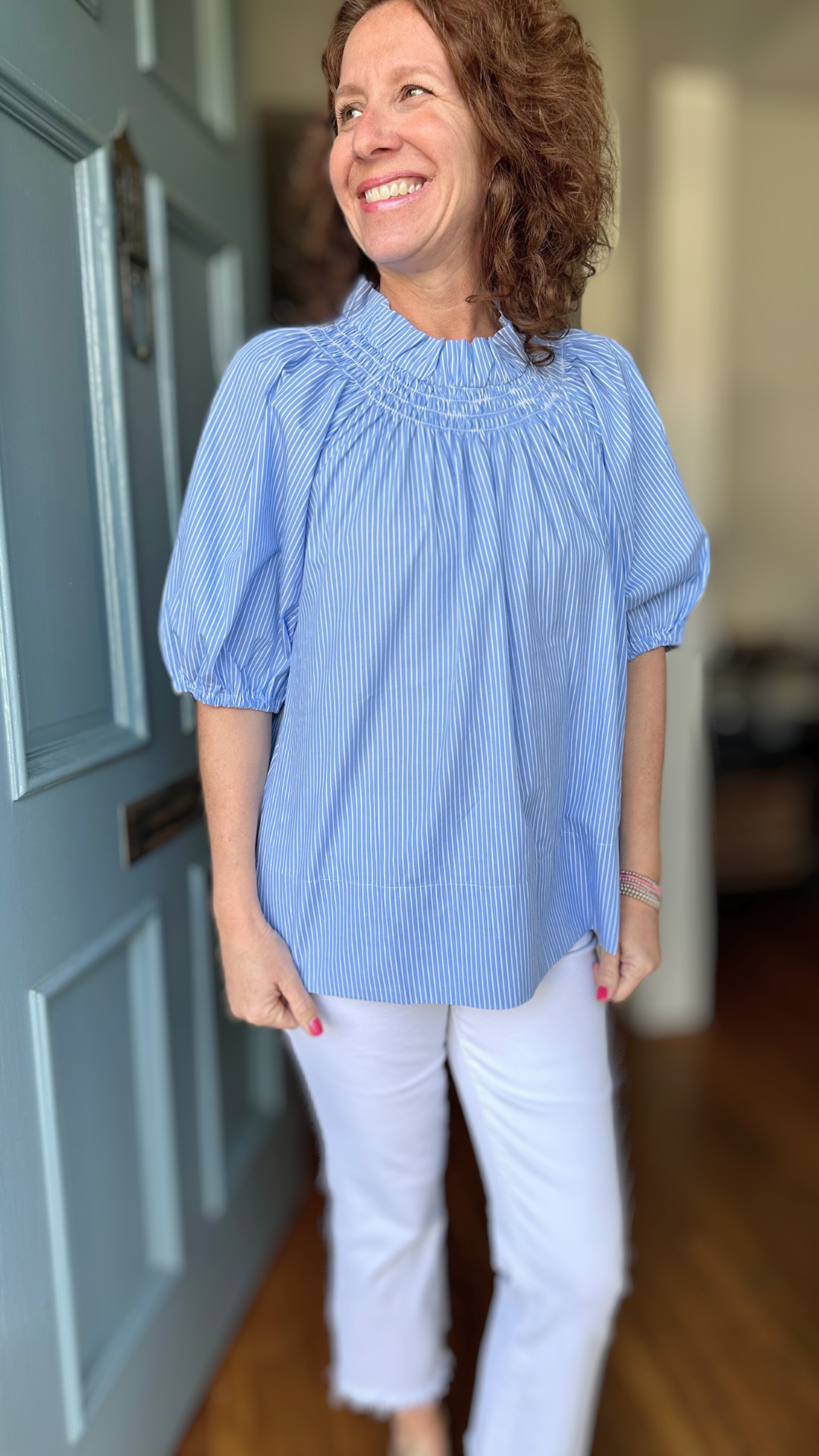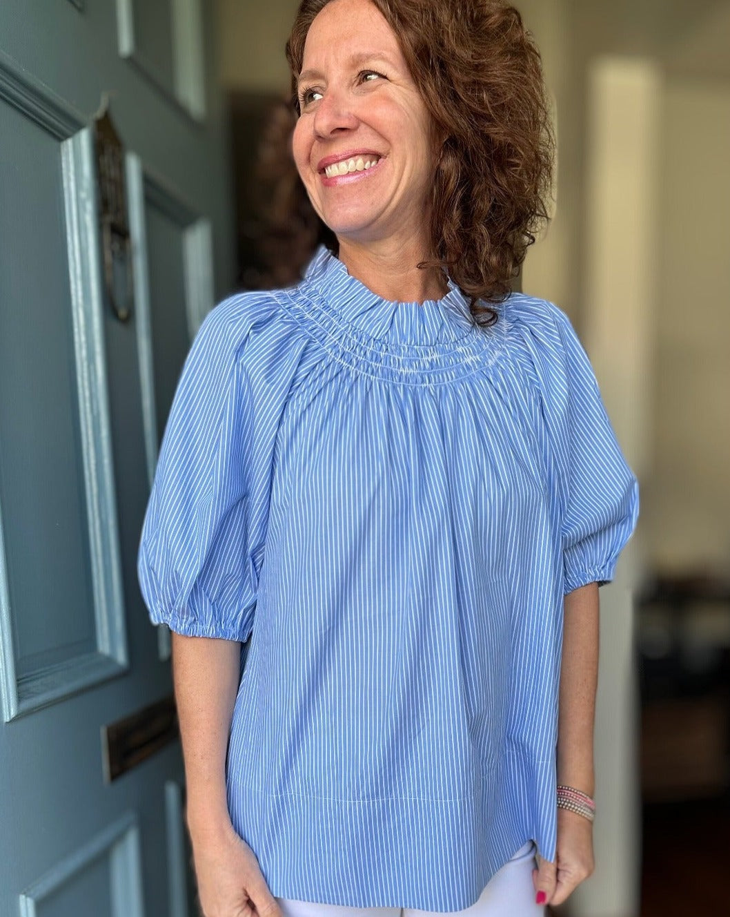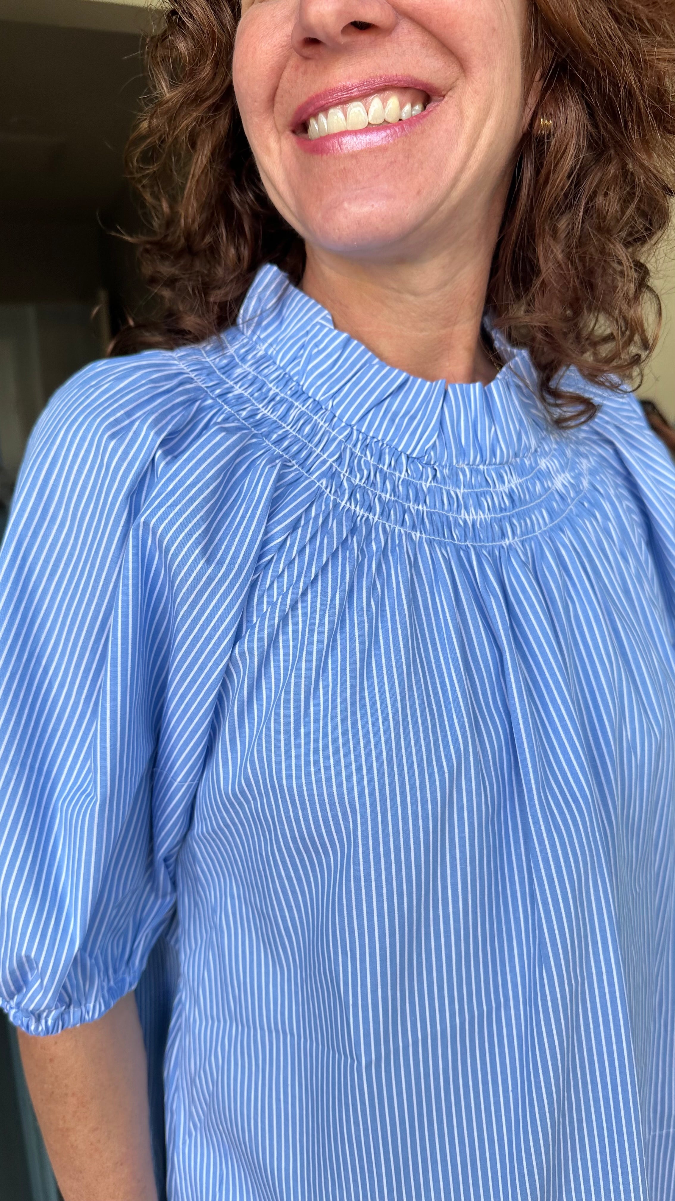 Caryn Lawn Brooke Top in Blue Stripe