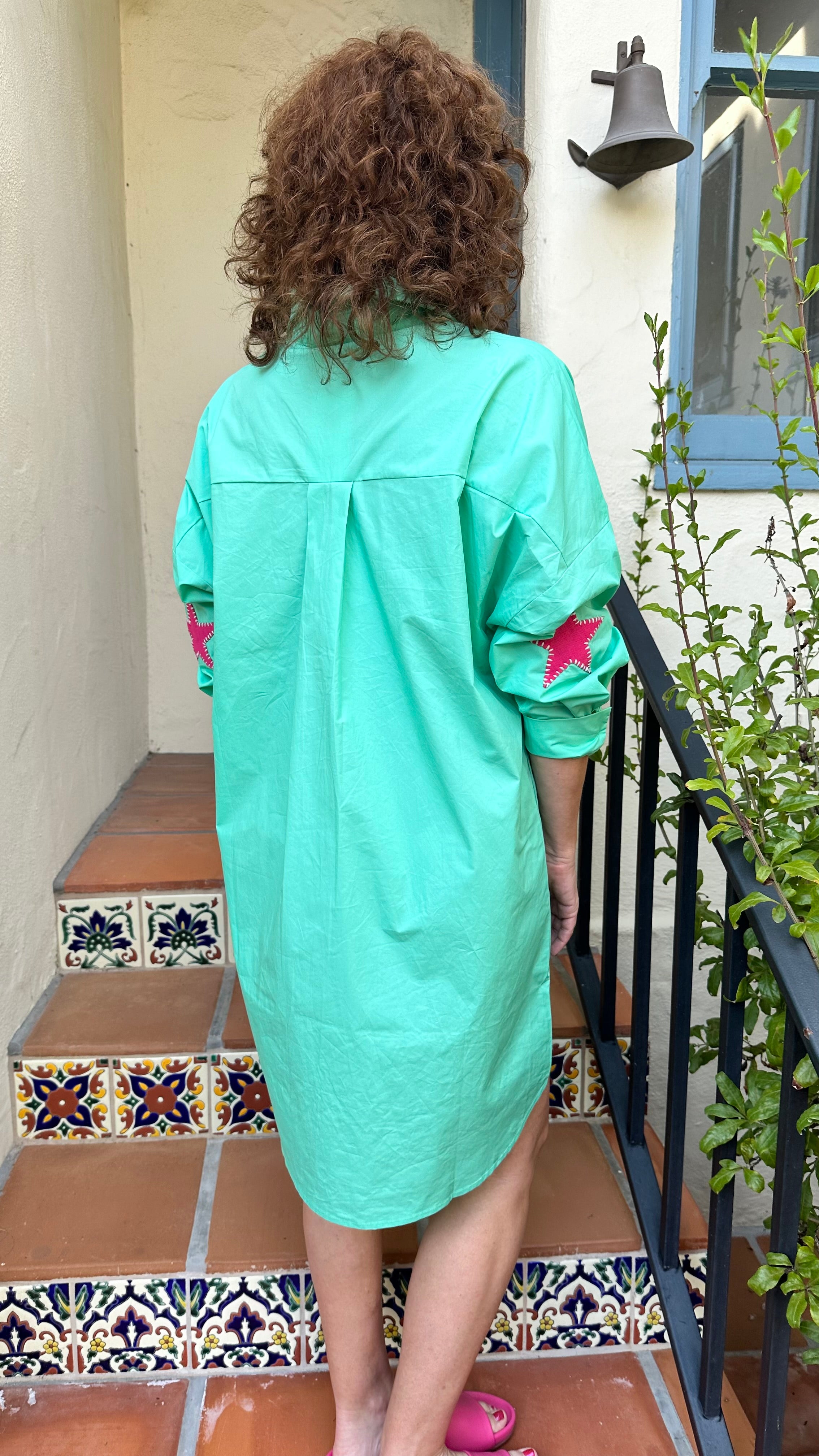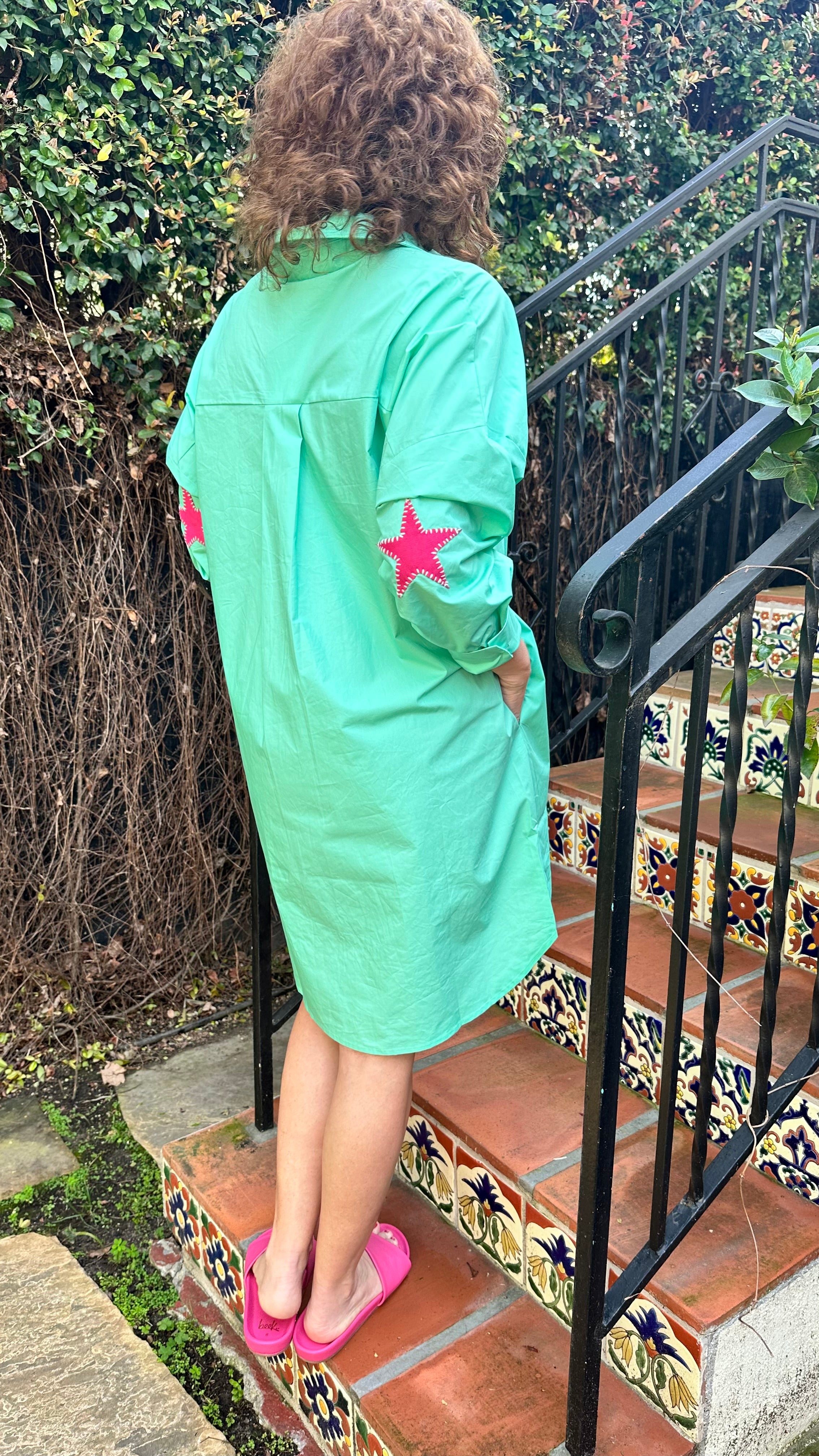 Caryn Lawn Preppy Star Dress in Green/Pink Star