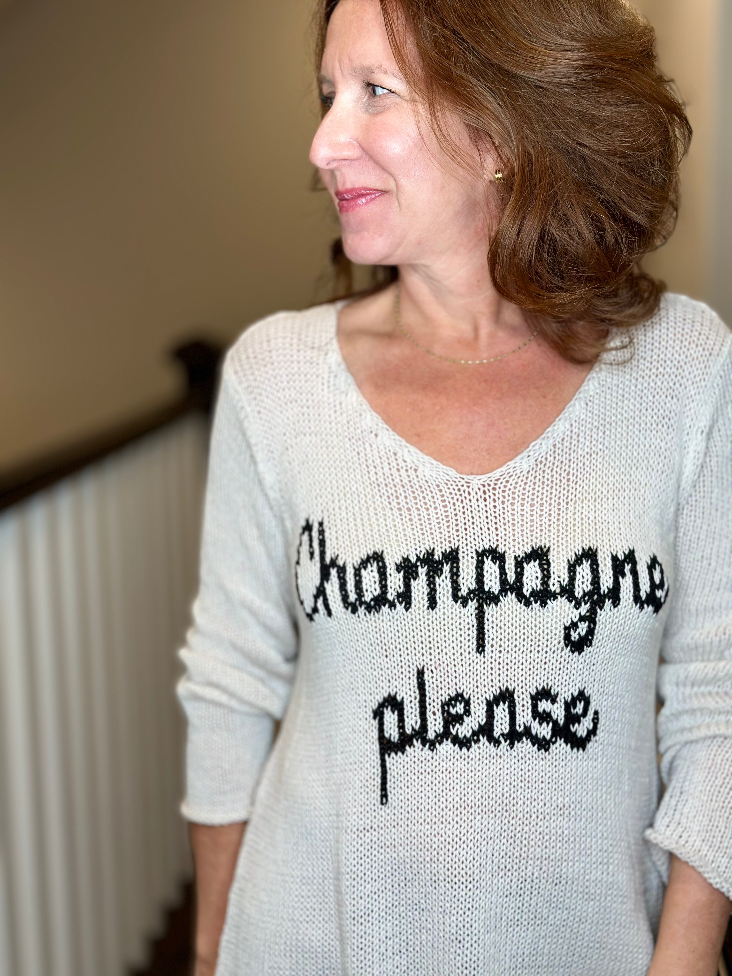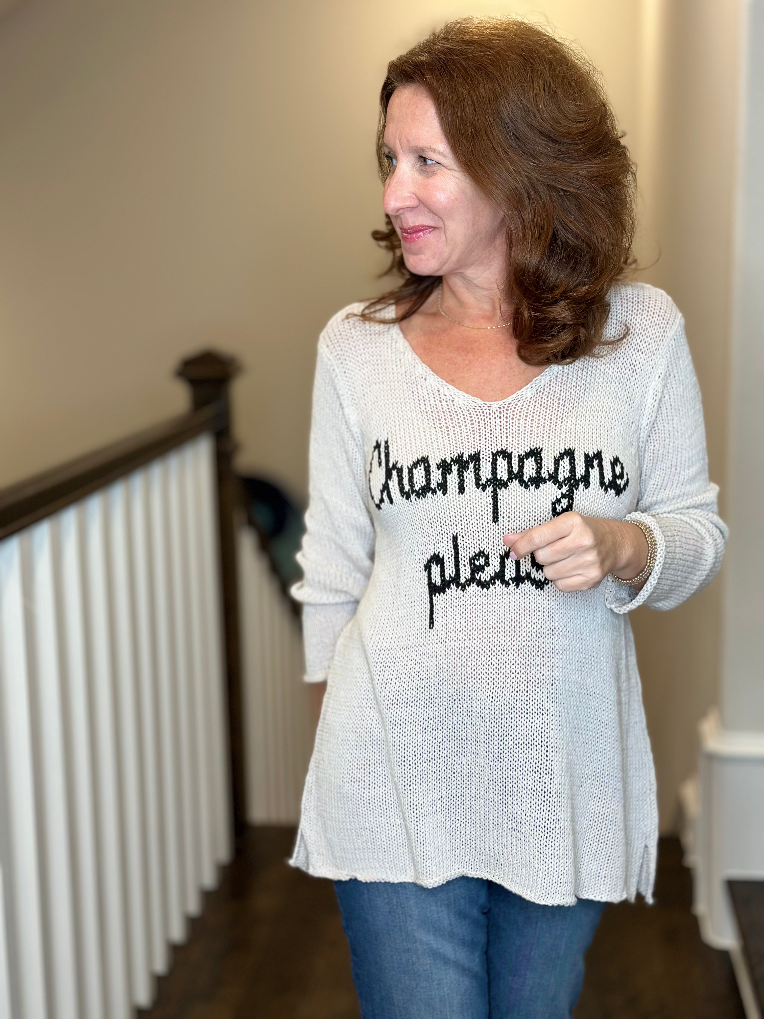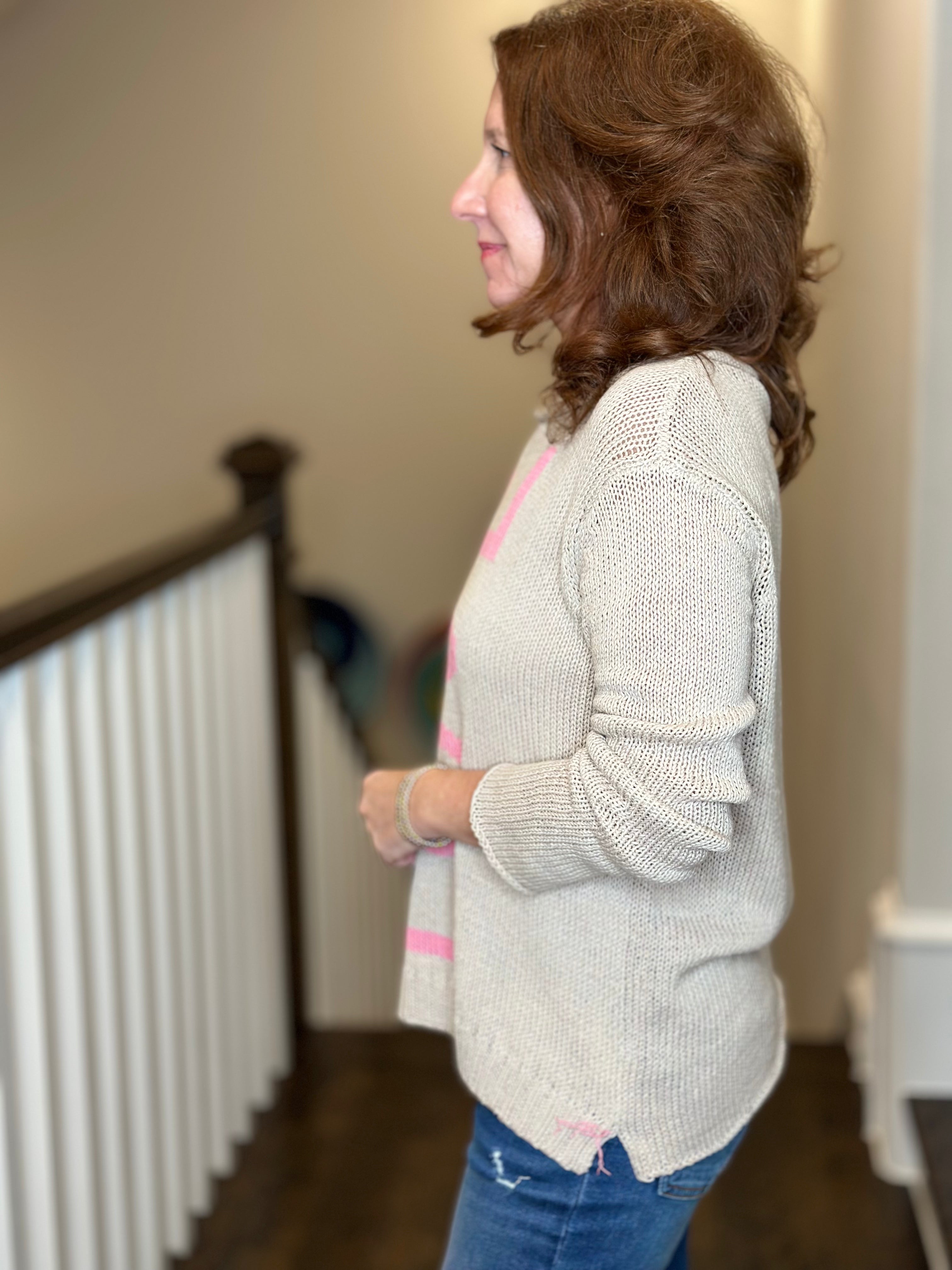 Wooden Ships Champagne Please V Neck Cotton Sweater in Blush