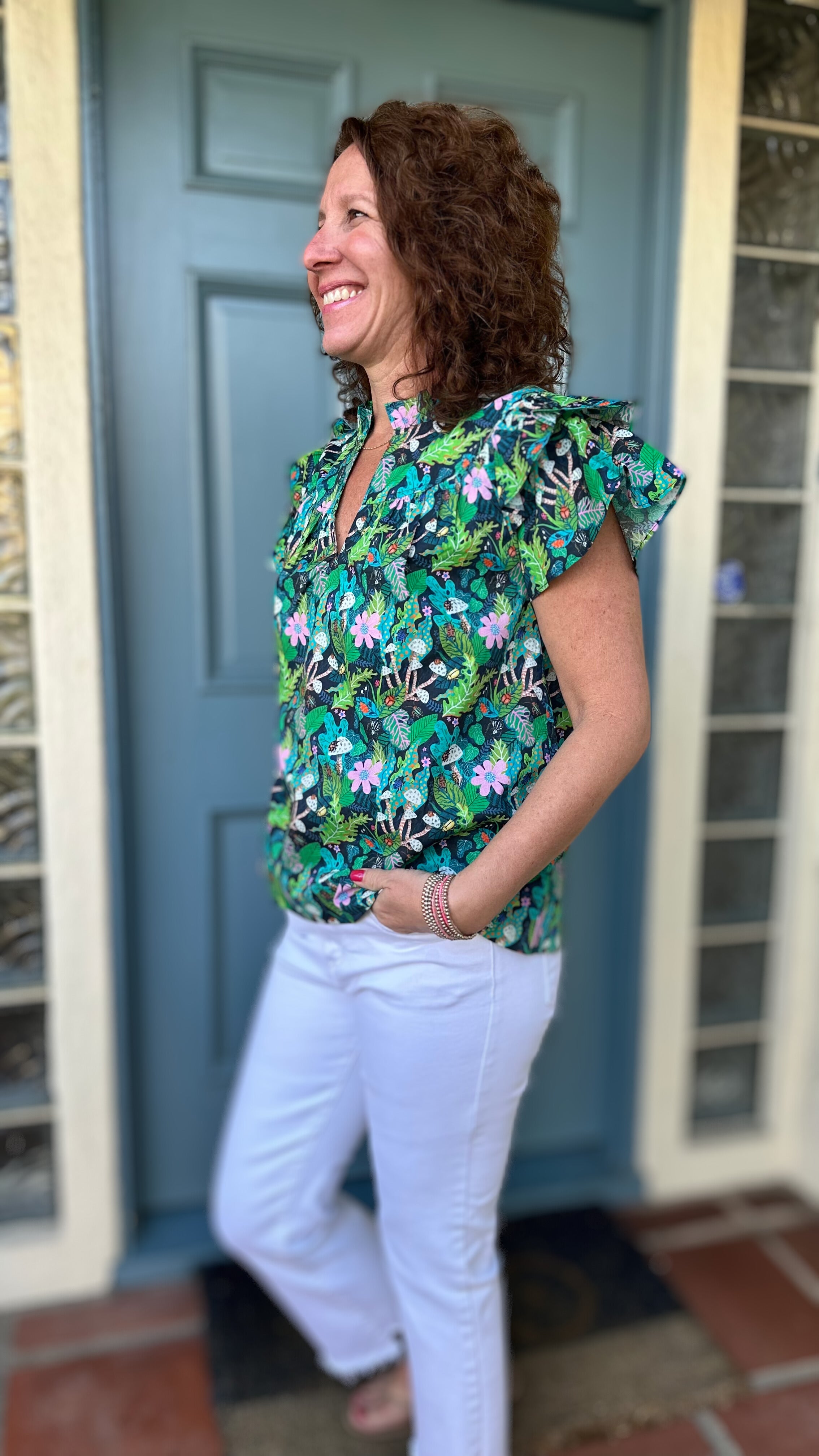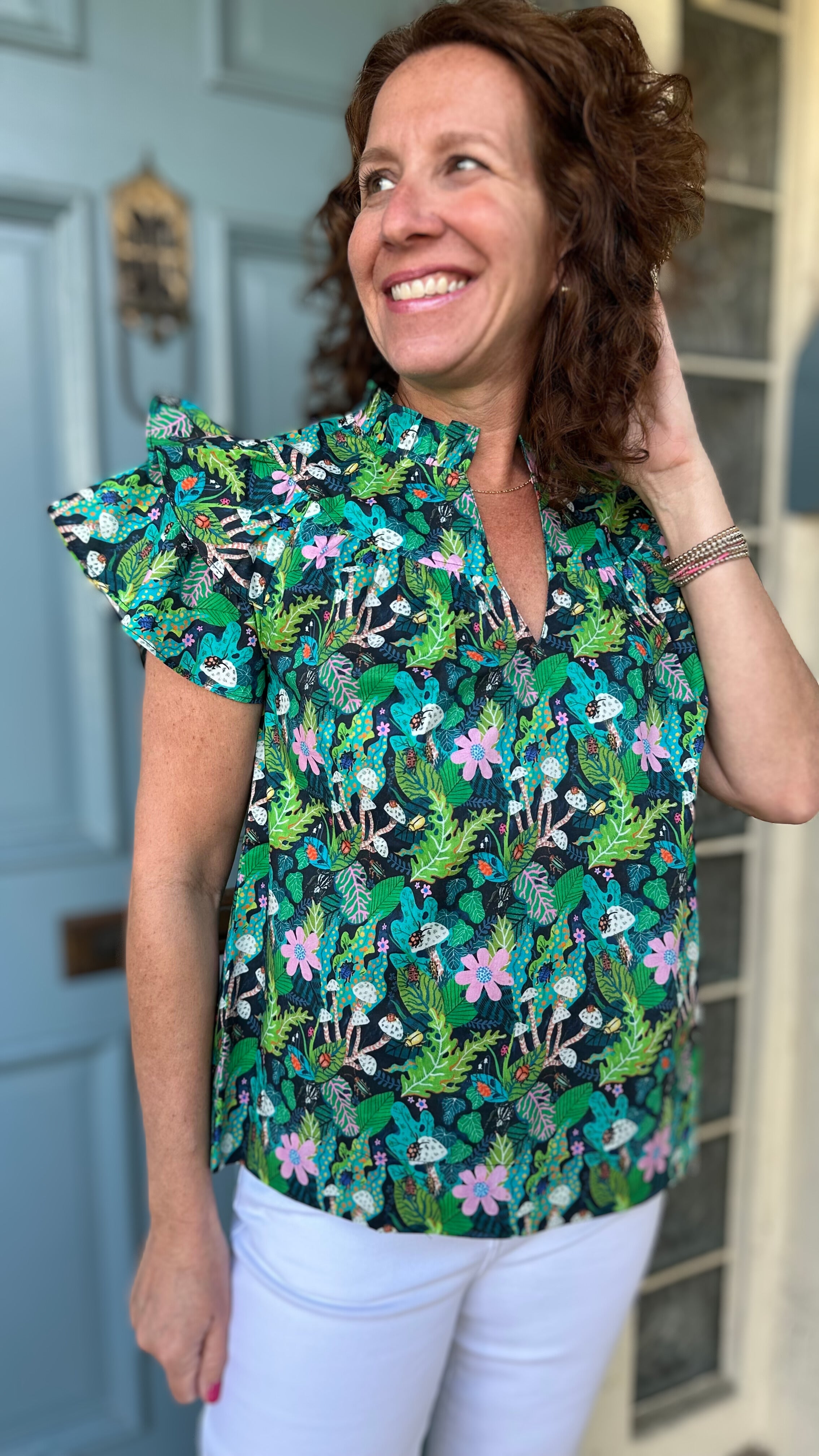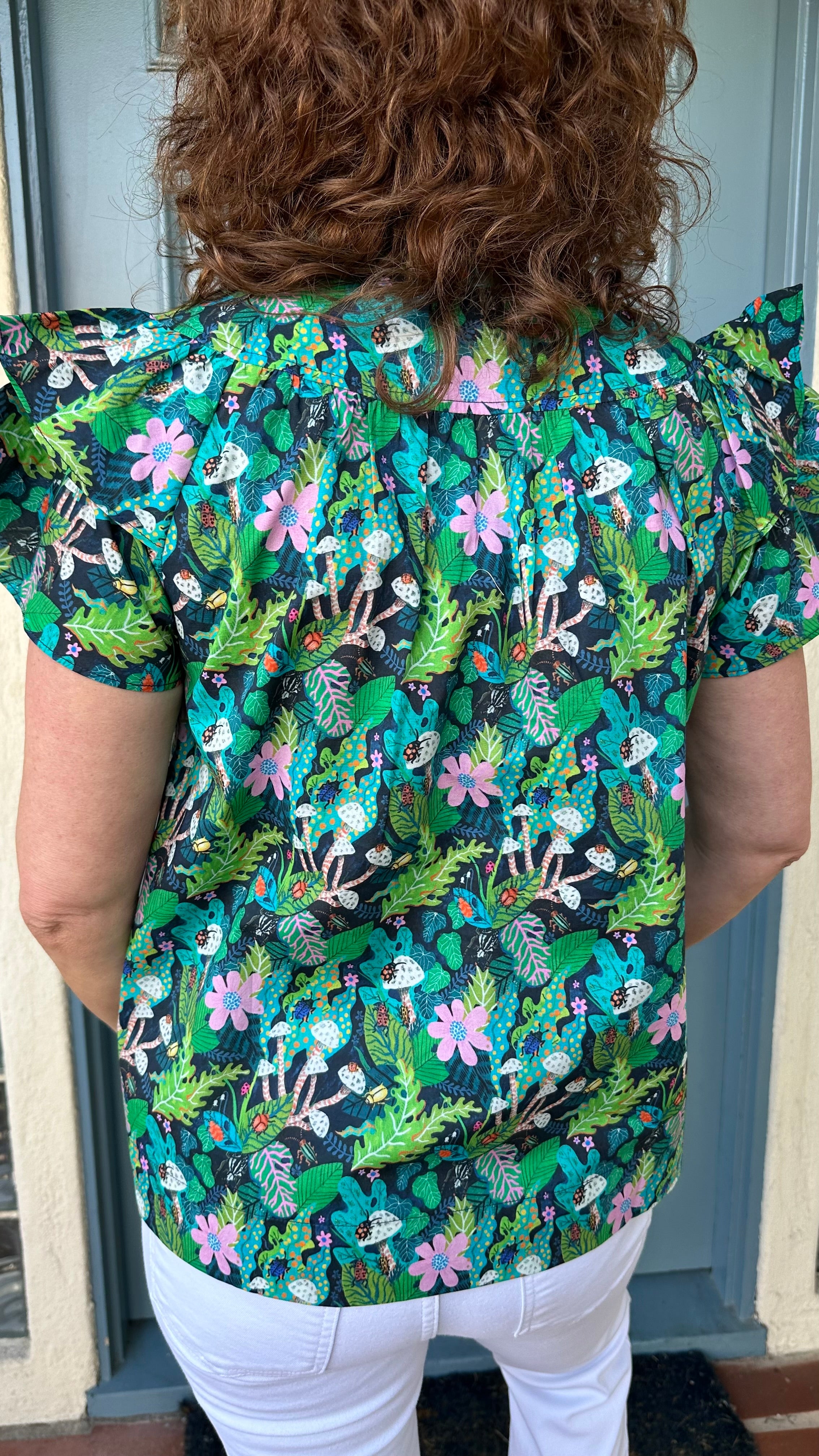 Joy Joy Flutter Sleeve Top in Jungle Floral