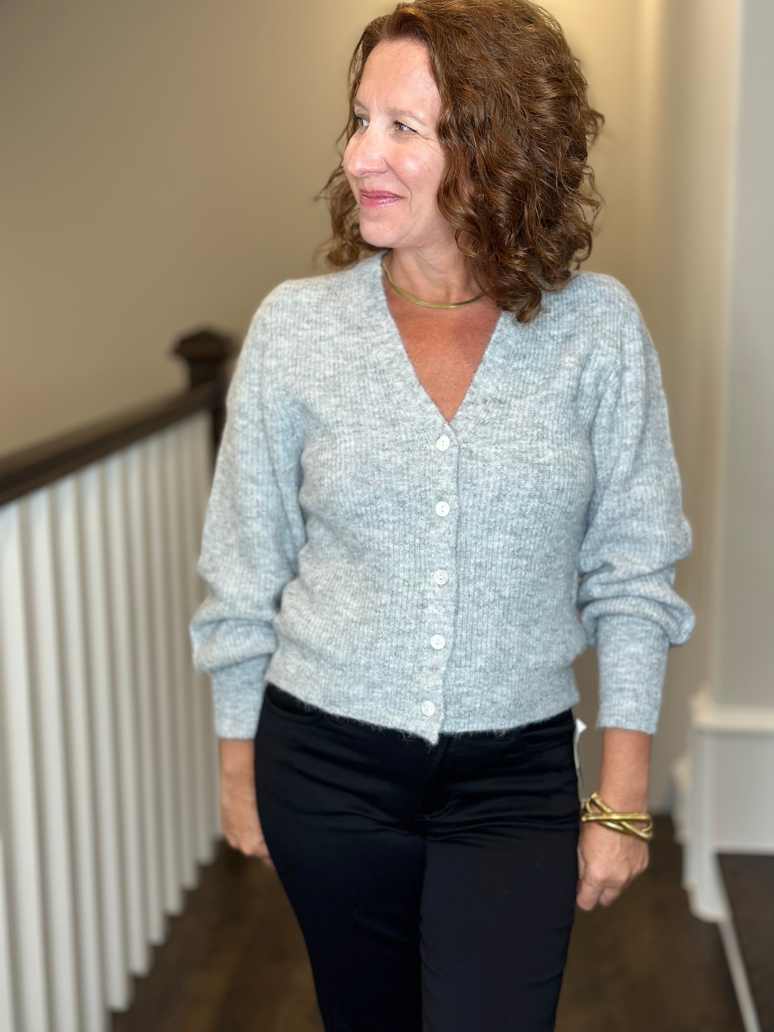 Karen Kane Button Up Cardigan in Light Gray