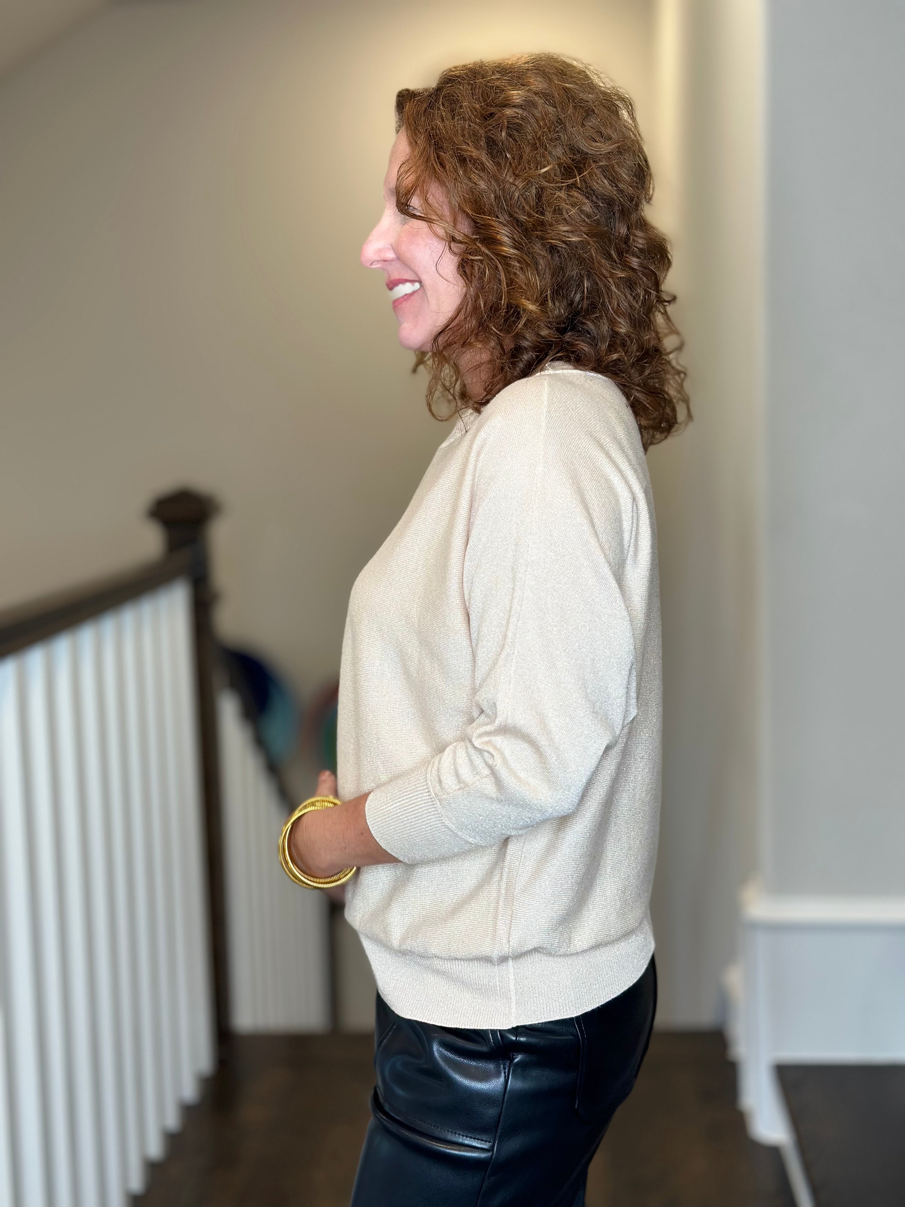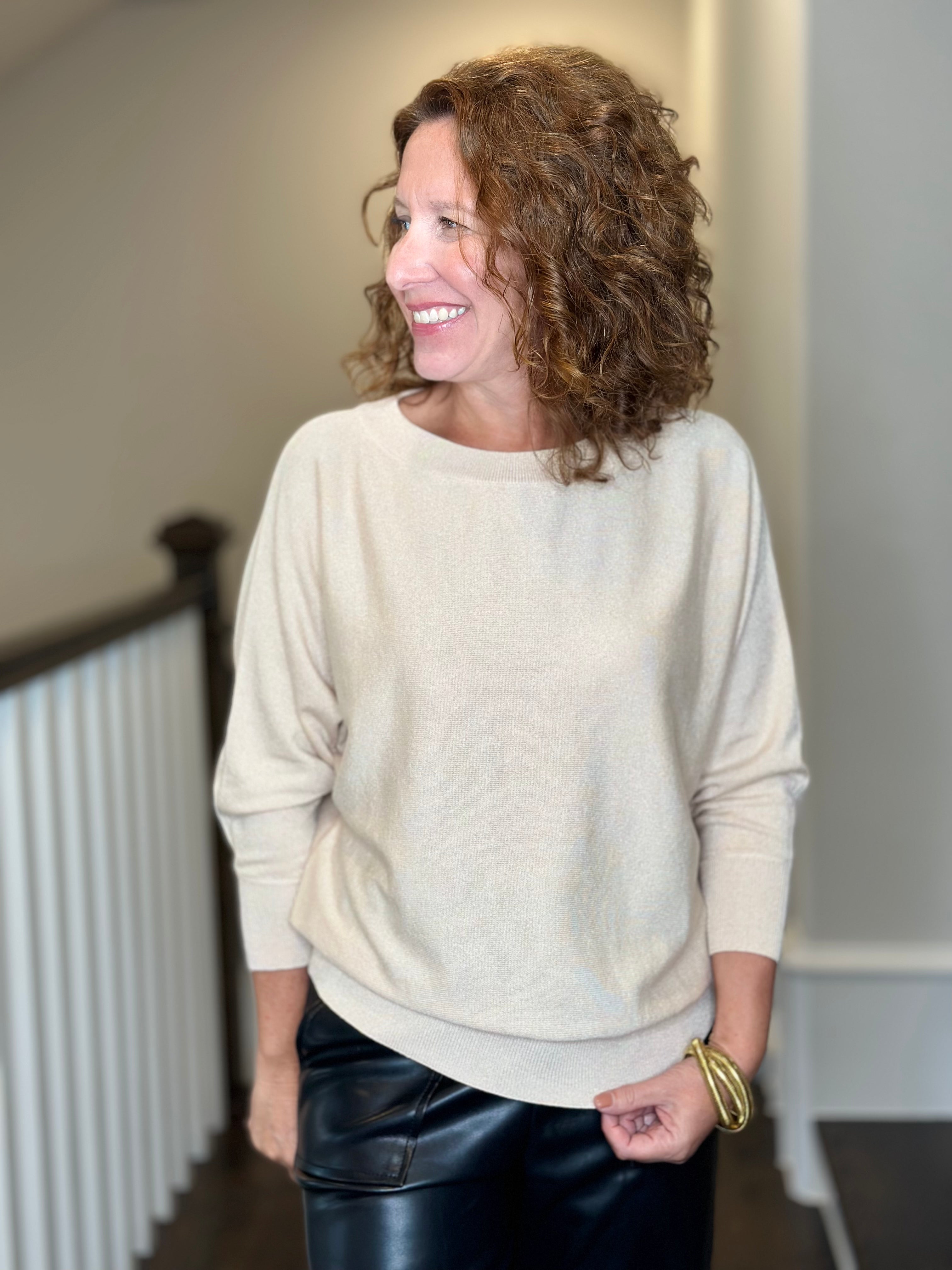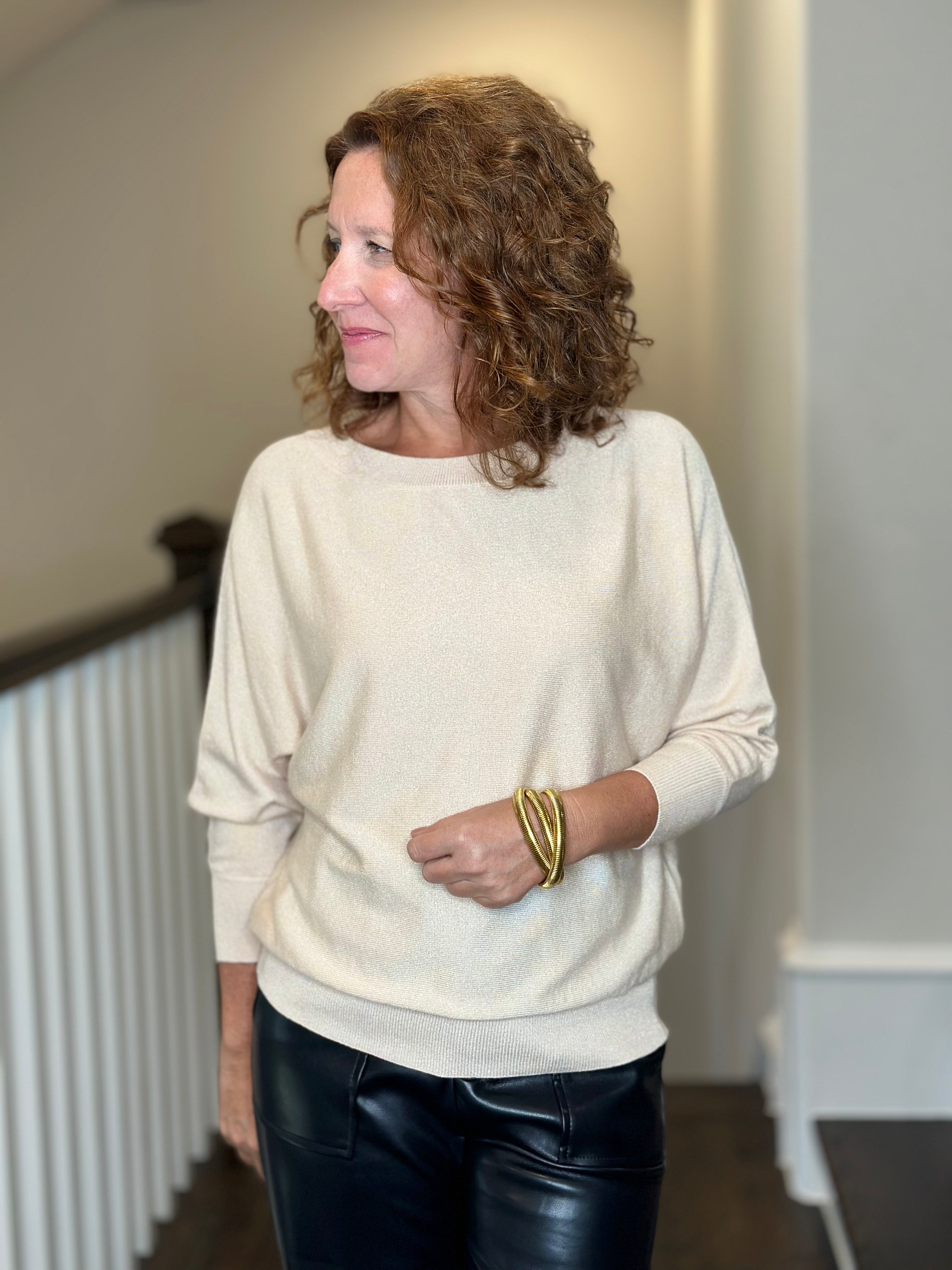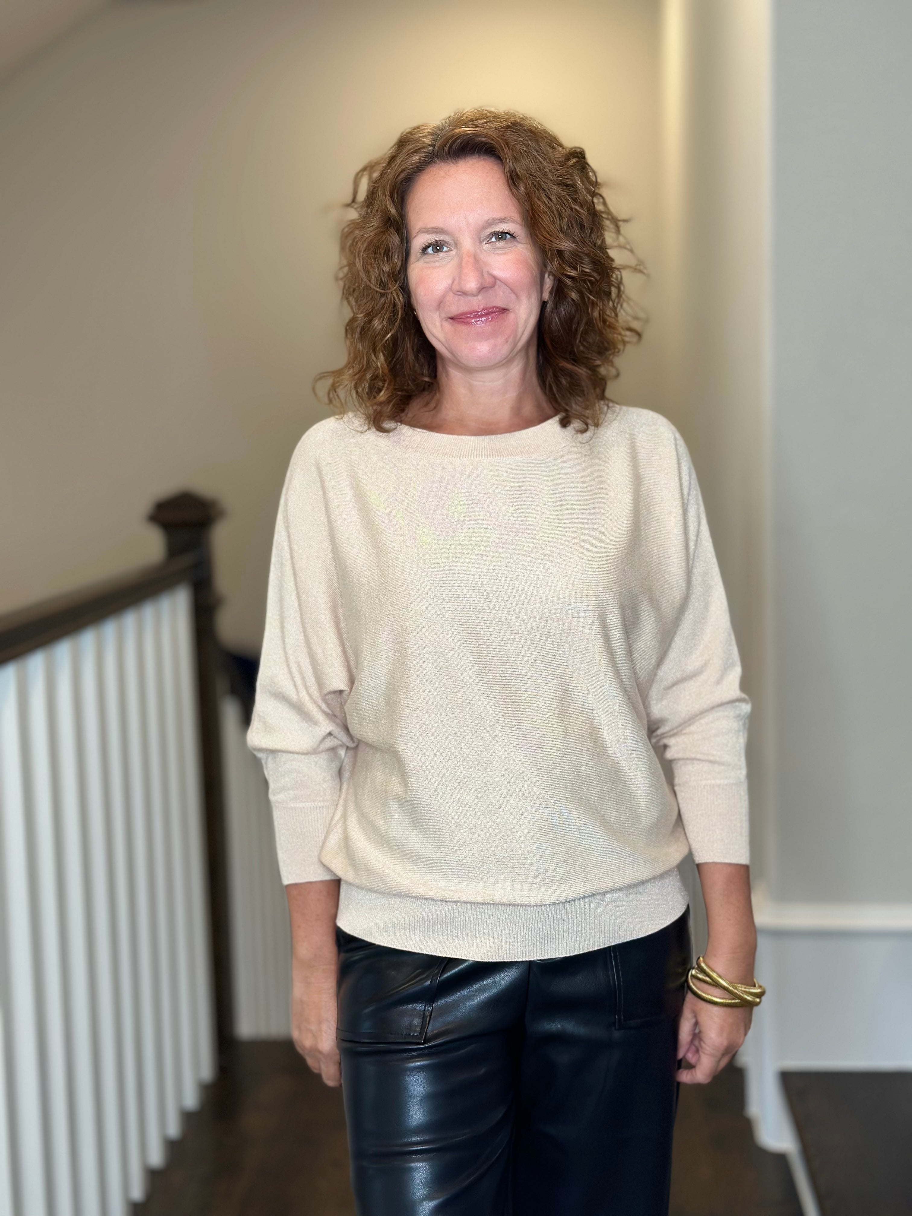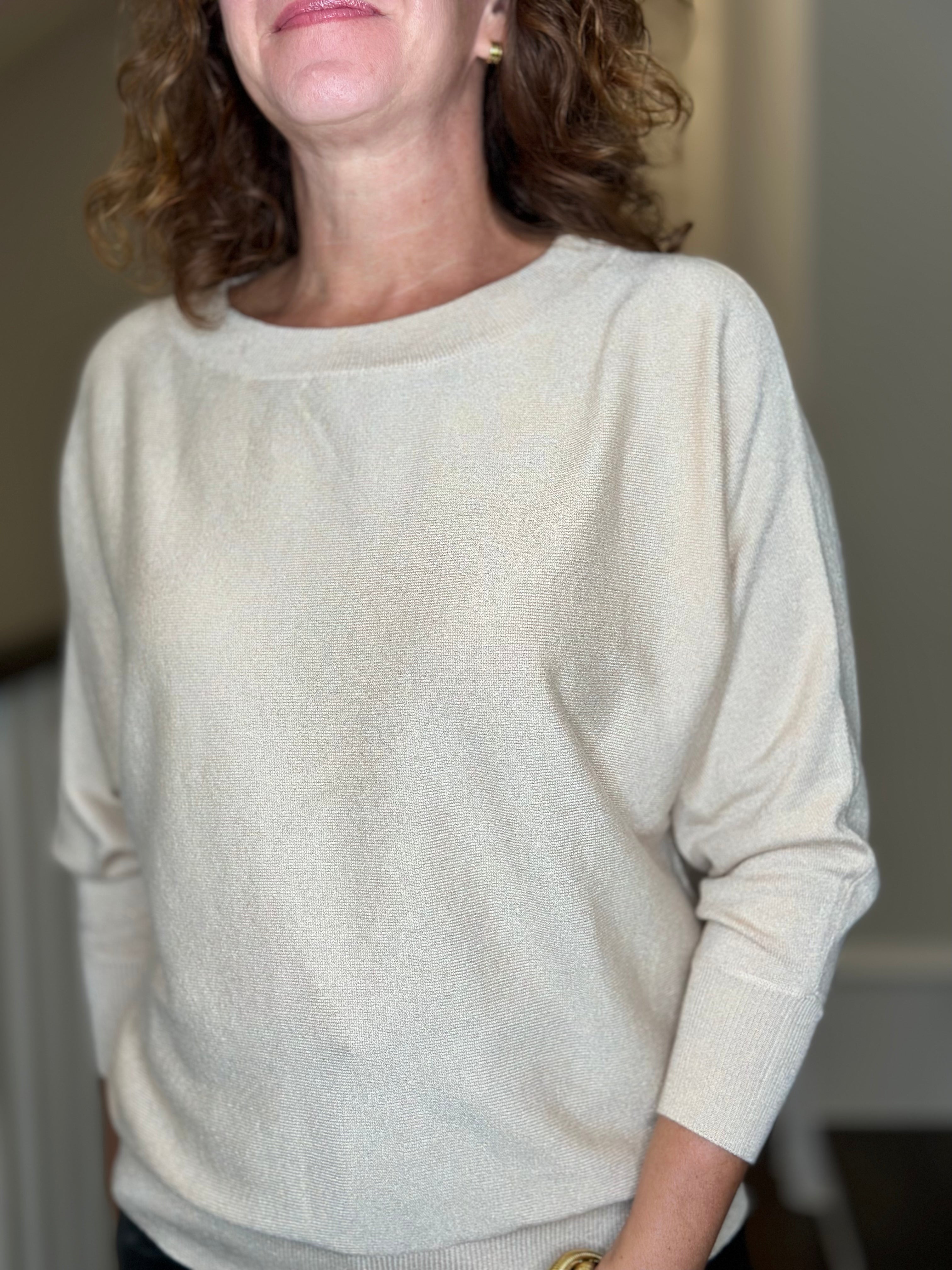 Esqualo Batwing Sweater in Light Sand Lurex